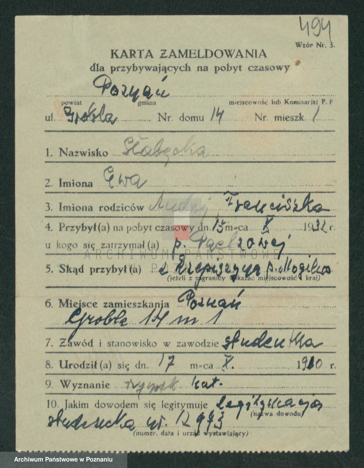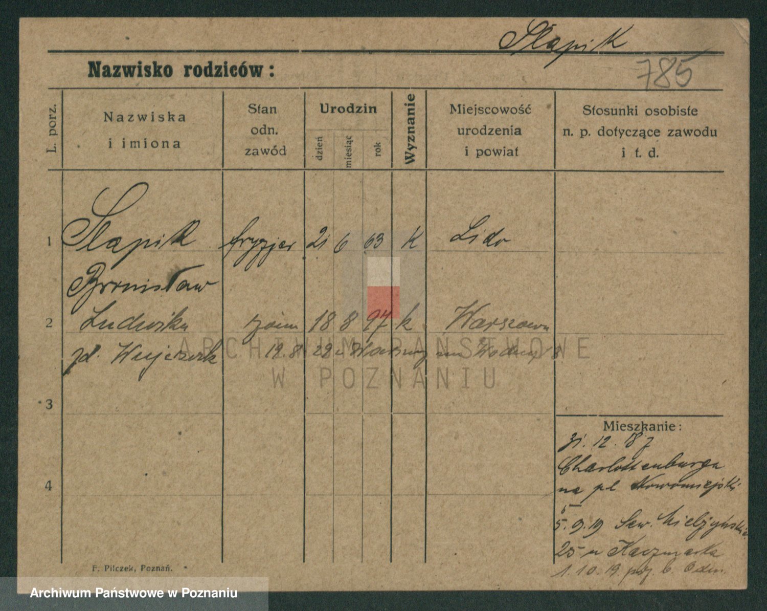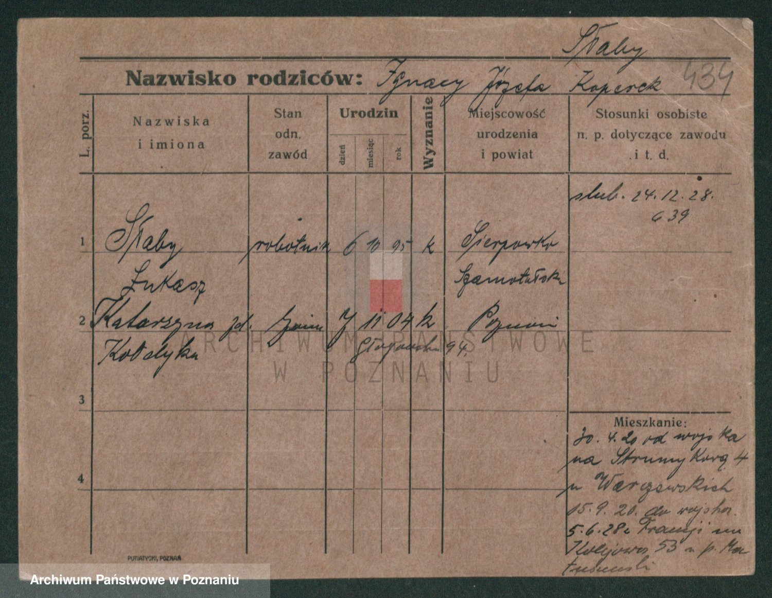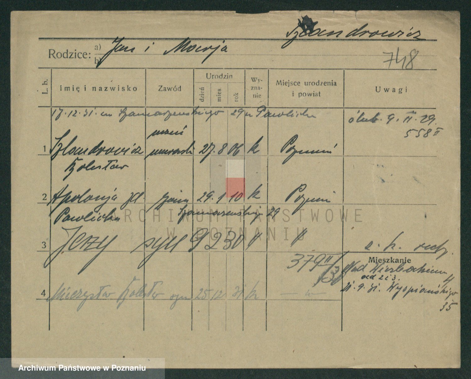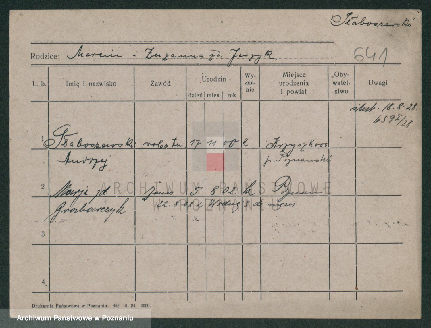 Podgląd karty osobowej dostępny jest po kliknięciu na nazwisko lub ikonkę karty. Można dokonywać powiększenia (ikony na górze) lub przechodzić między kolejnymi skanami (strzałki po bokach).