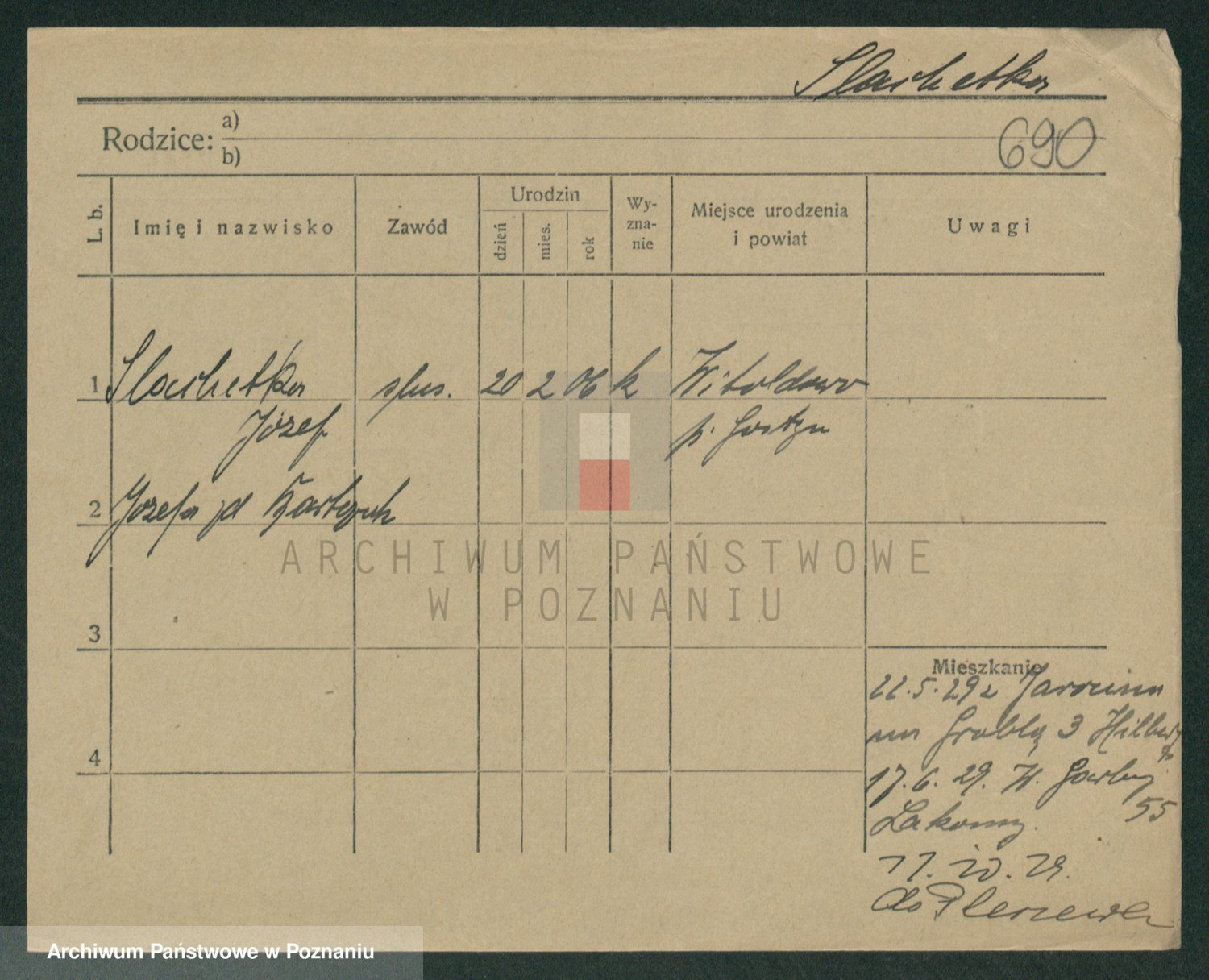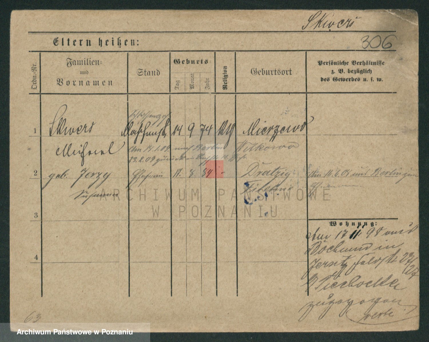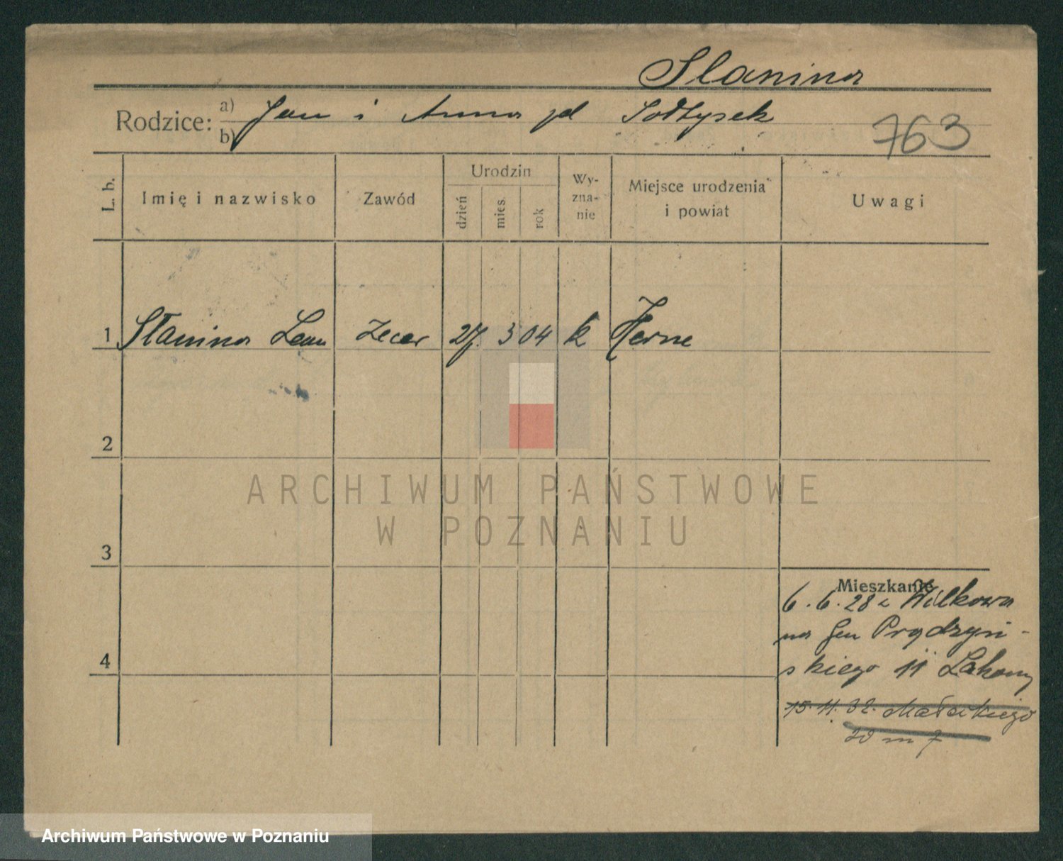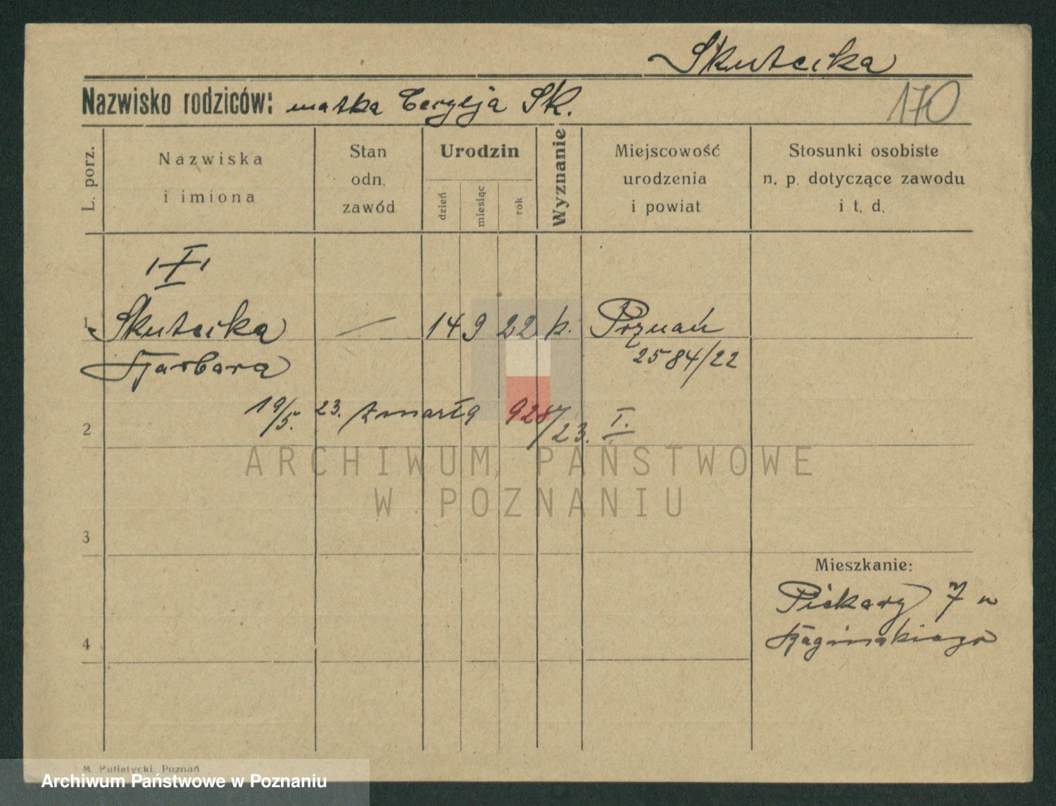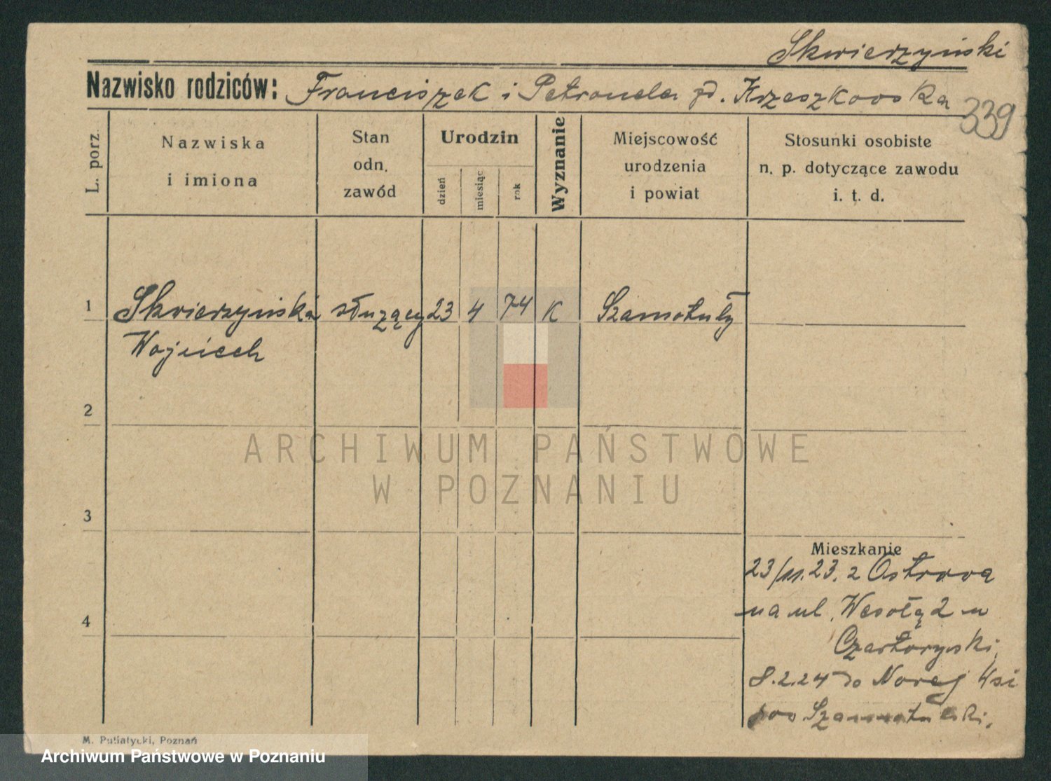 Podgląd karty osobowej dostępny jest po kliknięciu na nazwisko lub ikonkę karty. Można dokonywać powiększenia (ikony na górze) lub przechodzić między kolejnymi skanami (strzałki po bokach).