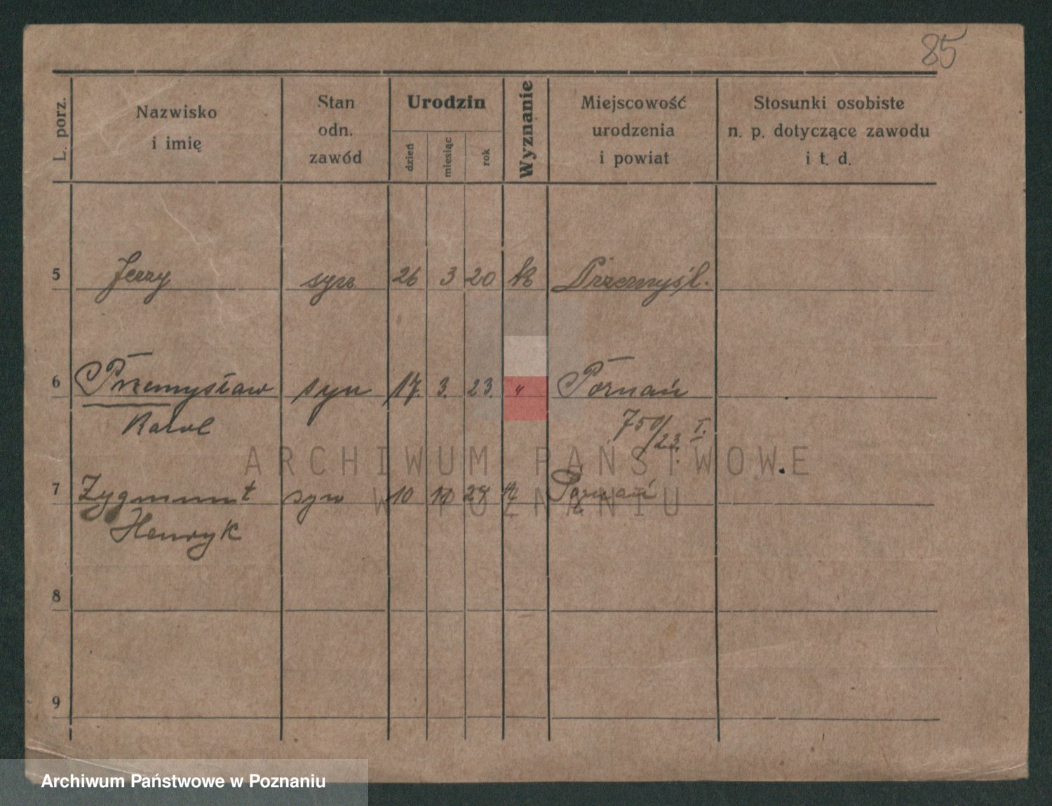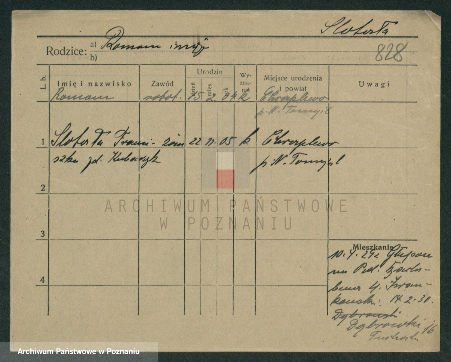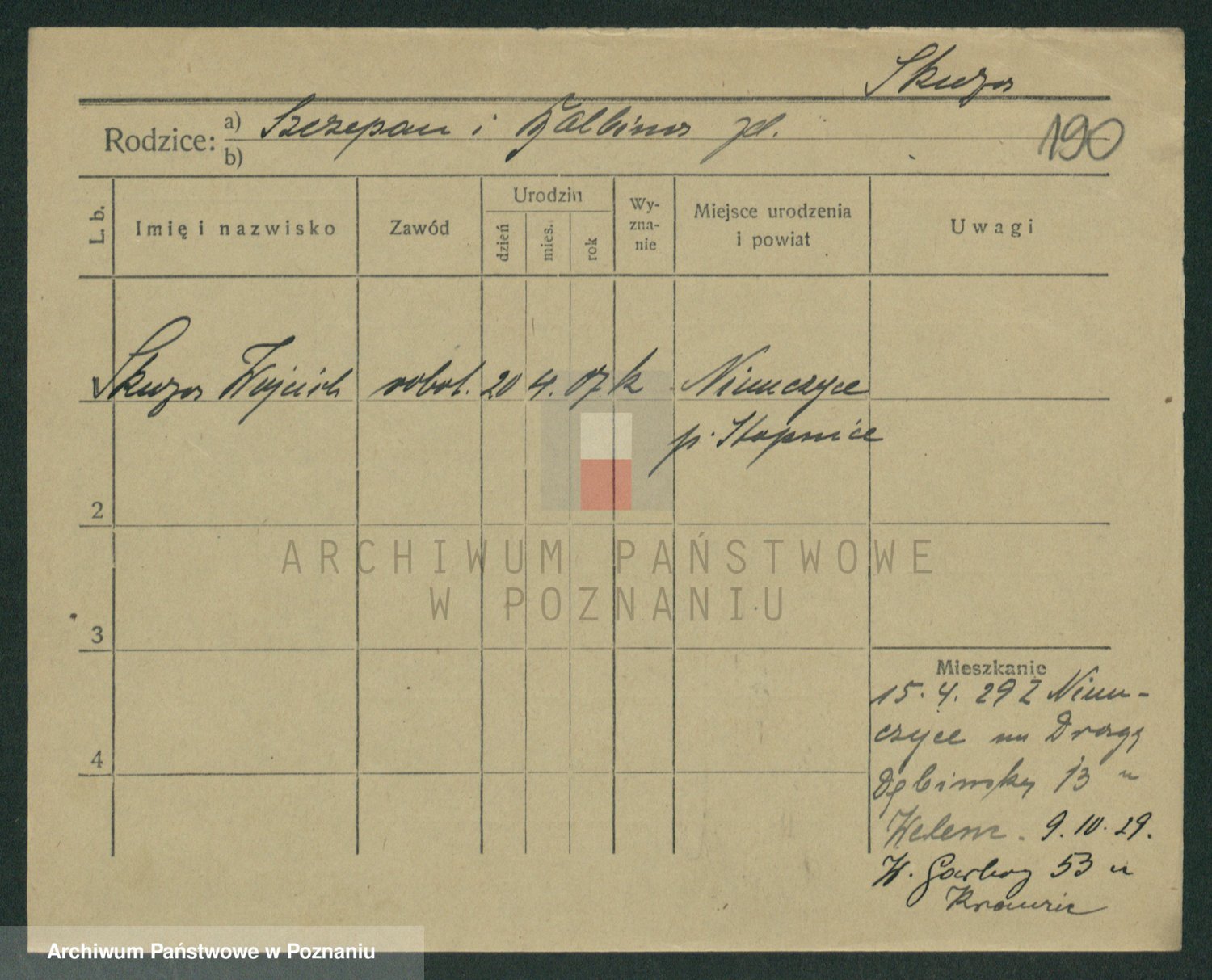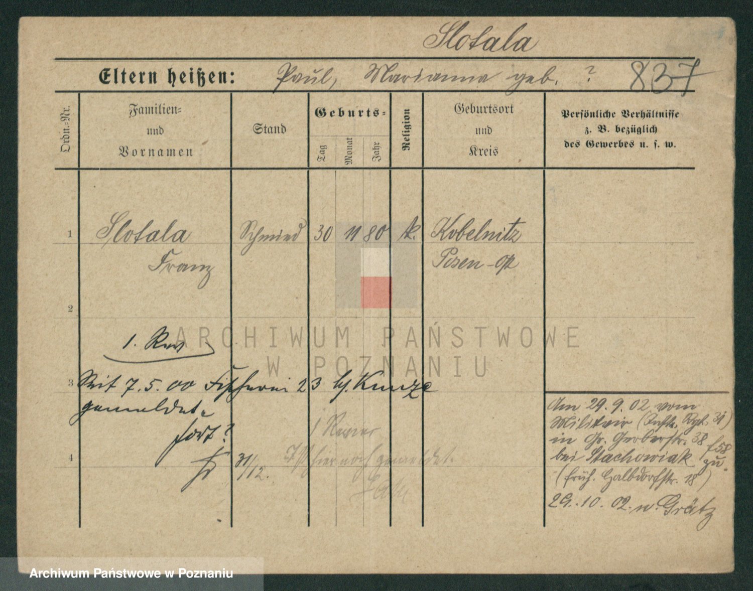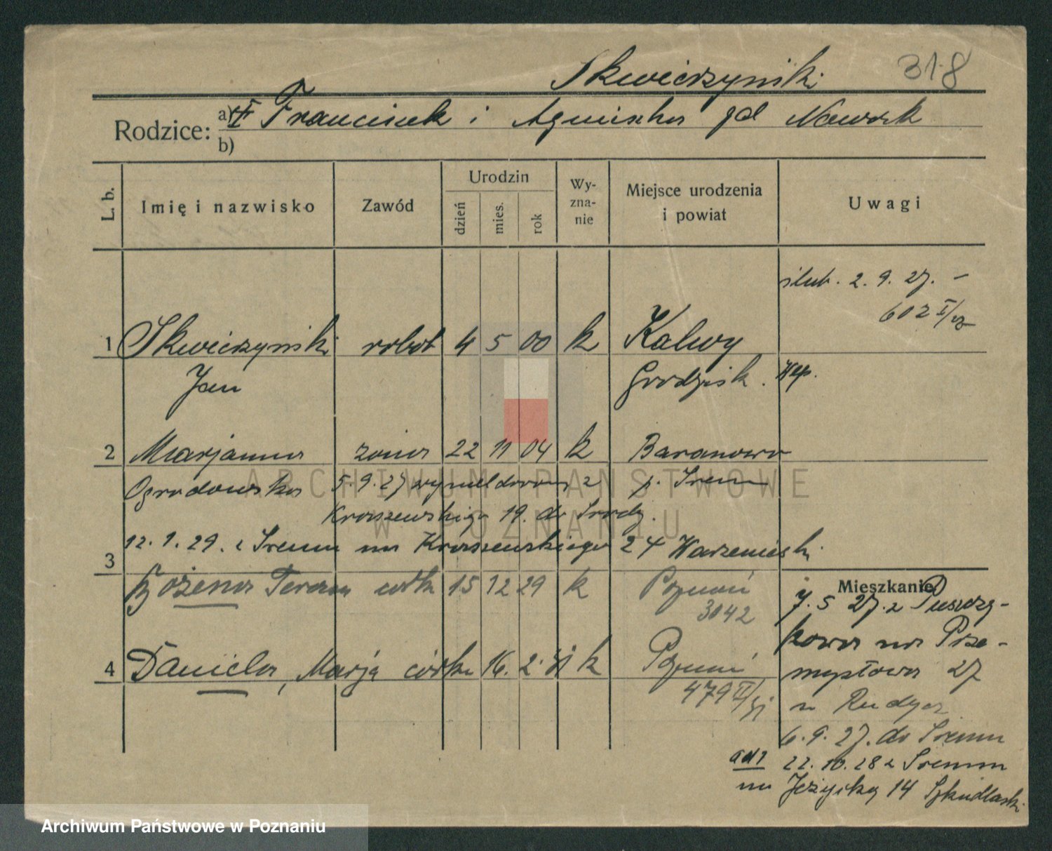 Podgląd karty osobowej dostępny jest po kliknięciu na nazwisko lub ikonkę karty. Można dokonywać powiększenia (ikony na górze) lub przechodzić między kolejnymi skanami (strzałki po bokach).