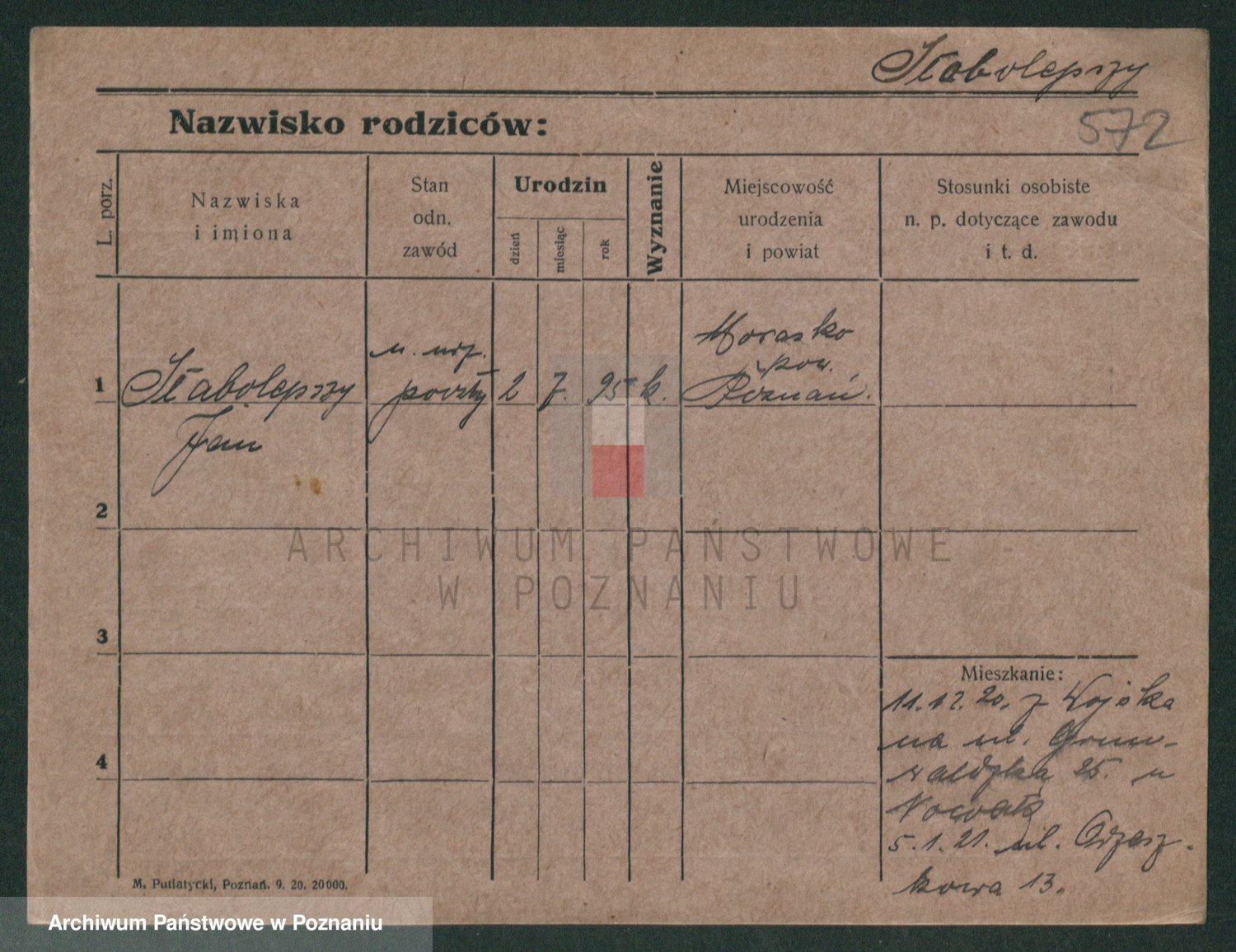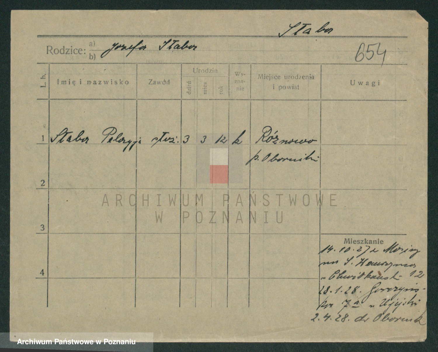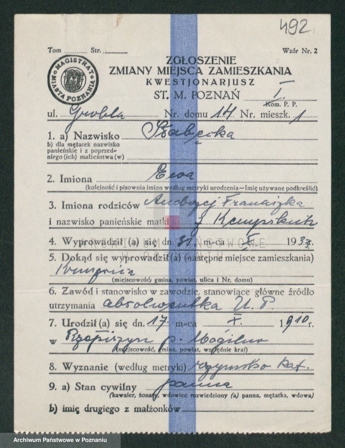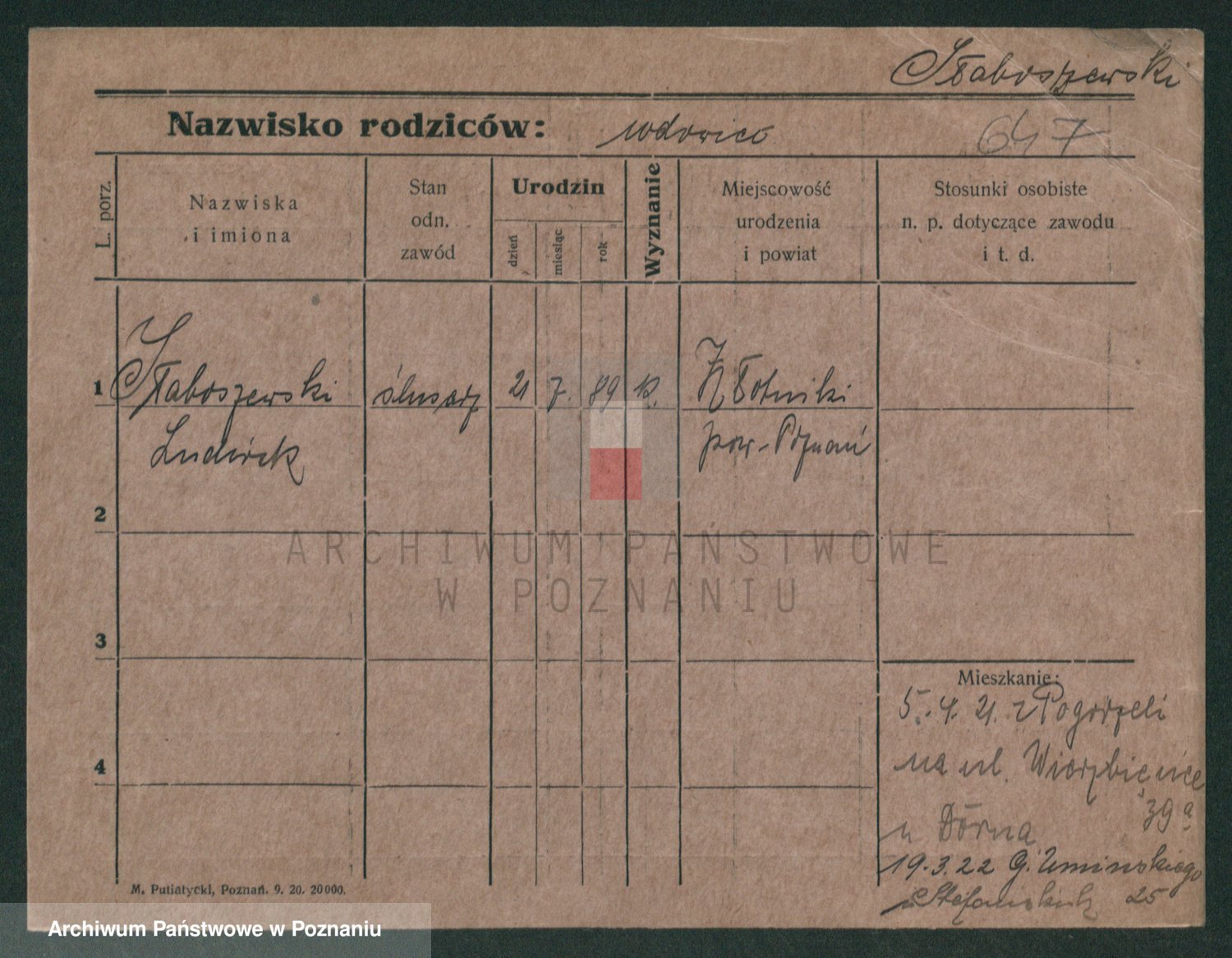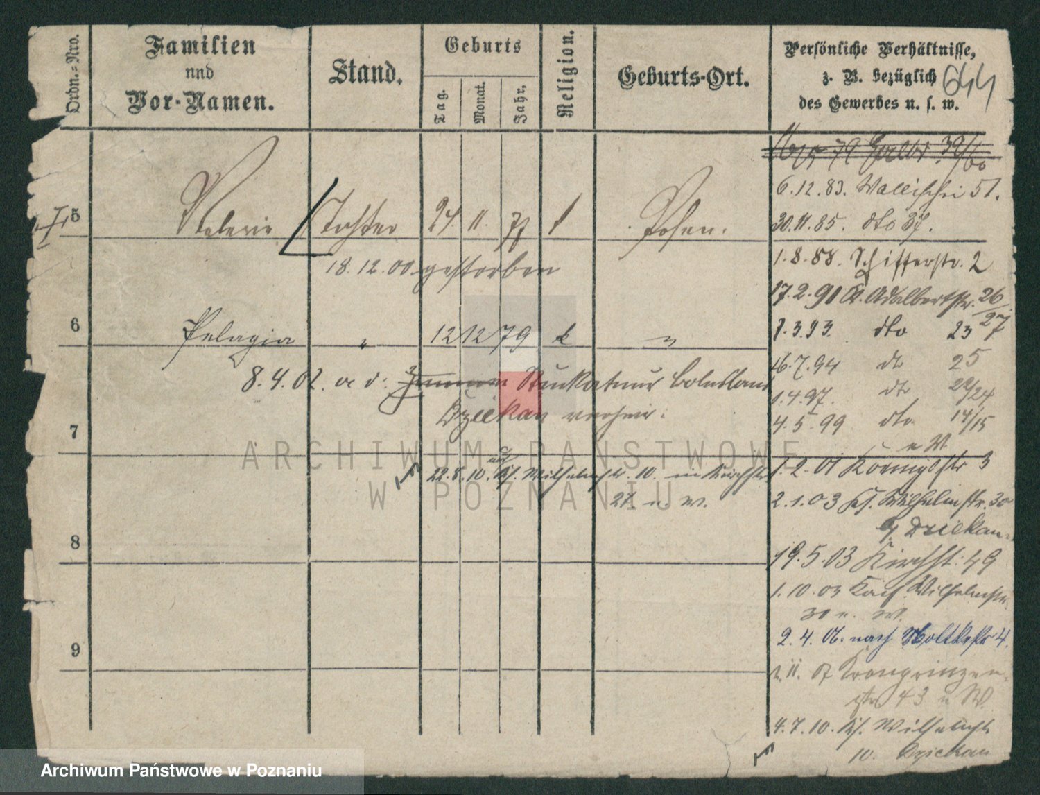 Podgląd karty osobowej dostępny jest po kliknięciu na nazwisko lub ikonkę karty. Można dokonywać powiększenia (ikony na górze) lub przechodzić między kolejnymi skanami (strzałki po bokach).
