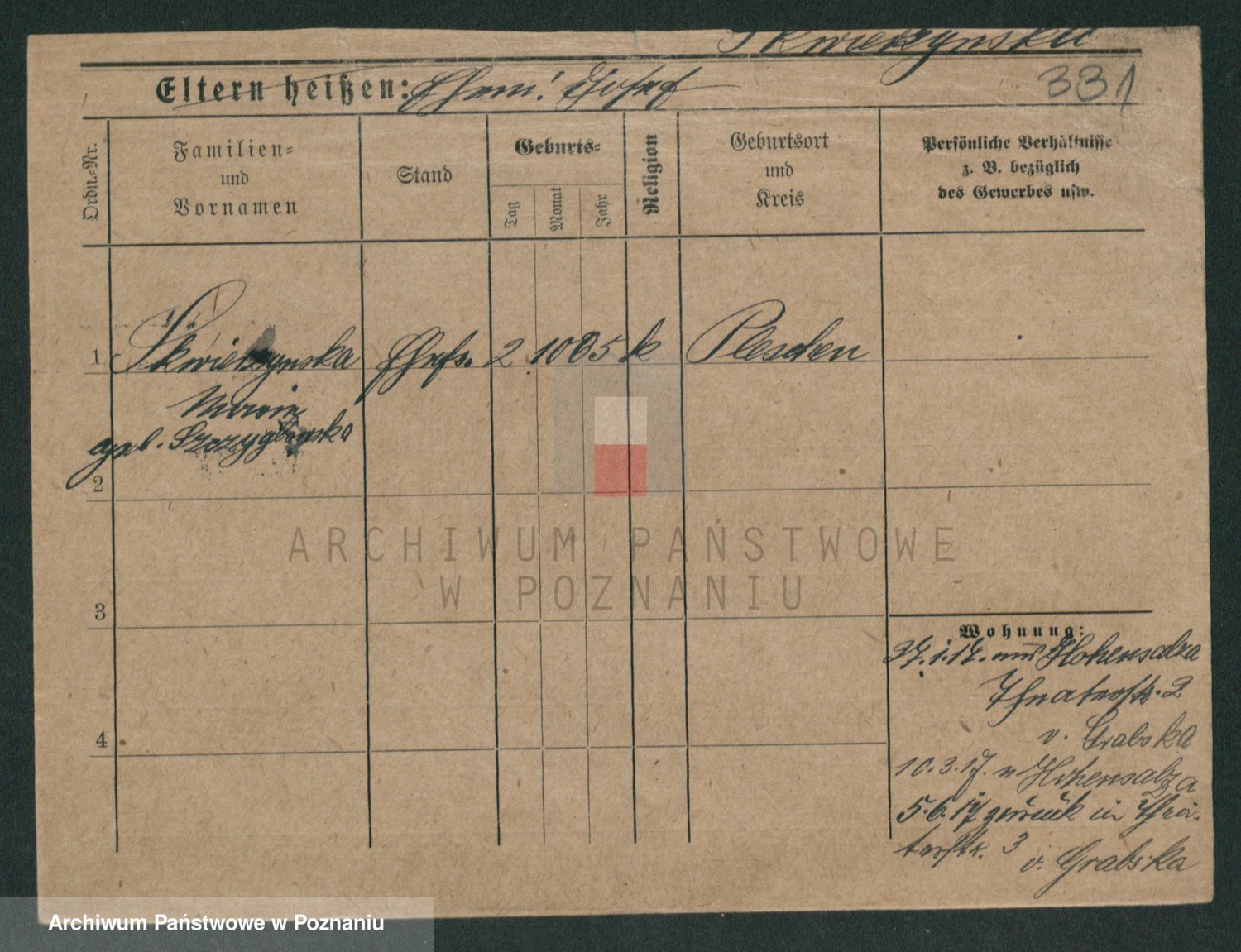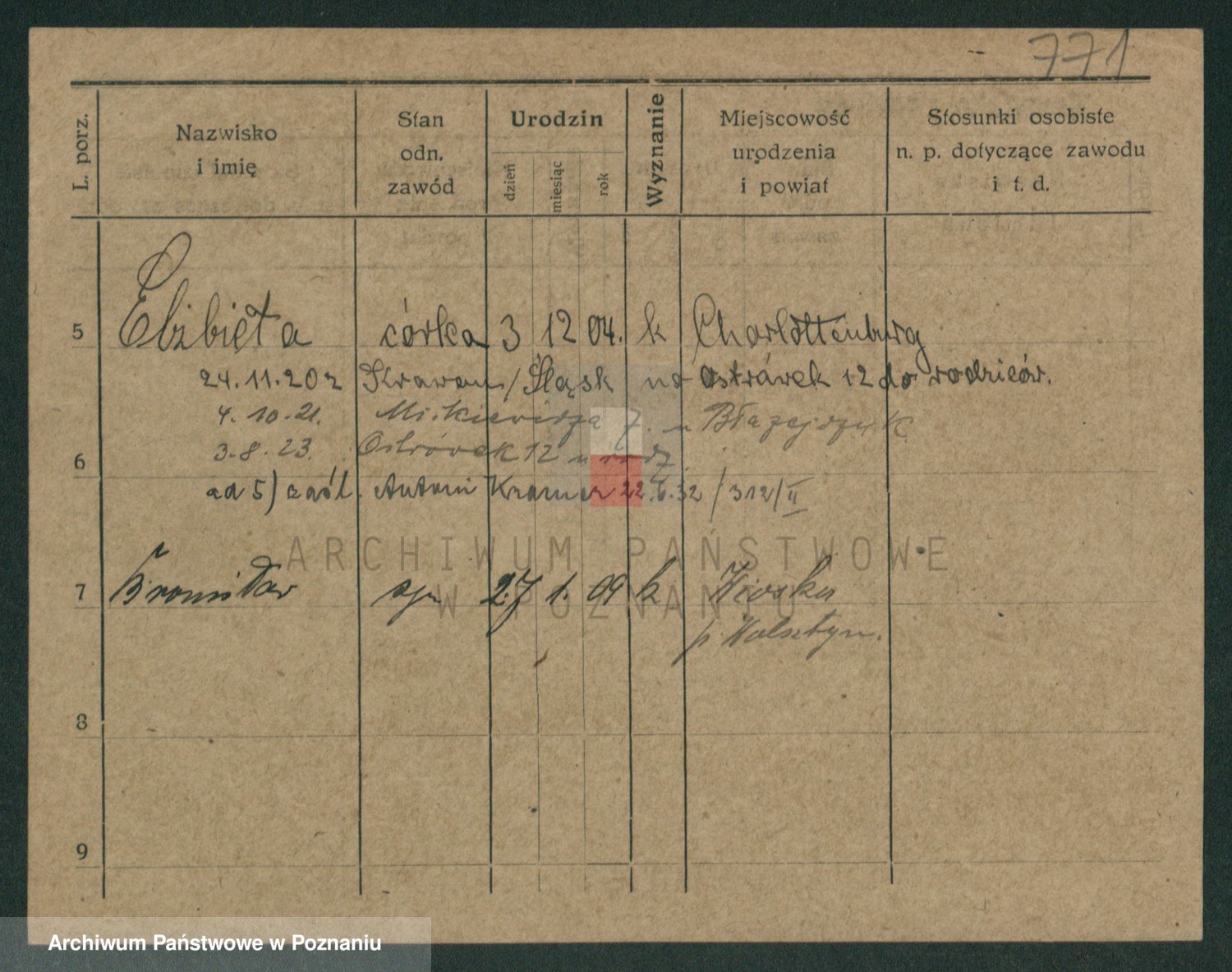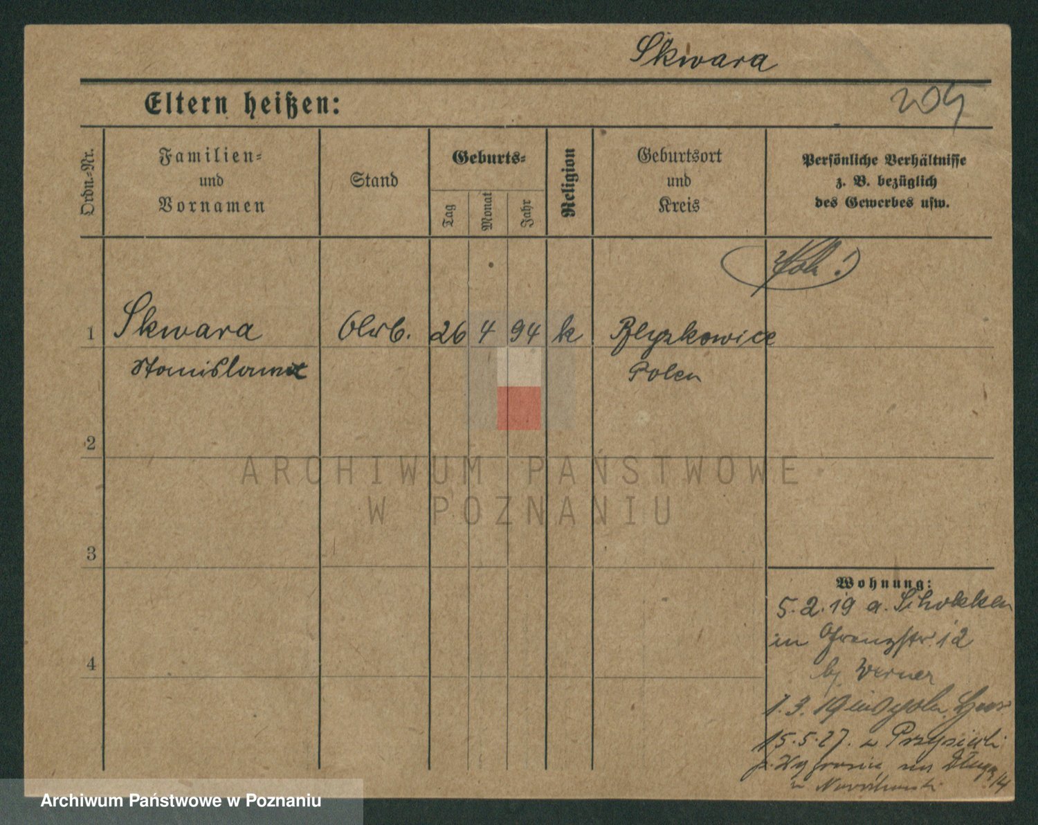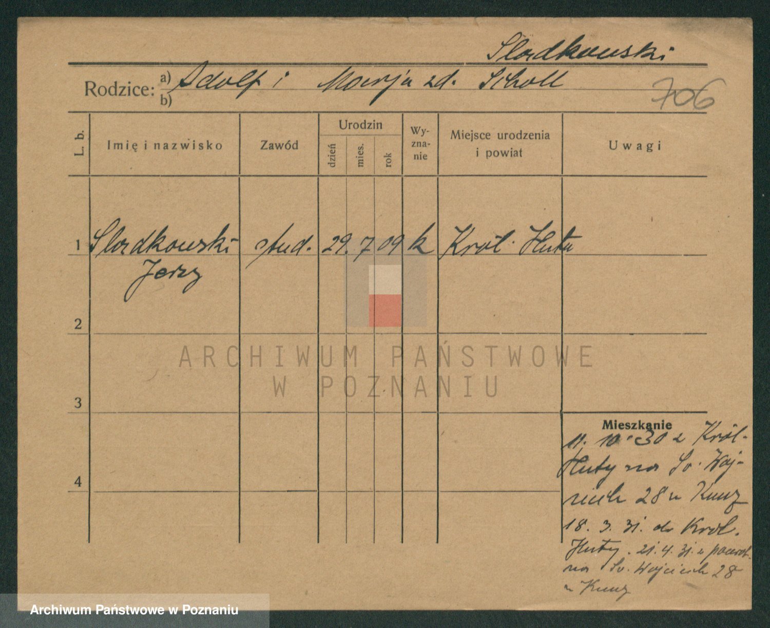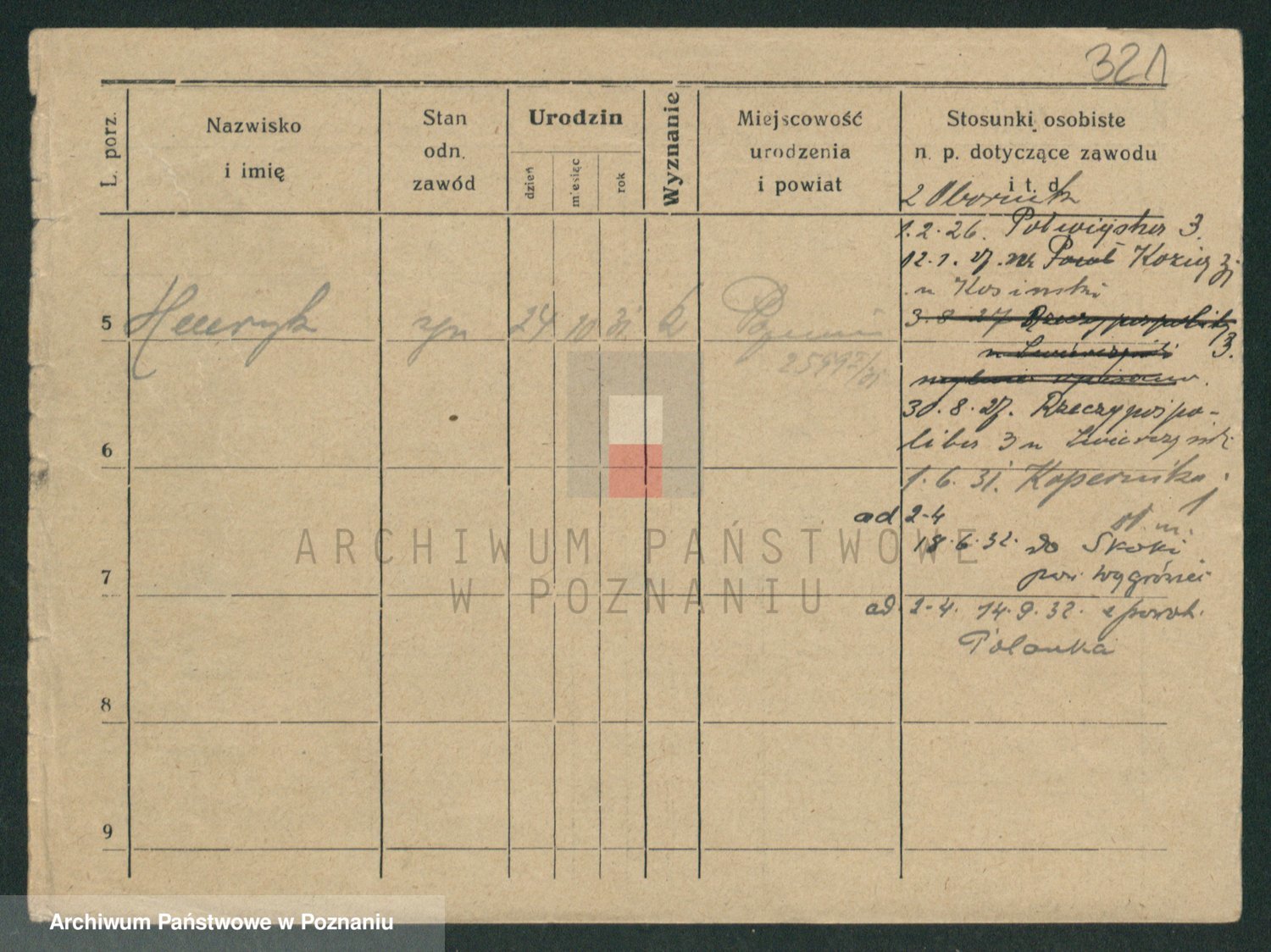 Podgląd karty osobowej dostępny jest po kliknięciu na nazwisko lub ikonkę karty. Można dokonywać powiększenia (ikony na górze) lub przechodzić między kolejnymi skanami (strzałki po bokach).