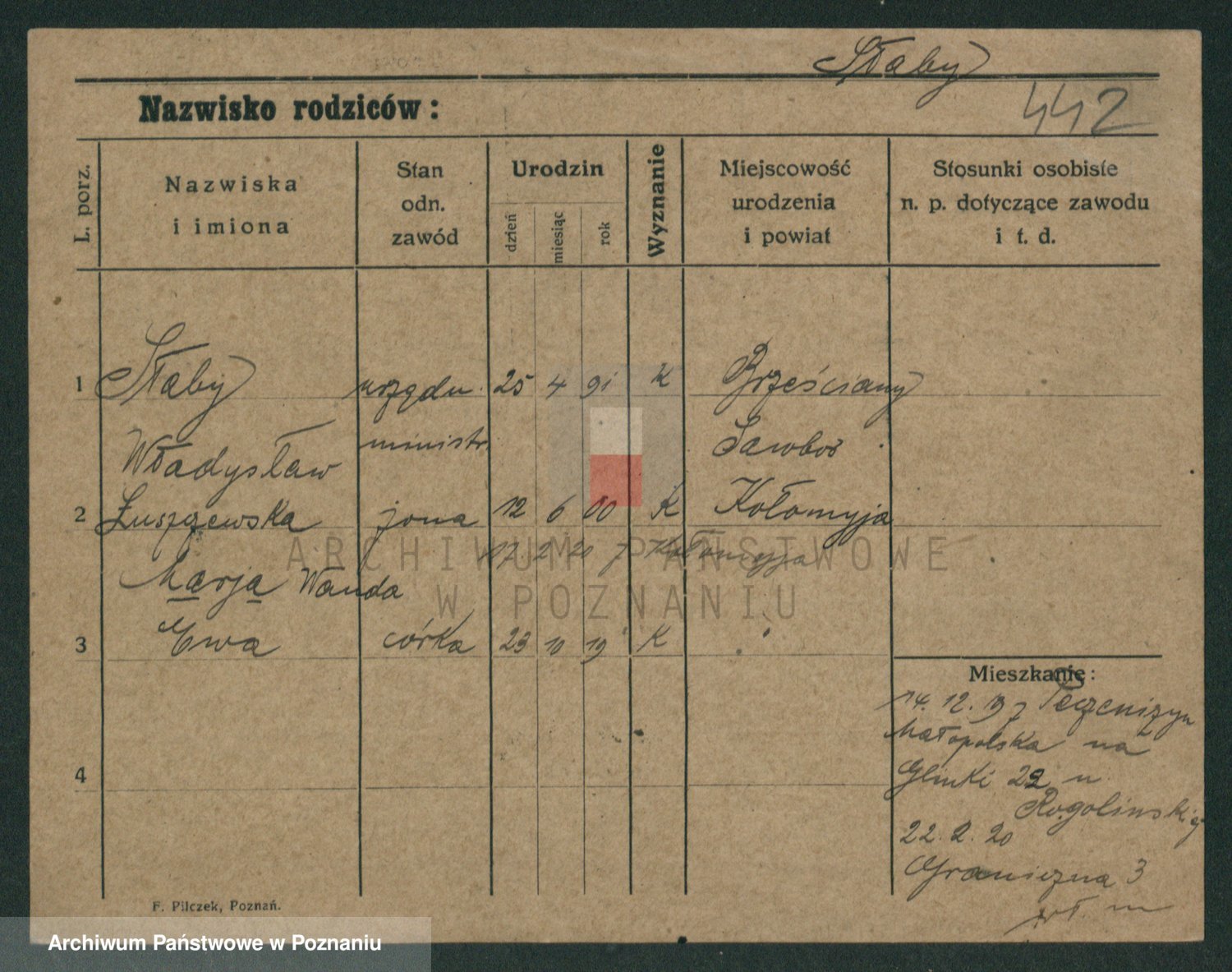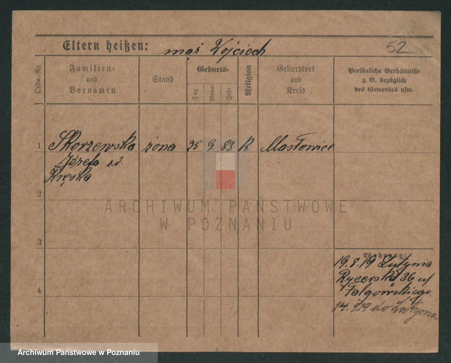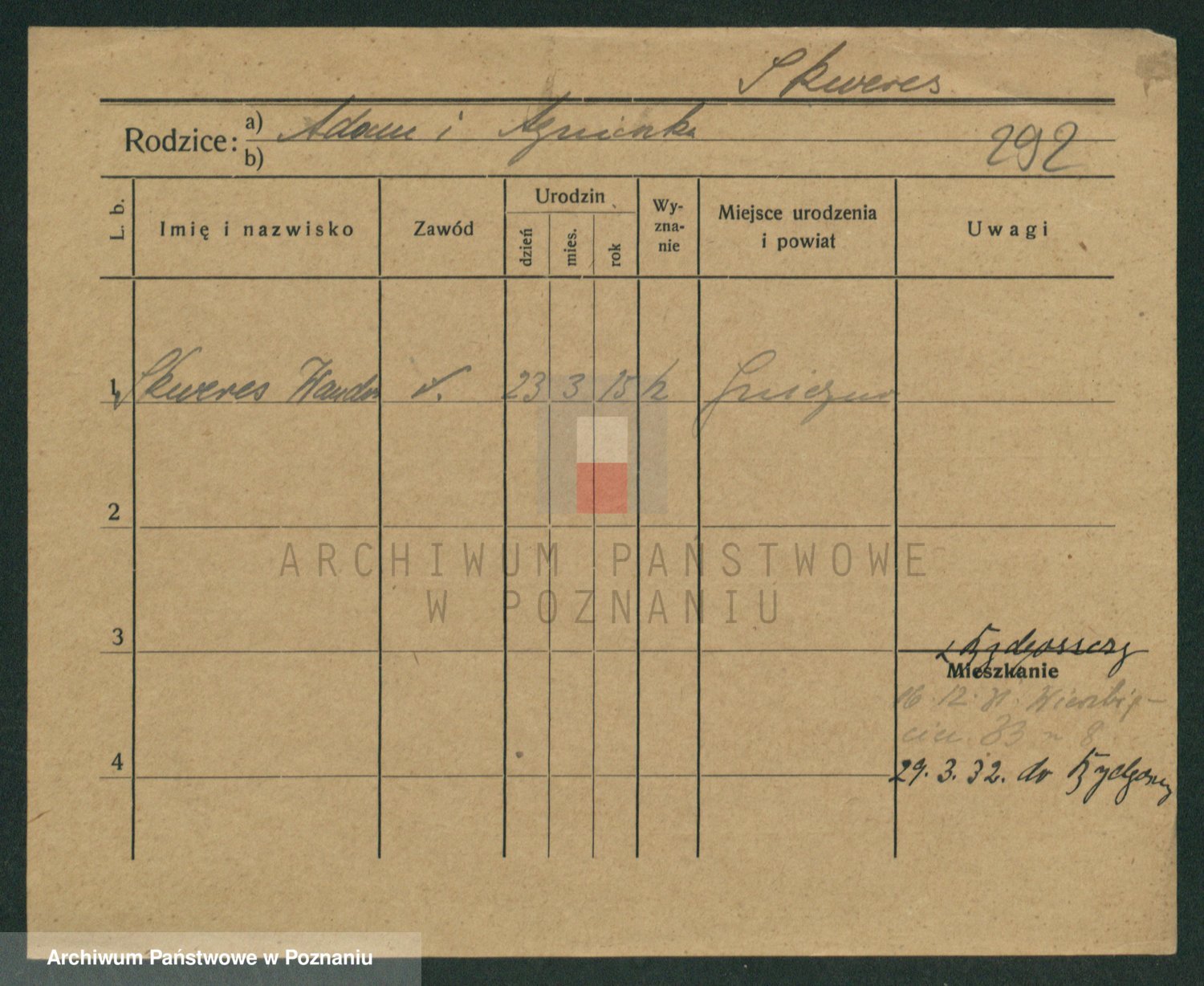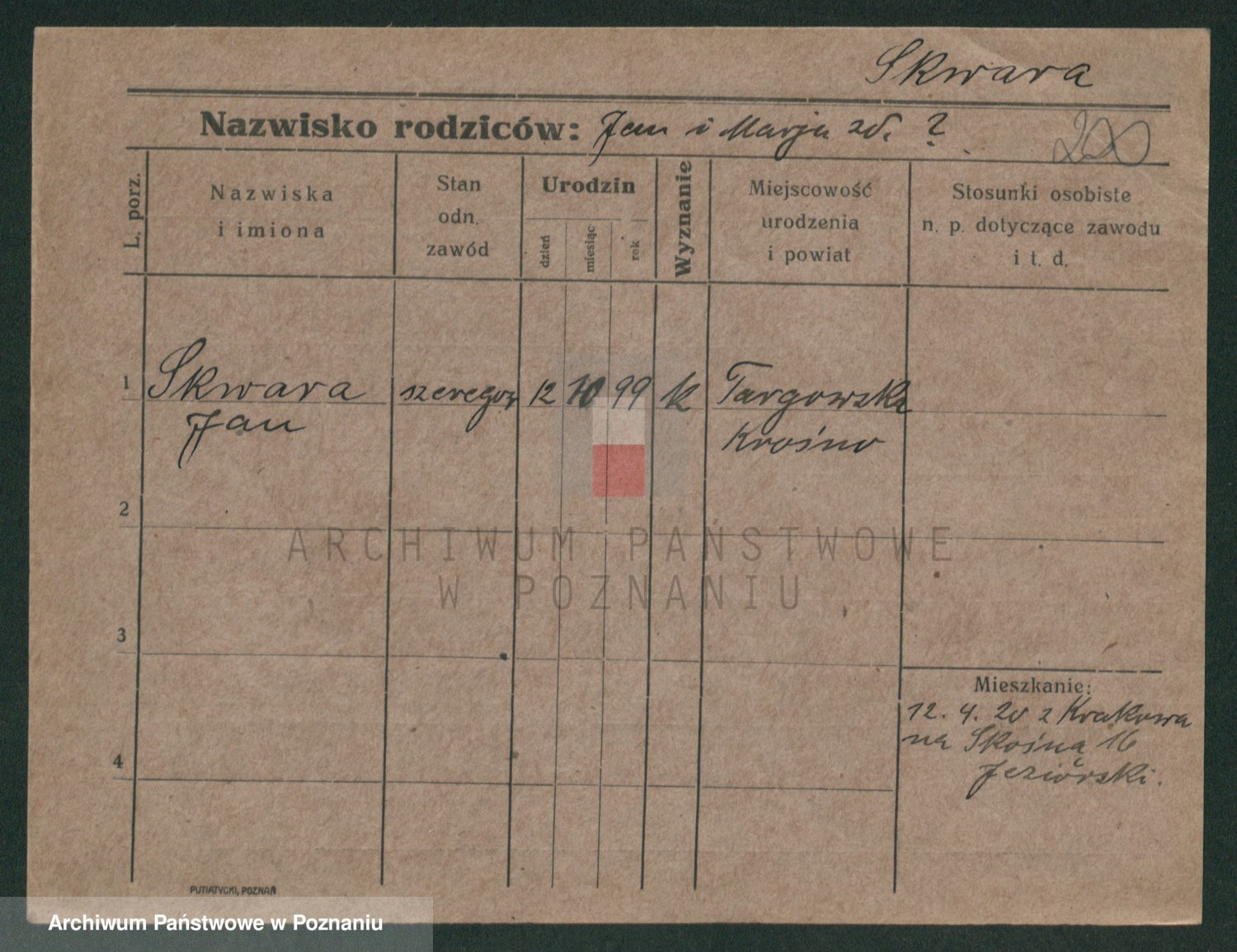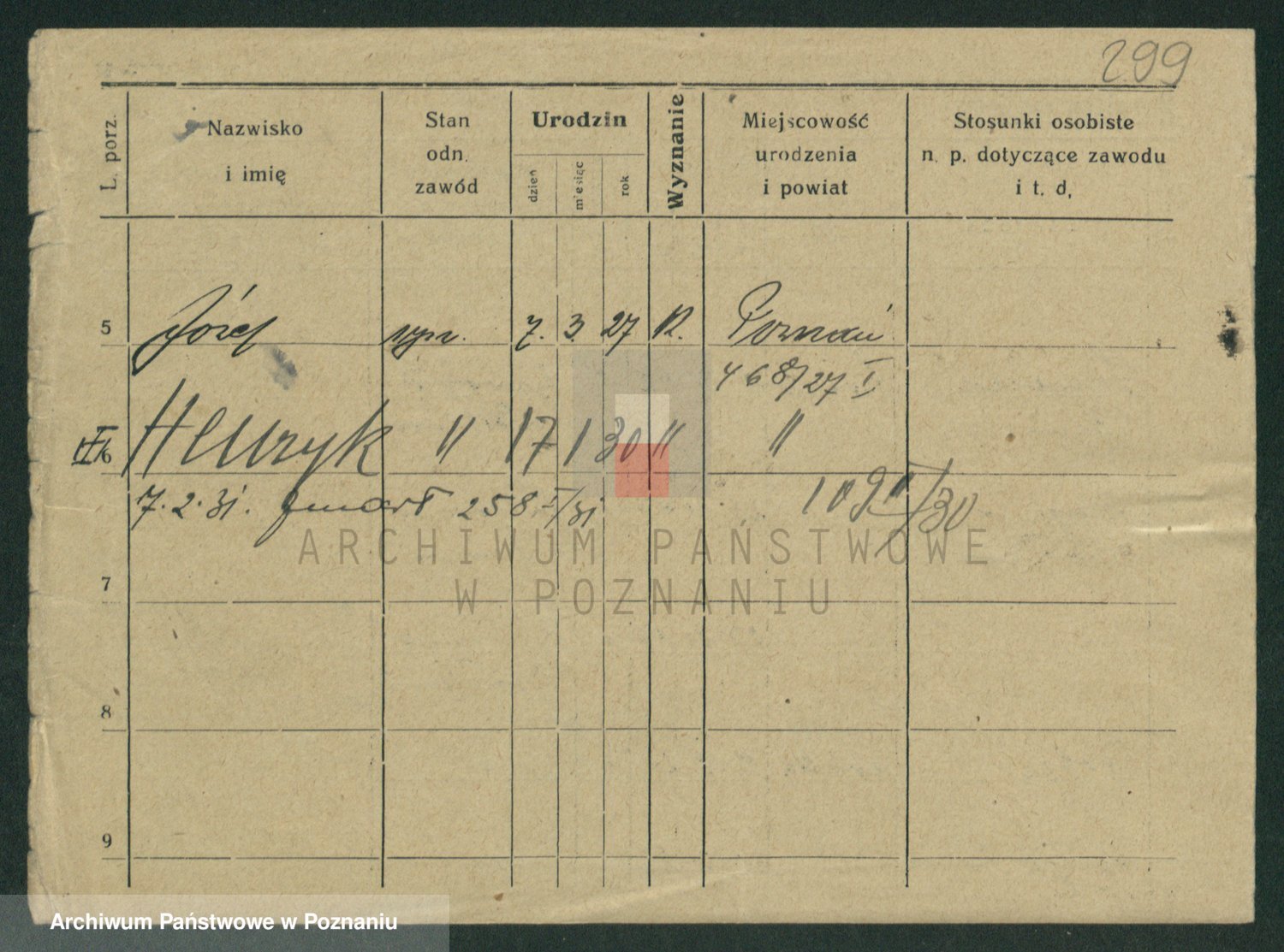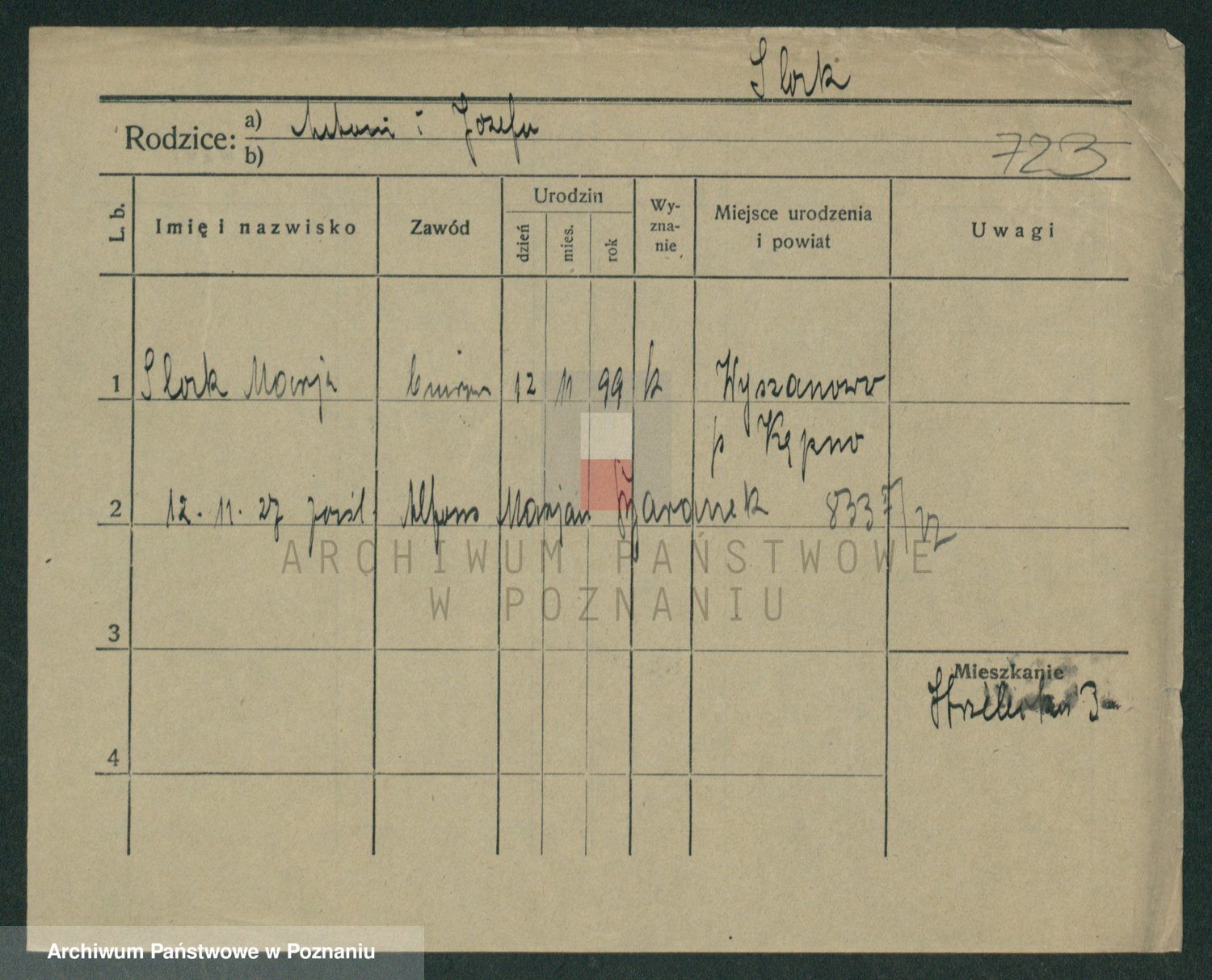 Podgląd karty osobowej dostępny jest po kliknięciu na nazwisko lub ikonkę karty. Można dokonywać powiększenia (ikony na górze) lub przechodzić między kolejnymi skanami (strzałki po bokach).