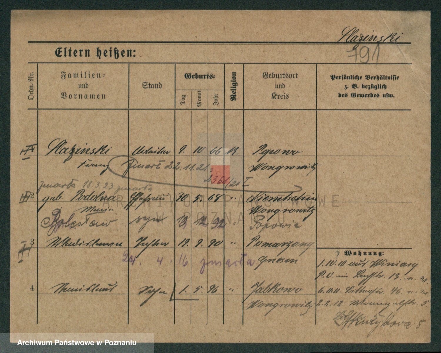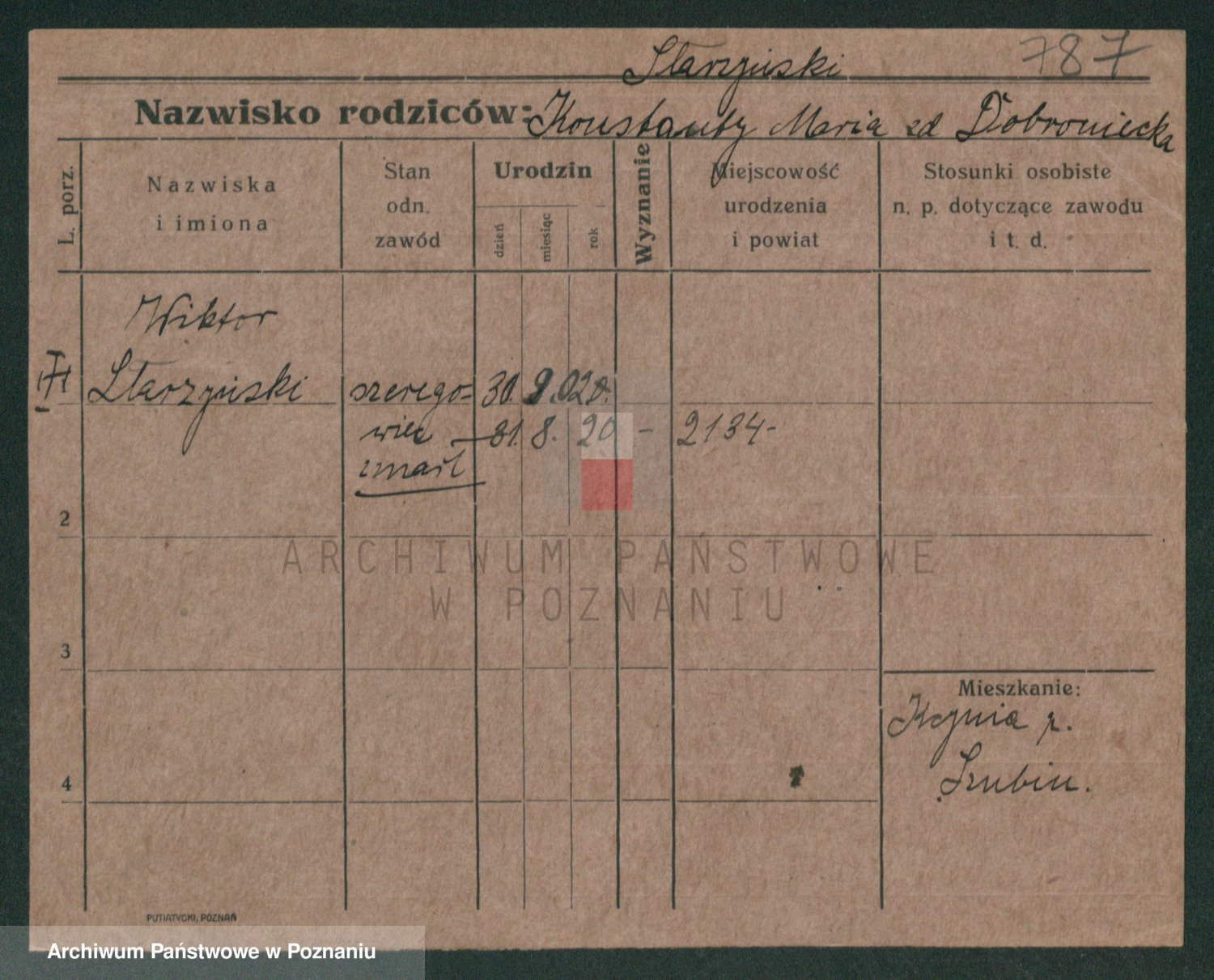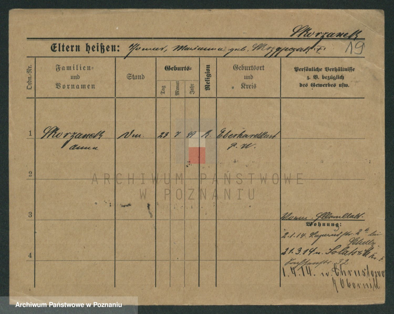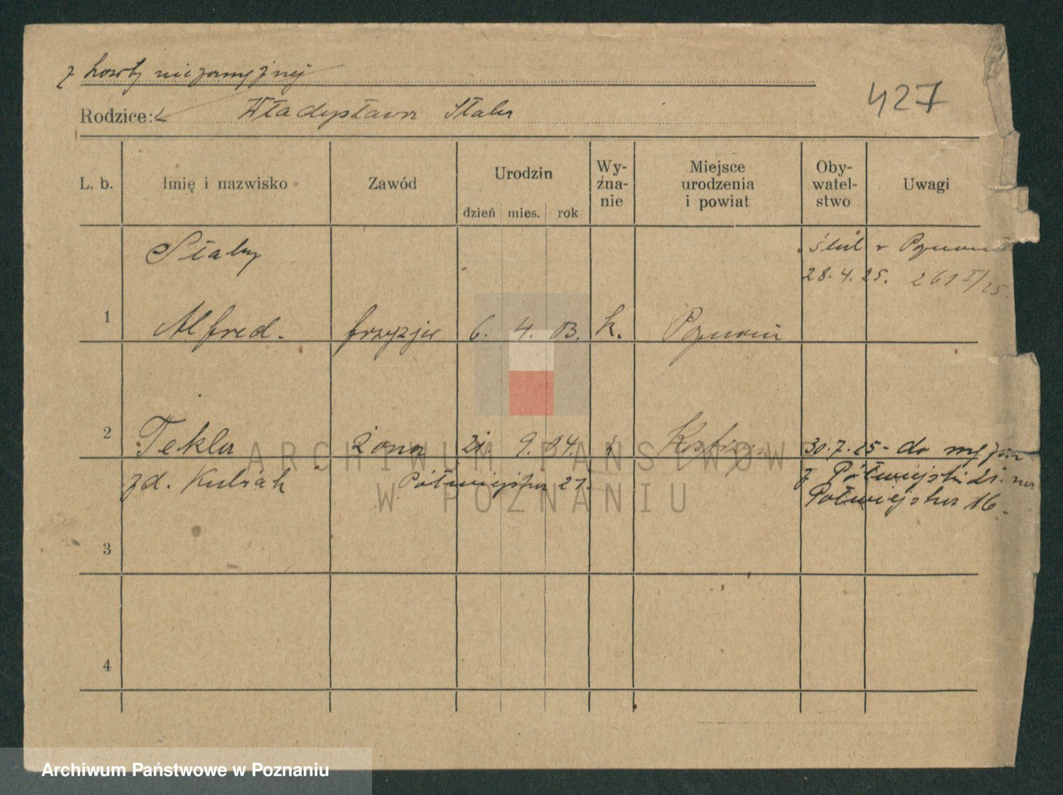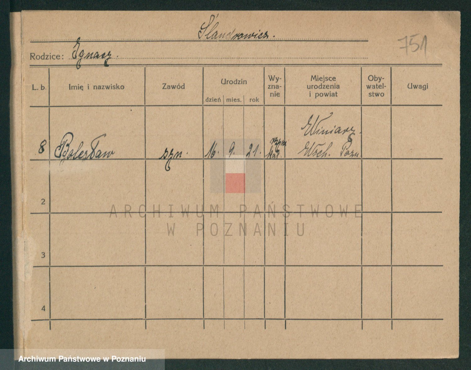 Podgląd karty osobowej dostępny jest po kliknięciu na nazwisko lub ikonkę karty. Można dokonywać powiększenia (ikony na górze) lub przechodzić między kolejnymi skanami (strzałki po bokach).