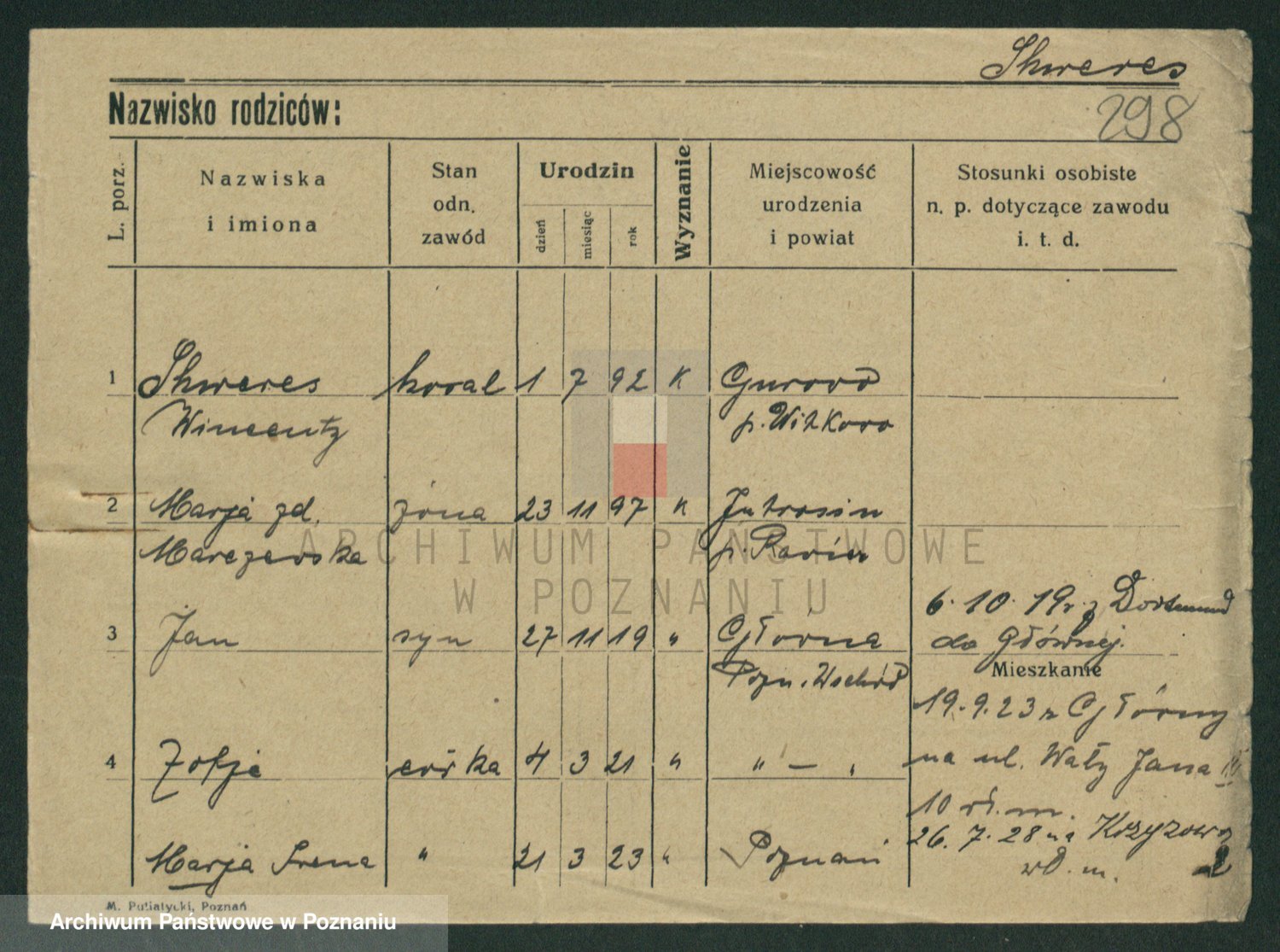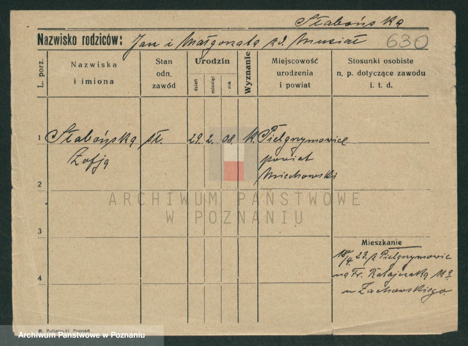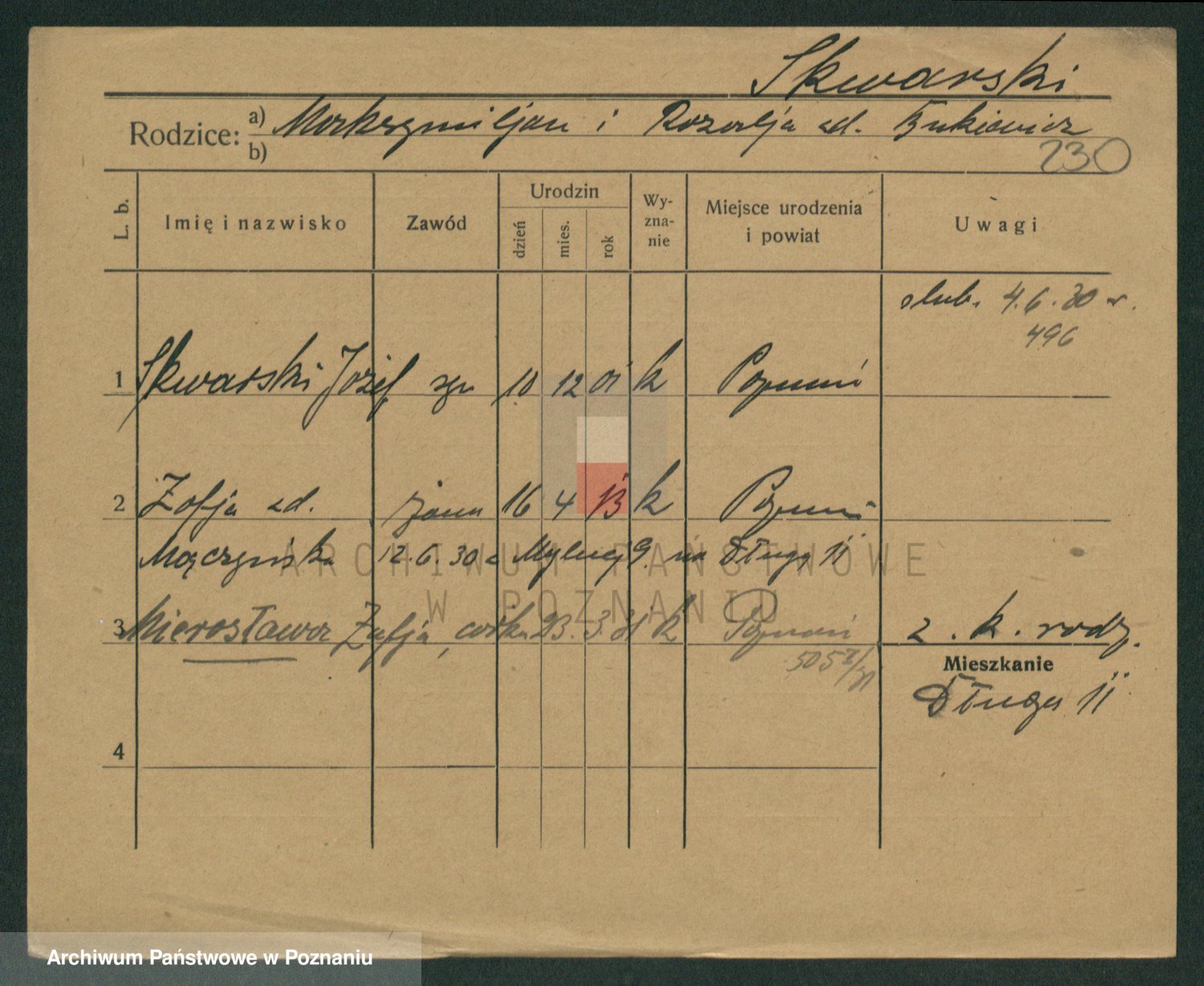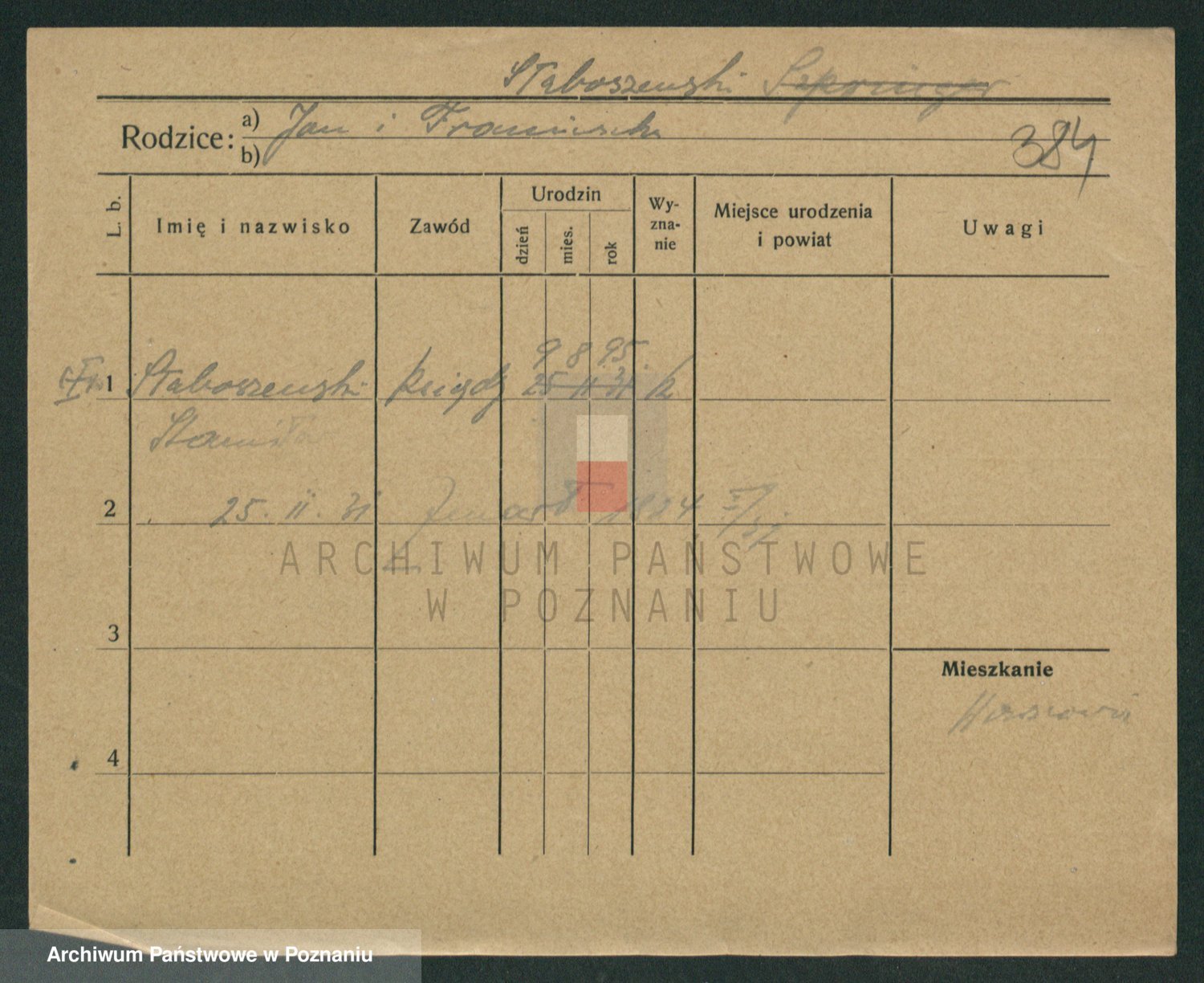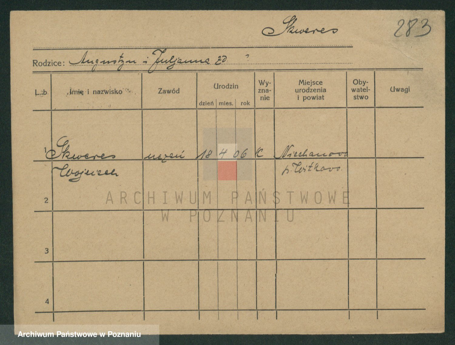 Podgląd karty osobowej dostępny jest po kliknięciu na nazwisko lub ikonkę karty. Można dokonywać powiększenia (ikony na górze) lub przechodzić między kolejnymi skanami (strzałki po bokach).