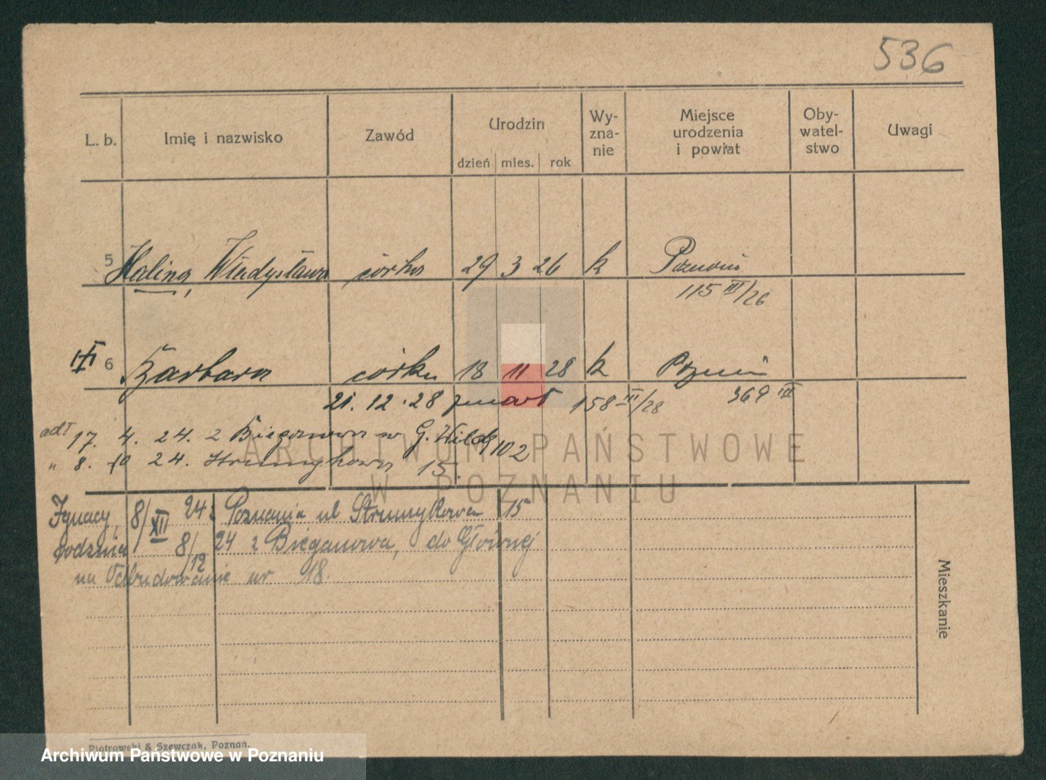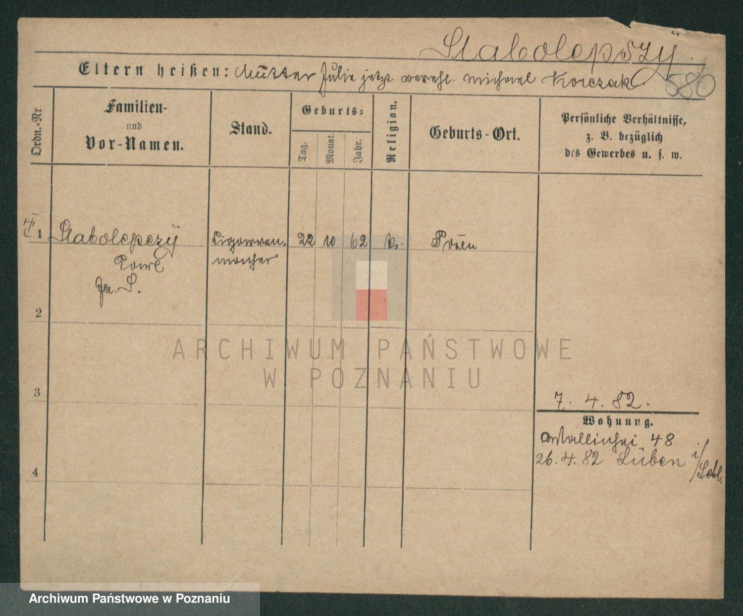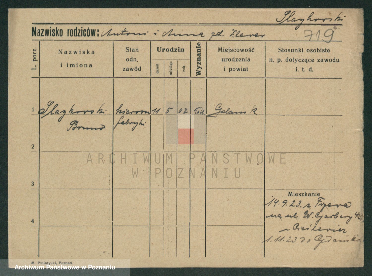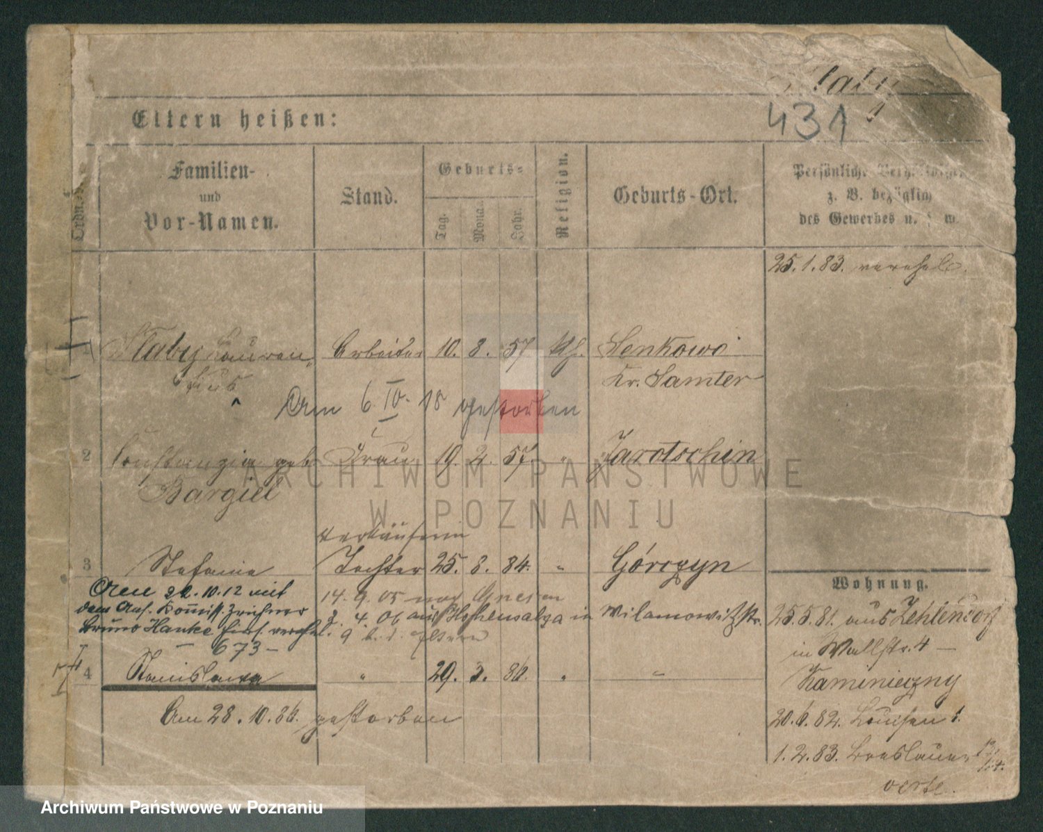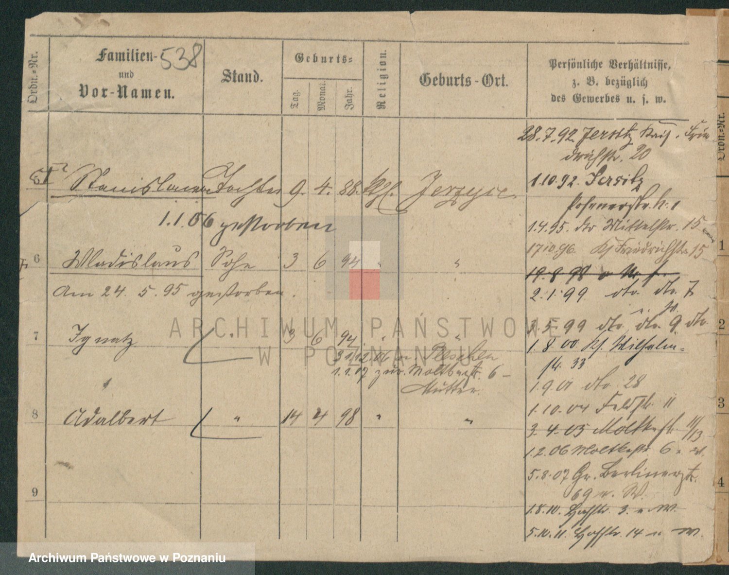Podgląd karty osobowej dostępny jest po kliknięciu na nazwisko lub ikonkę karty. Można dokonywać powiększenia (ikony na górze) lub przechodzić między kolejnymi skanami (strzałki po bokach).