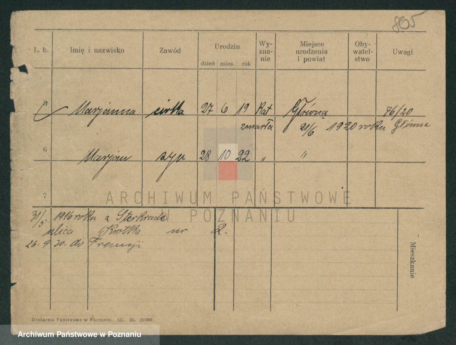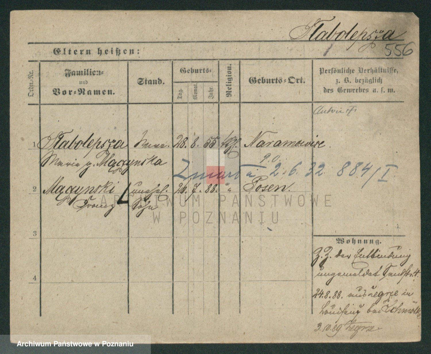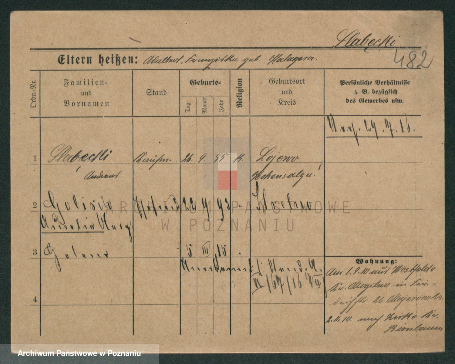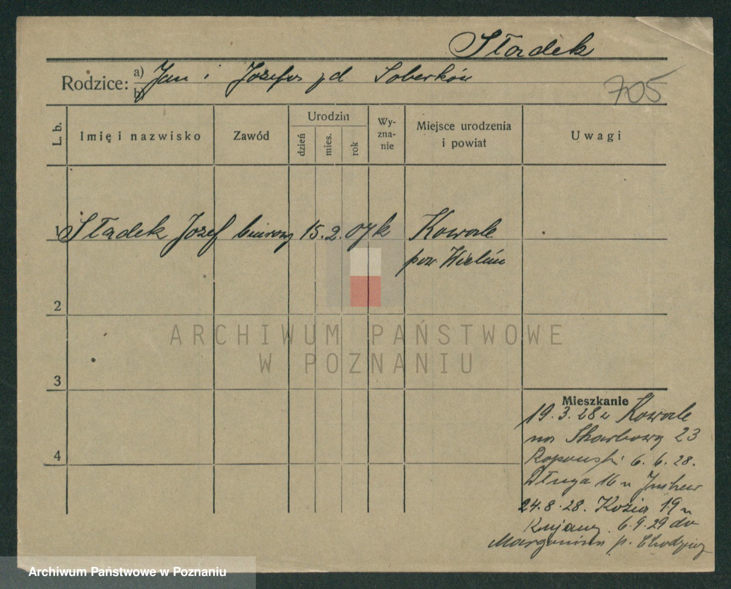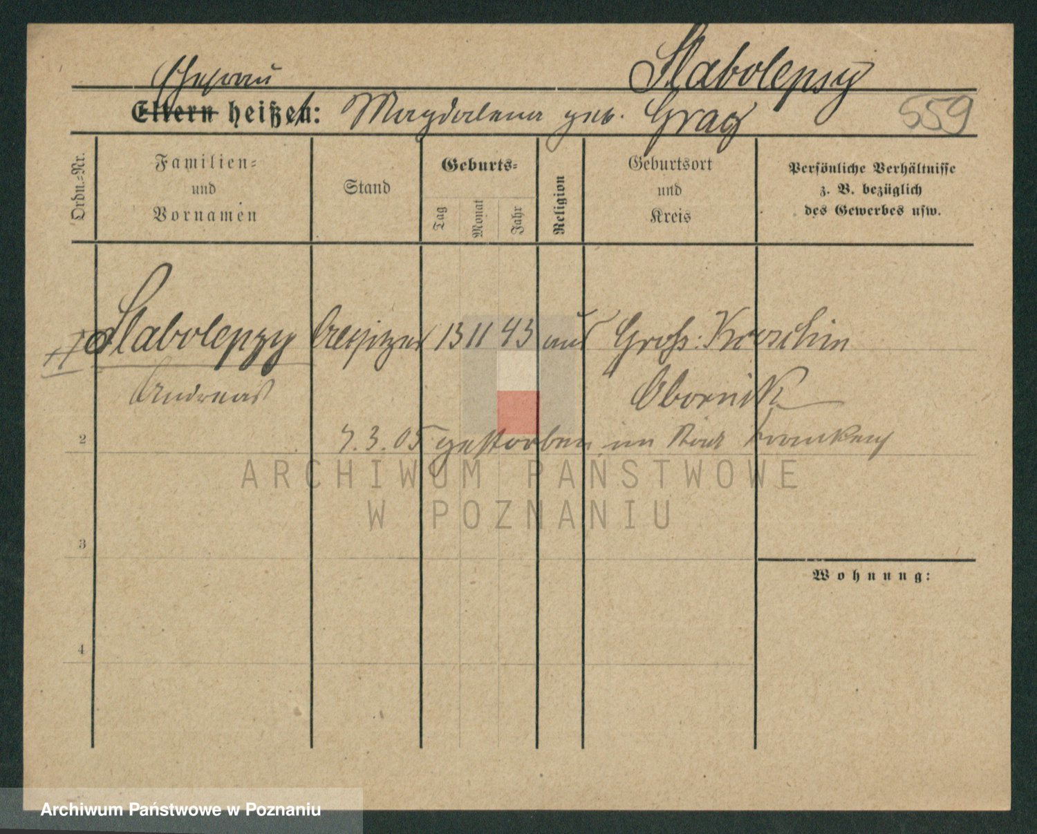 Podgląd karty osobowej dostępny jest po kliknięciu na nazwisko lub ikonkę karty. Można dokonywać powiększenia (ikony na górze) lub przechodzić między kolejnymi skanami (strzałki po bokach).