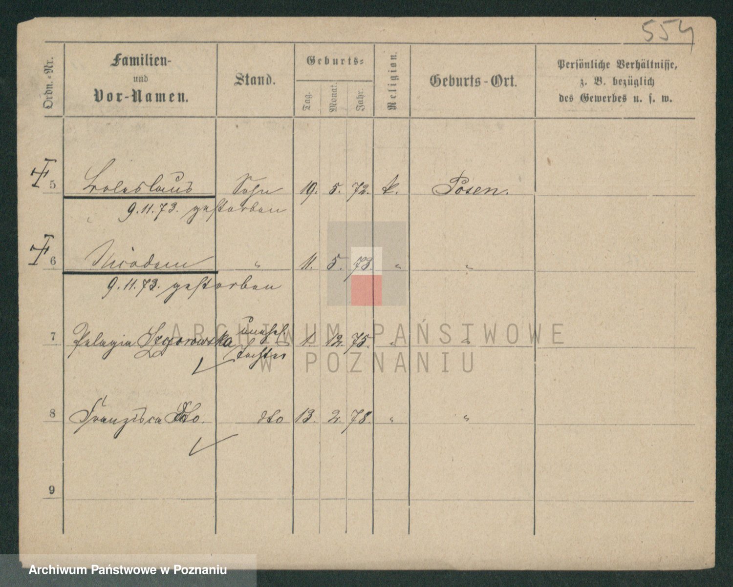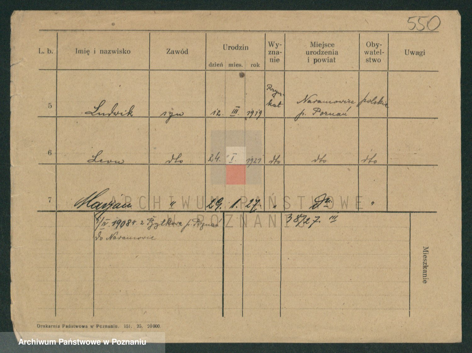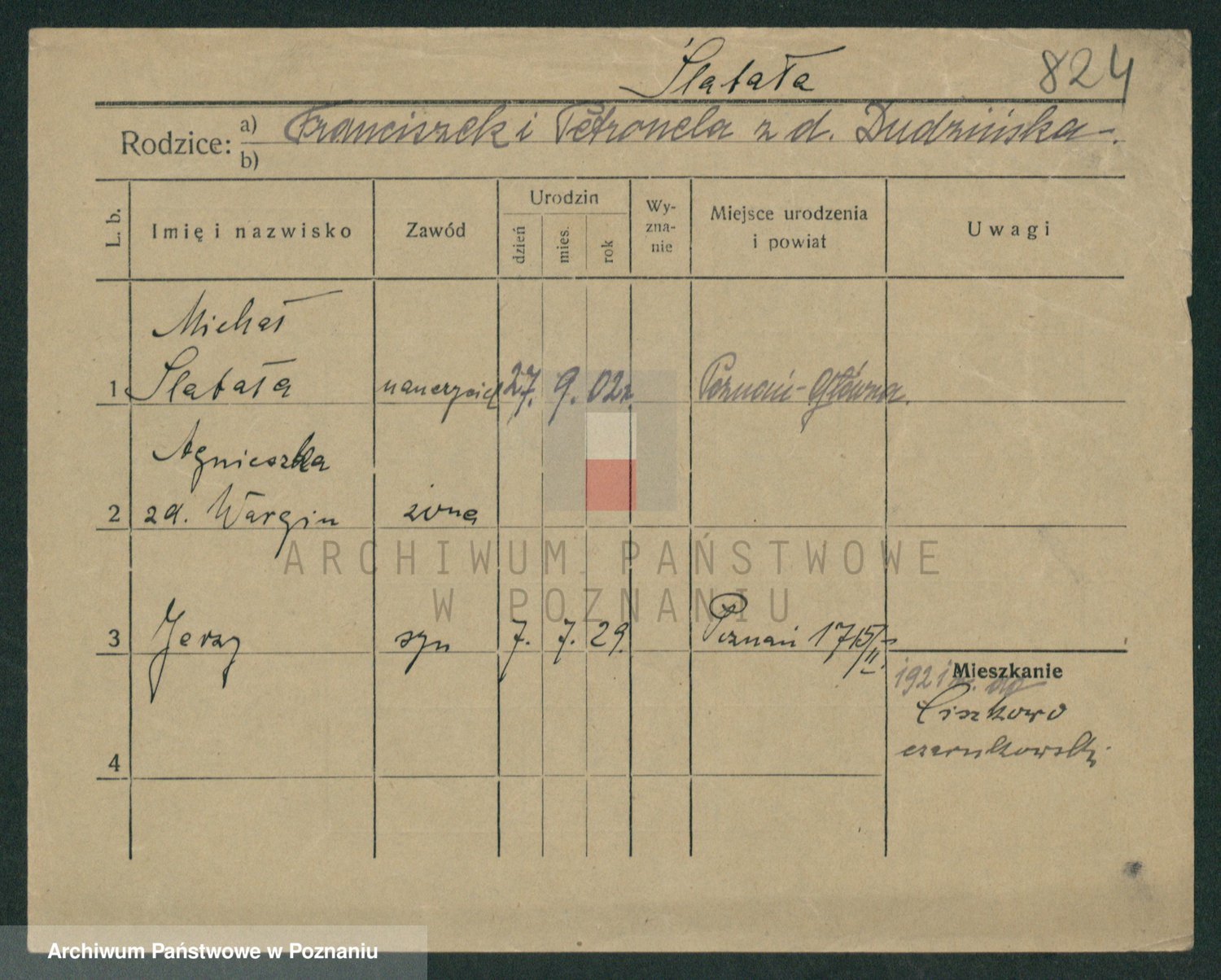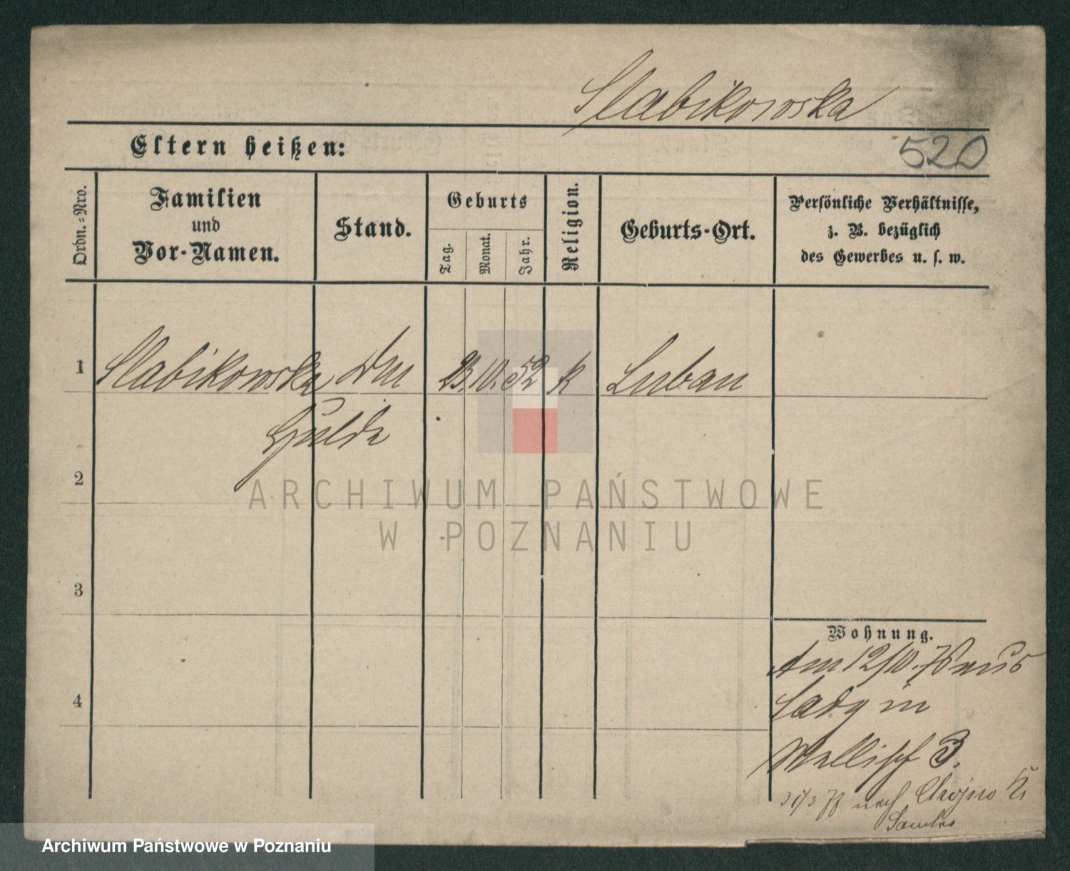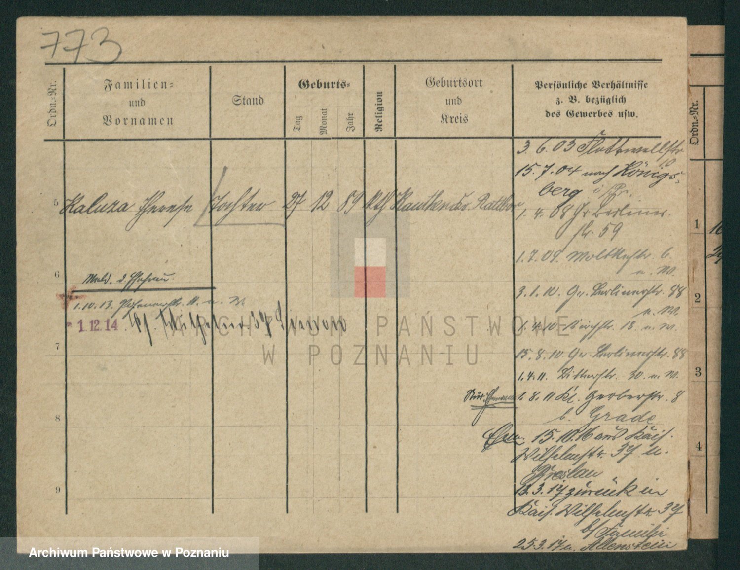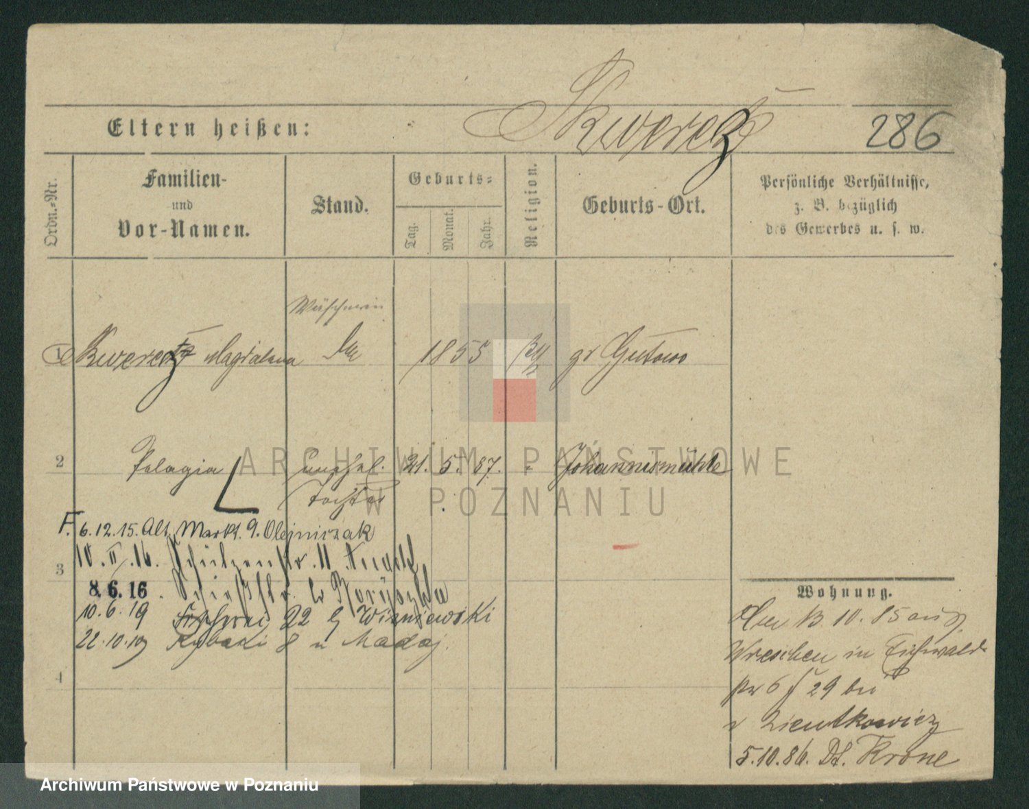 Podgląd karty osobowej dostępny jest po kliknięciu na nazwisko lub ikonkę karty. Można dokonywać powiększenia (ikony na górze) lub przechodzić między kolejnymi skanami (strzałki po bokach).