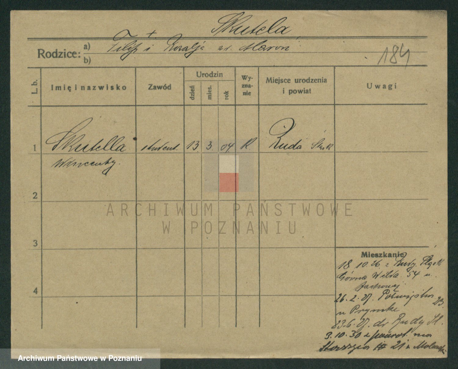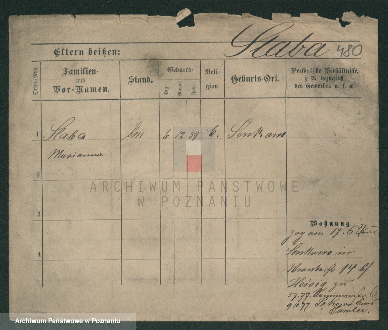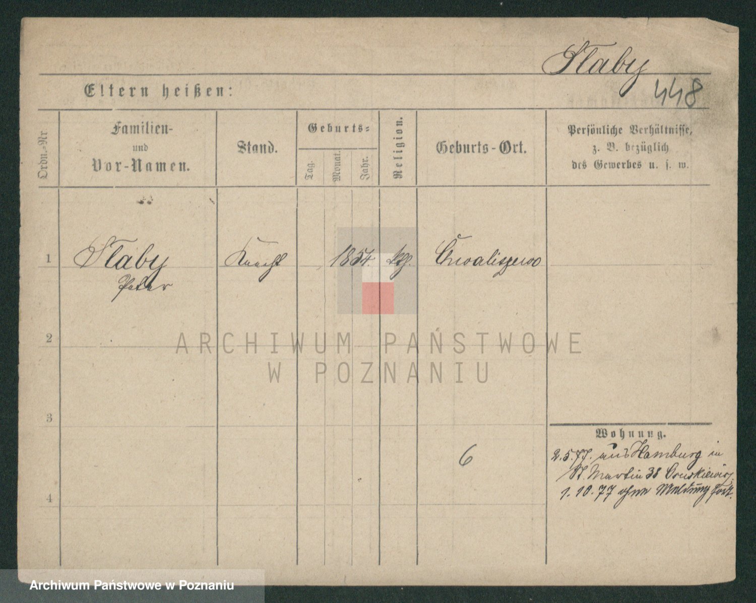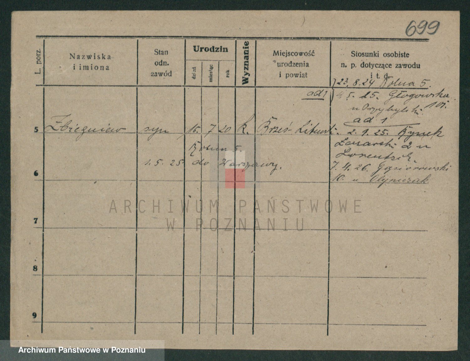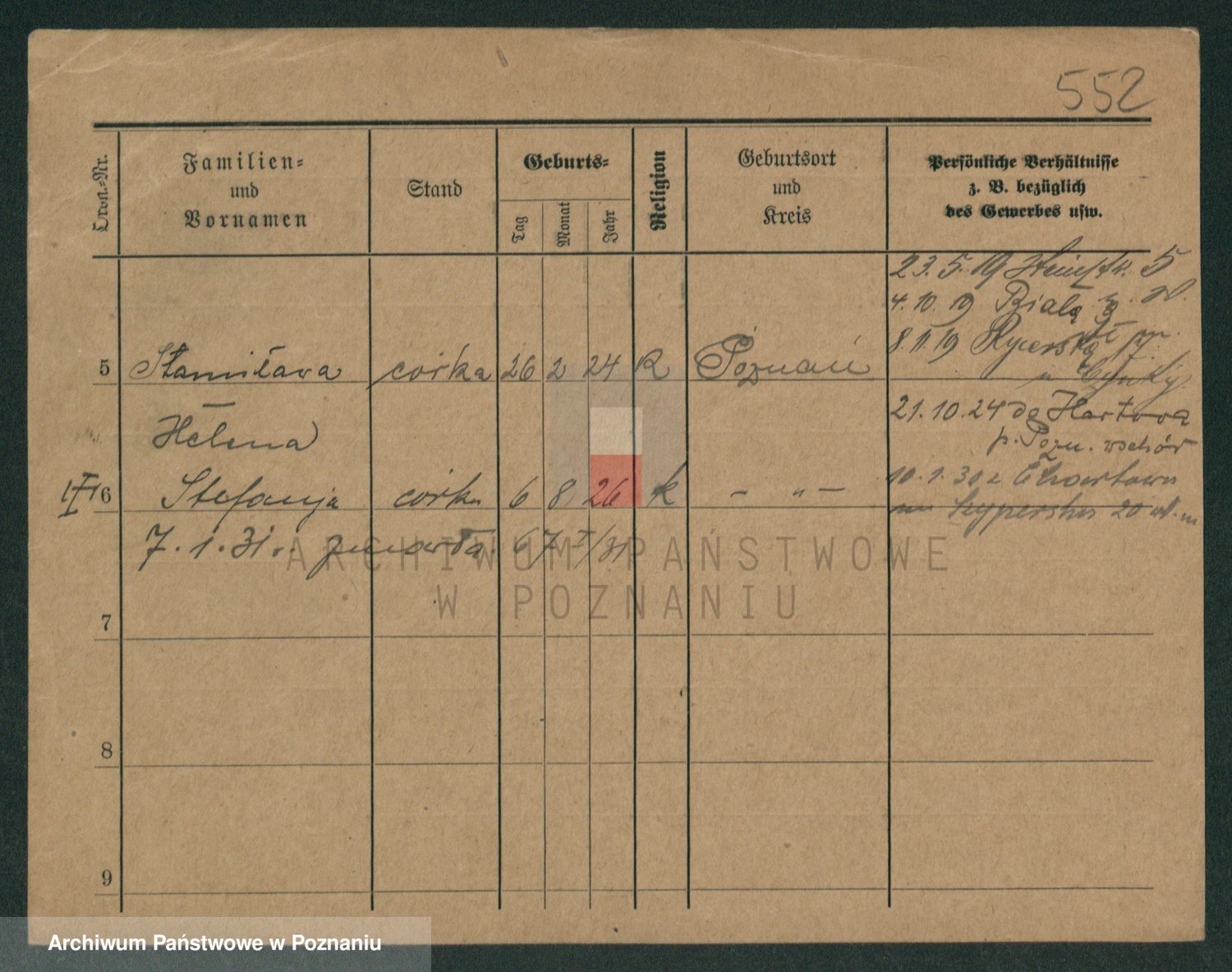Podgląd karty osobowej dostępny jest po kliknięciu na nazwisko lub ikonkę karty. Można dokonywać powiększenia (ikony na górze) lub przechodzić między kolejnymi skanami (strzałki po bokach).