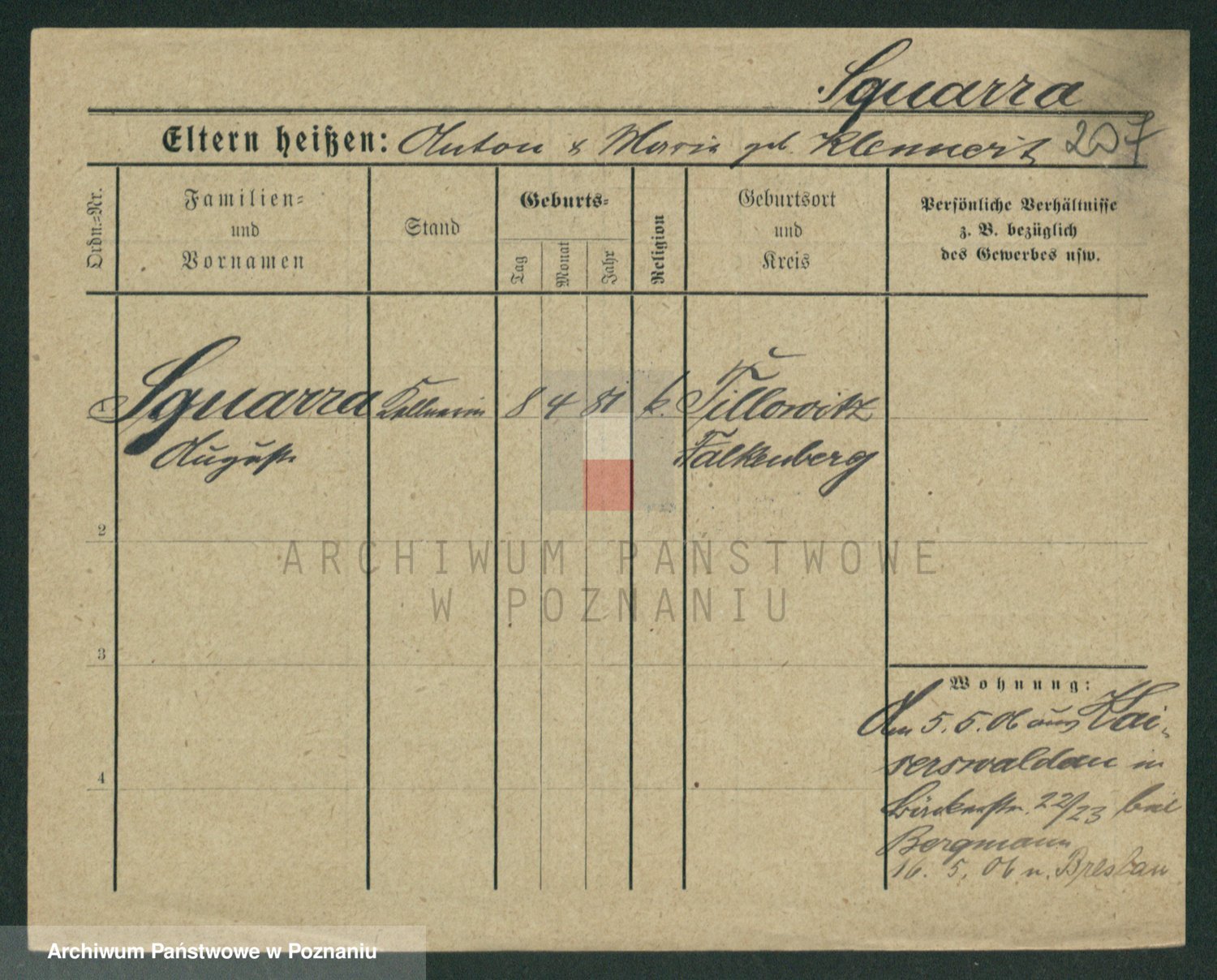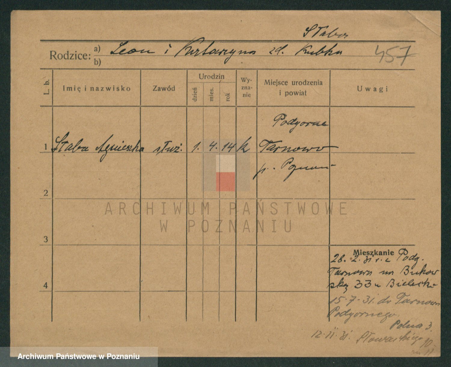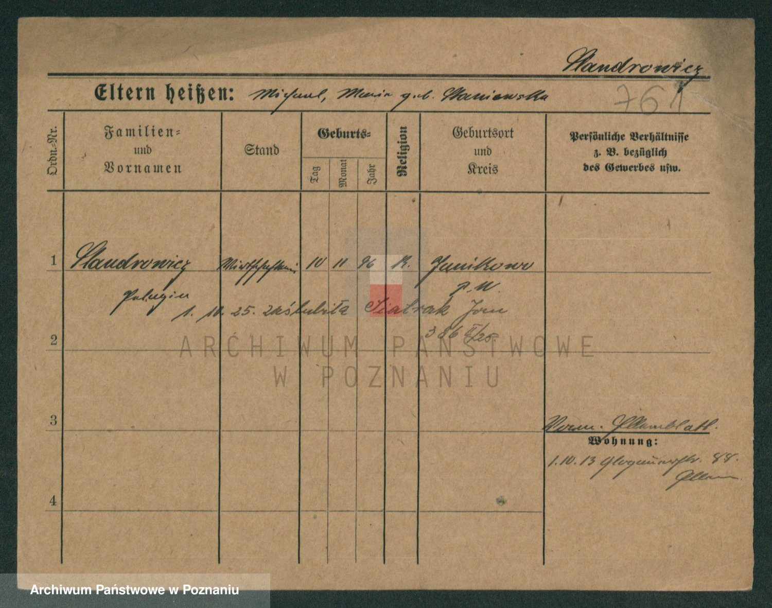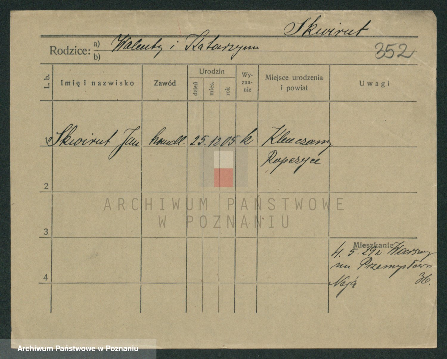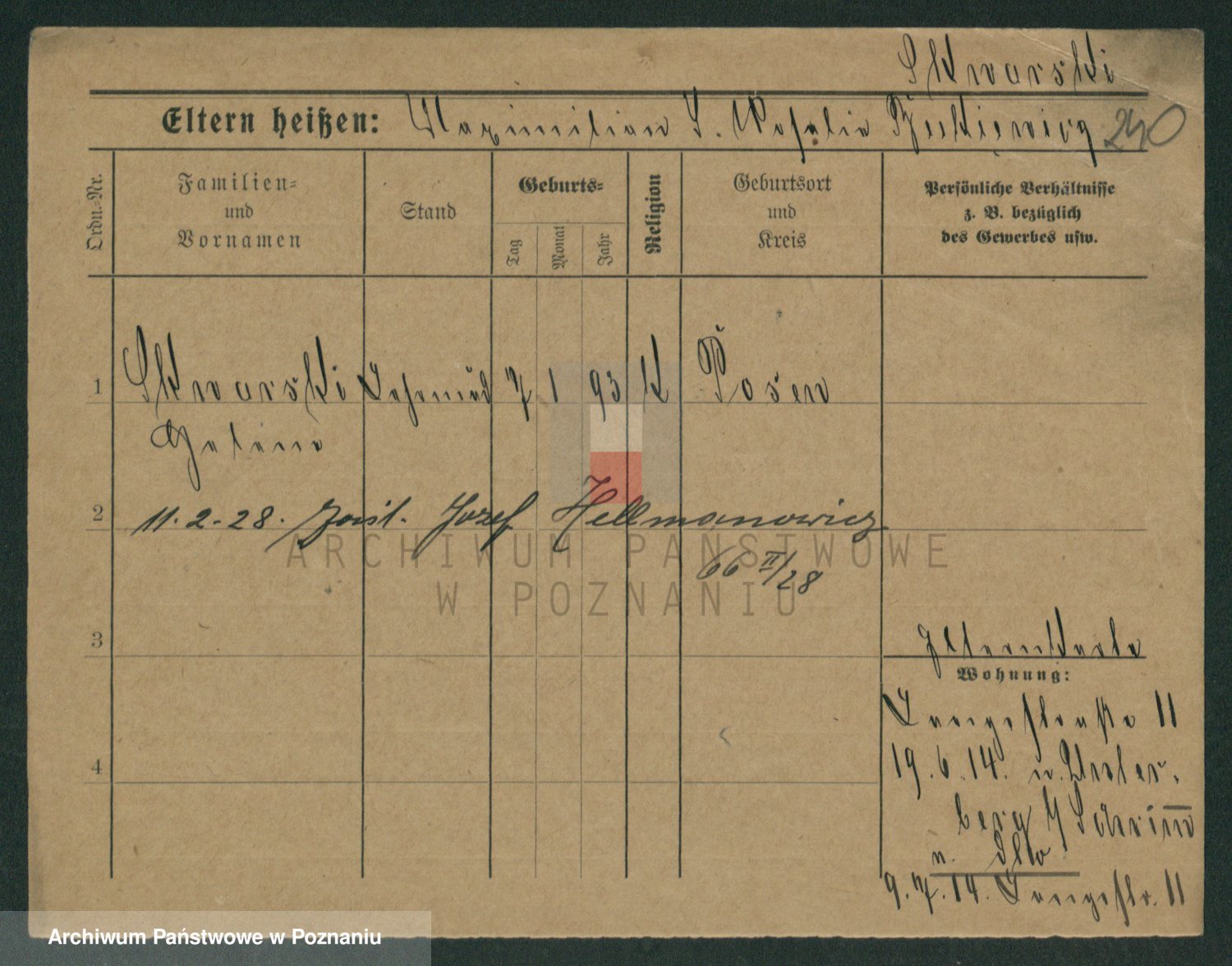 Podgląd karty osobowej dostępny jest po kliknięciu na nazwisko lub ikonkę karty. Można dokonywać powiększenia (ikony na górze) lub przechodzić między kolejnymi skanami (strzałki po bokach).