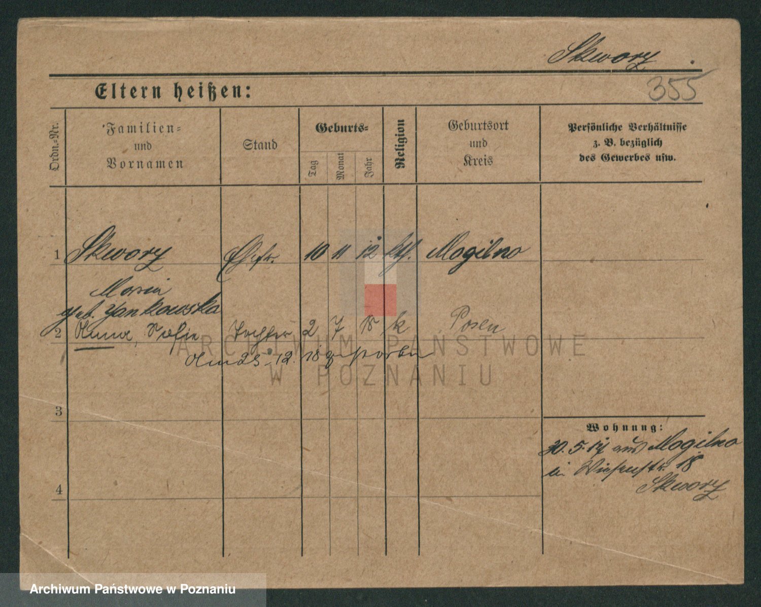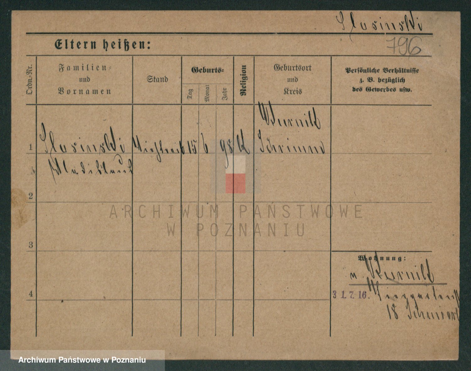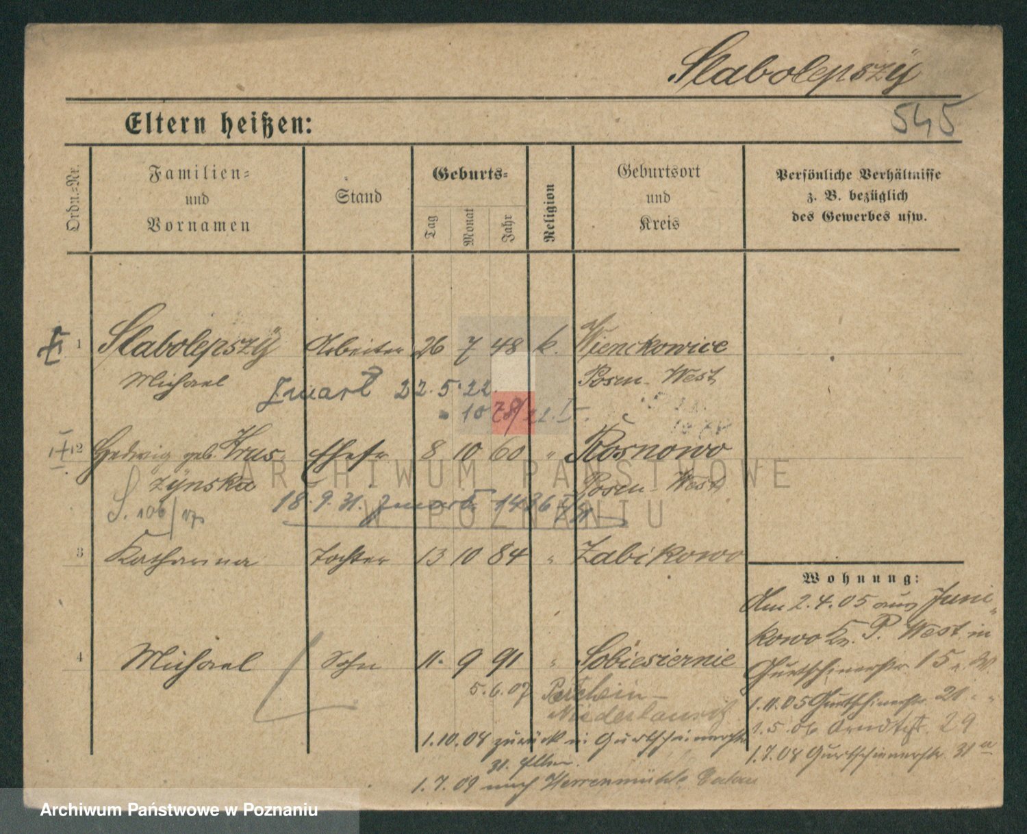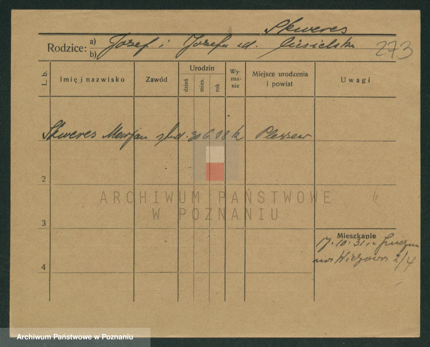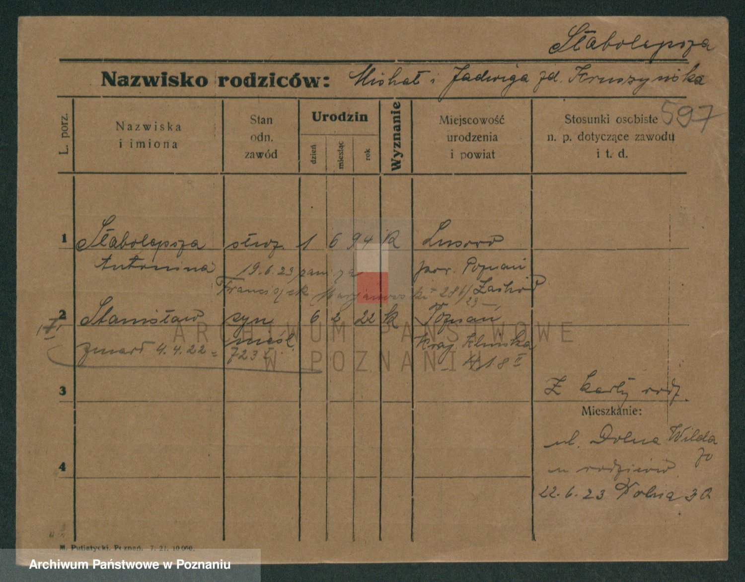 Podgląd karty osobowej dostępny jest po kliknięciu na nazwisko lub ikonkę karty. Można dokonywać powiększenia (ikony na górze) lub przechodzić między kolejnymi skanami (strzałki po bokach).
