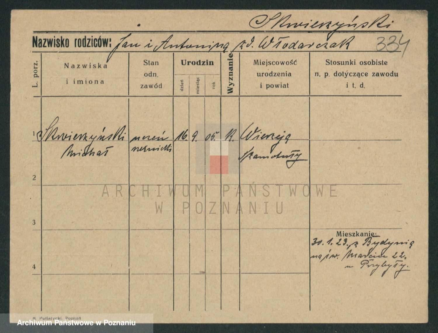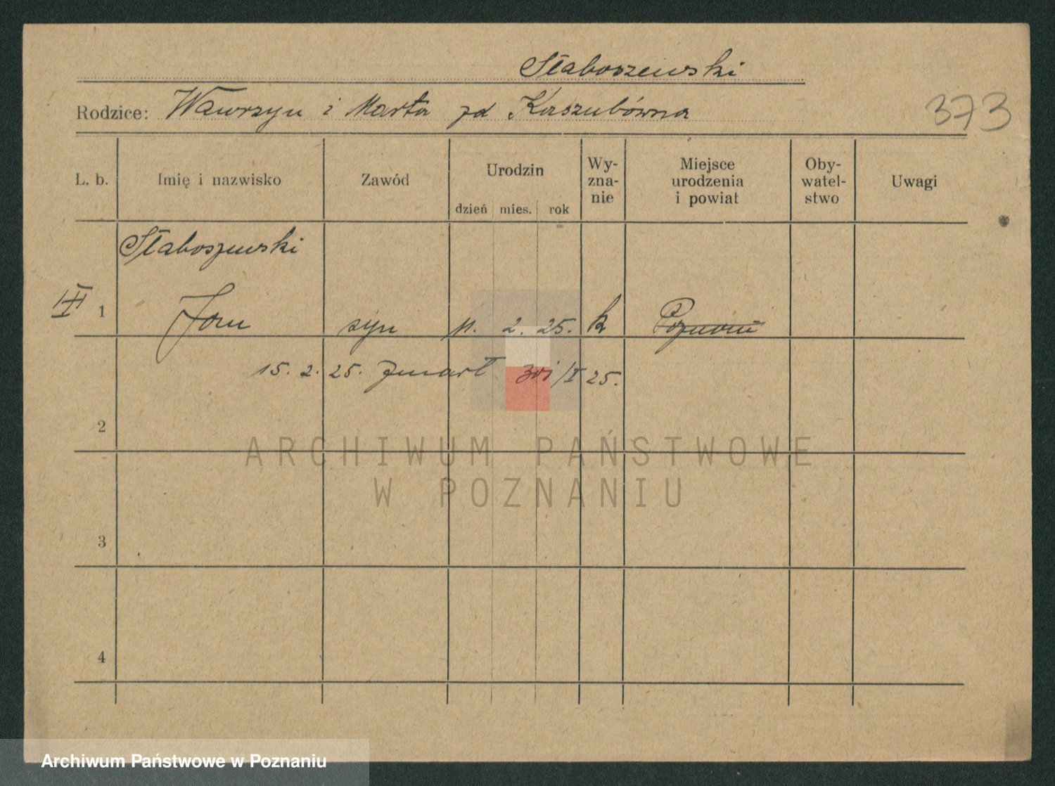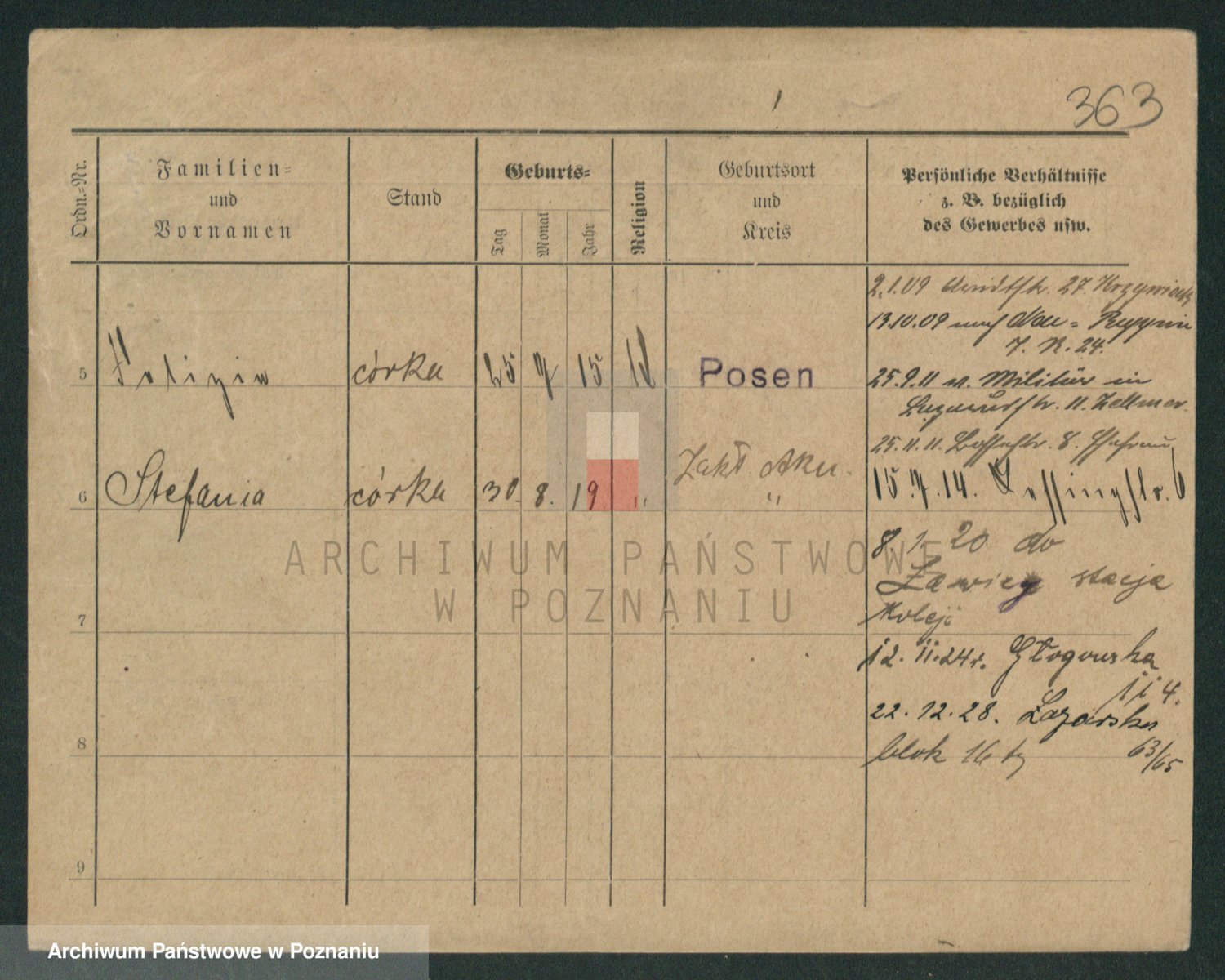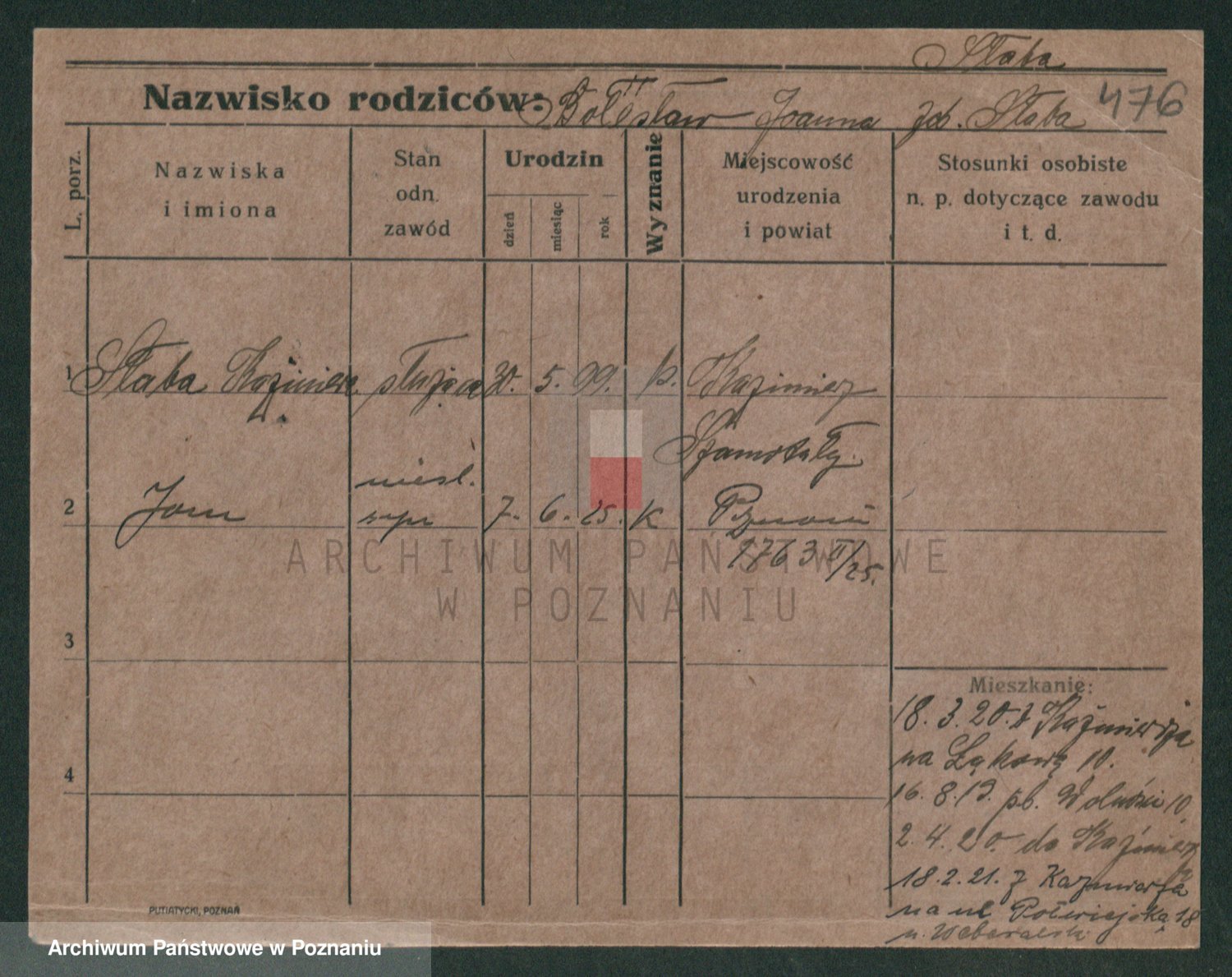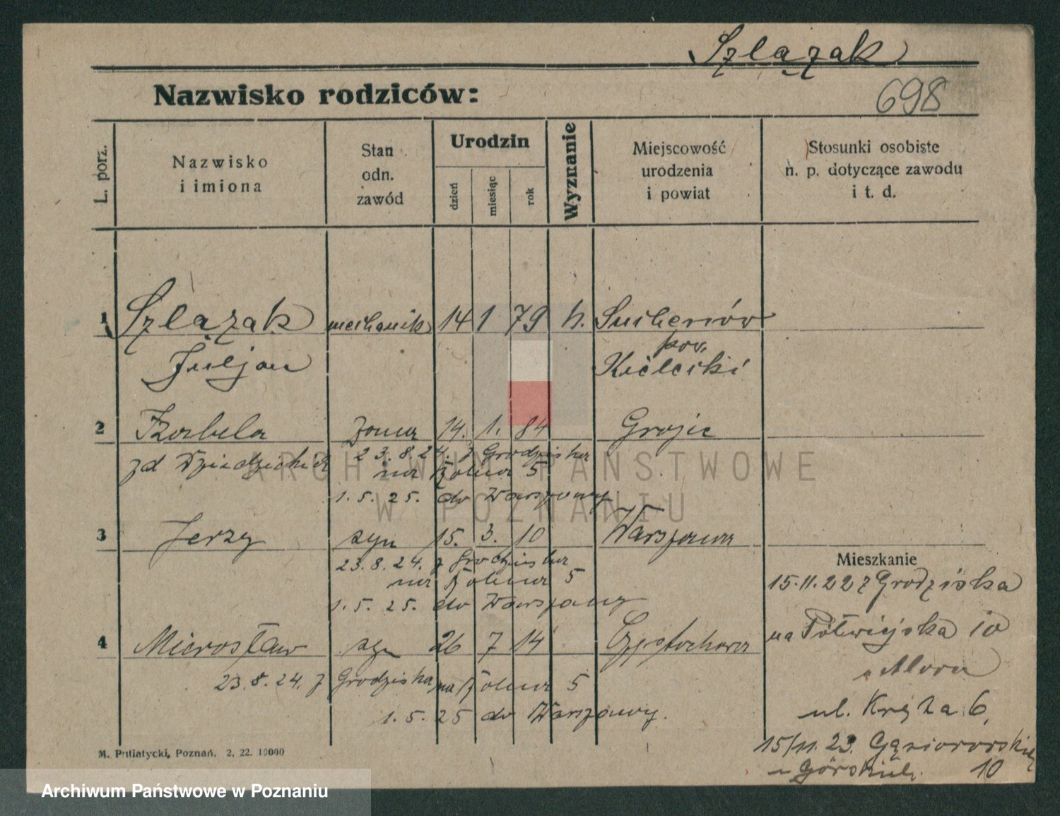 Podgląd karty osobowej dostępny jest po kliknięciu na nazwisko lub ikonkę karty. Można dokonywać powiększenia (ikony na górze) lub przechodzić między kolejnymi skanami (strzałki po bokach).