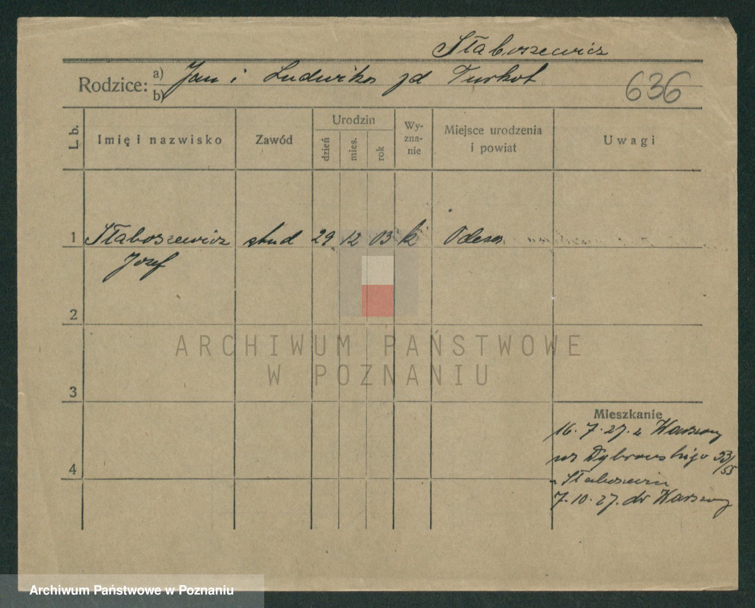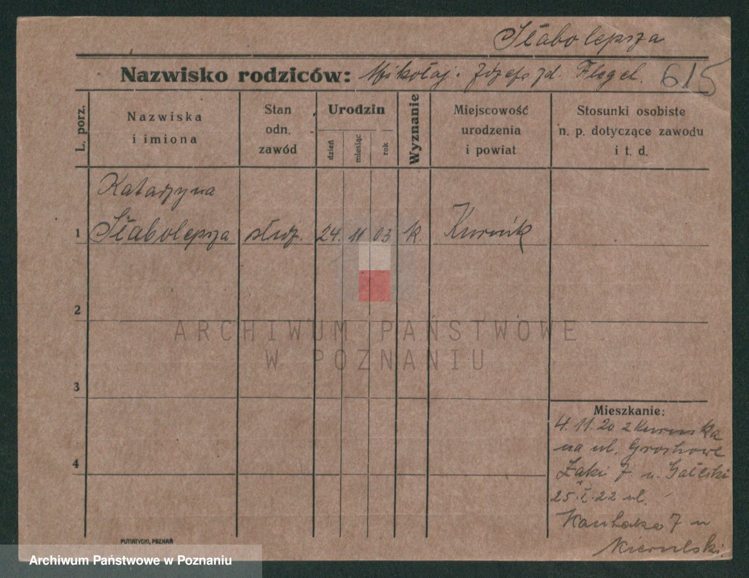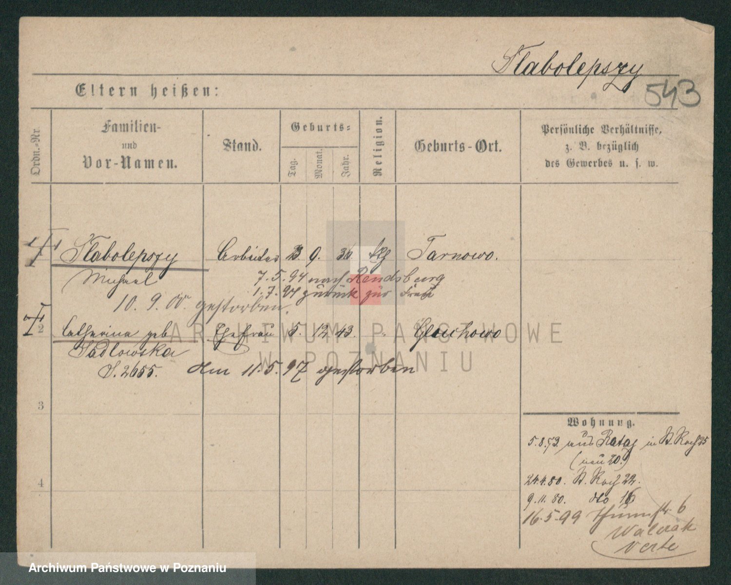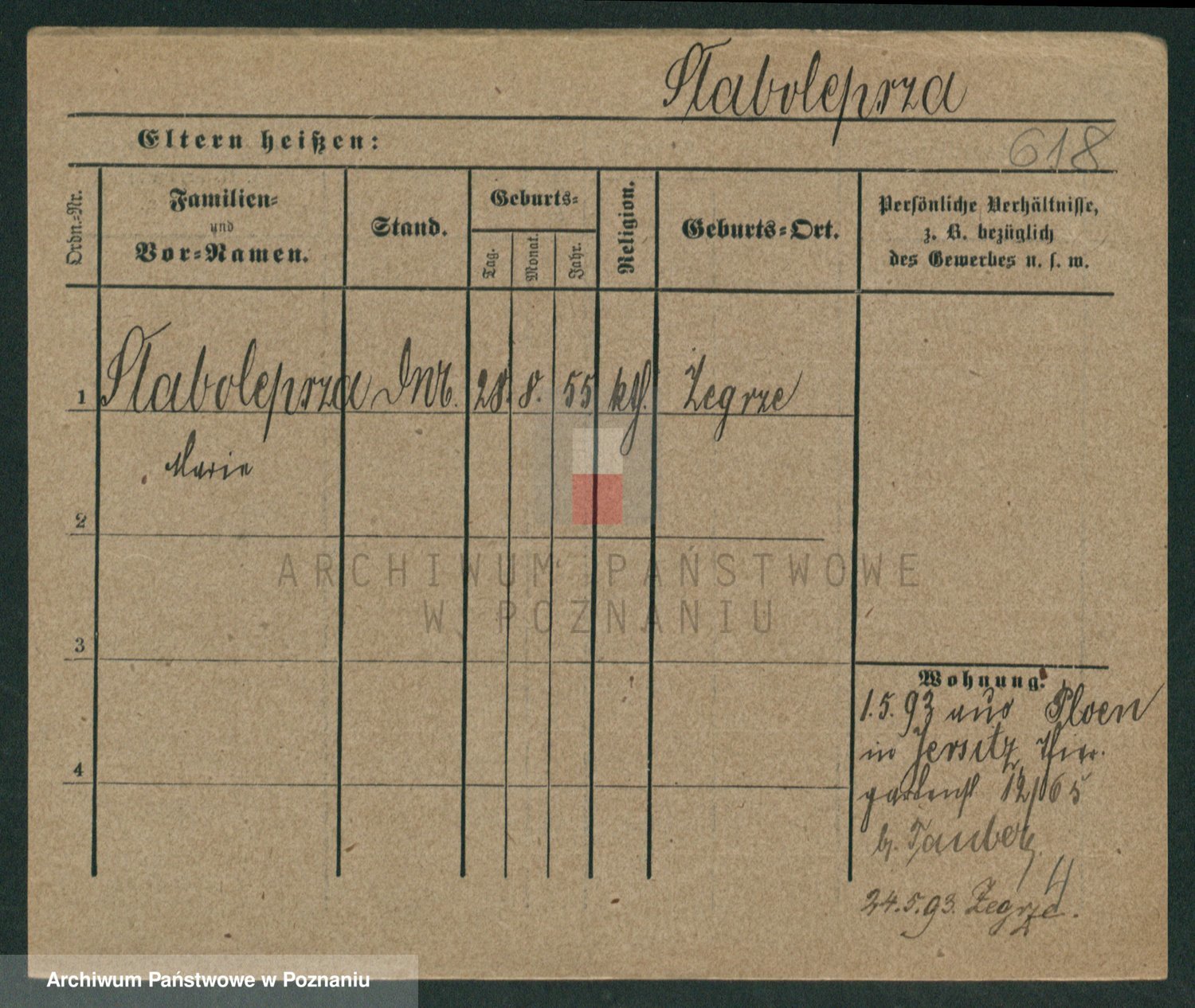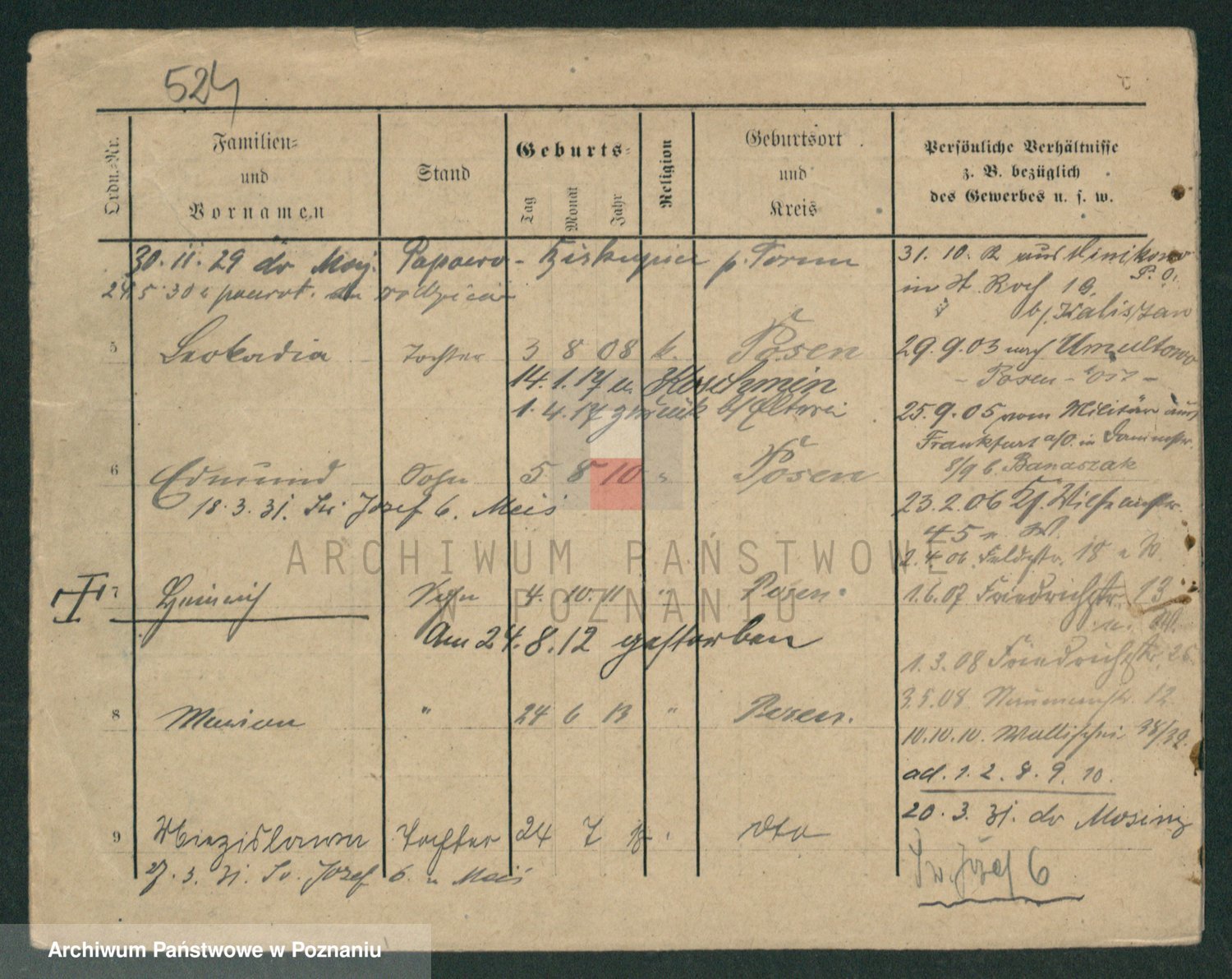Podgląd karty osobowej dostępny jest po kliknięciu na nazwisko lub ikonkę karty. Można dokonywać powiększenia (ikony na górze) lub przechodzić między kolejnymi skanami (strzałki po bokach).