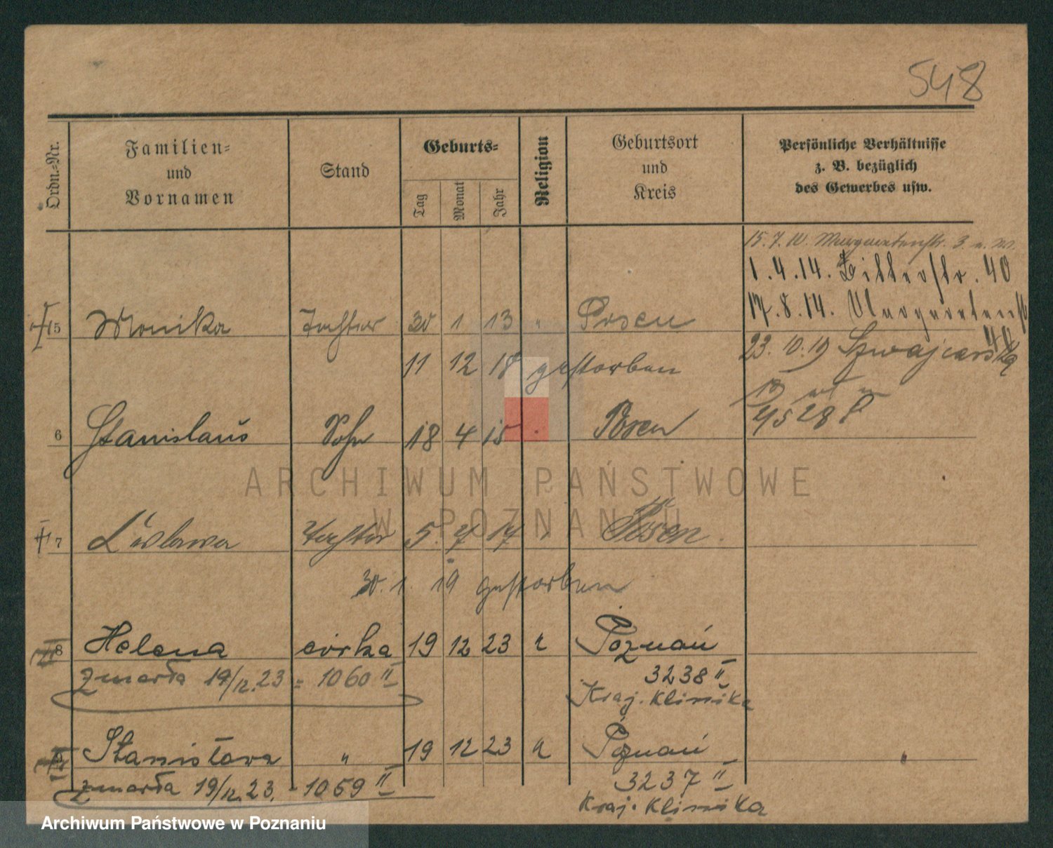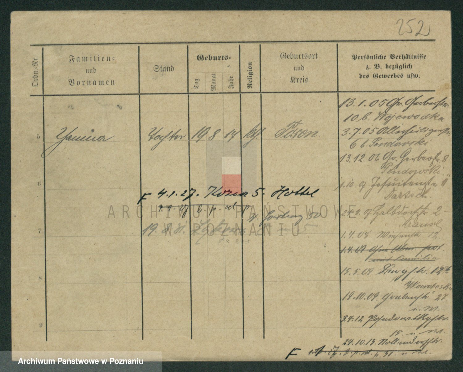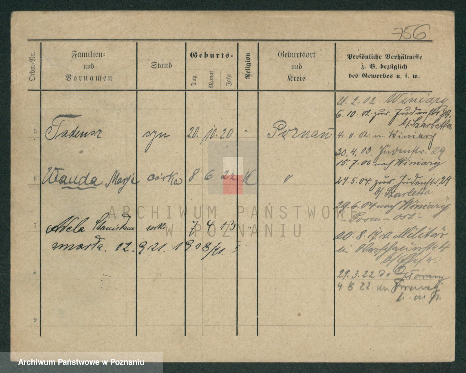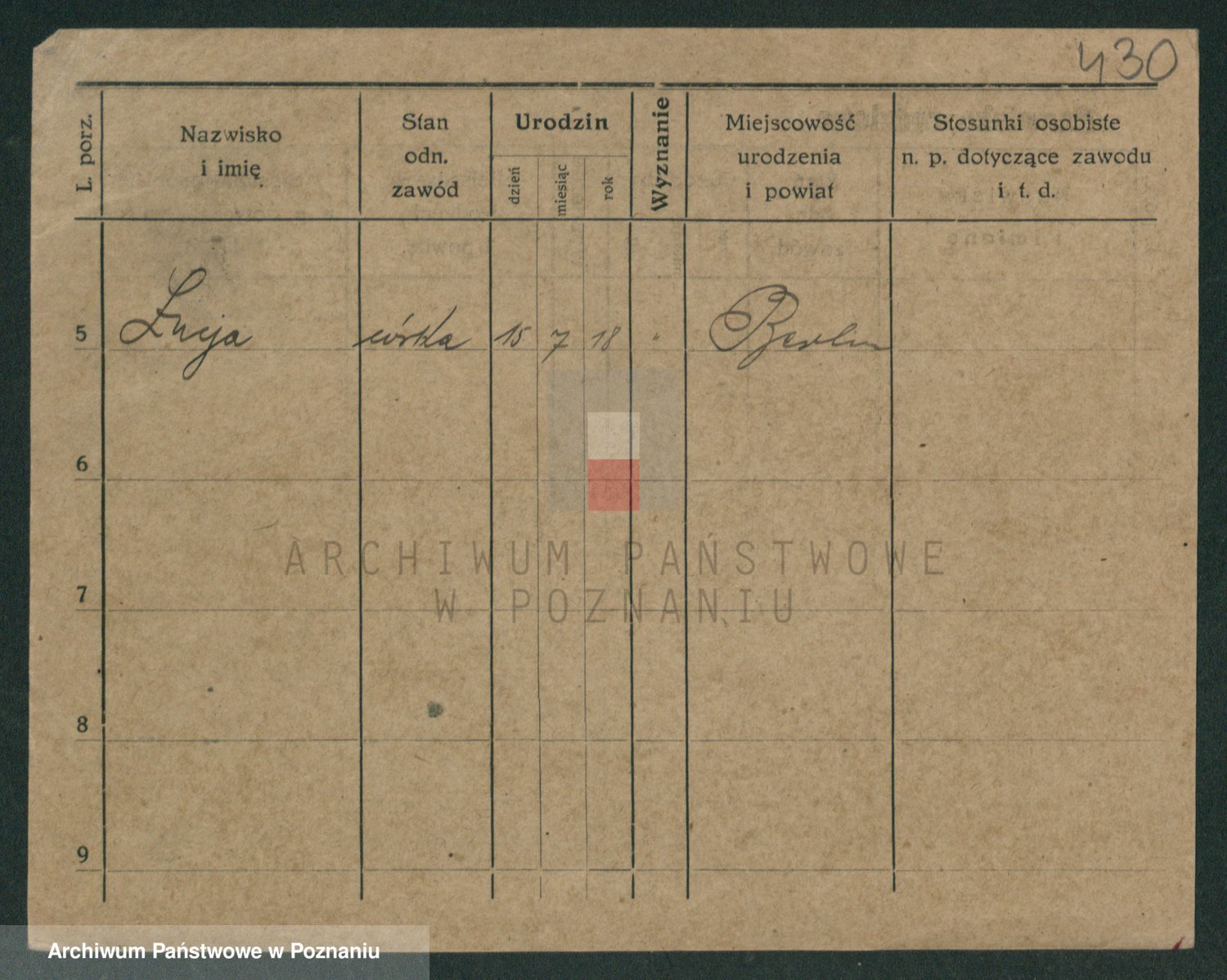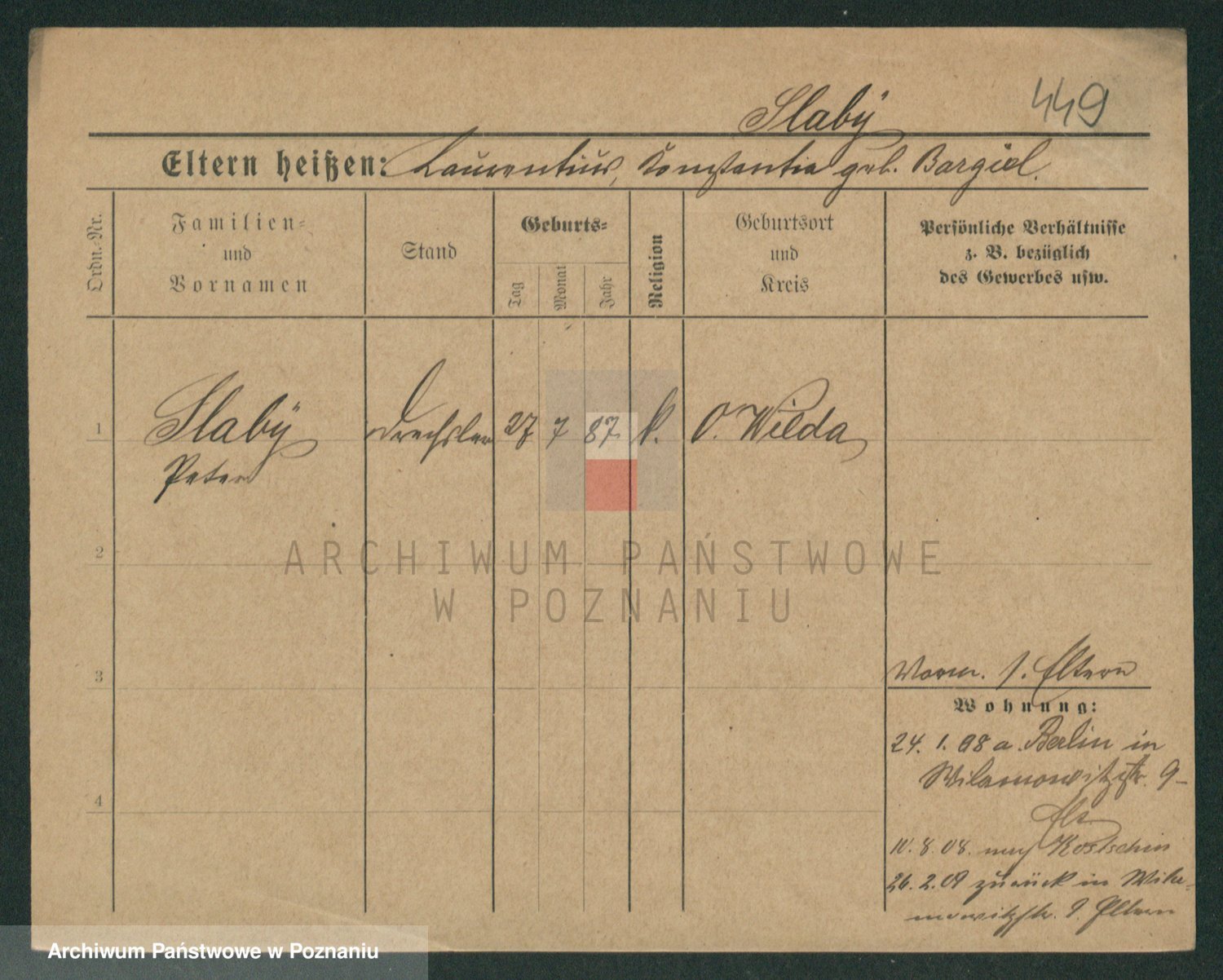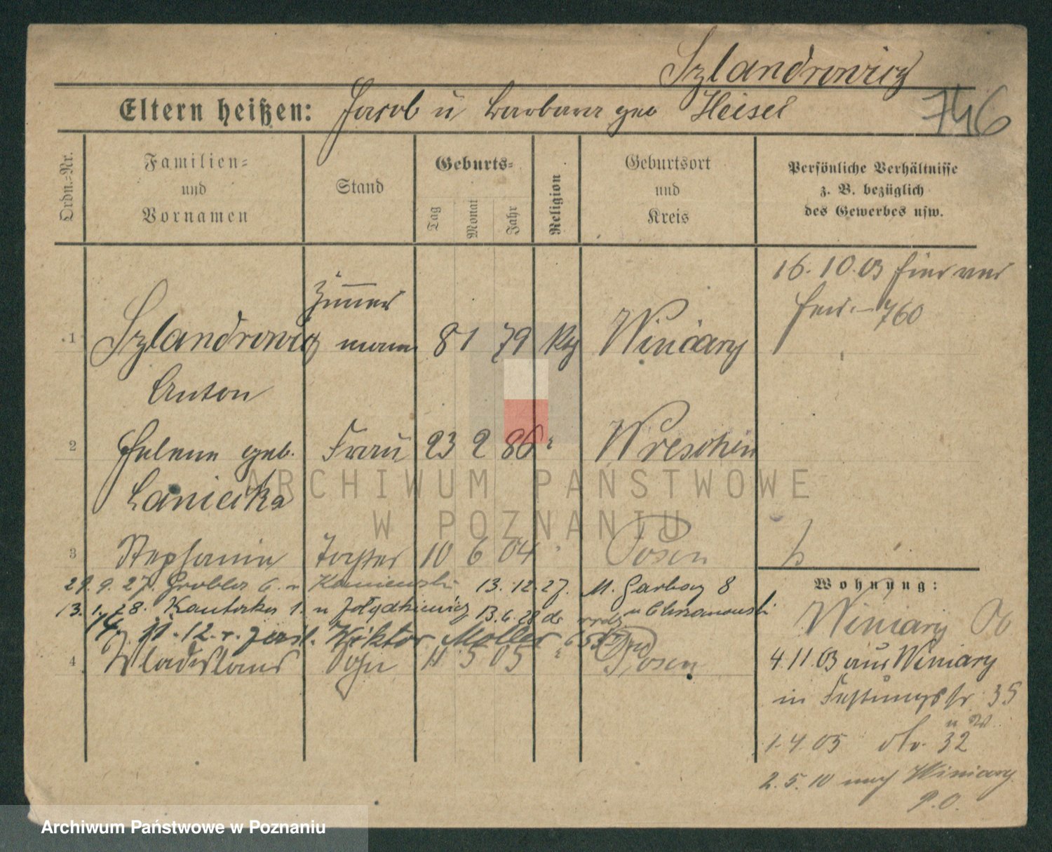 Podgląd karty osobowej dostępny jest po kliknięciu na nazwisko lub ikonkę karty. Można dokonywać powiększenia (ikony na górze) lub przechodzić między kolejnymi skanami (strzałki po bokach).