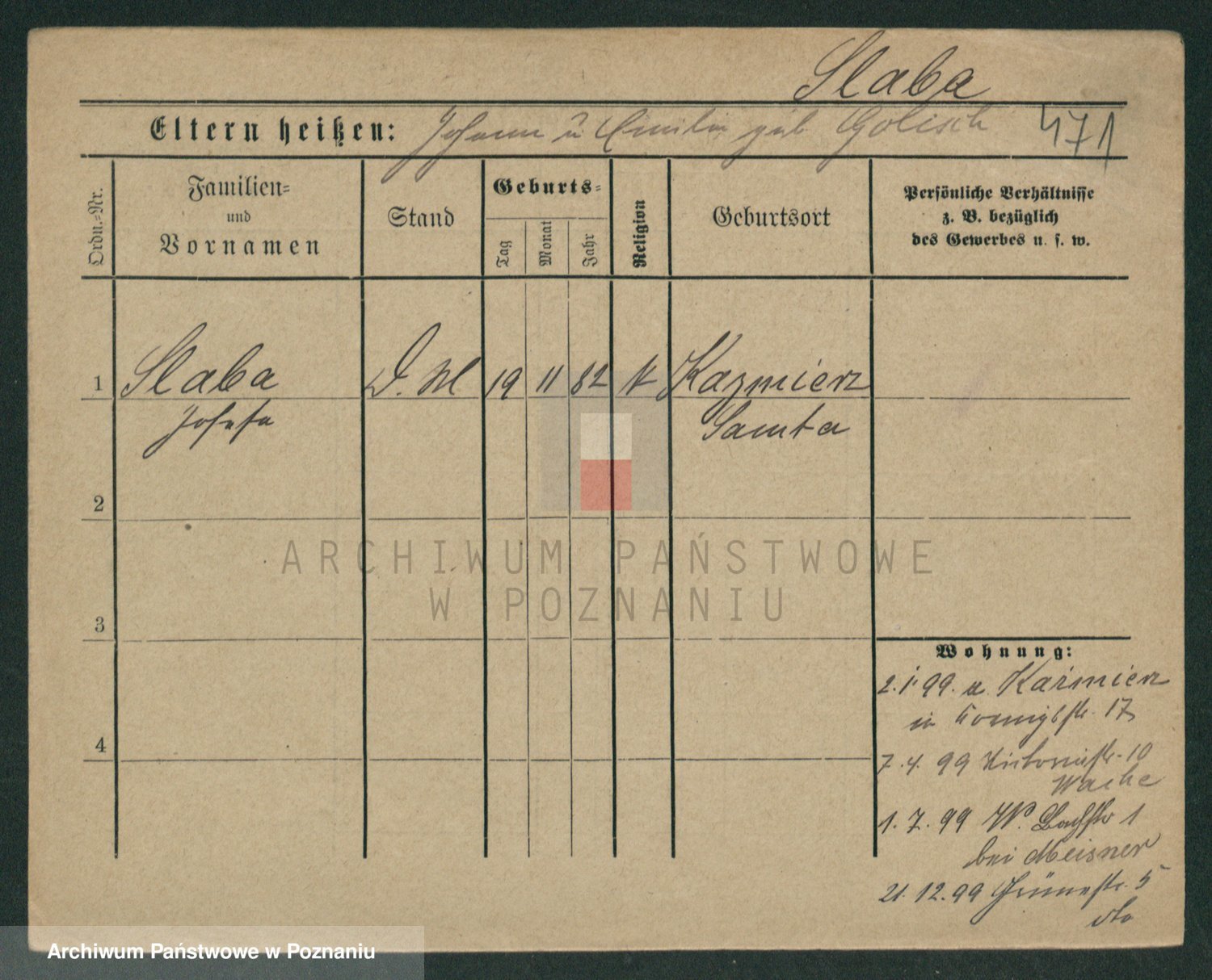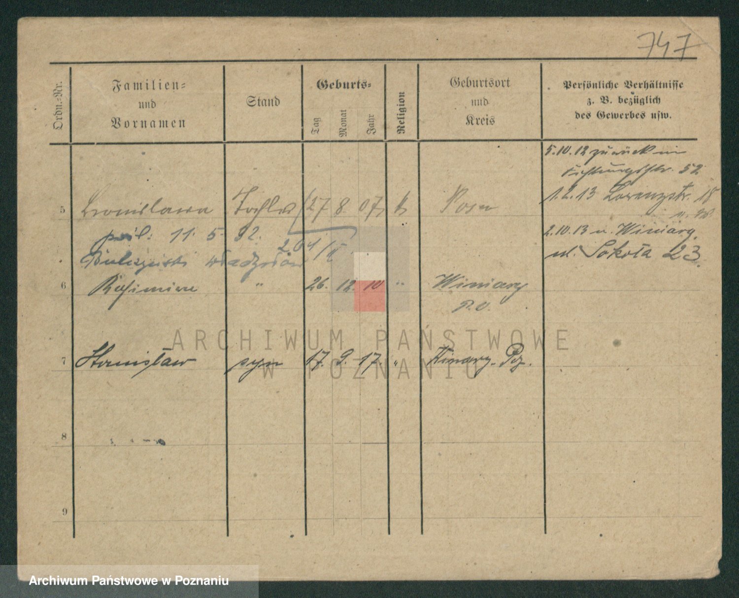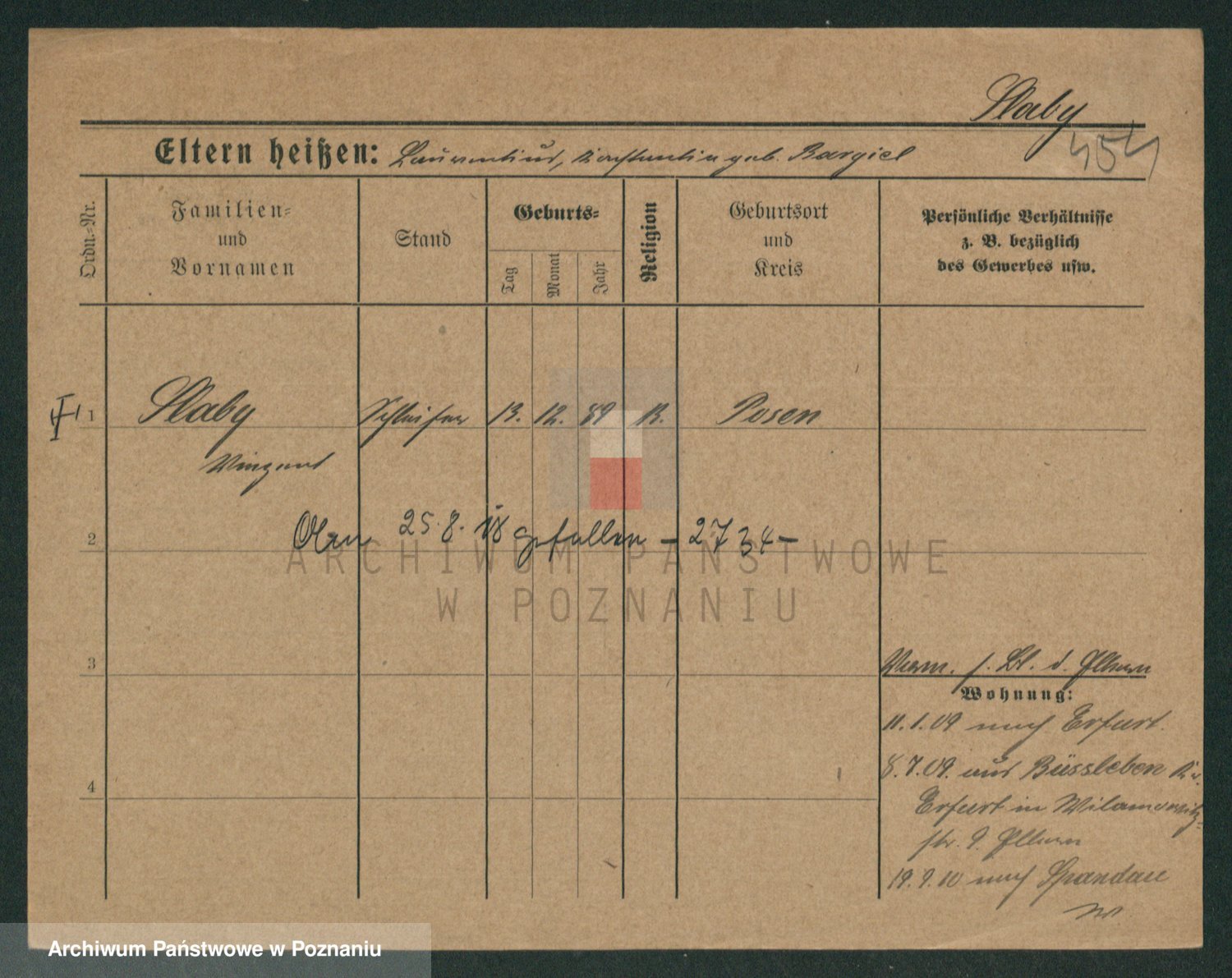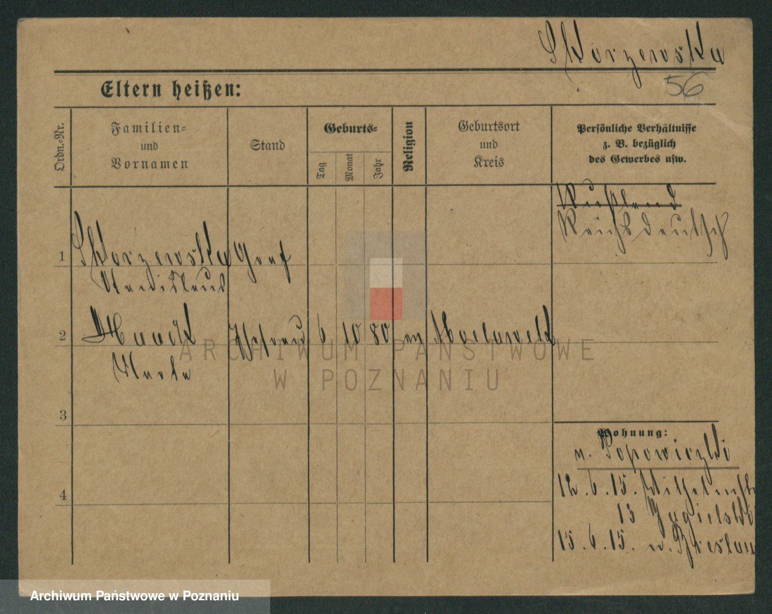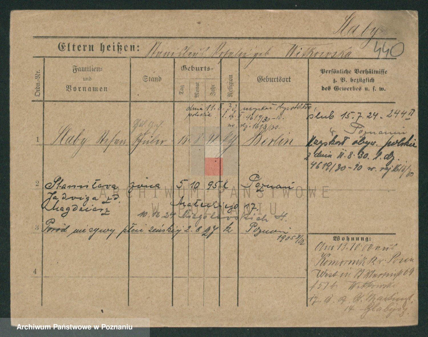 Podgląd karty osobowej dostępny jest po kliknięciu na nazwisko lub ikonkę karty. Można dokonywać powiększenia (ikony na górze) lub przechodzić między kolejnymi skanami (strzałki po bokach).