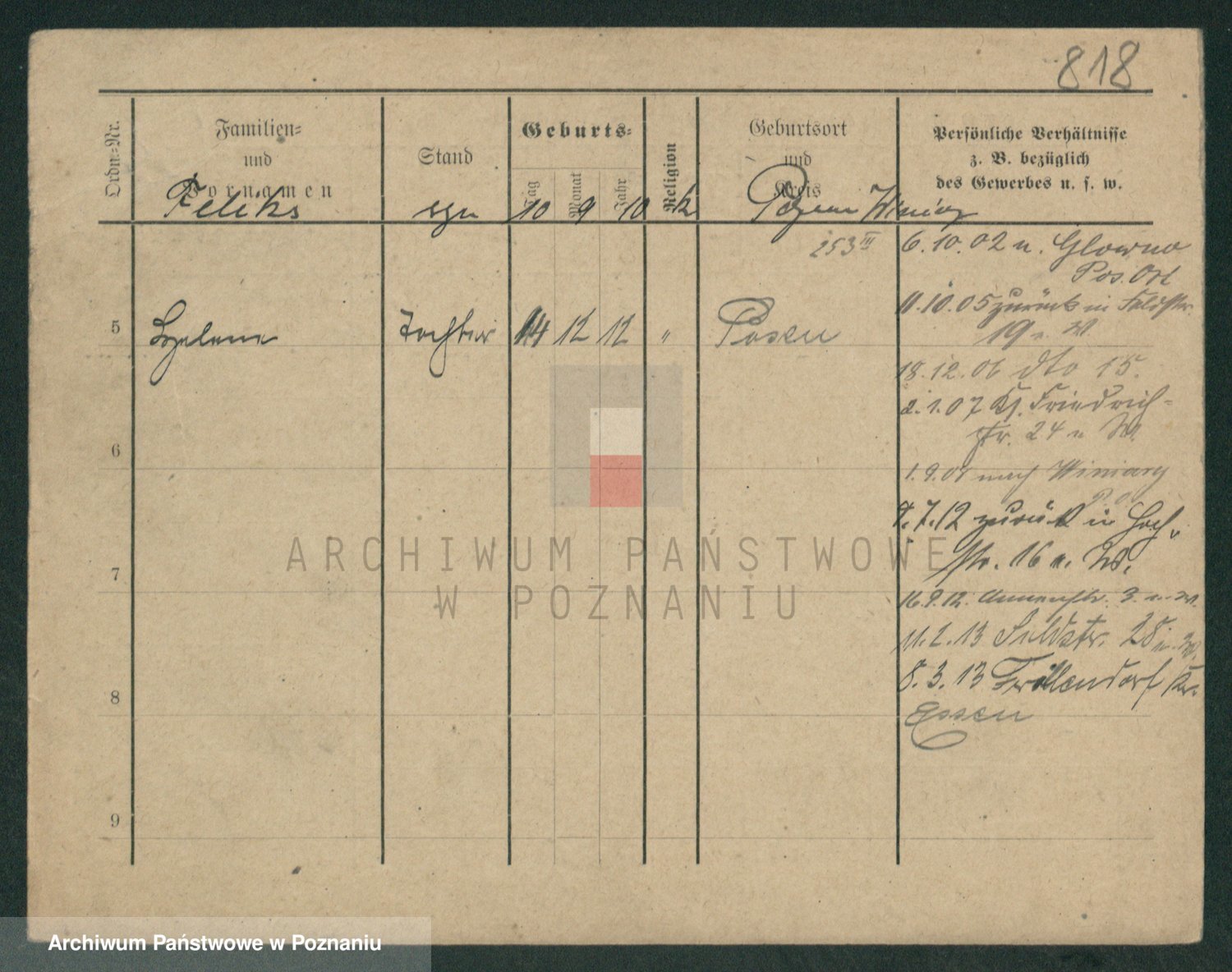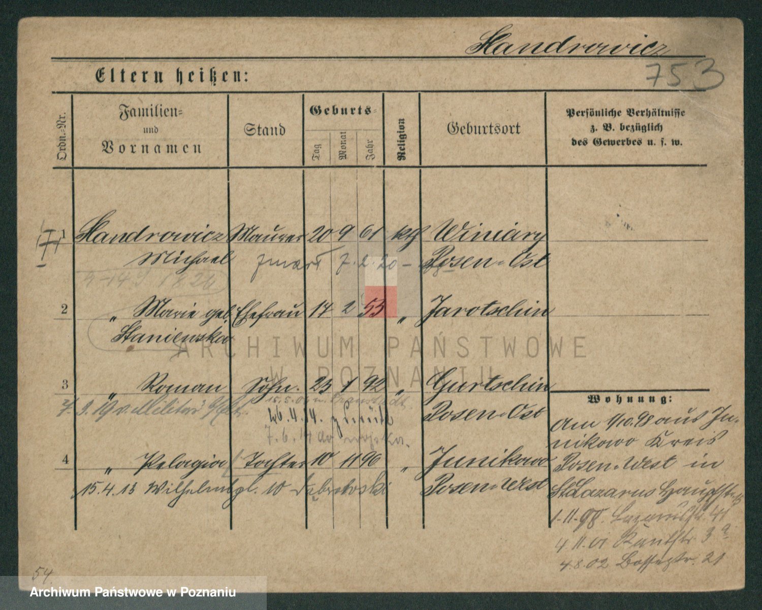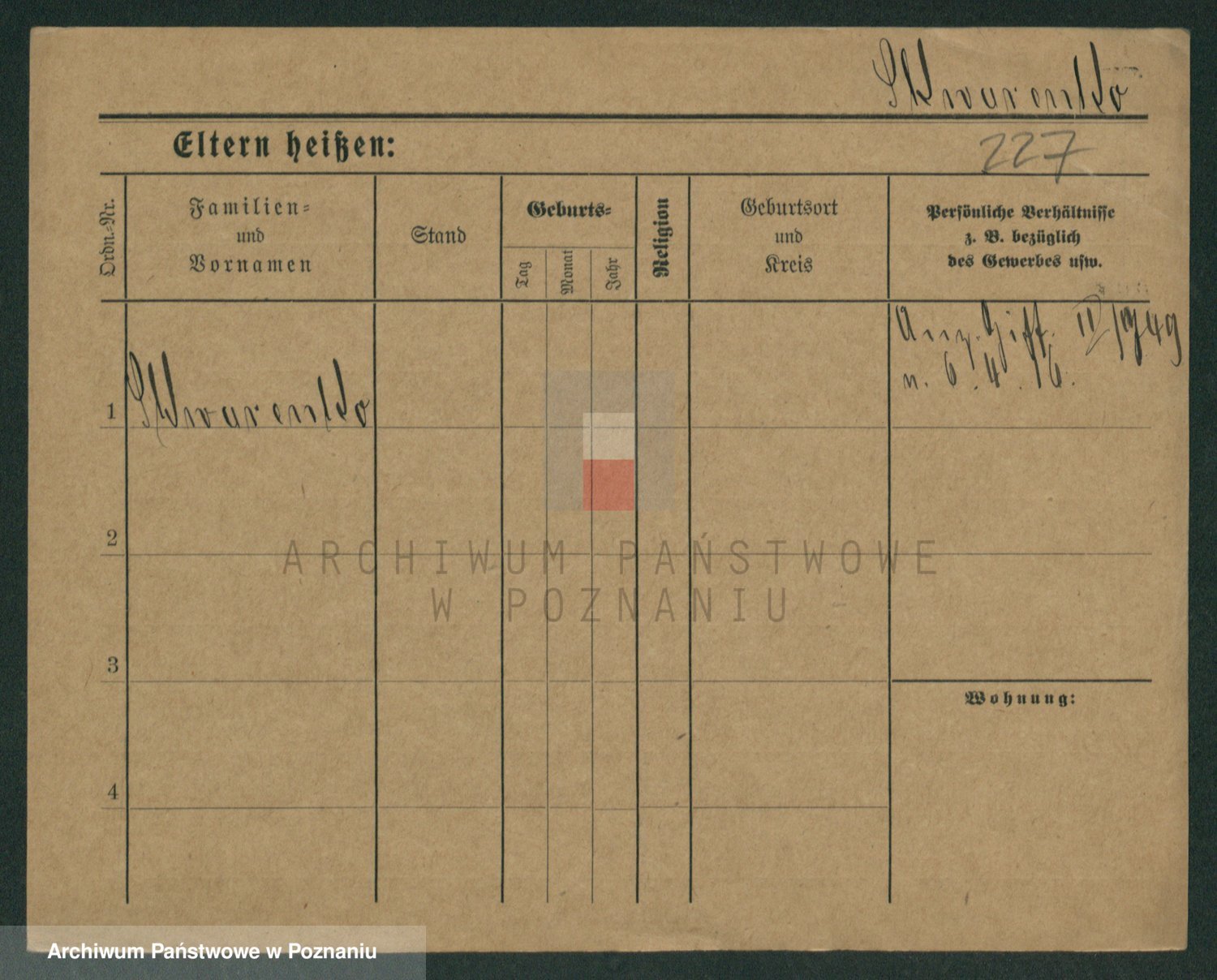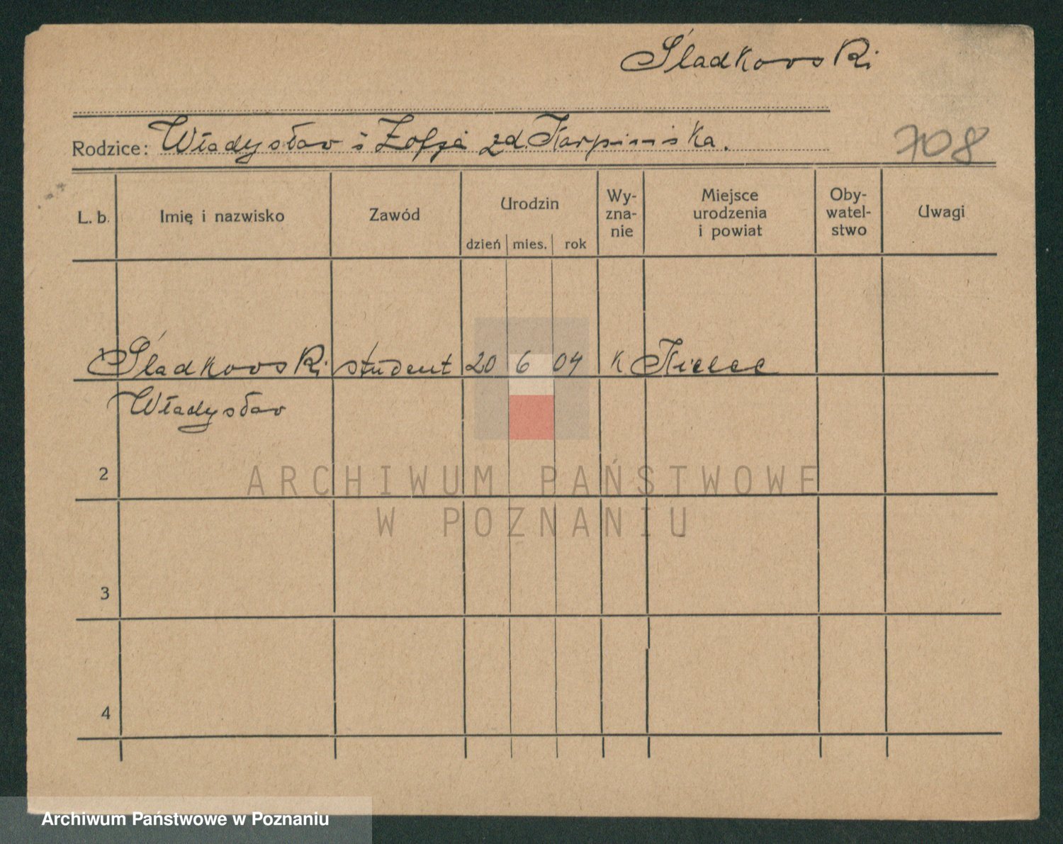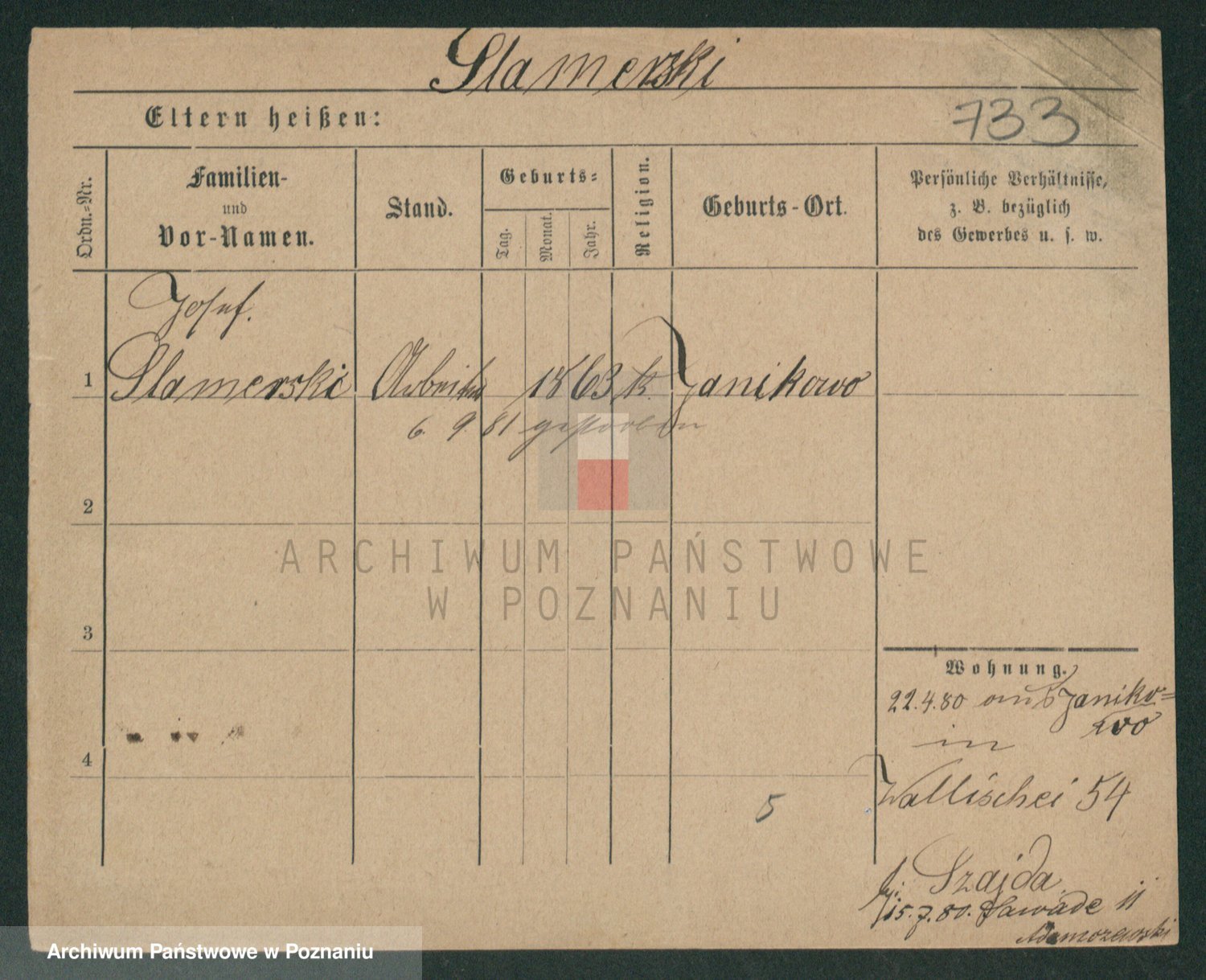 Podgląd karty osobowej dostępny jest po kliknięciu na nazwisko lub ikonkę karty. Można dokonywać powiększenia (ikony na górze) lub przechodzić między kolejnymi skanami (strzałki po bokach).