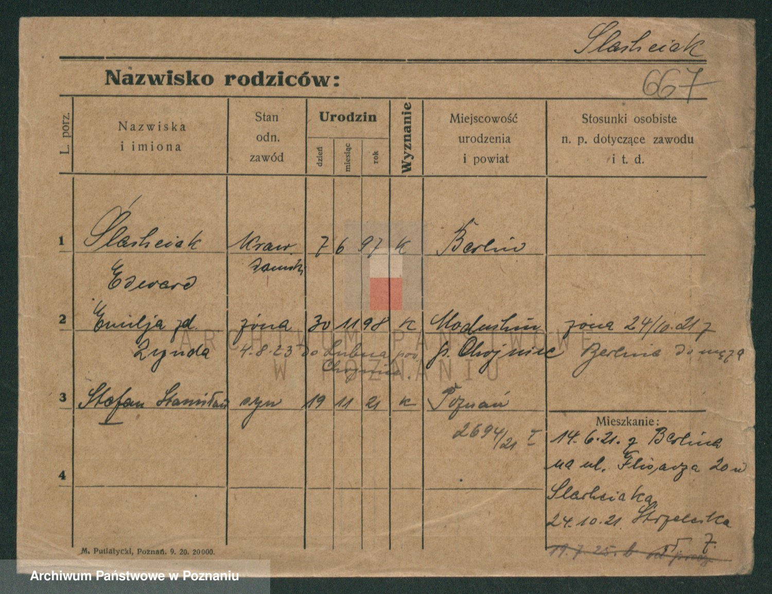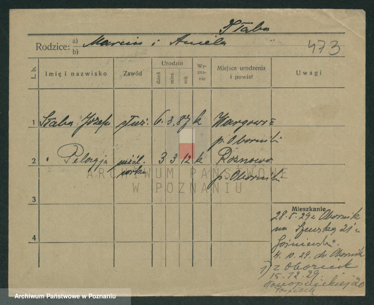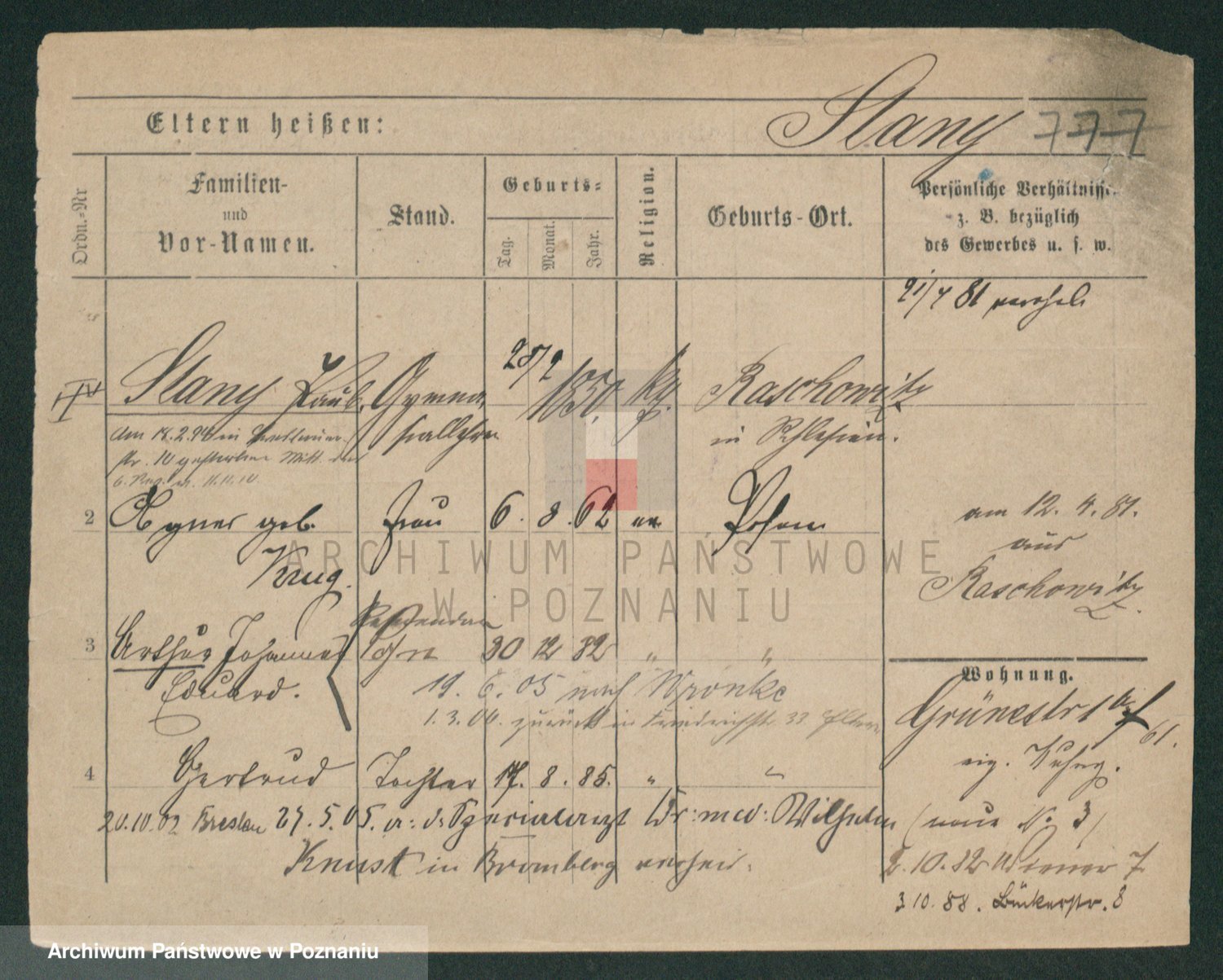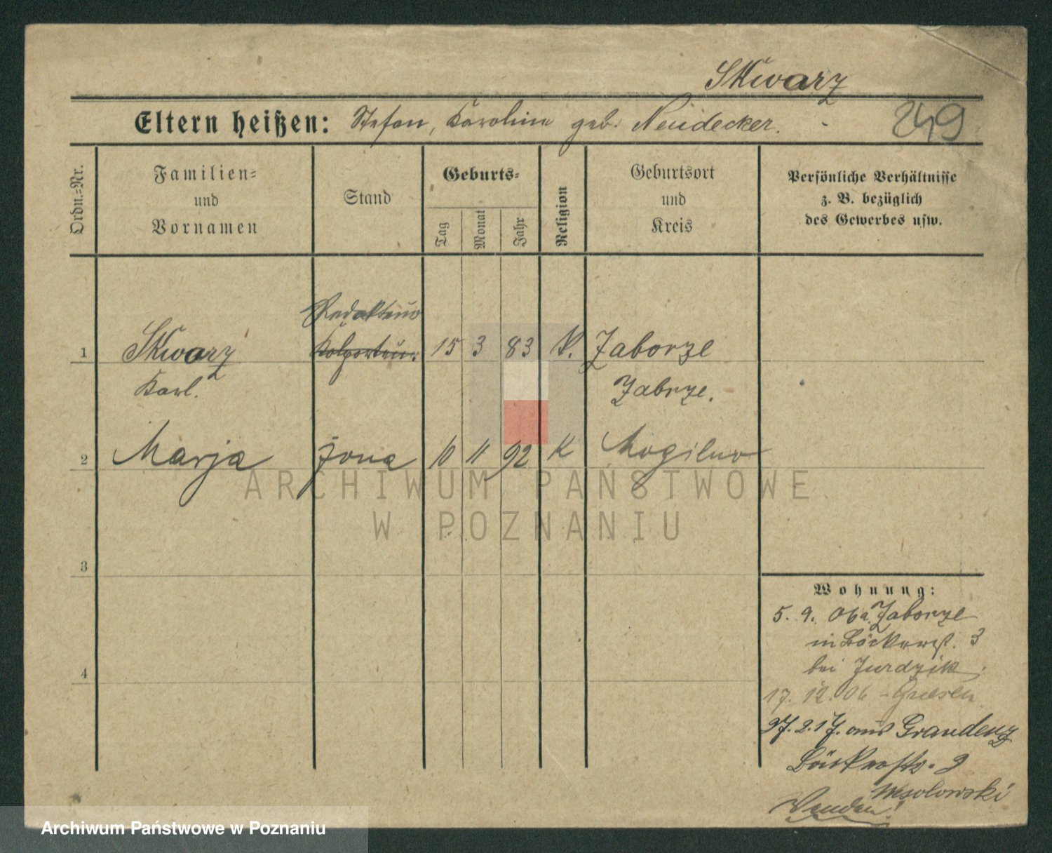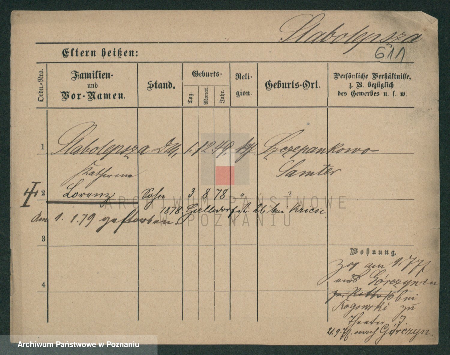 Podgląd karty osobowej dostępny jest po kliknięciu na nazwisko lub ikonkę karty. Można dokonywać powiększenia (ikony na górze) lub przechodzić między kolejnymi skanami (strzałki po bokach).