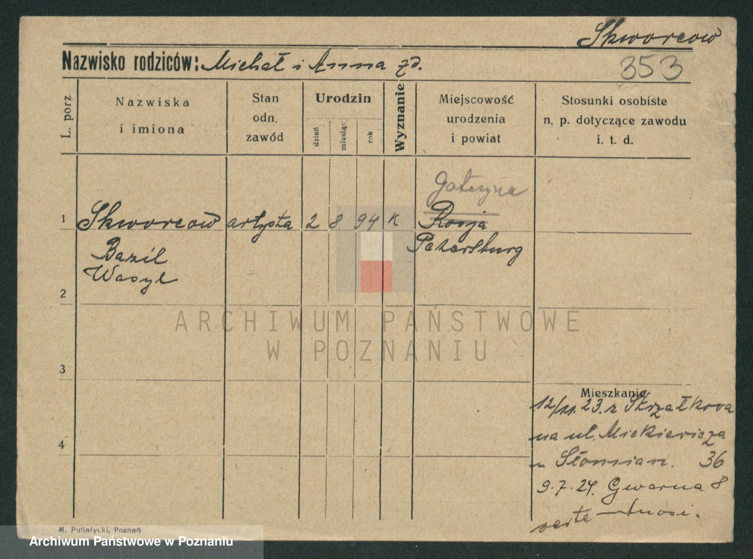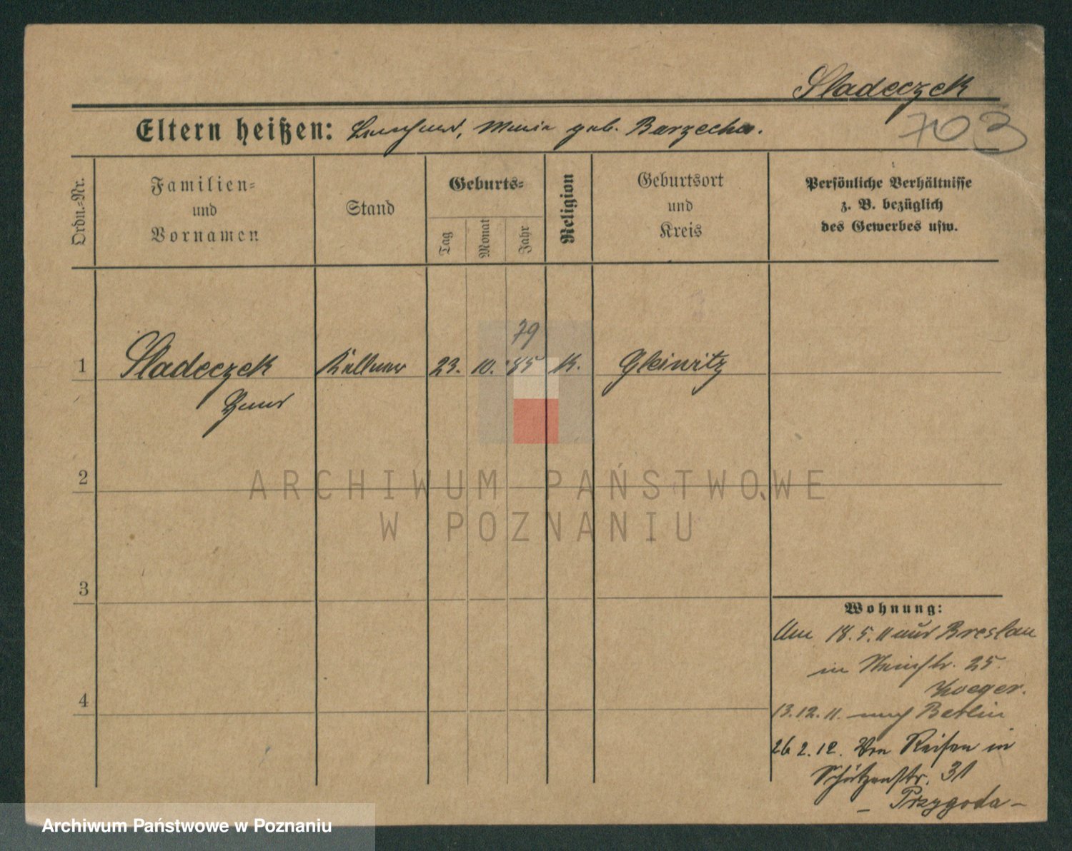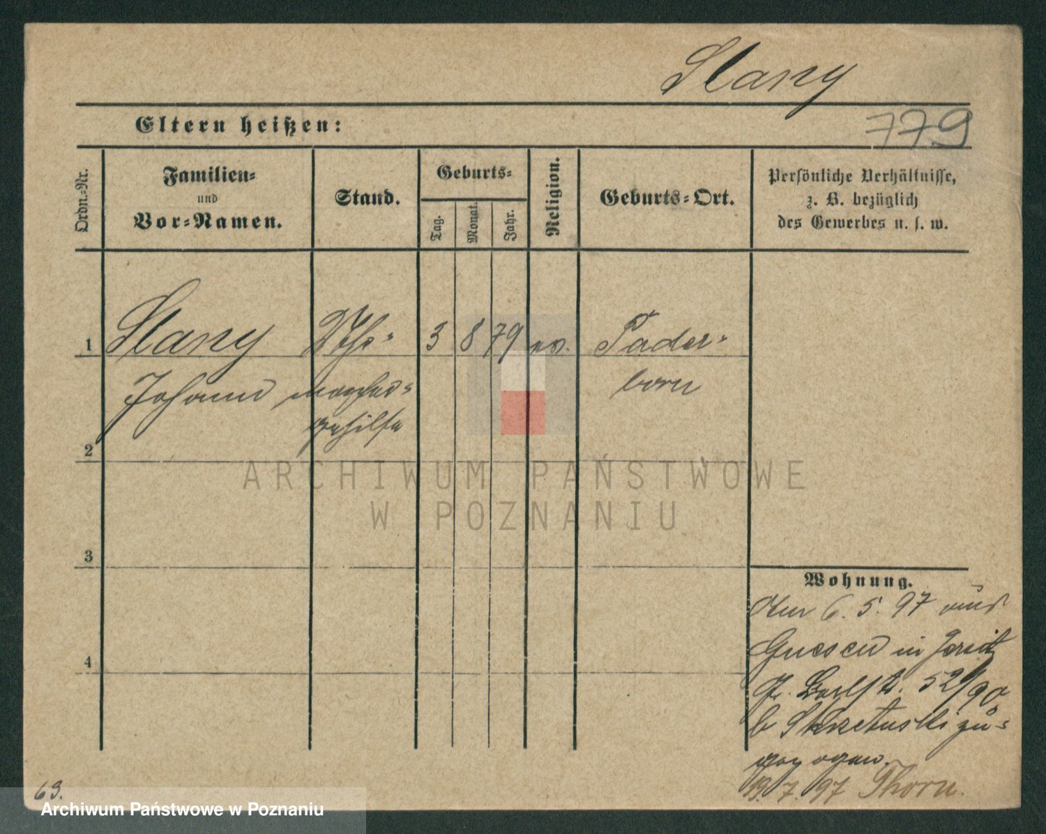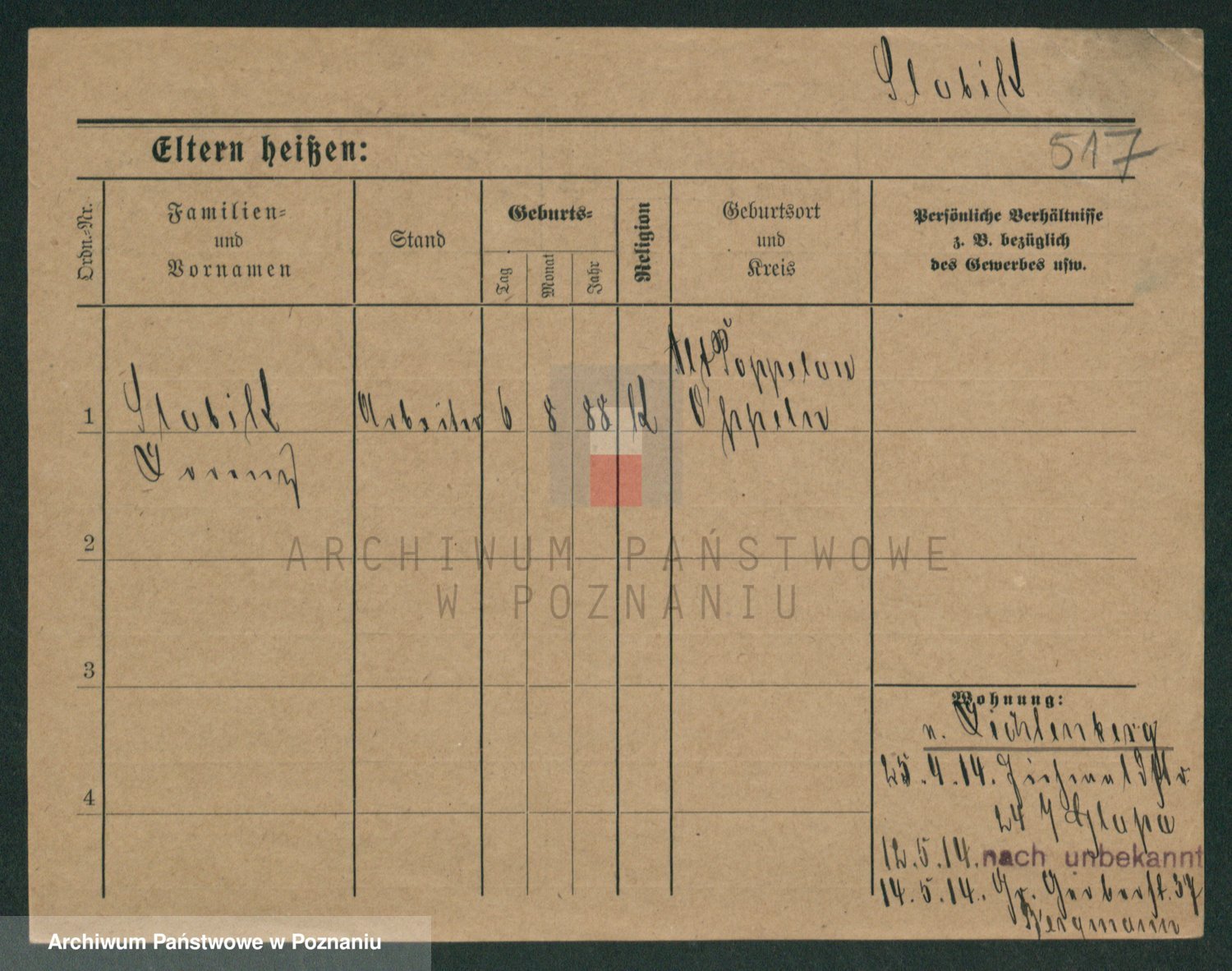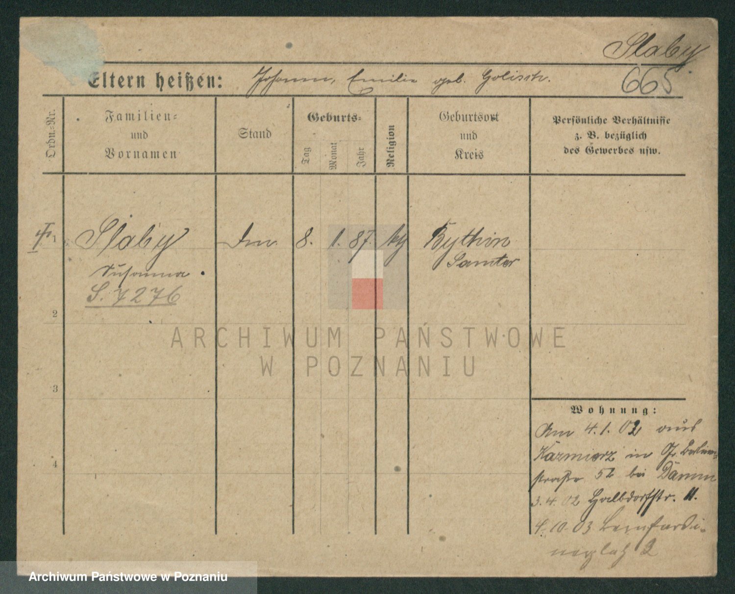 Podgląd karty osobowej dostępny jest po kliknięciu na nazwisko lub ikonkę karty. Można dokonywać powiększenia (ikony na górze) lub przechodzić między kolejnymi skanami (strzałki po bokach).