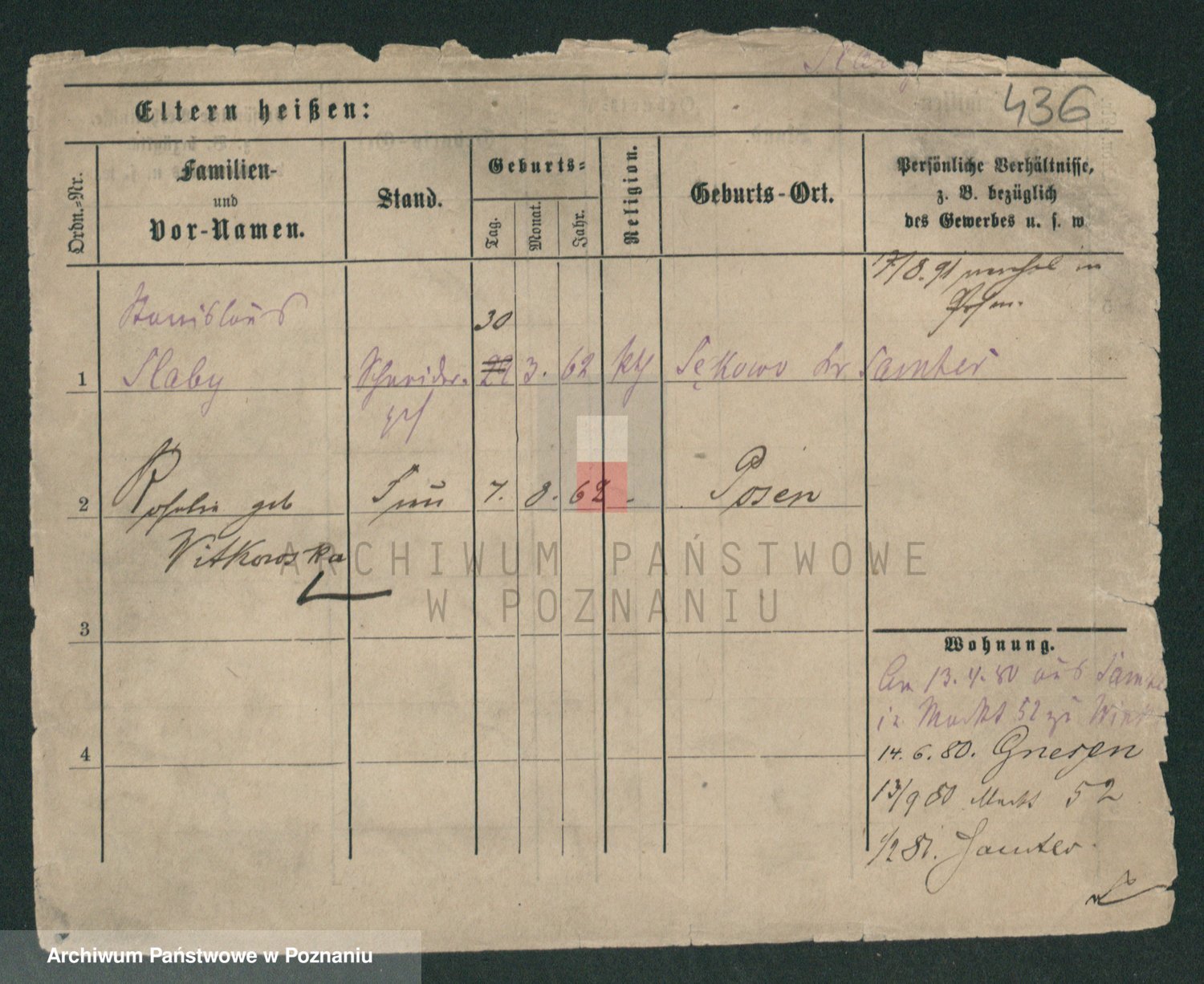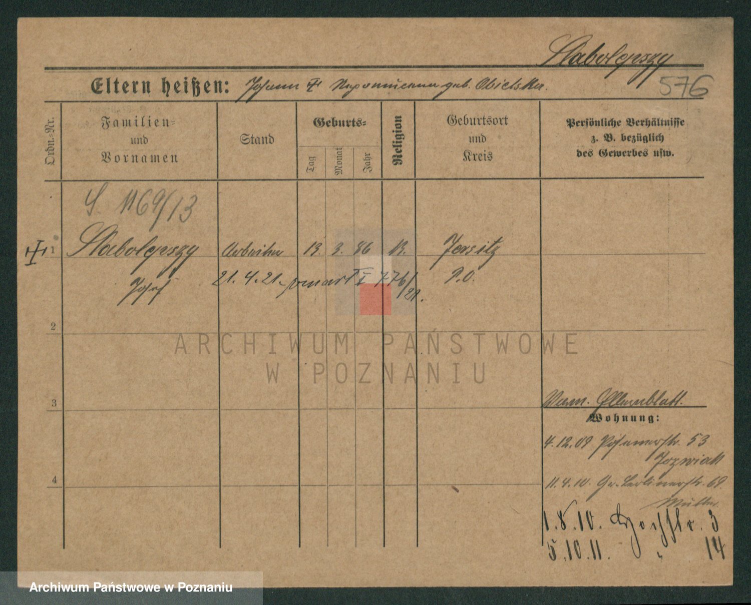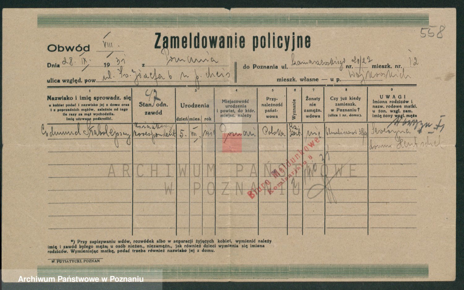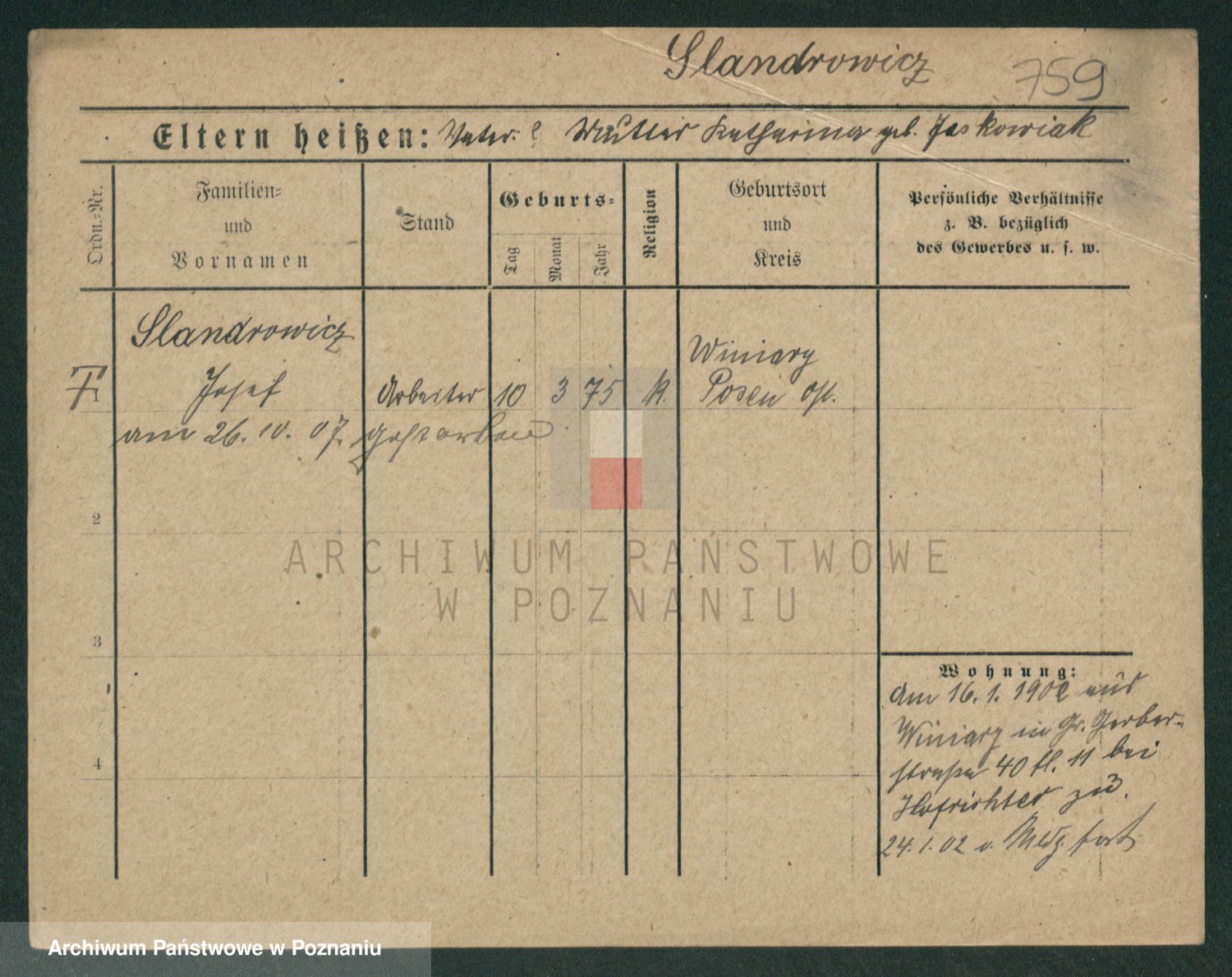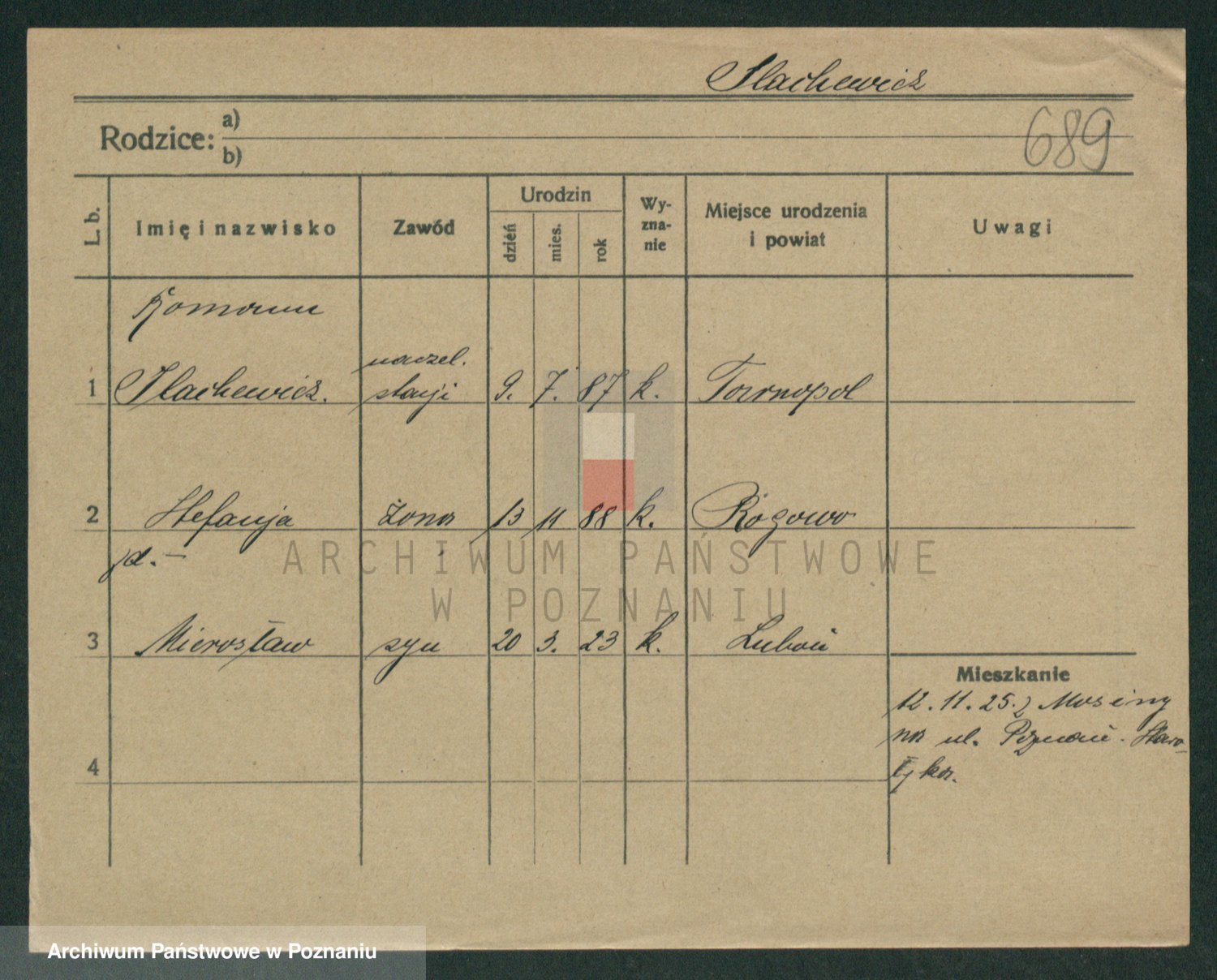 Podgląd karty osobowej dostępny jest po kliknięciu na nazwisko lub ikonkę karty. Można dokonywać powiększenia (ikony na górze) lub przechodzić między kolejnymi skanami (strzałki po bokach).