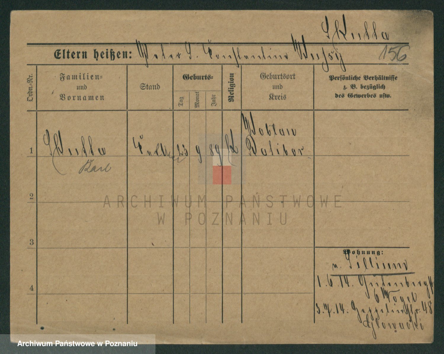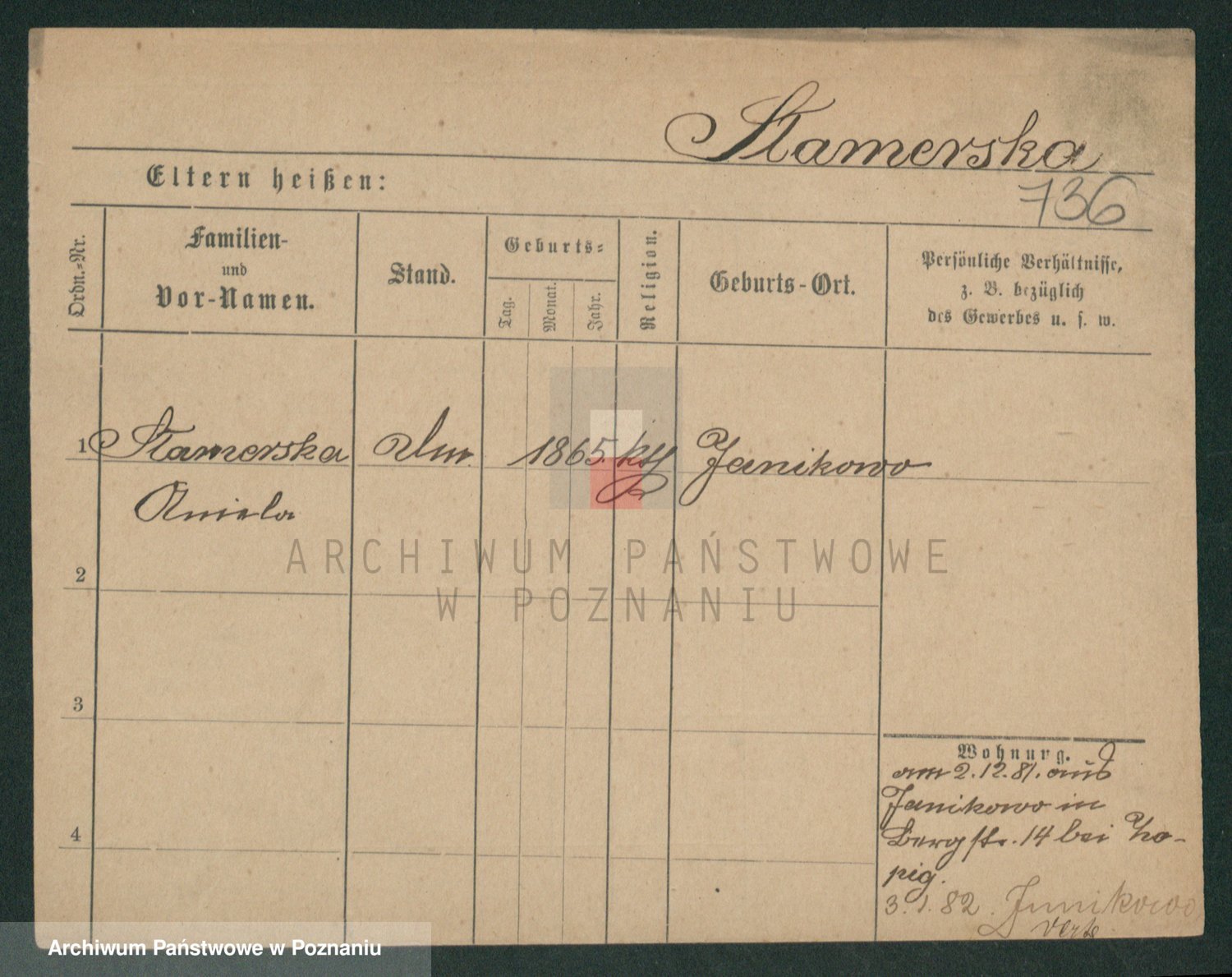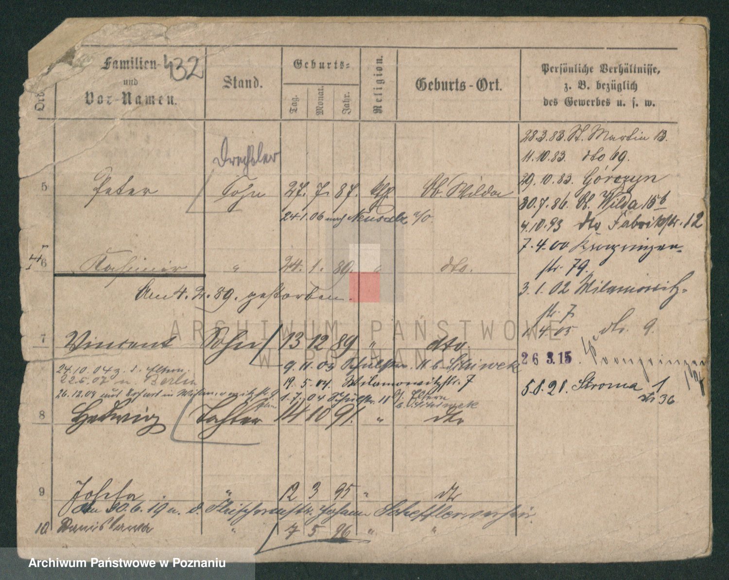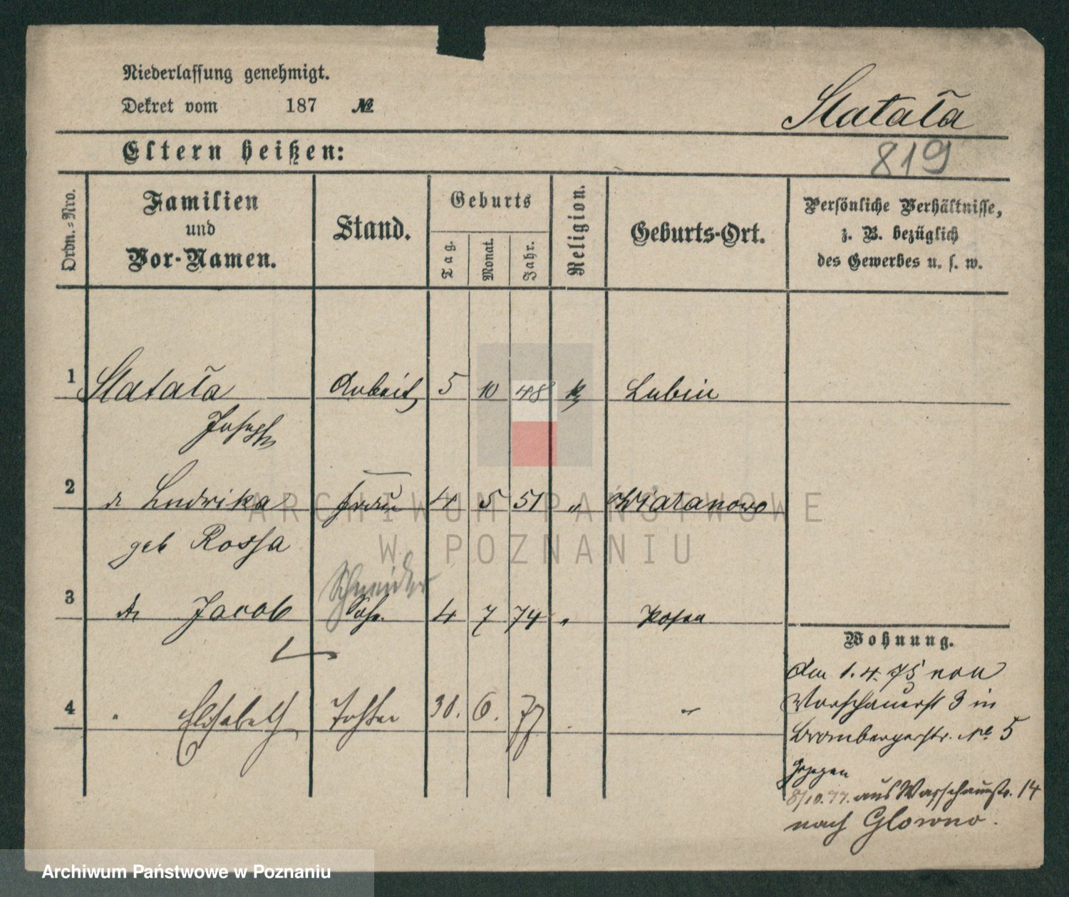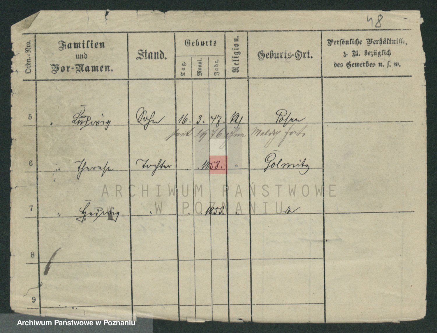 Podgląd karty osobowej dostępny jest po kliknięciu na nazwisko lub ikonkę karty. Można dokonywać powiększenia (ikony na górze) lub przechodzić między kolejnymi skanami (strzałki po bokach).