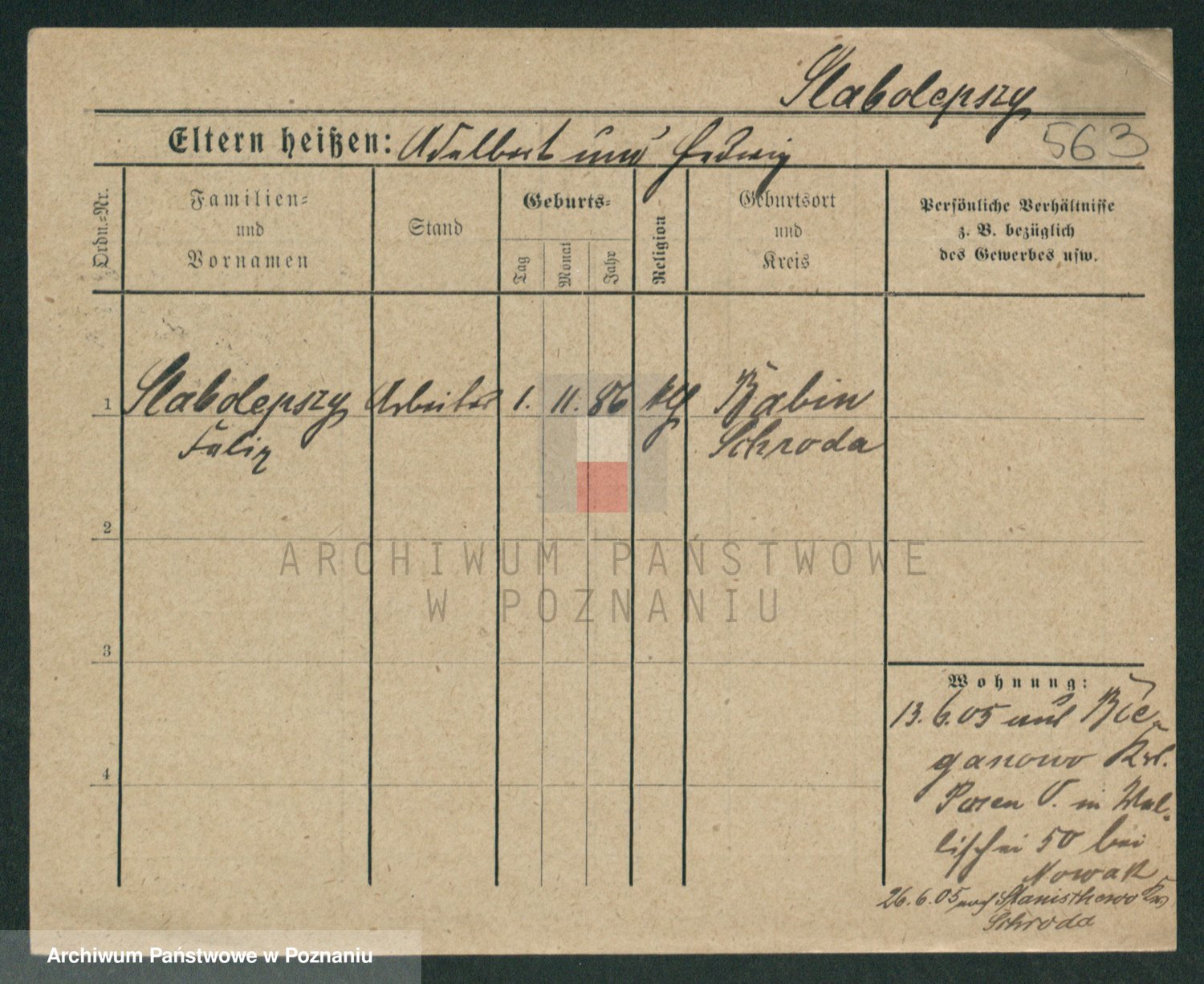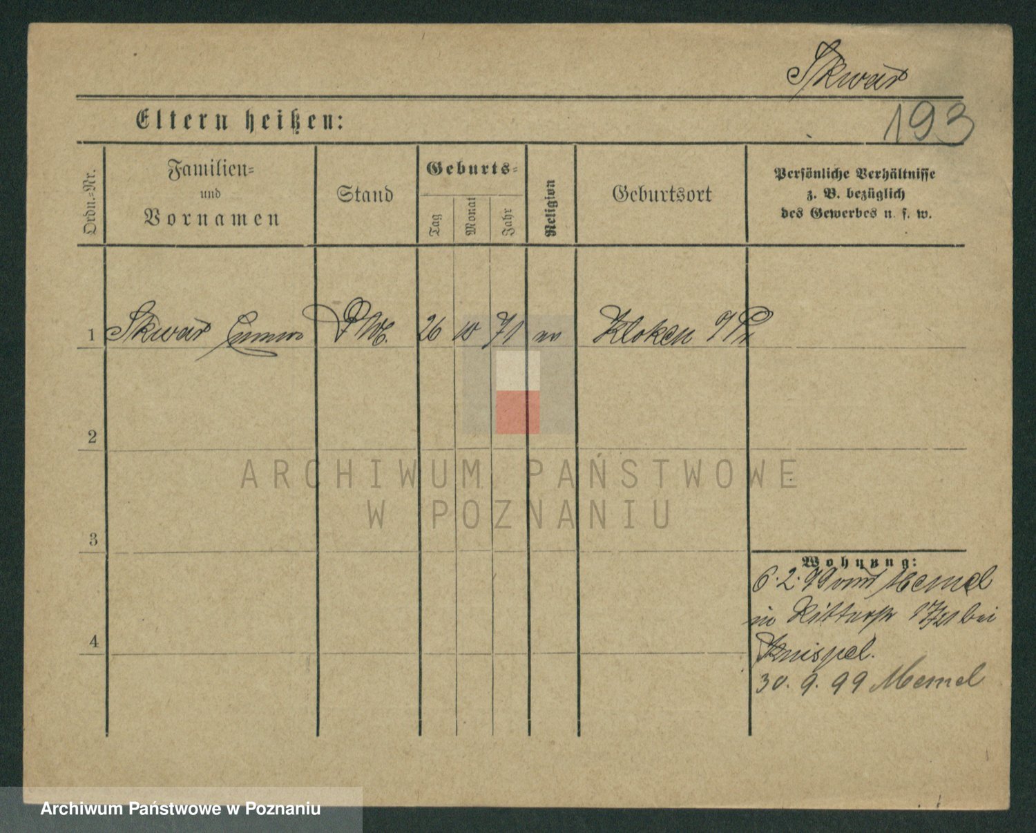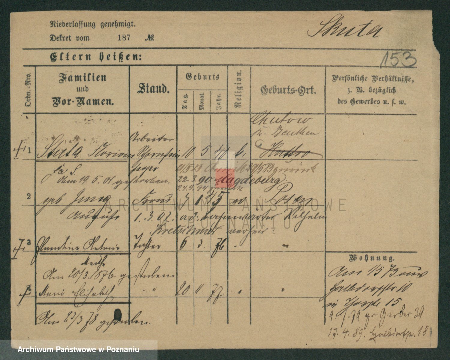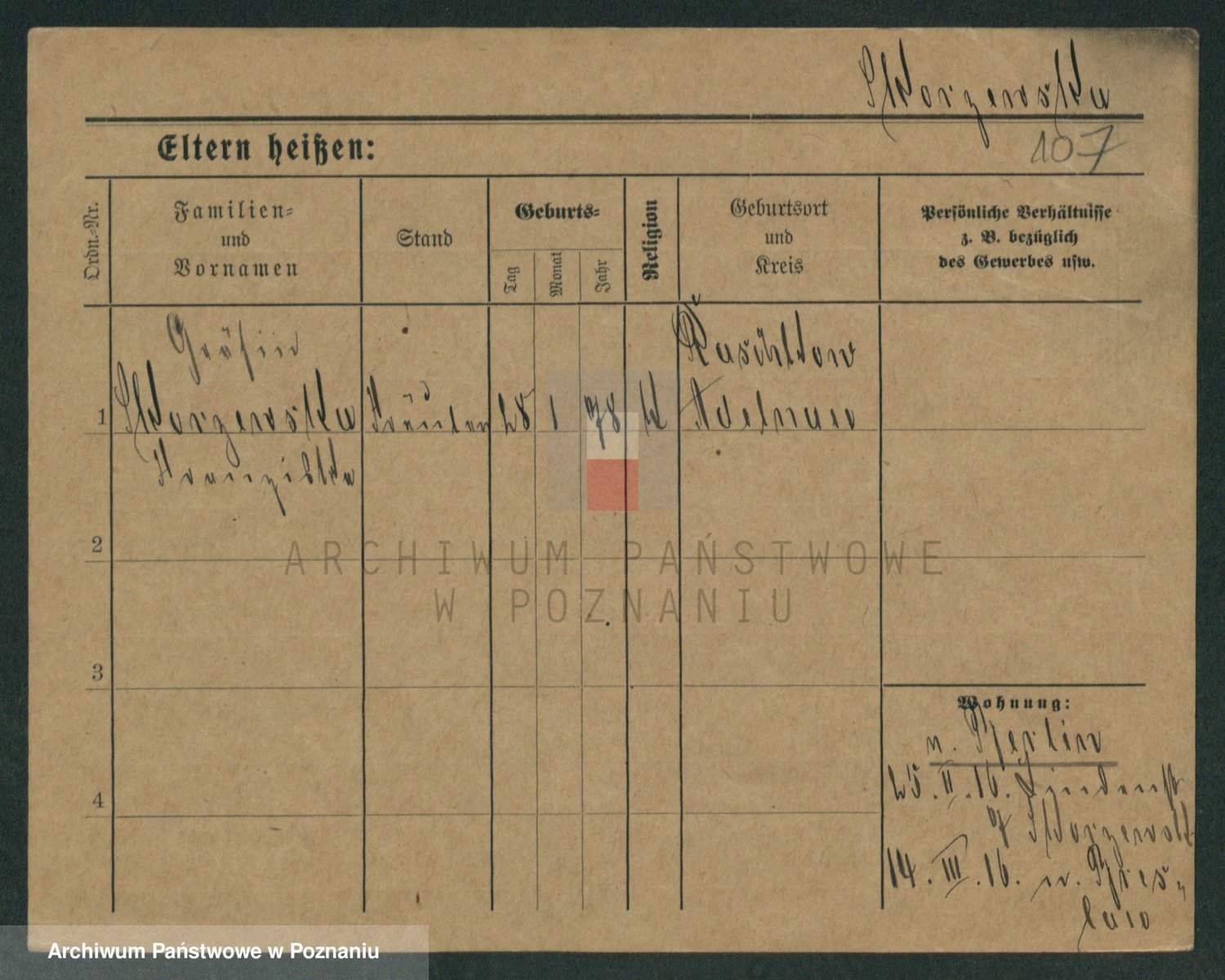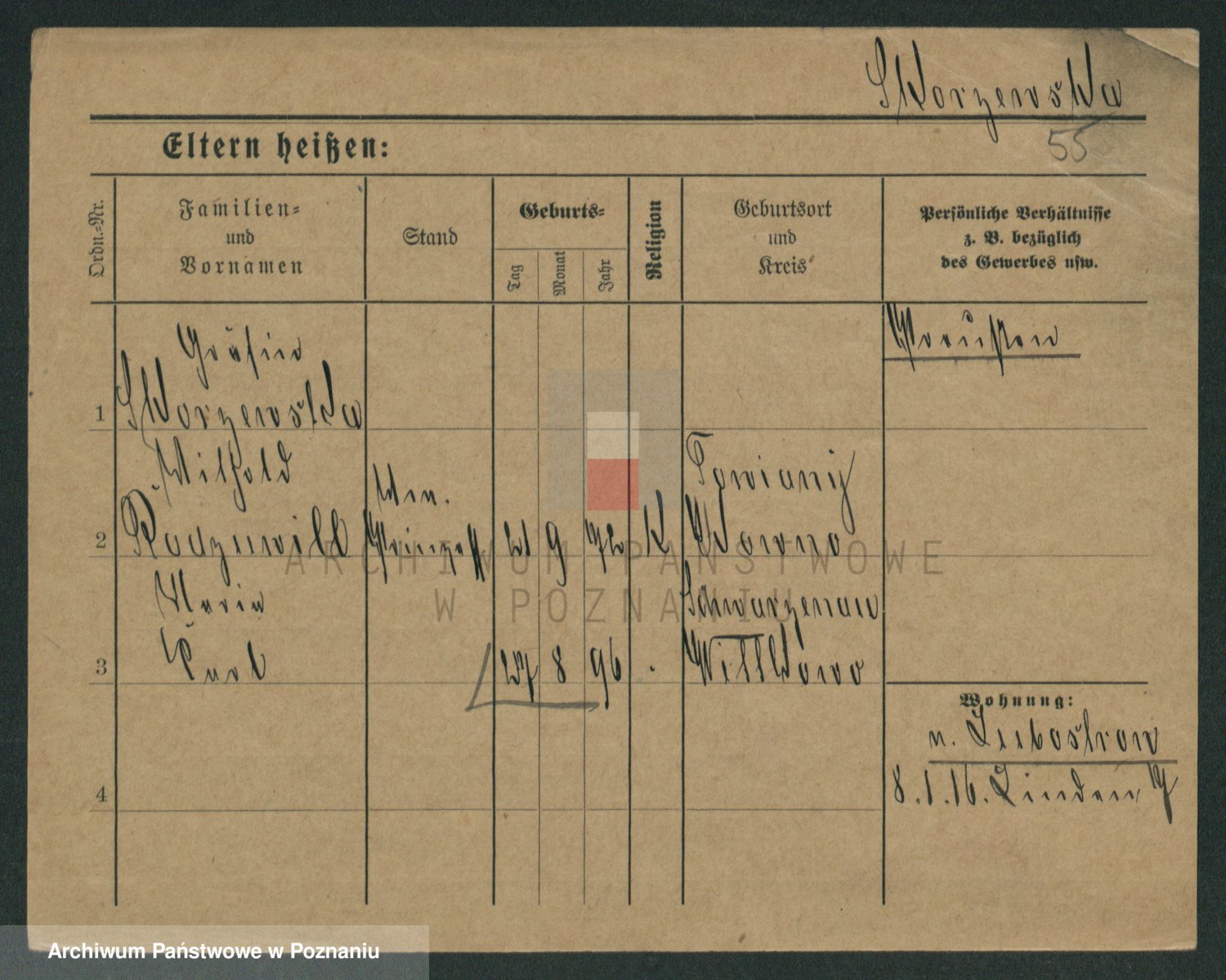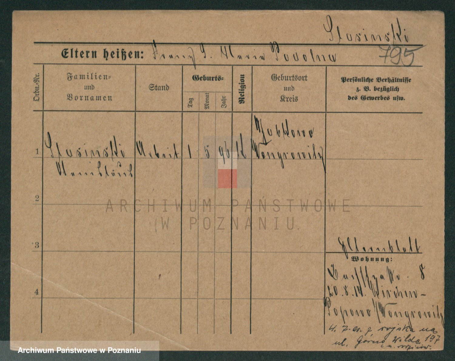 Podgląd karty osobowej dostępny jest po kliknięciu na nazwisko lub ikonkę karty. Można dokonywać powiększenia (ikony na górze) lub przechodzić między kolejnymi skanami (strzałki po bokach).