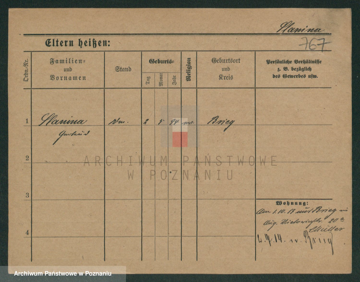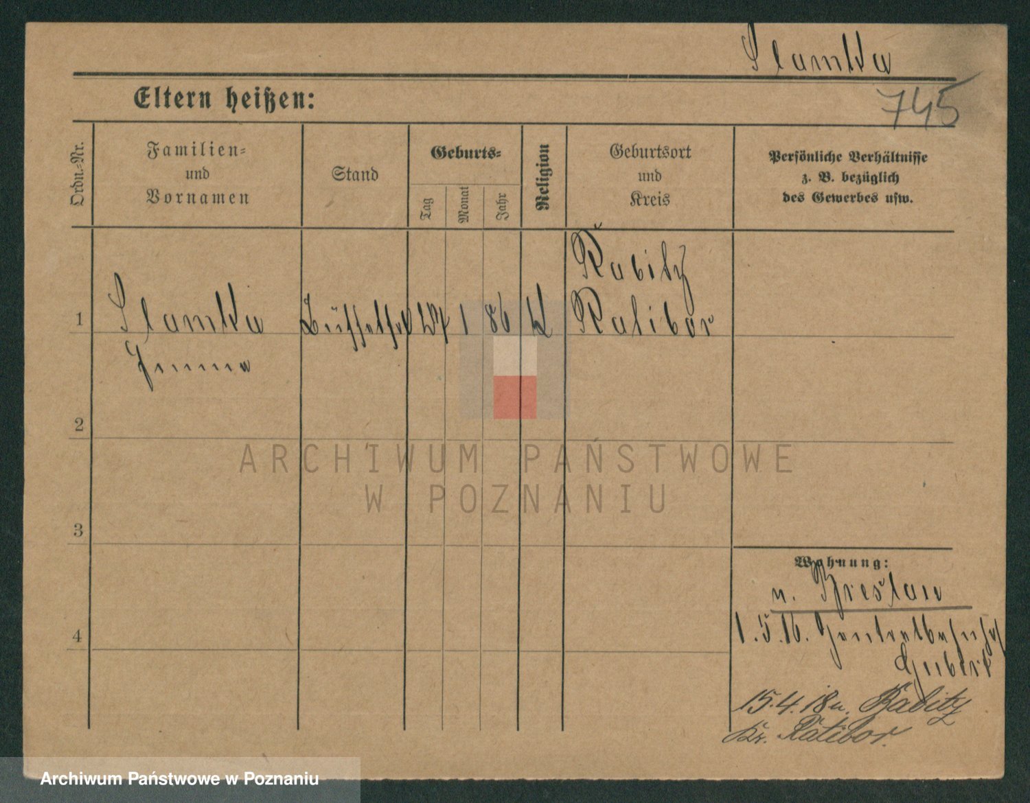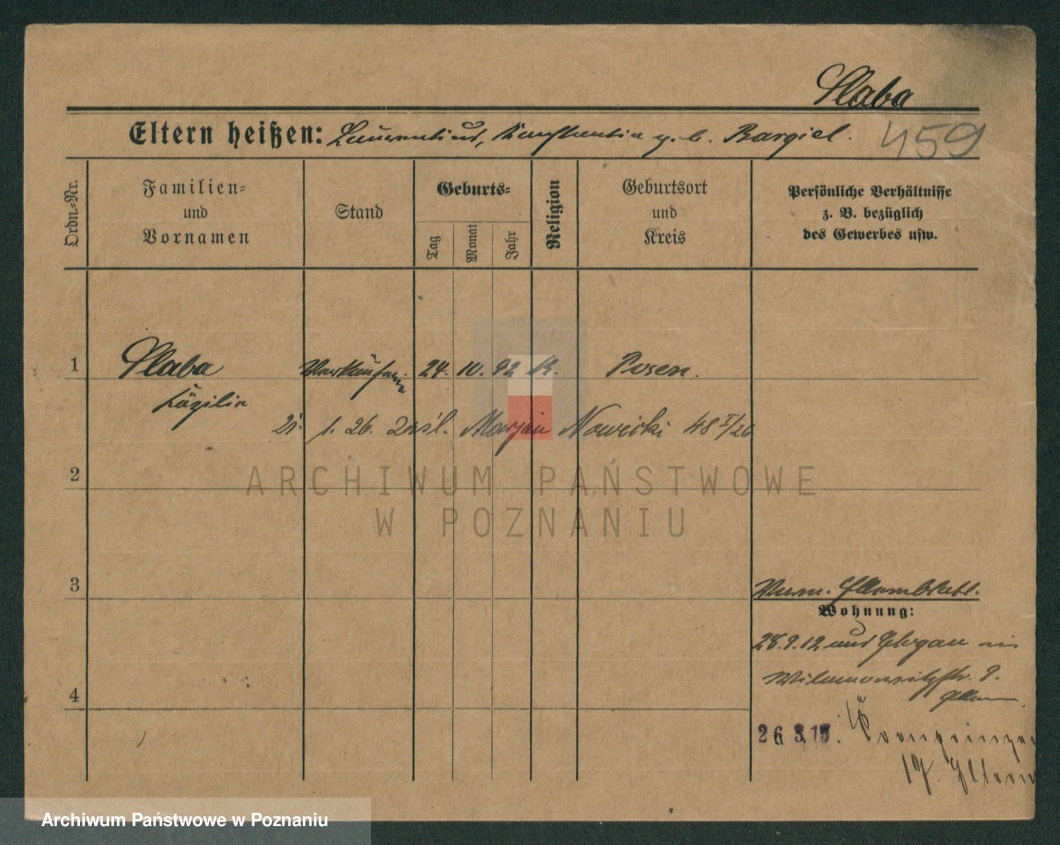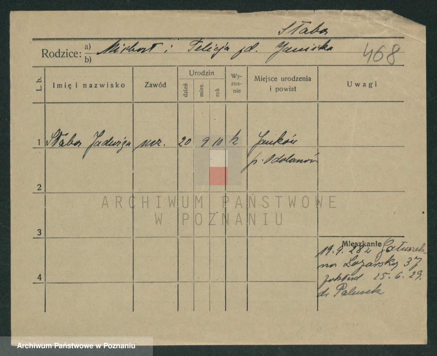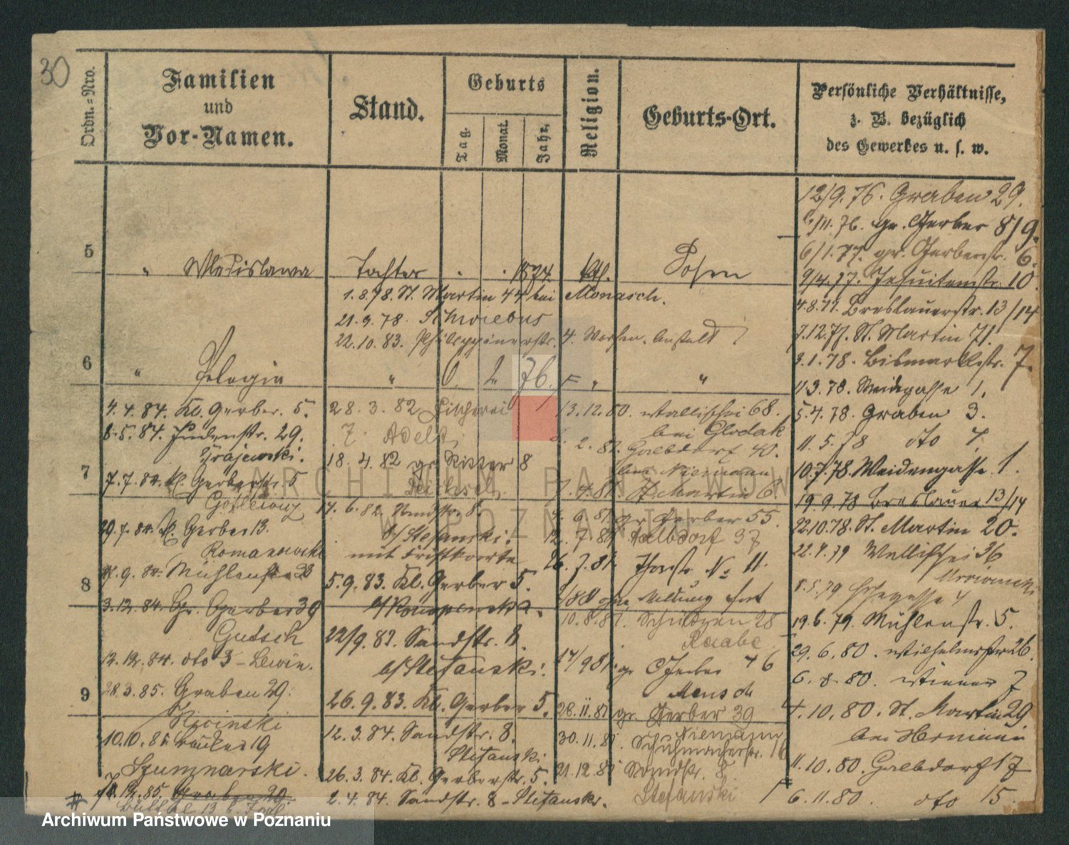 Podgląd karty osobowej dostępny jest po kliknięciu na nazwisko lub ikonkę karty. Można dokonywać powiększenia (ikony na górze) lub przechodzić między kolejnymi skanami (strzałki po bokach).