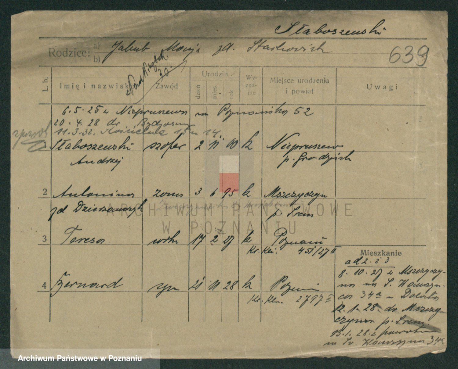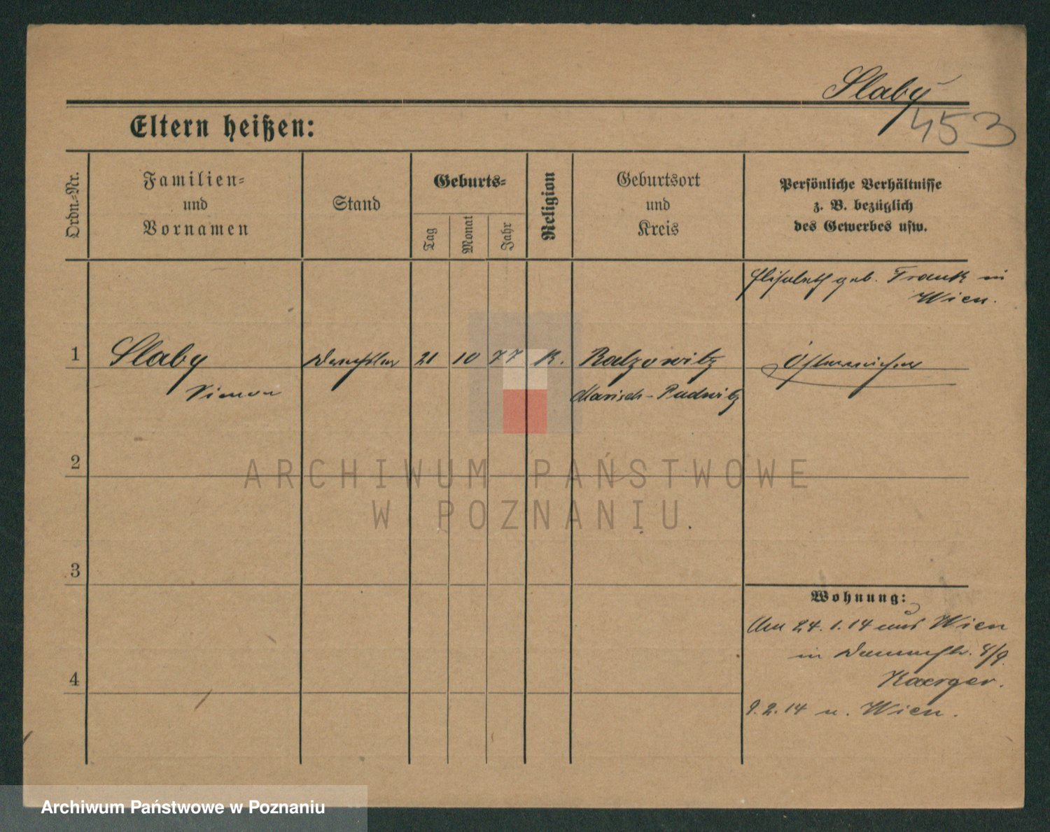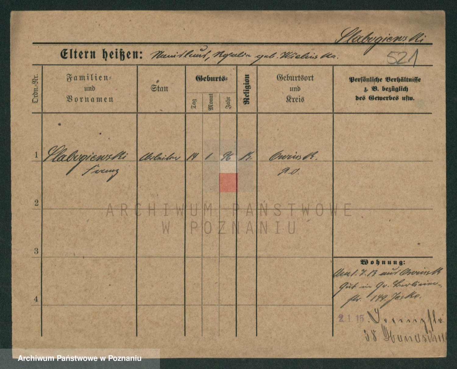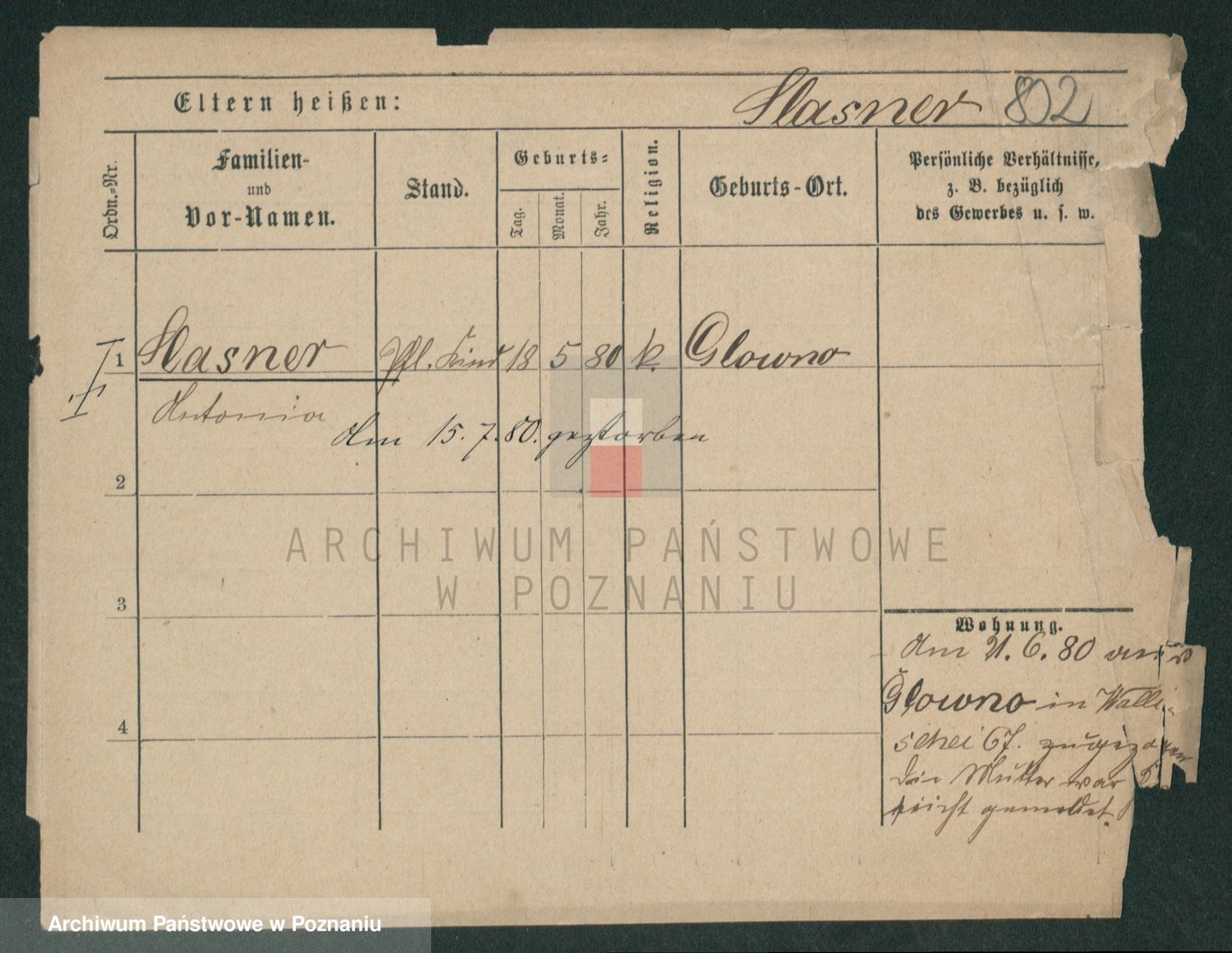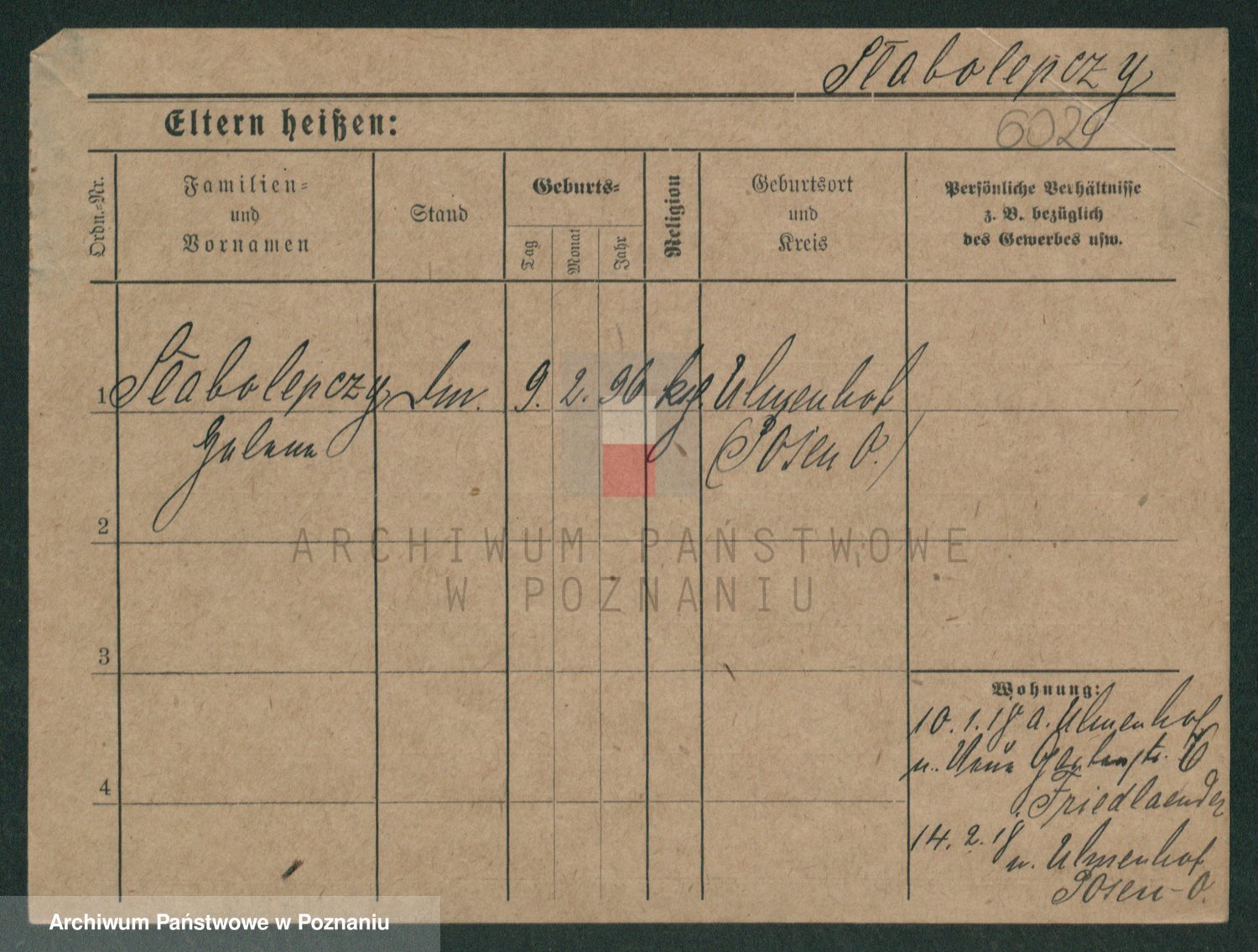 Podgląd karty osobowej dostępny jest po kliknięciu na nazwisko lub ikonkę karty. Można dokonywać powiększenia (ikony na górze) lub przechodzić między kolejnymi skanami (strzałki po bokach).