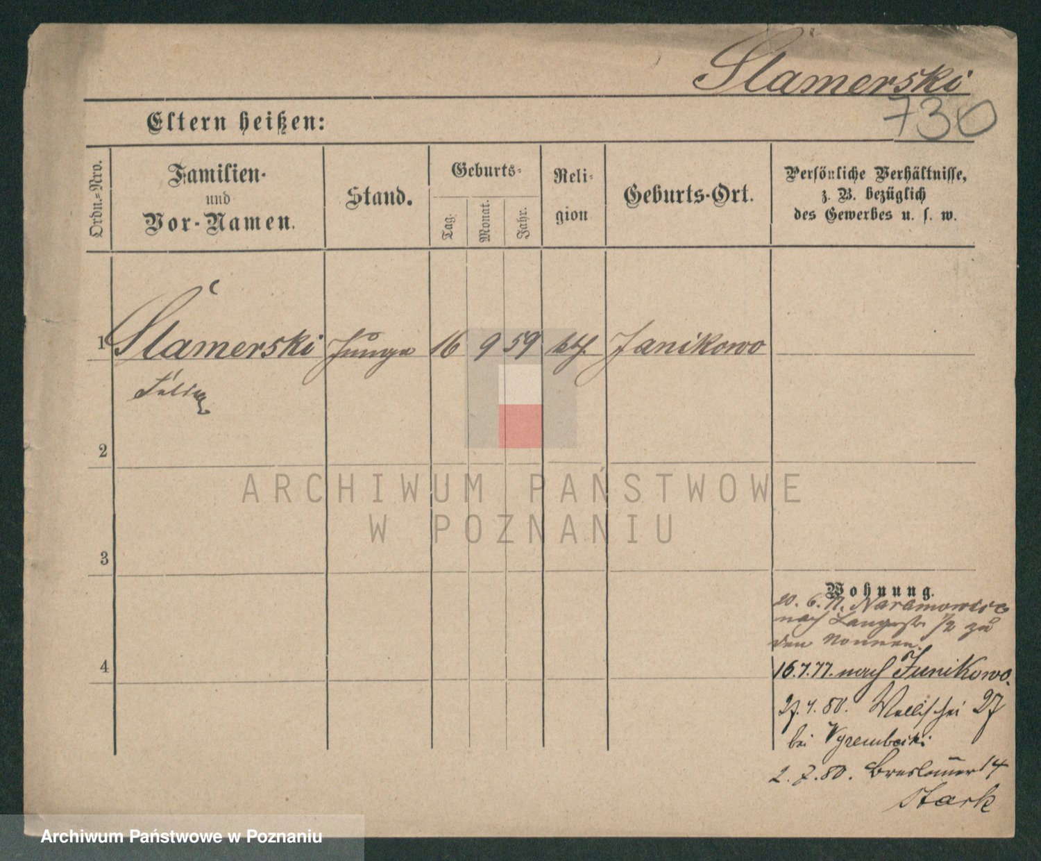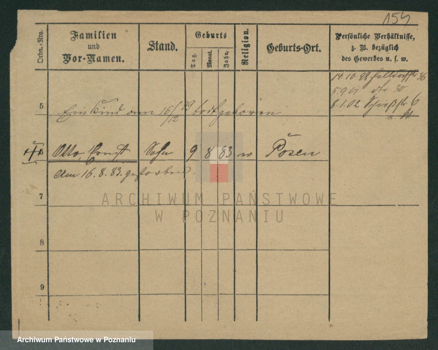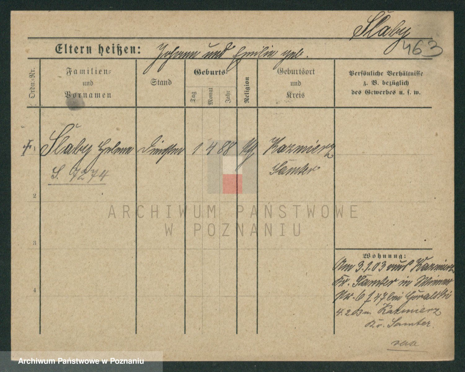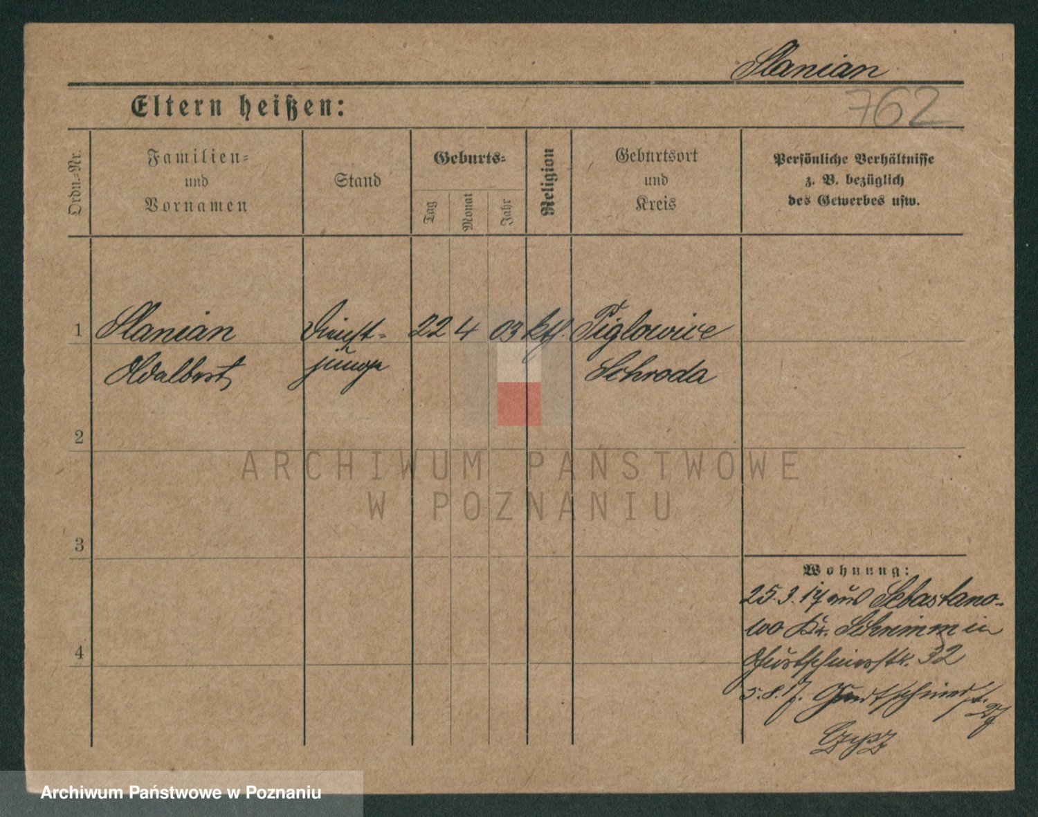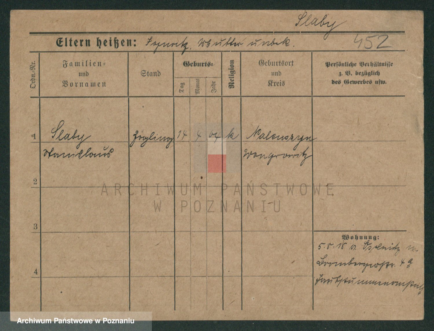Podgląd karty osobowej dostępny jest po kliknięciu na nazwisko lub ikonkę karty. Można dokonywać powiększenia (ikony na górze) lub przechodzić między kolejnymi skanami (strzałki po bokach).