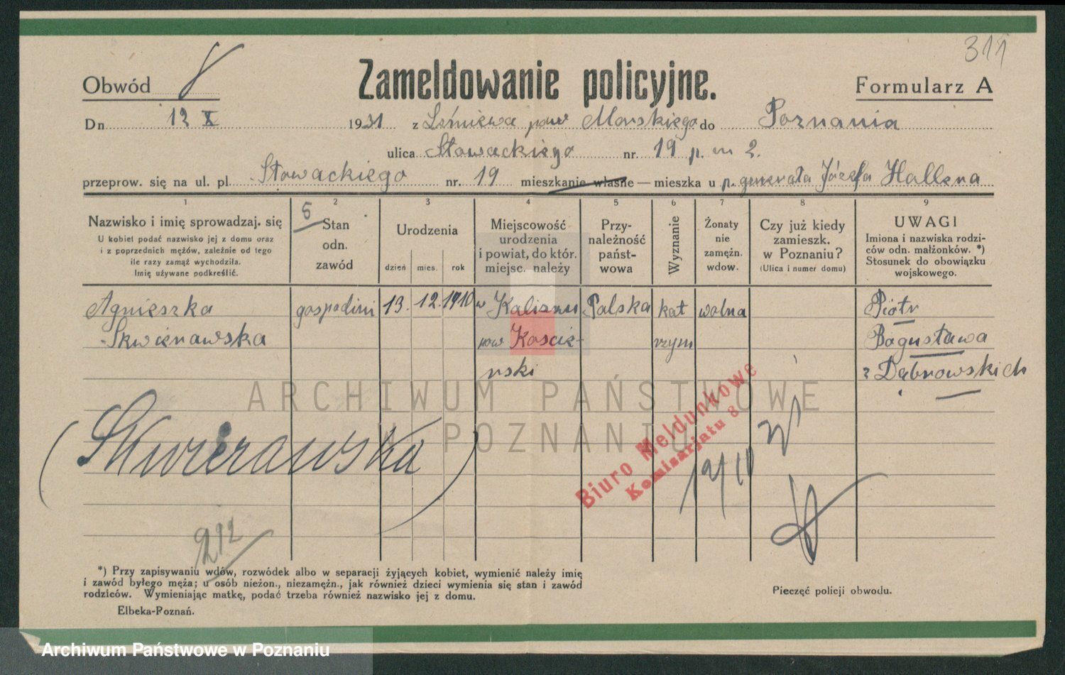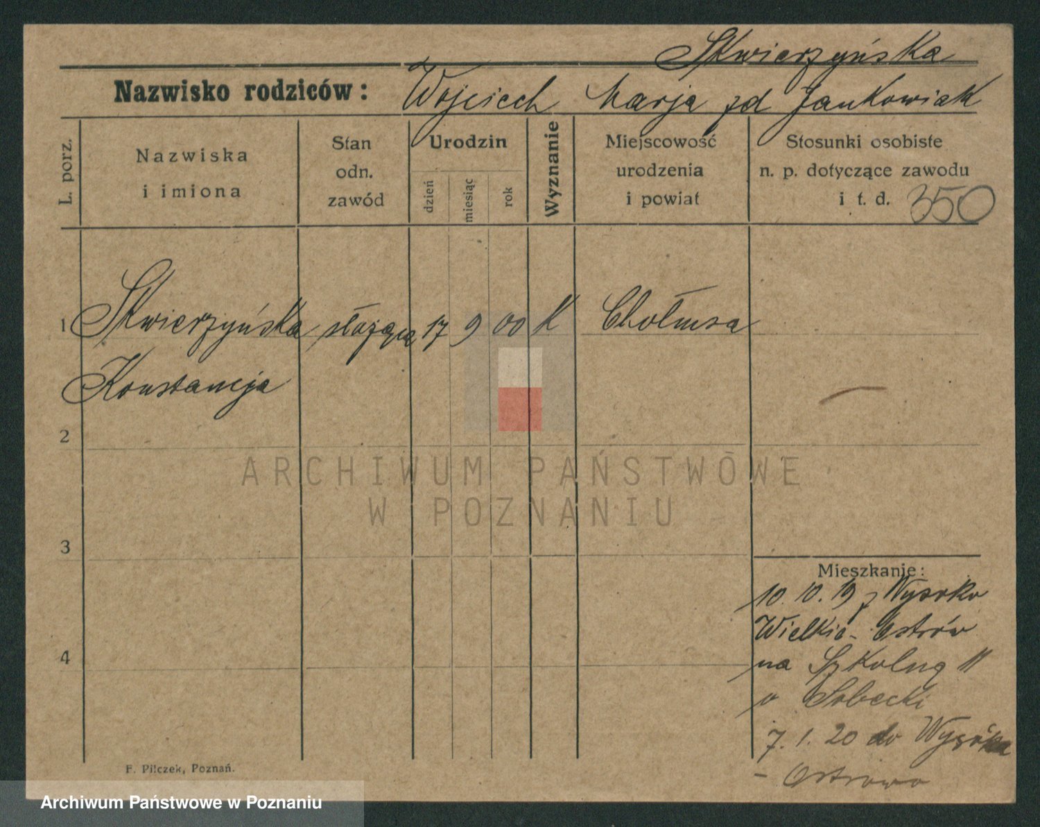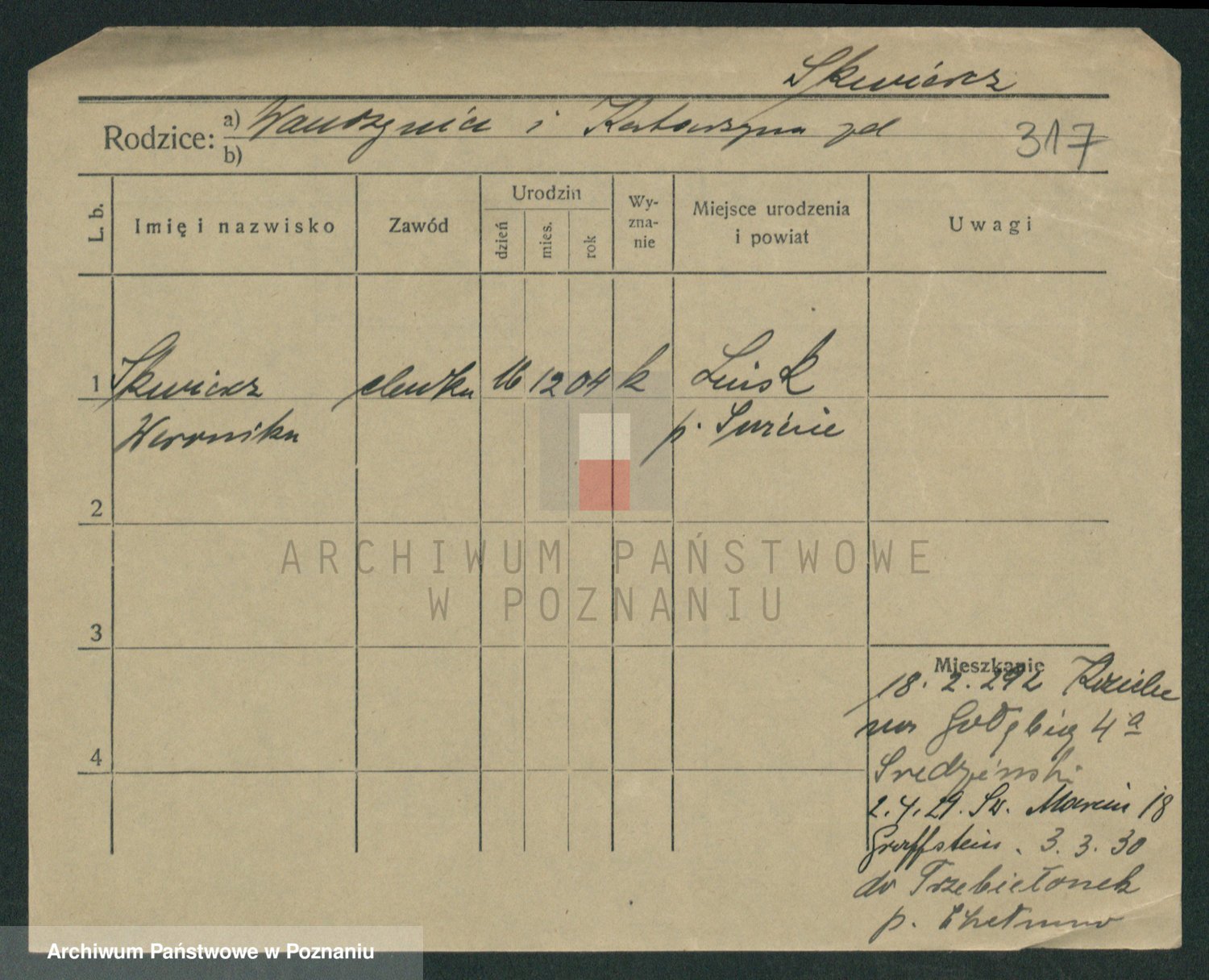 Skórzewska z d. Piechocka, Franziska