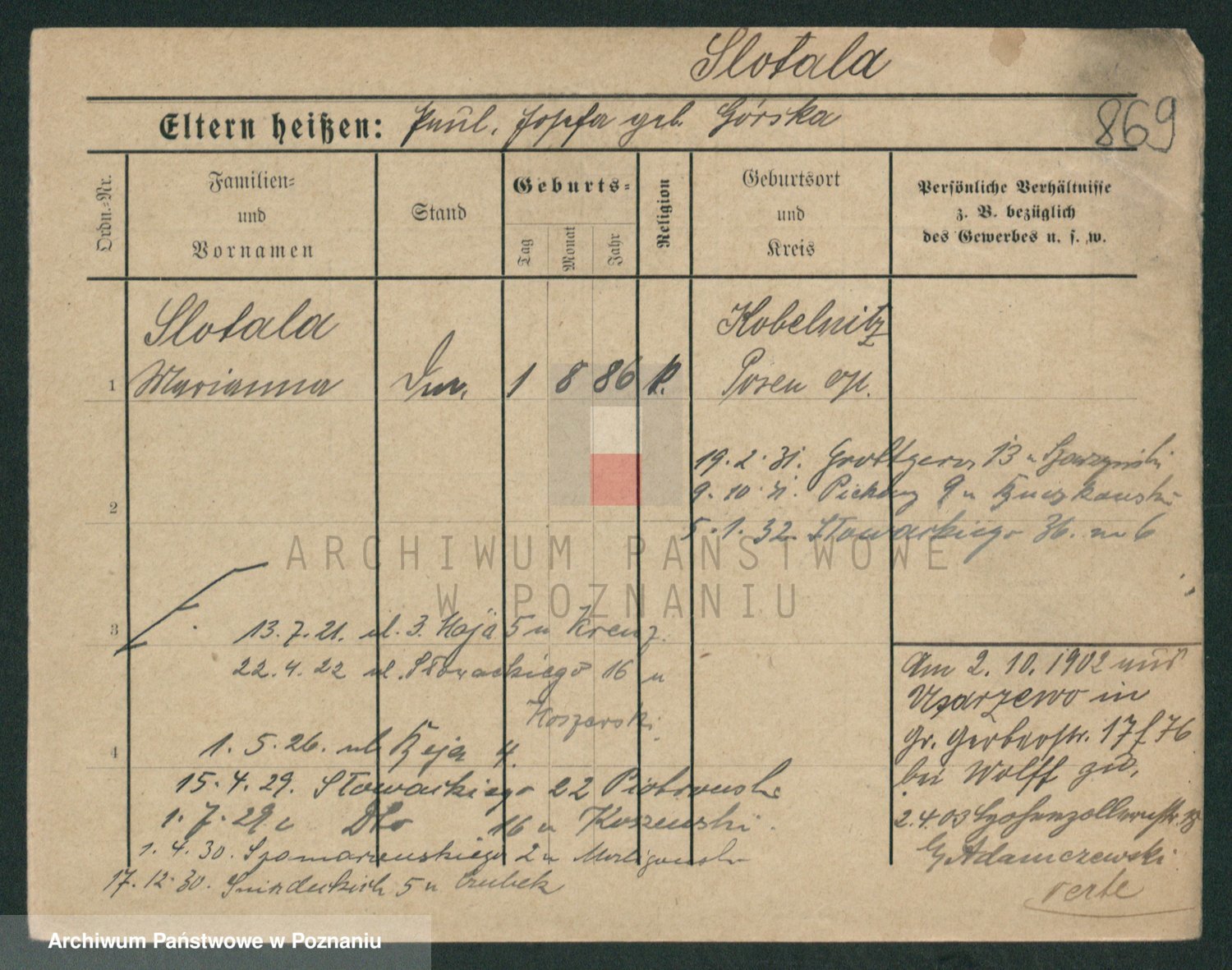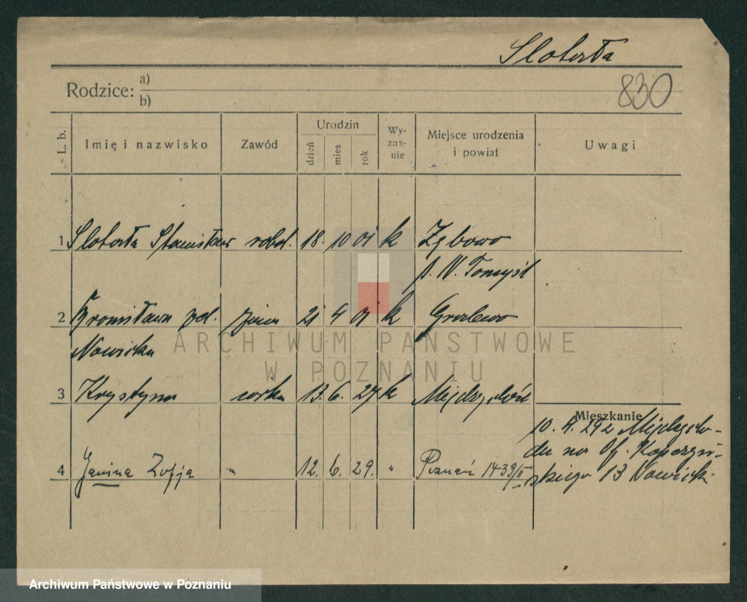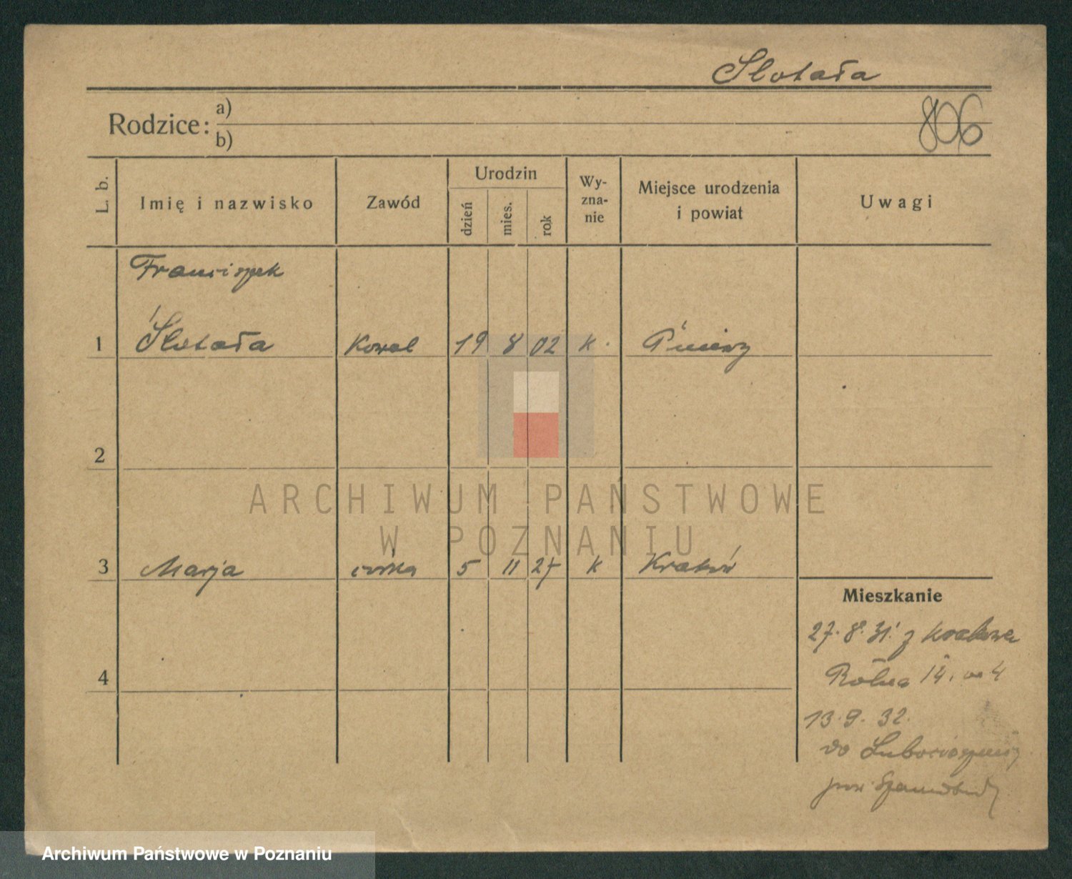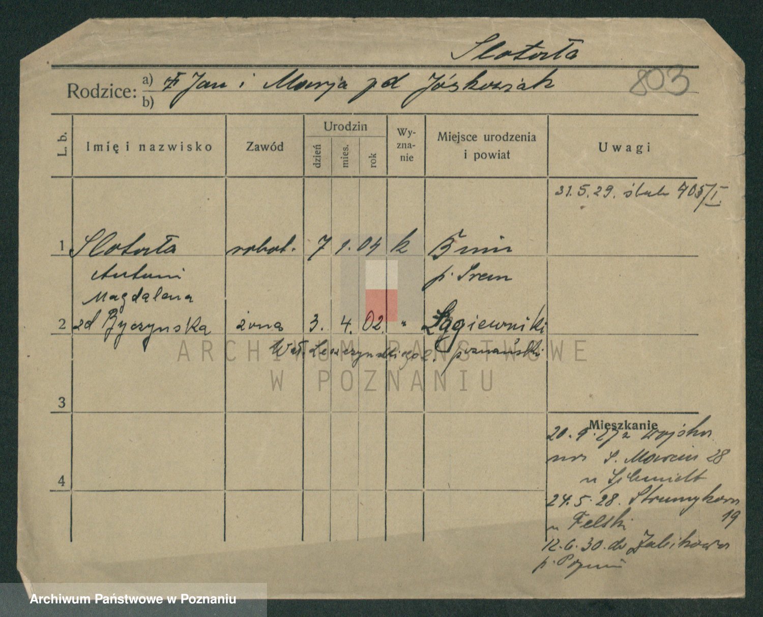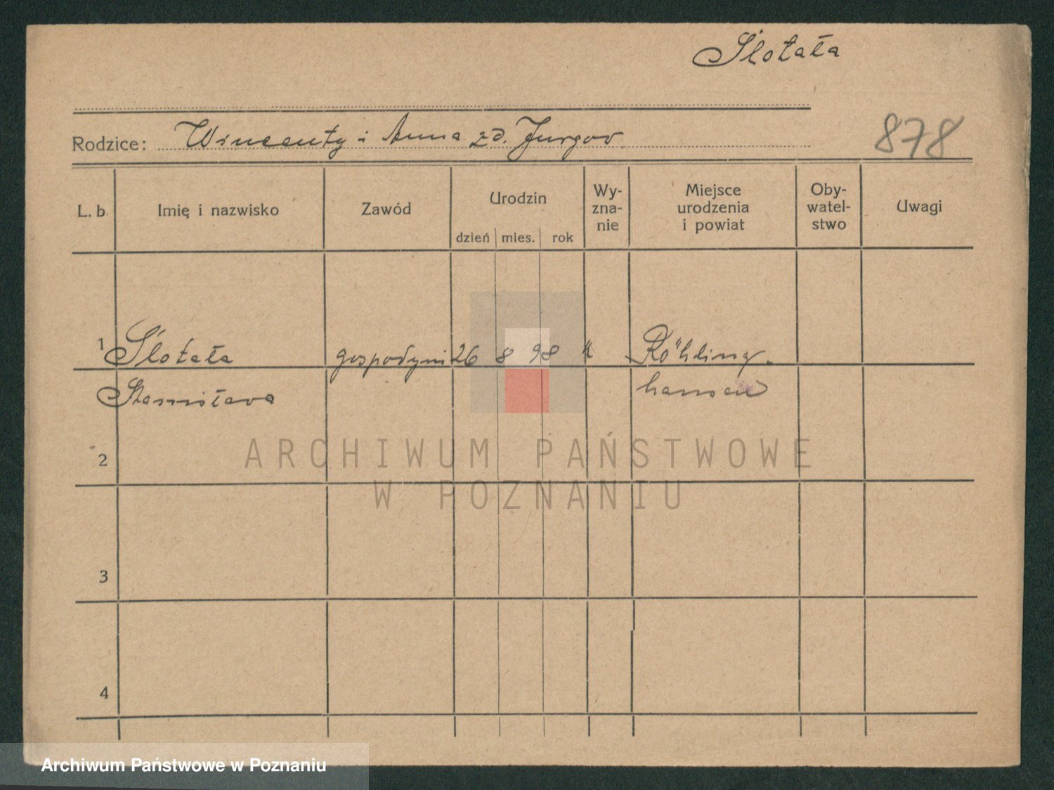Slotala z d. Jozkowiak, Marja