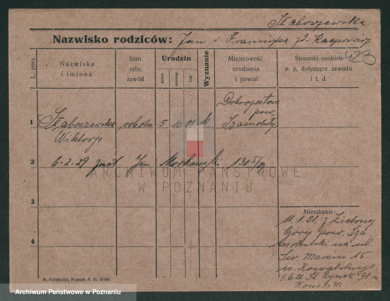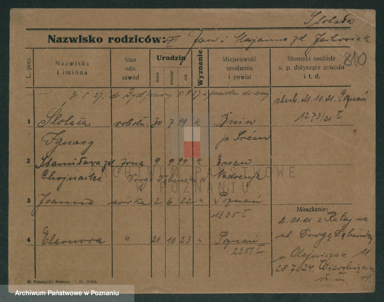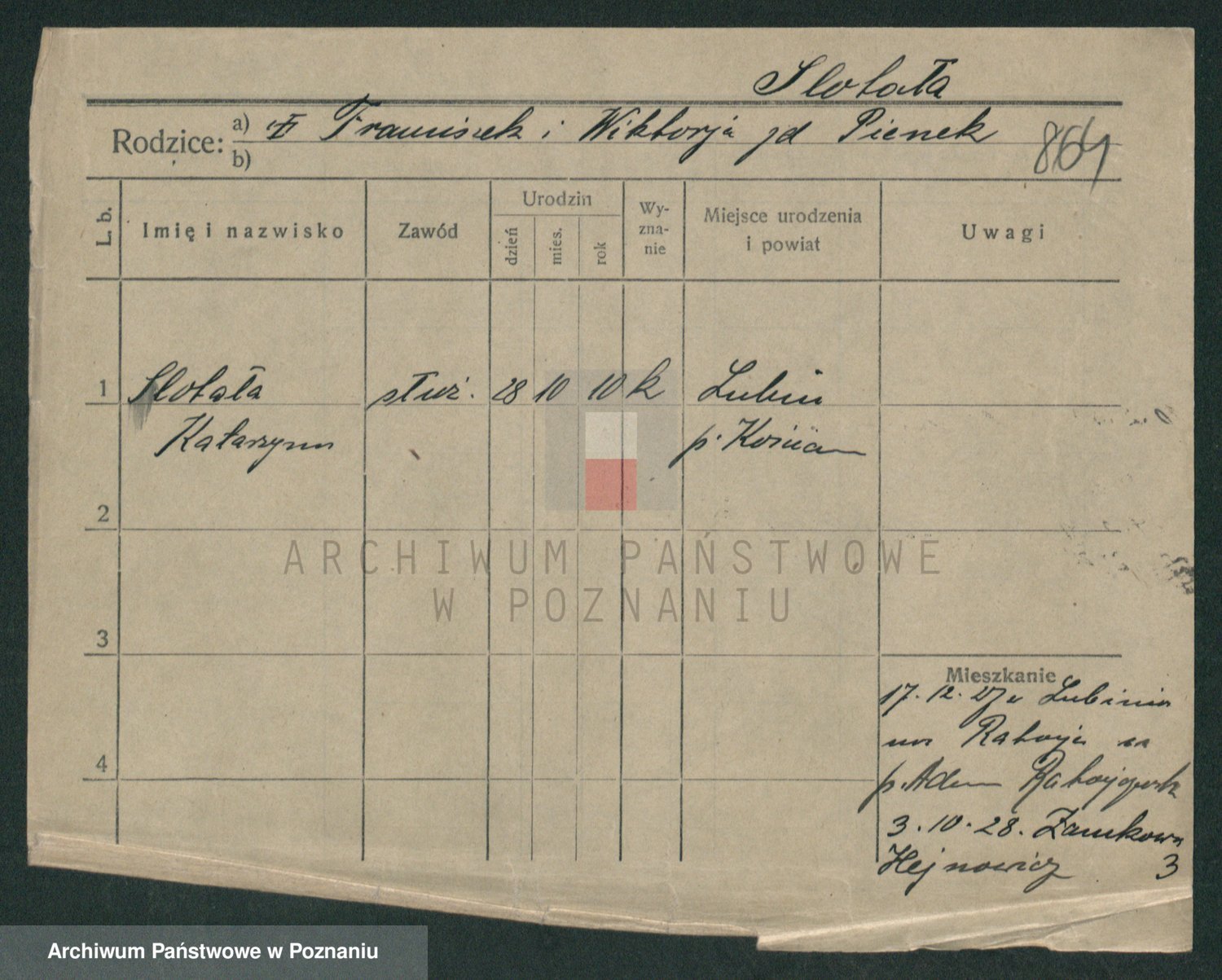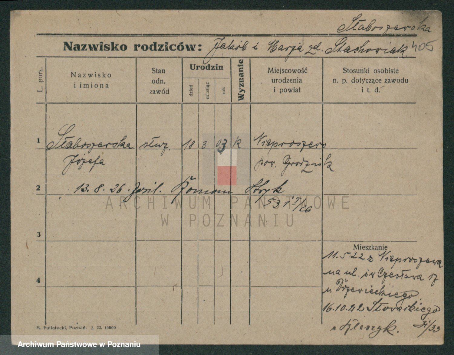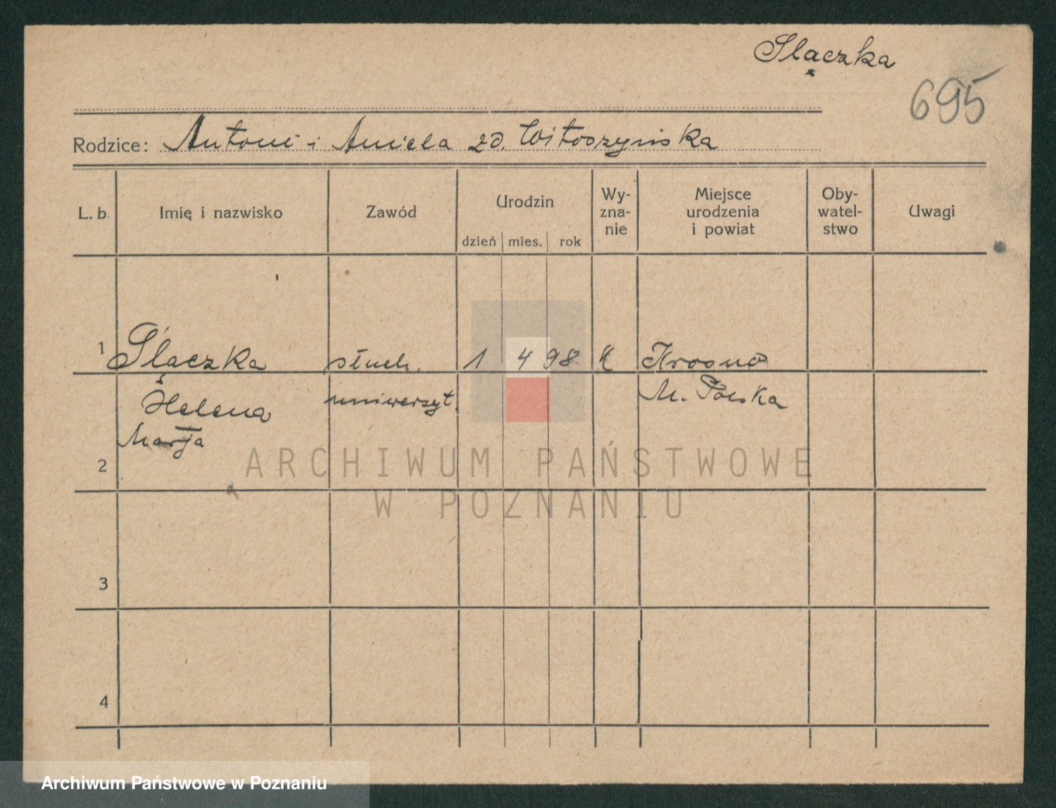Slotala z d. Jozkowiak, Marja