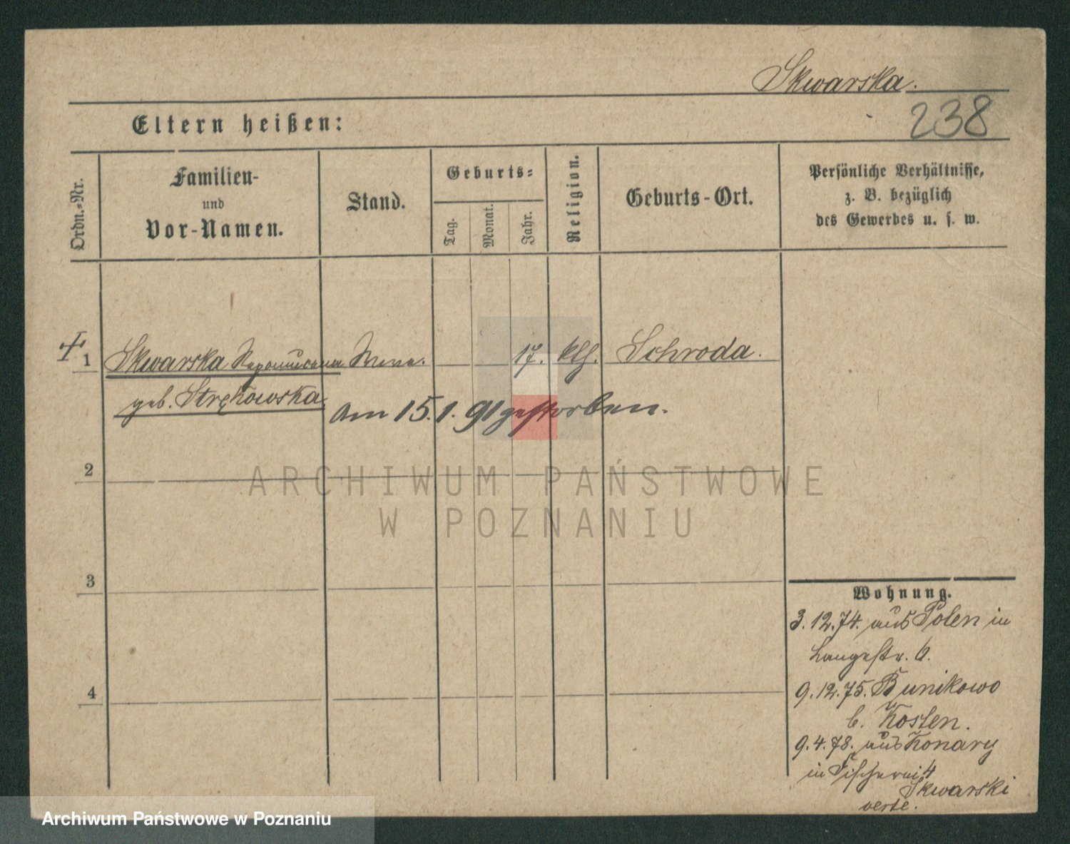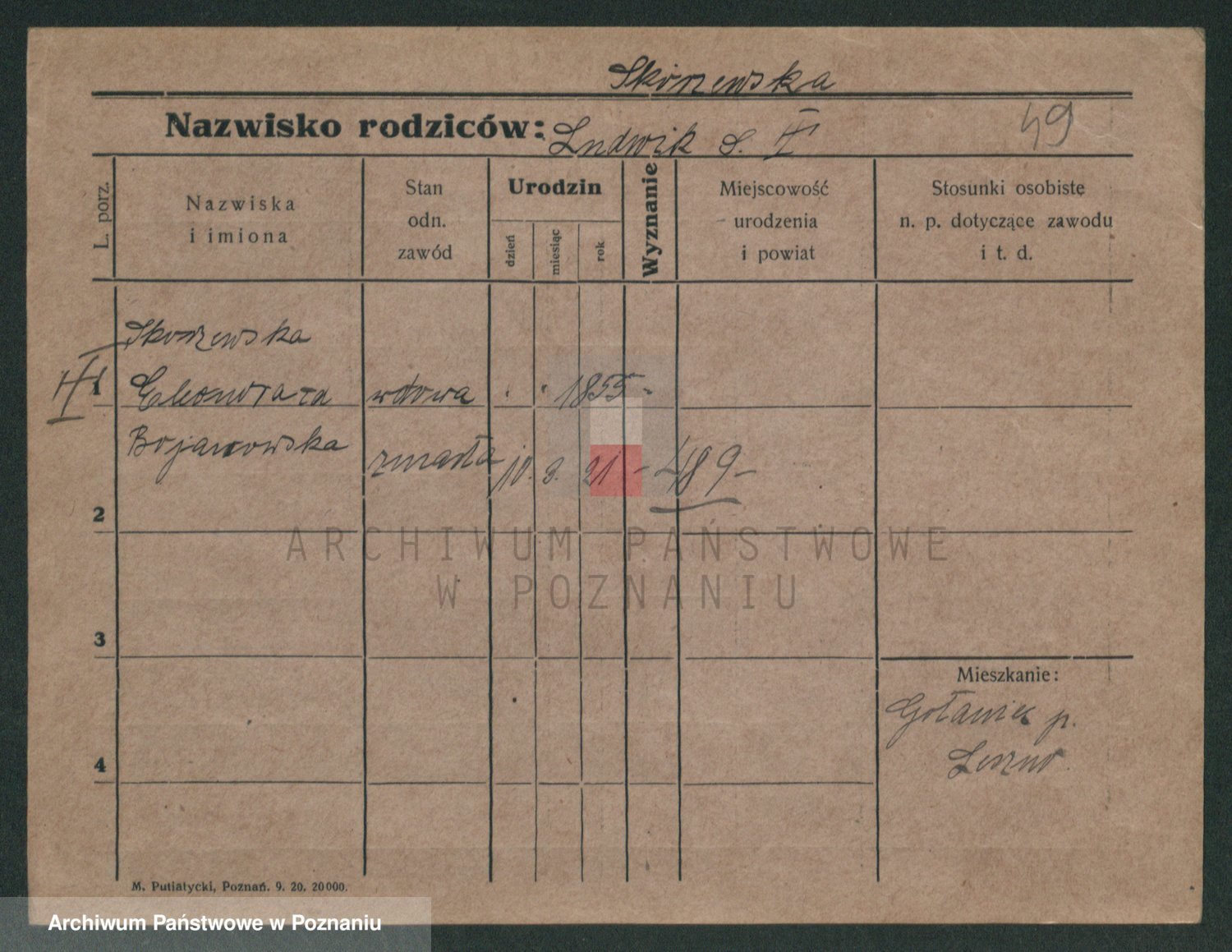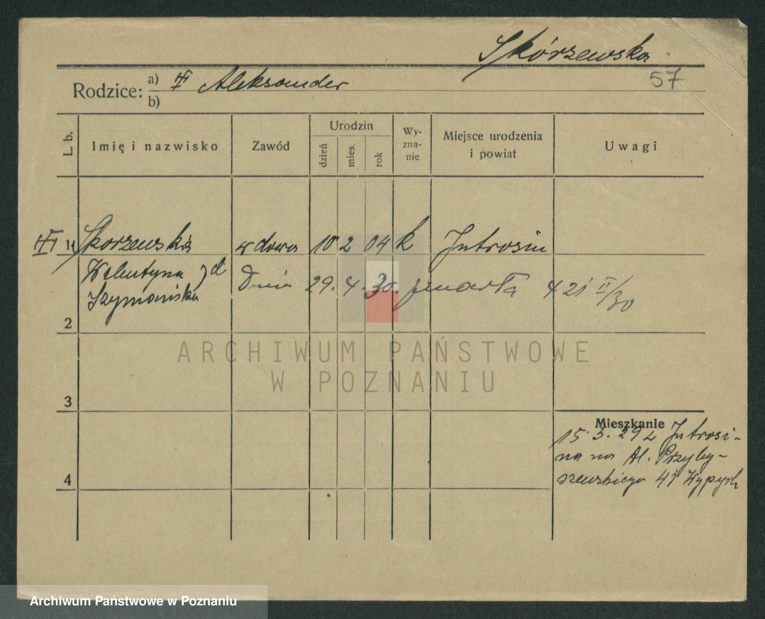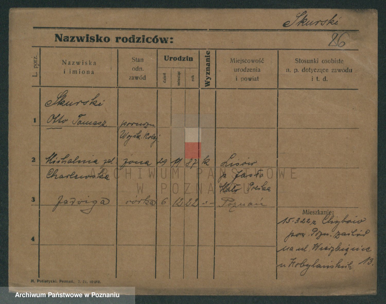 Skórzewski z d. Jabłońska, Alojzja
