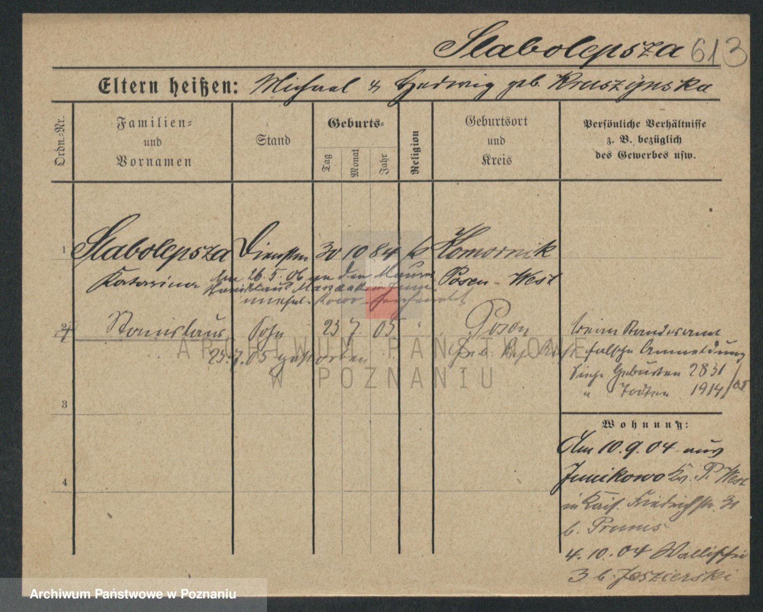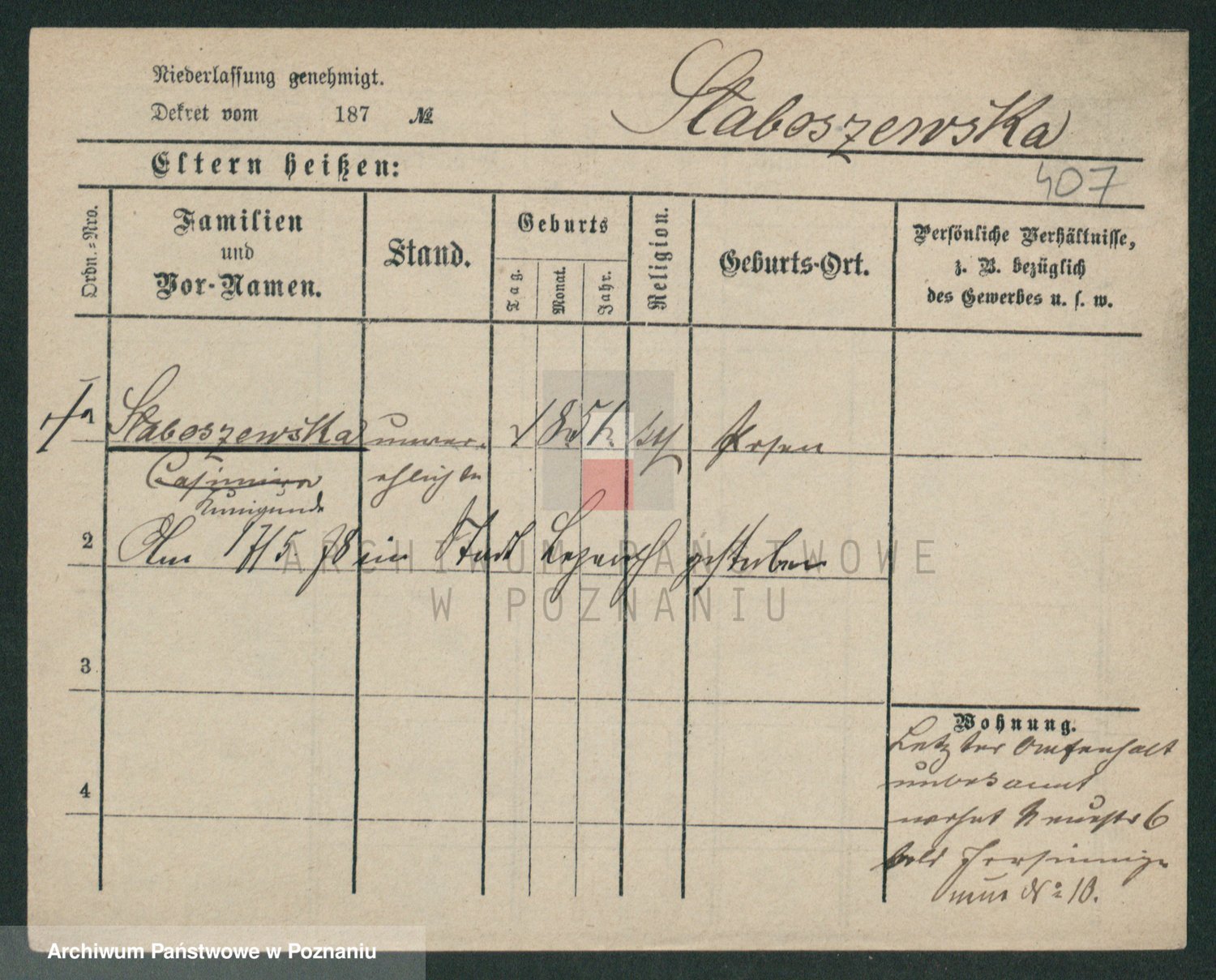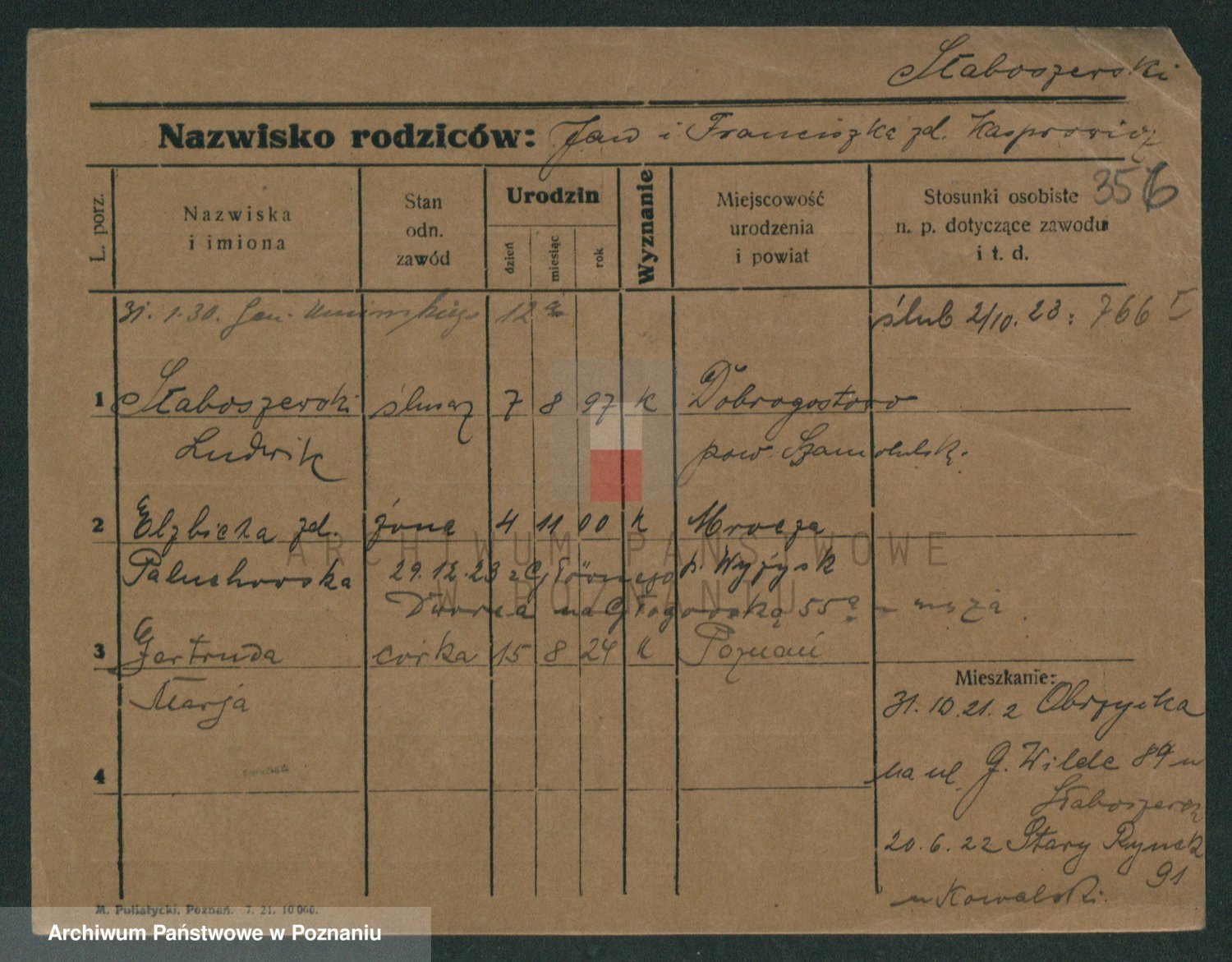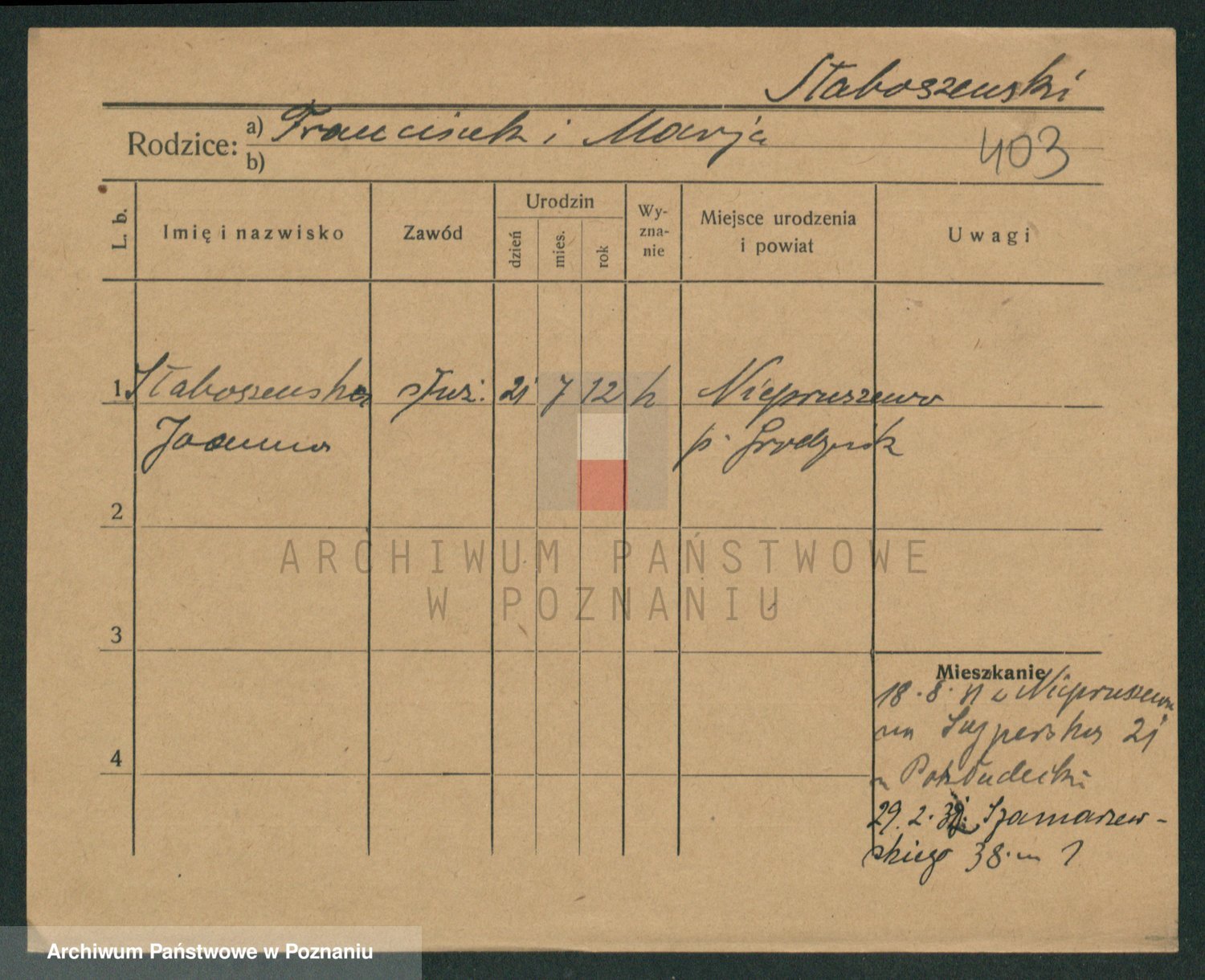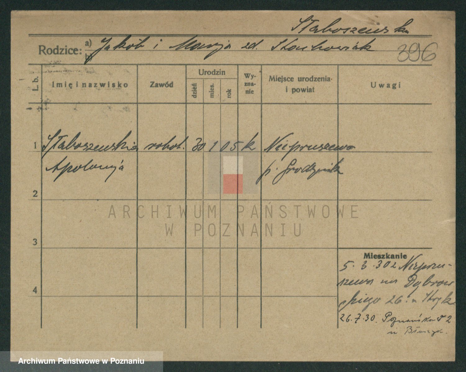 Skórzewski z d. Jabłońska, Alojzja