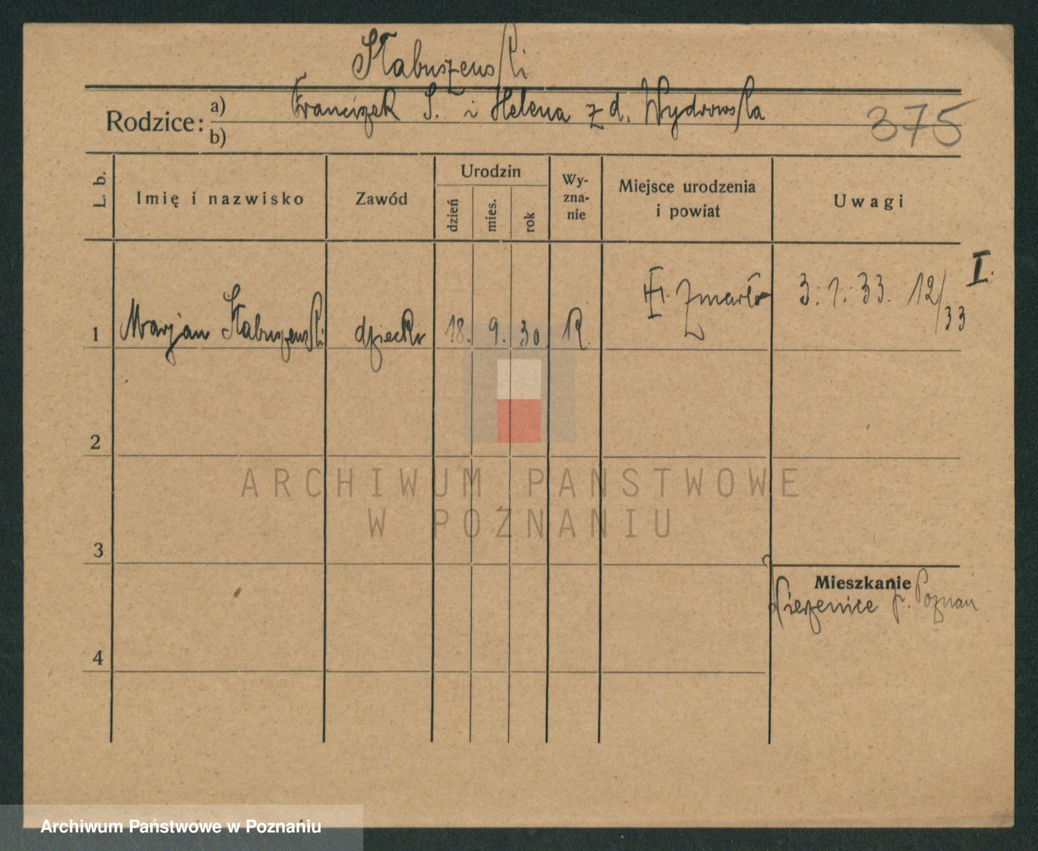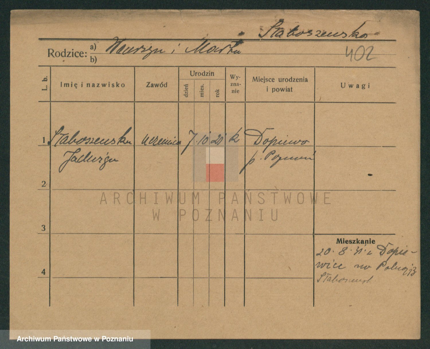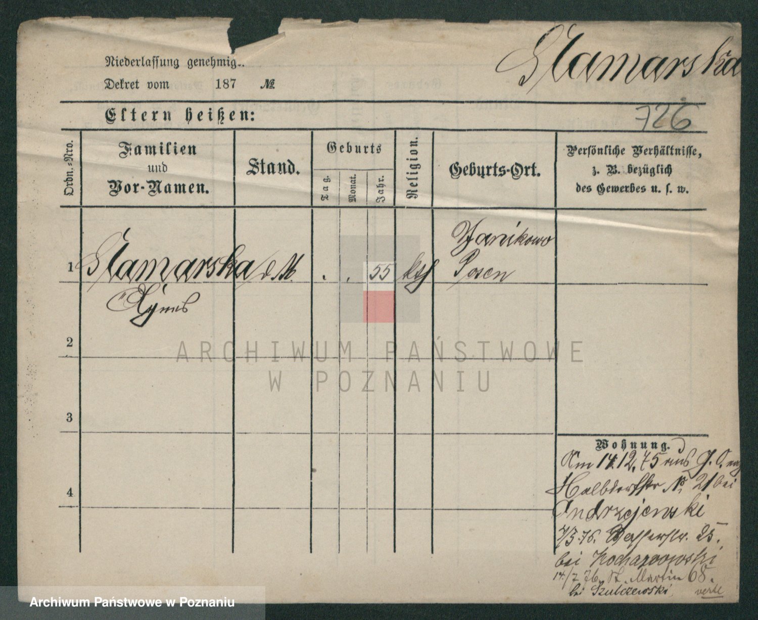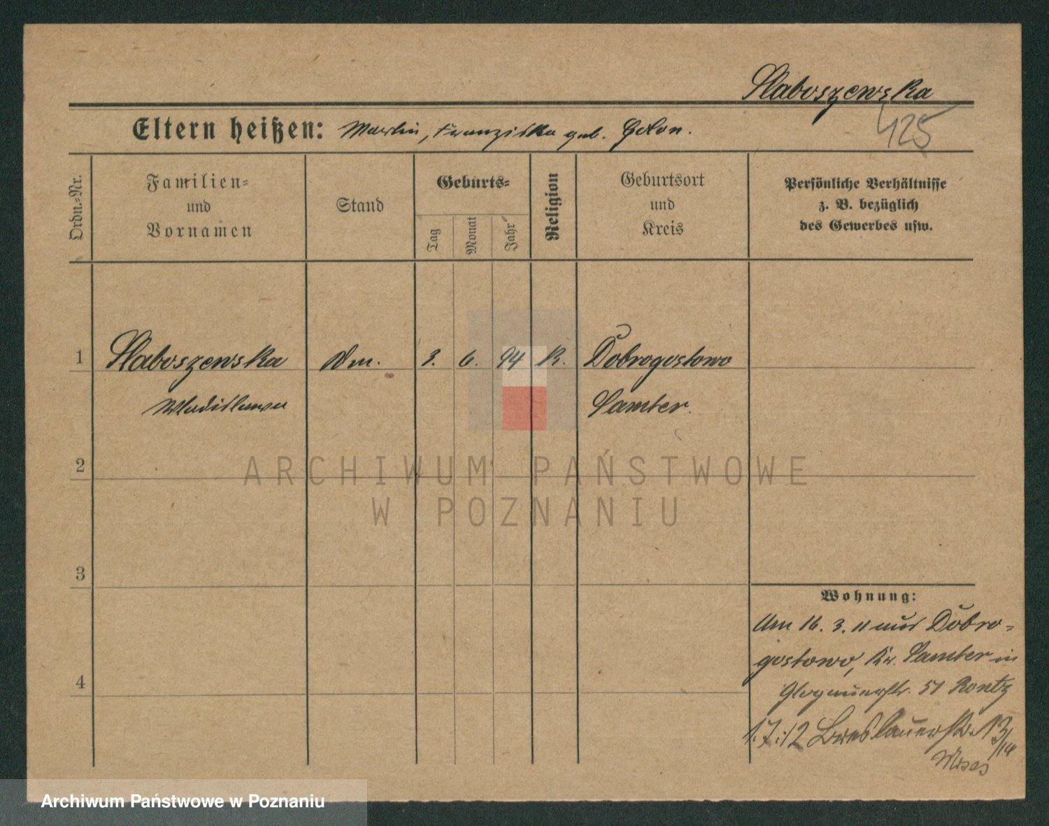 Skórzewski z d. Jabłońska, Alojzja
