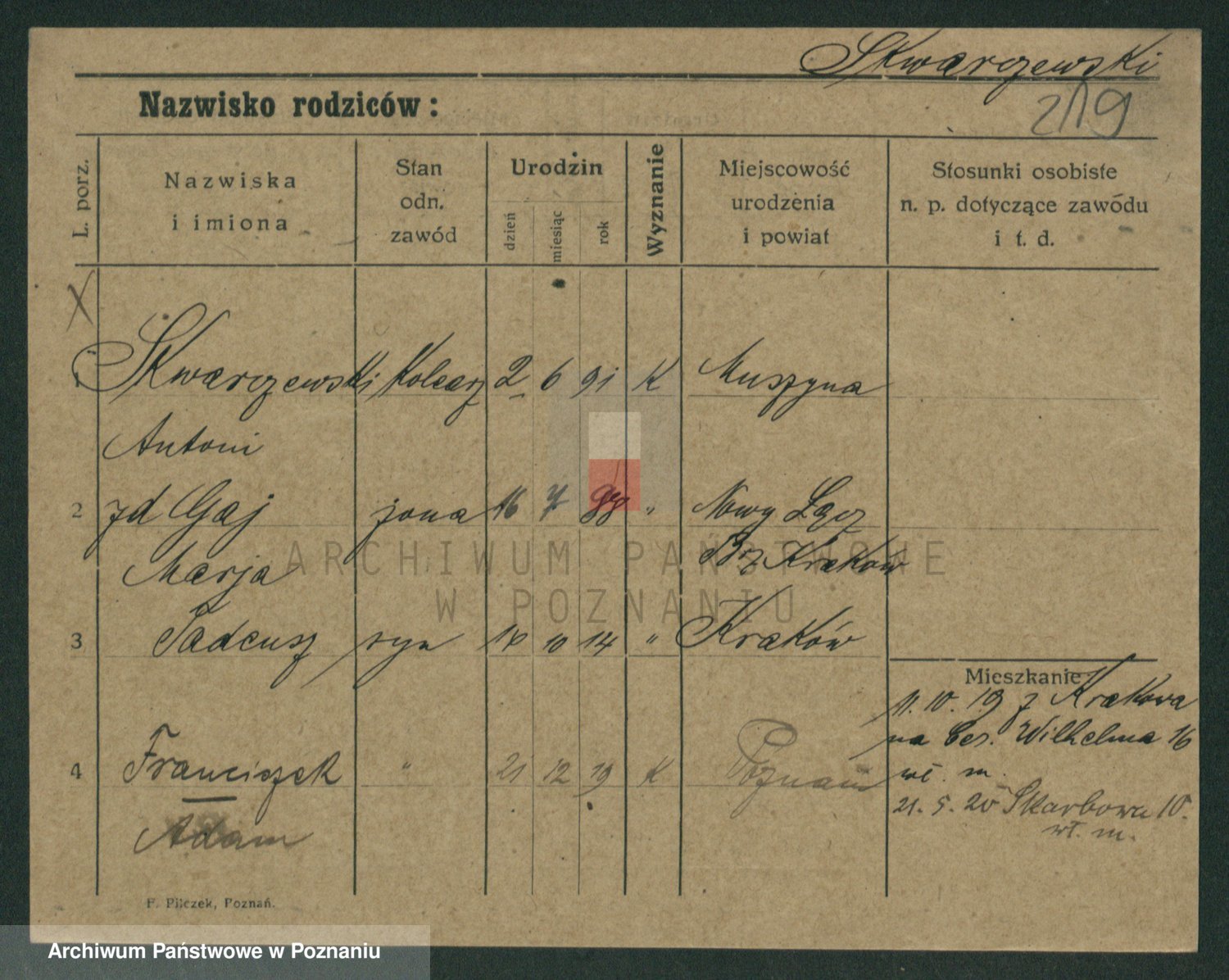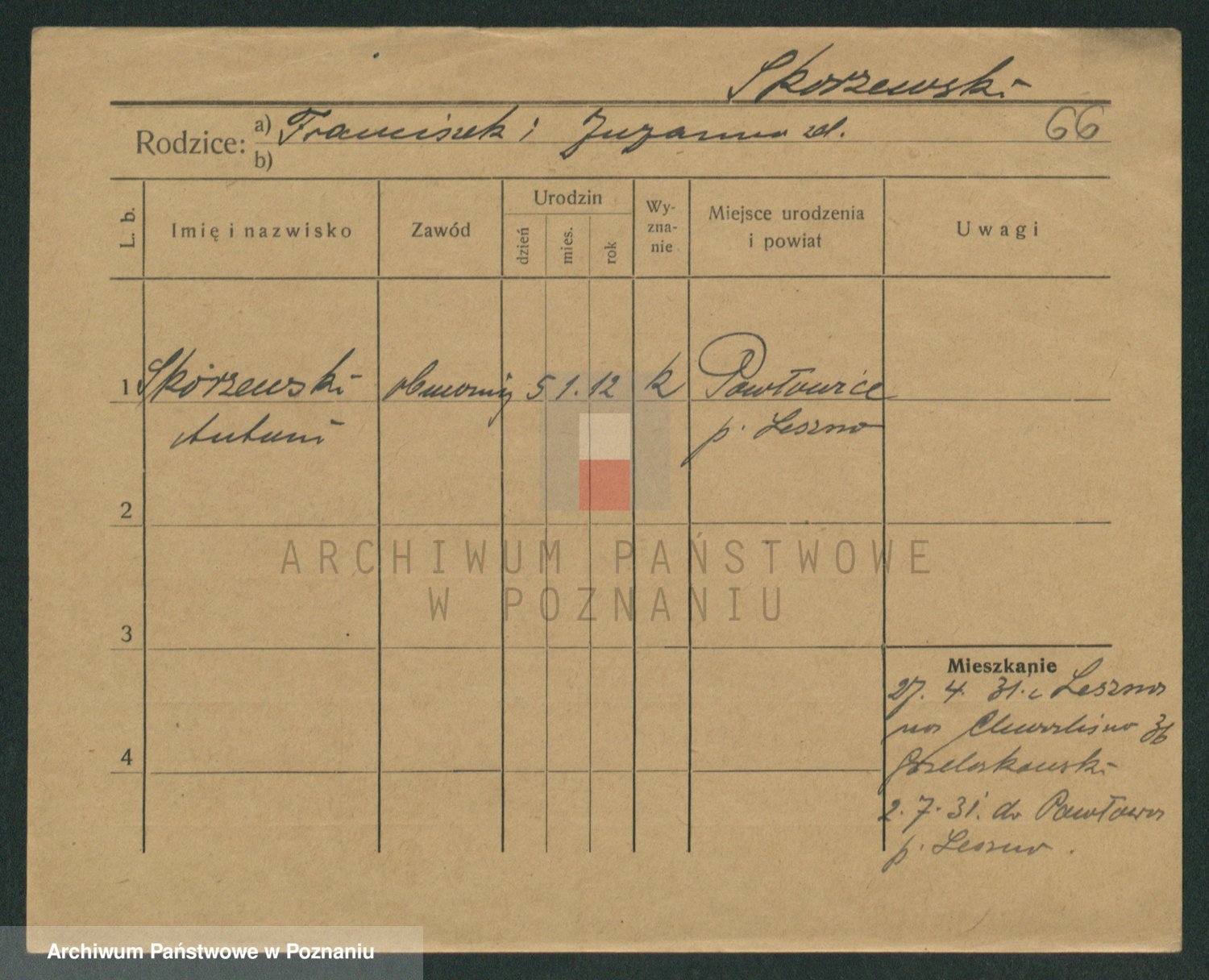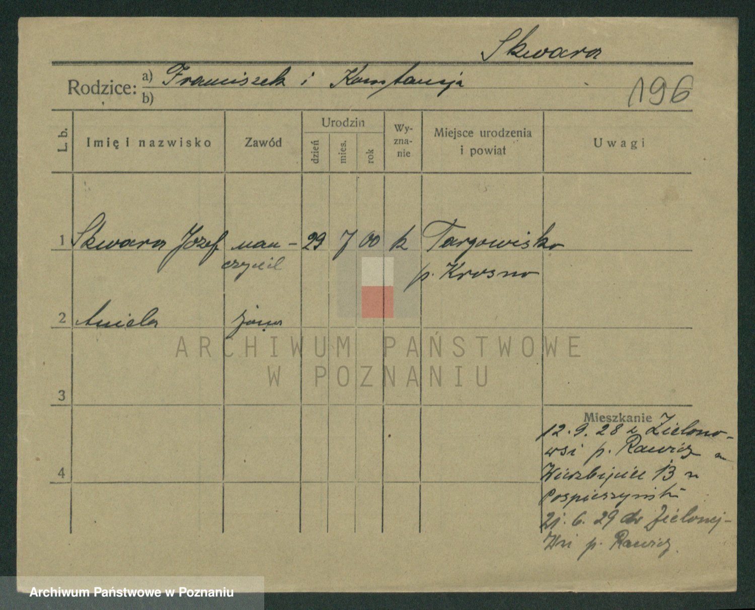 Skórzak z d. Kwiczor, Franciszka