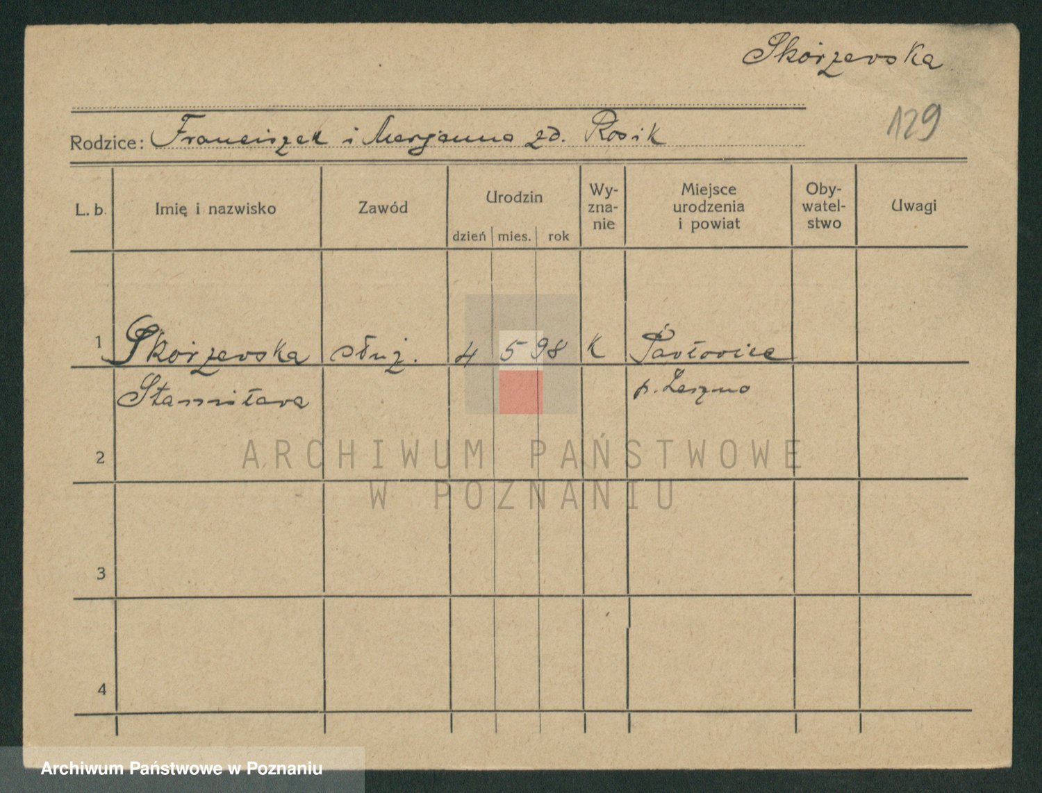 Skorzewski z d. Wrożek, Stanisława