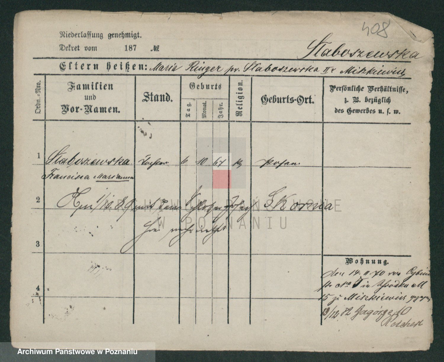 Skorzewski z d. Piechocka, Franziska