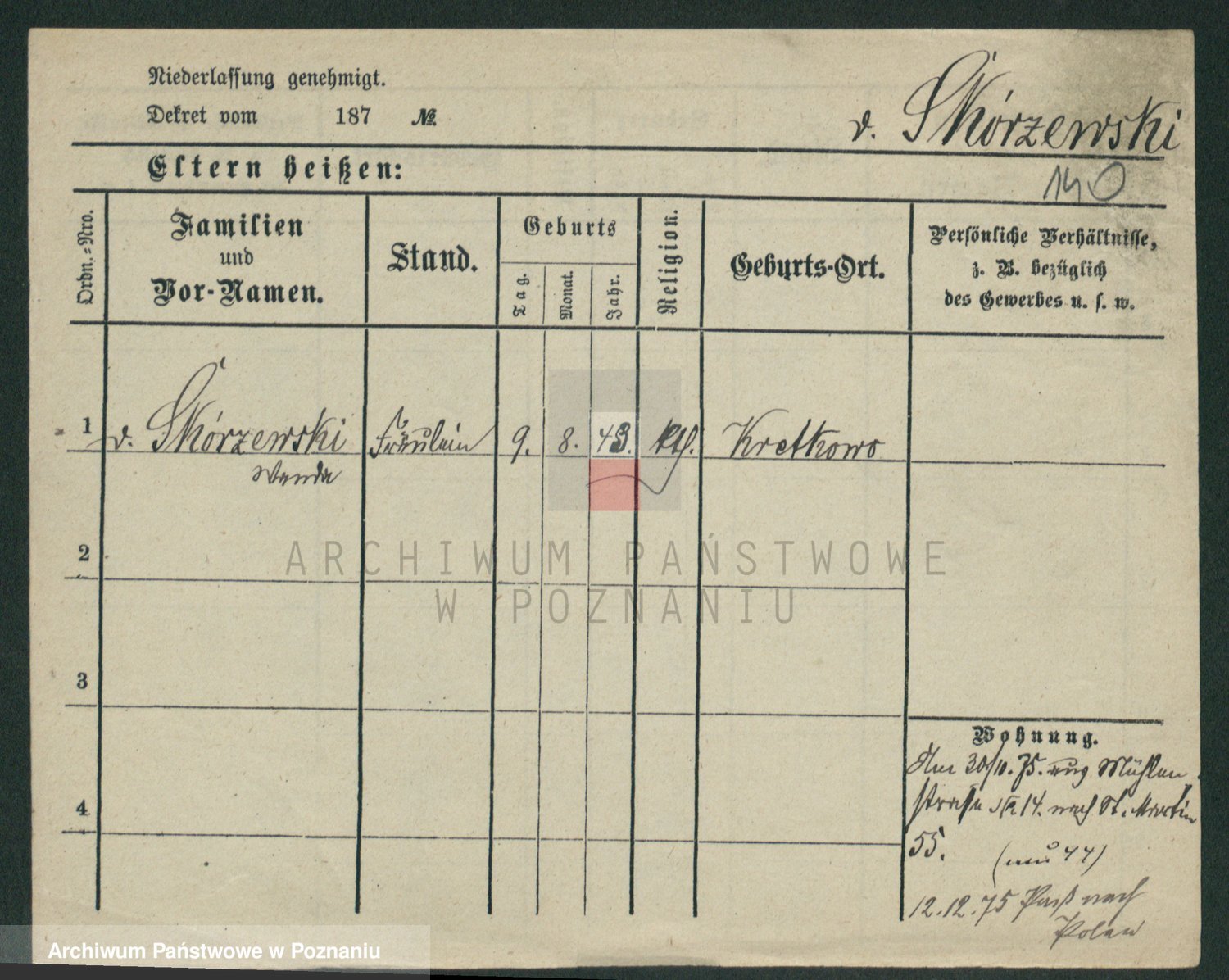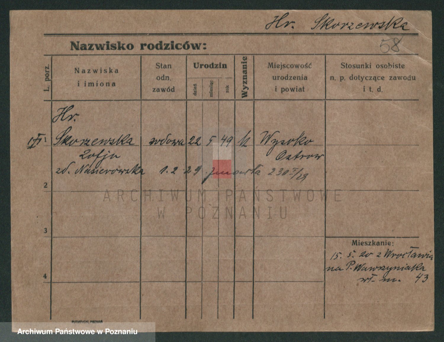 Skorzewski z d. Grodzka, Antonie