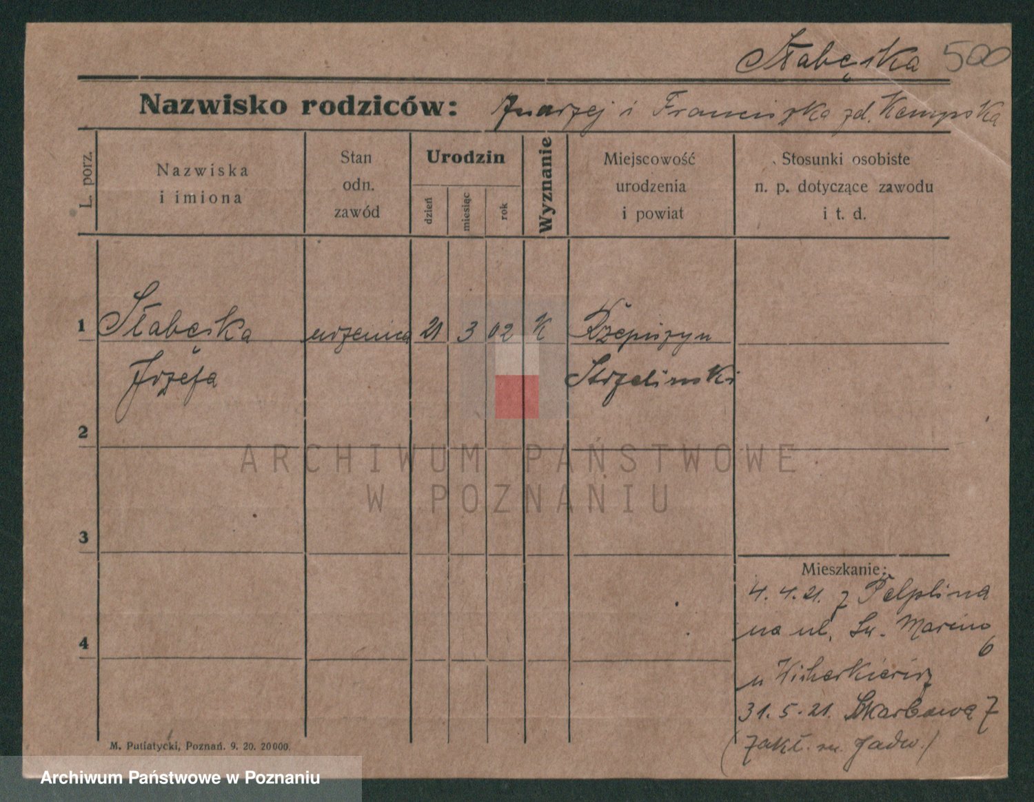 Skorzewska z d. Kręska, Józefa