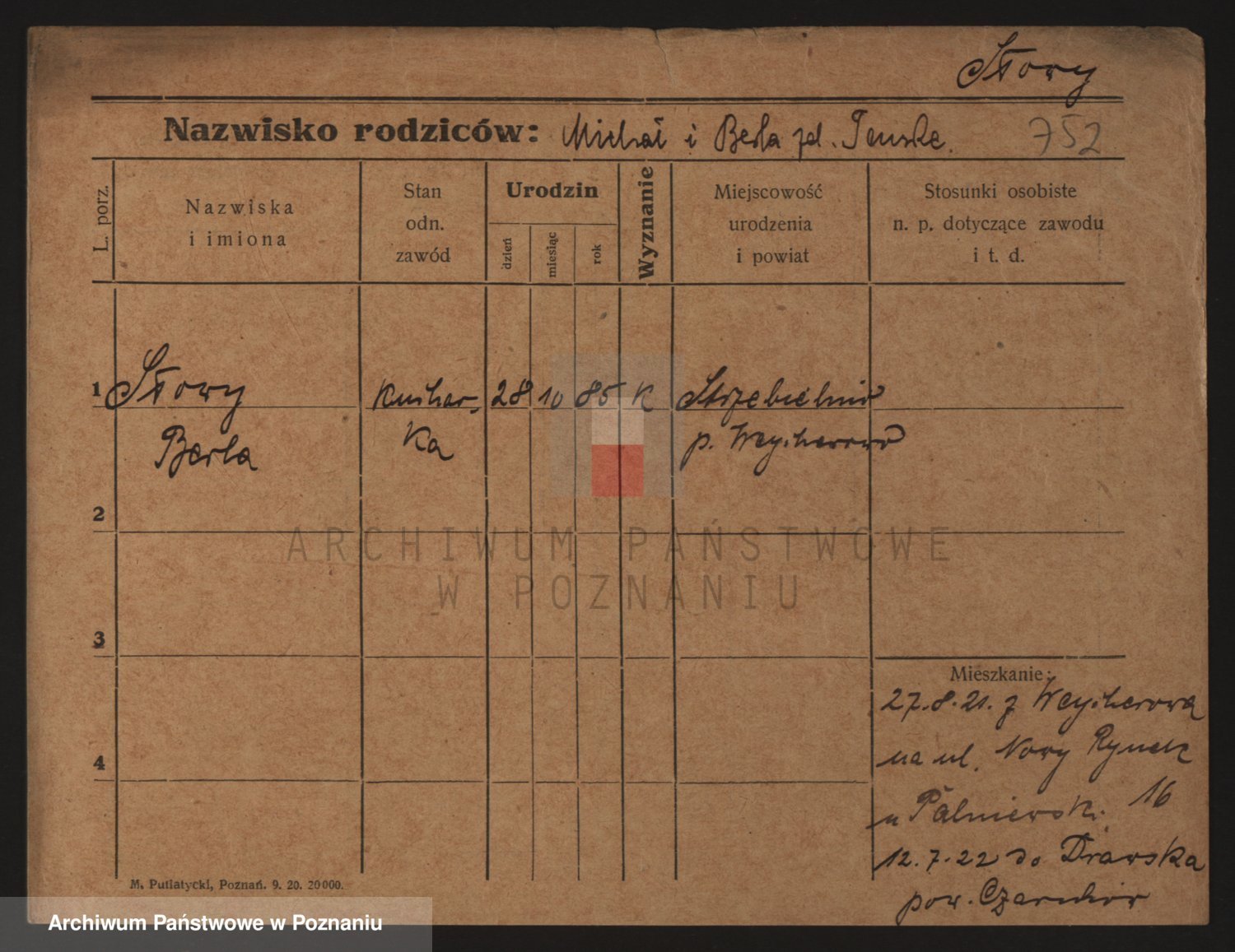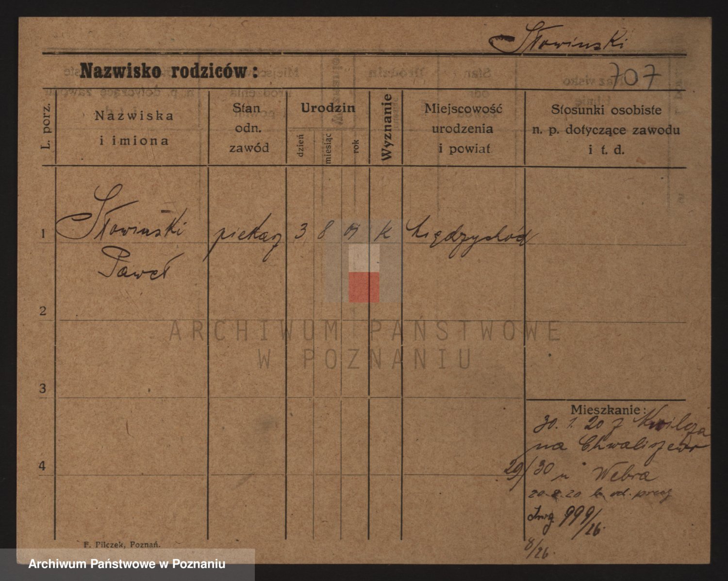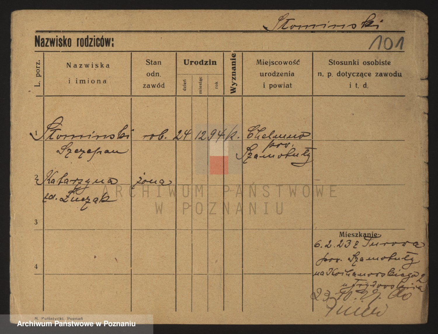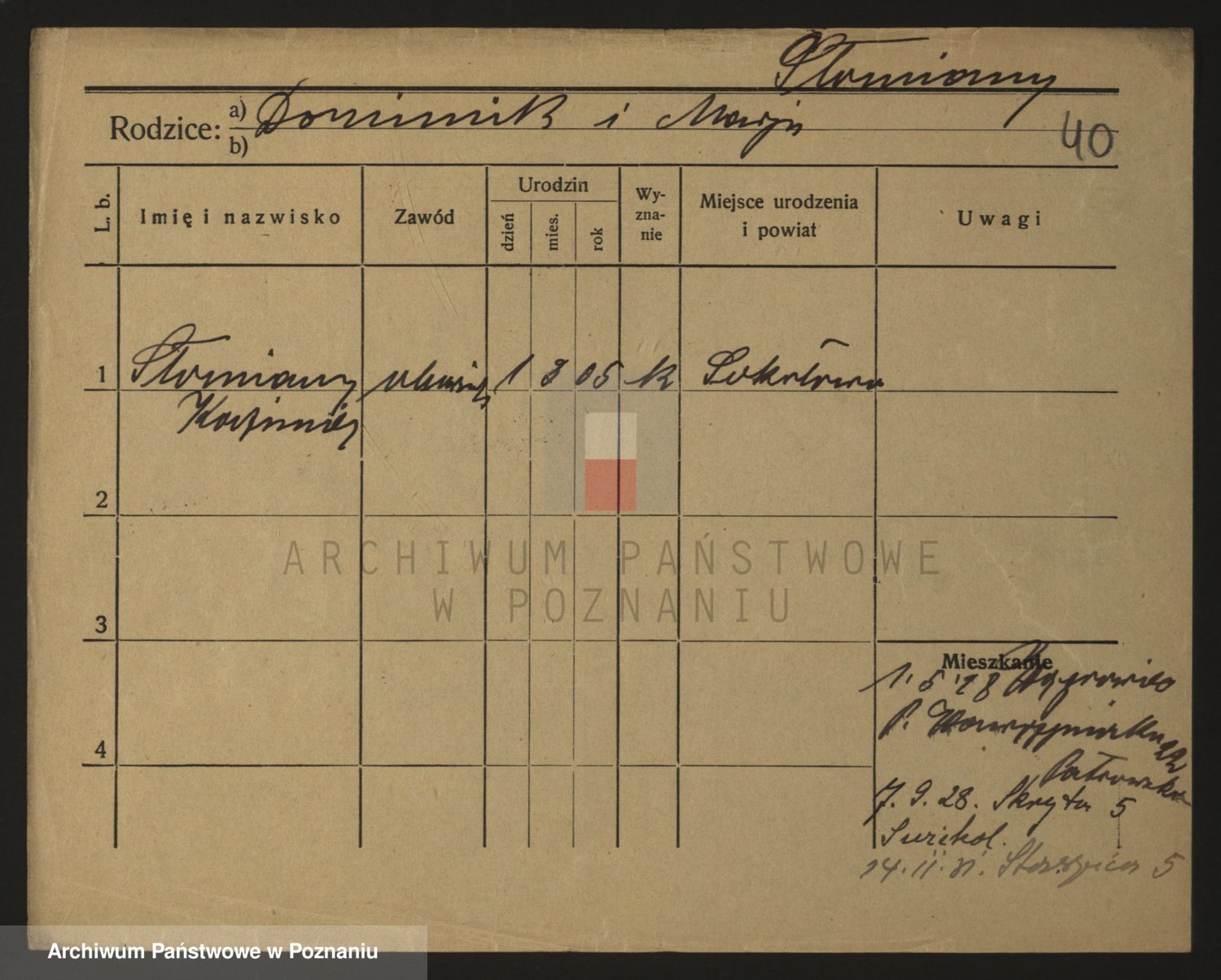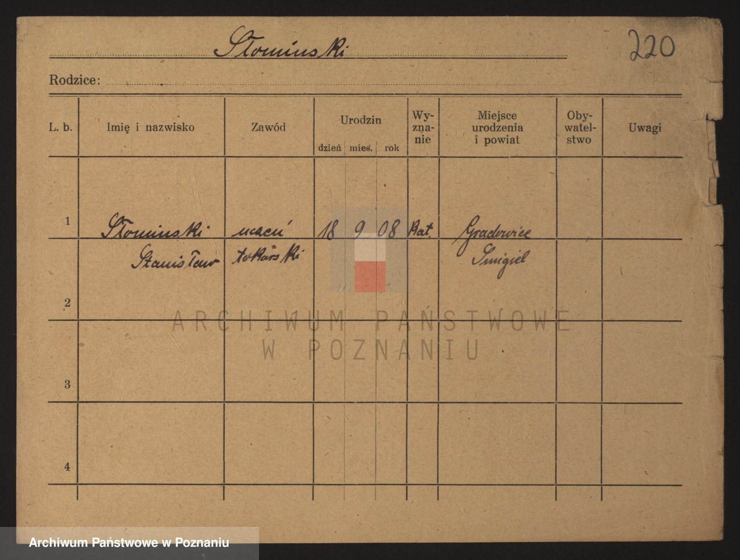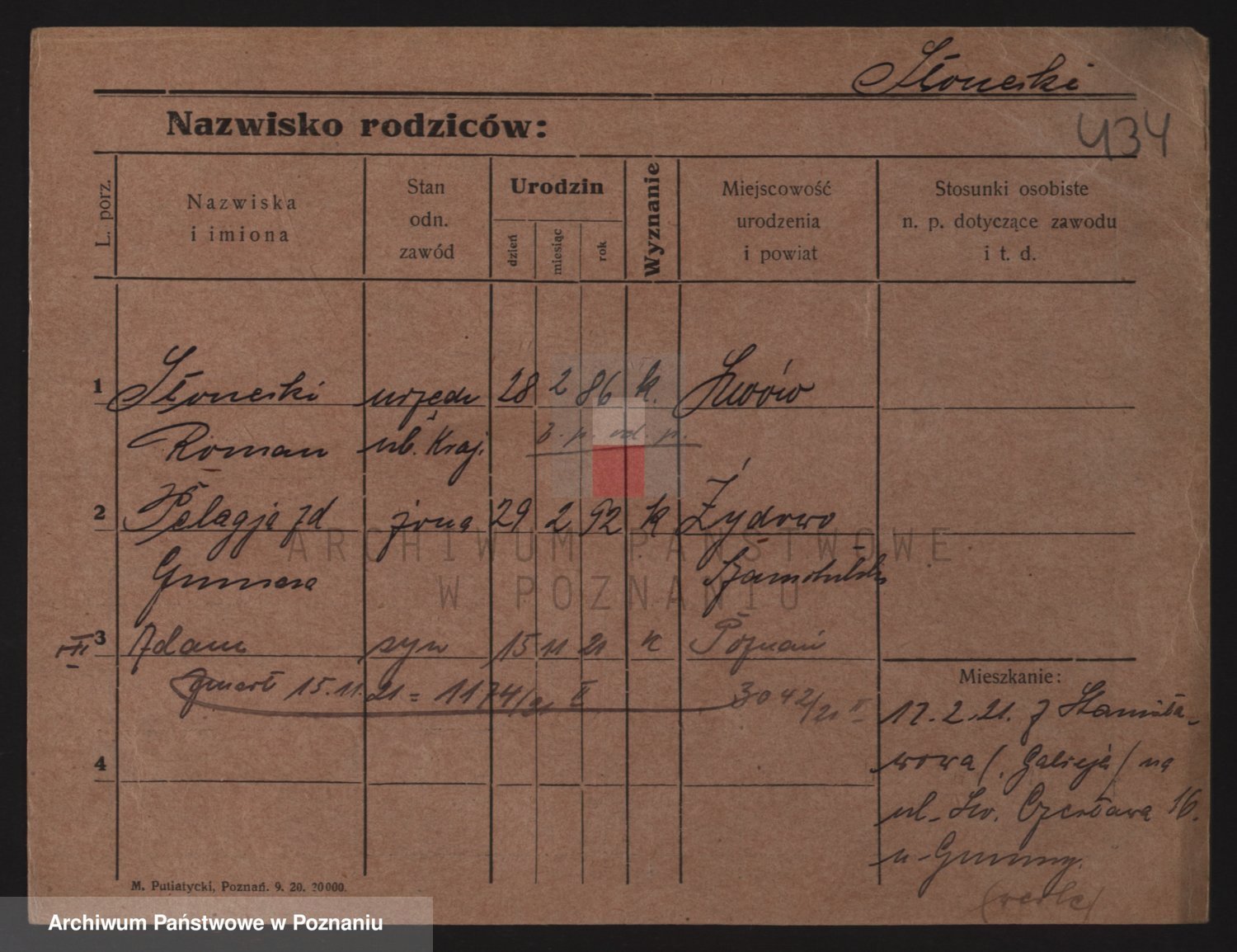 Podgląd karty osobowej dostępny jest po kliknięciu na nazwisko lub ikonkę karty. Można dokonywać powiększenia (ikony na górze) lub przechodzić między kolejnymi skanami (strzałki po bokach).