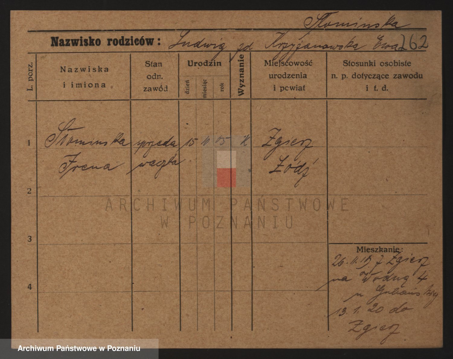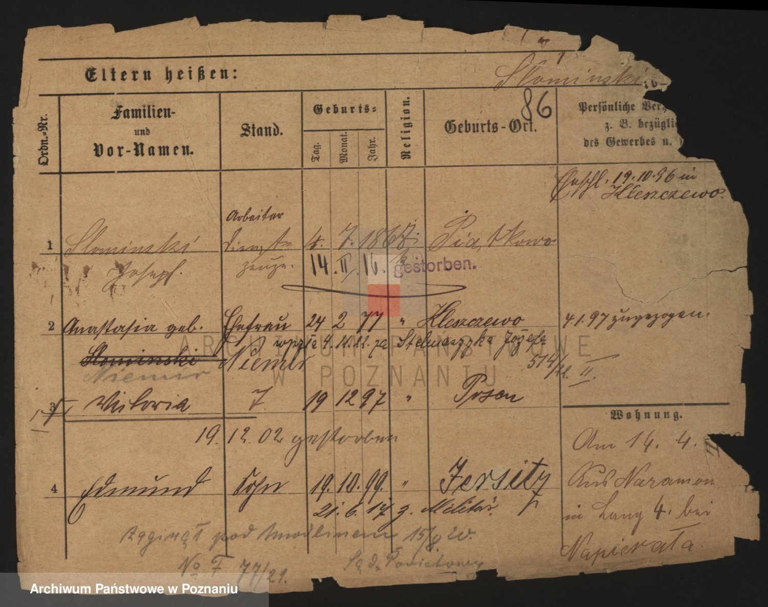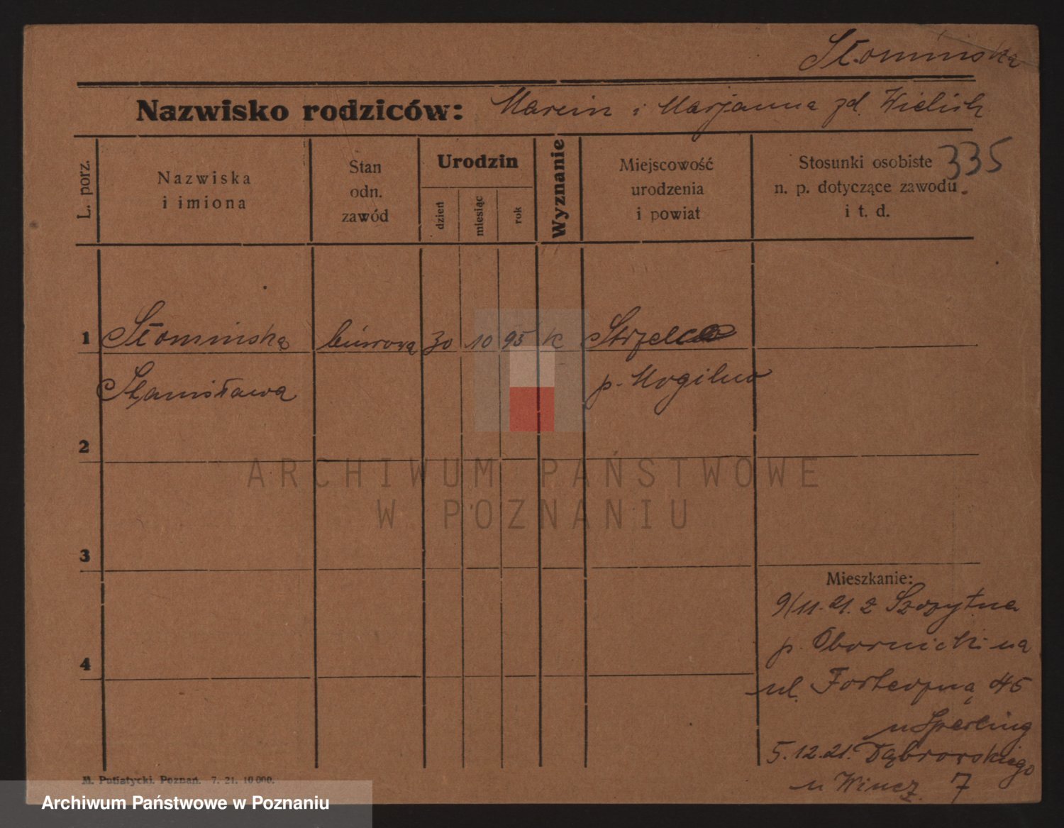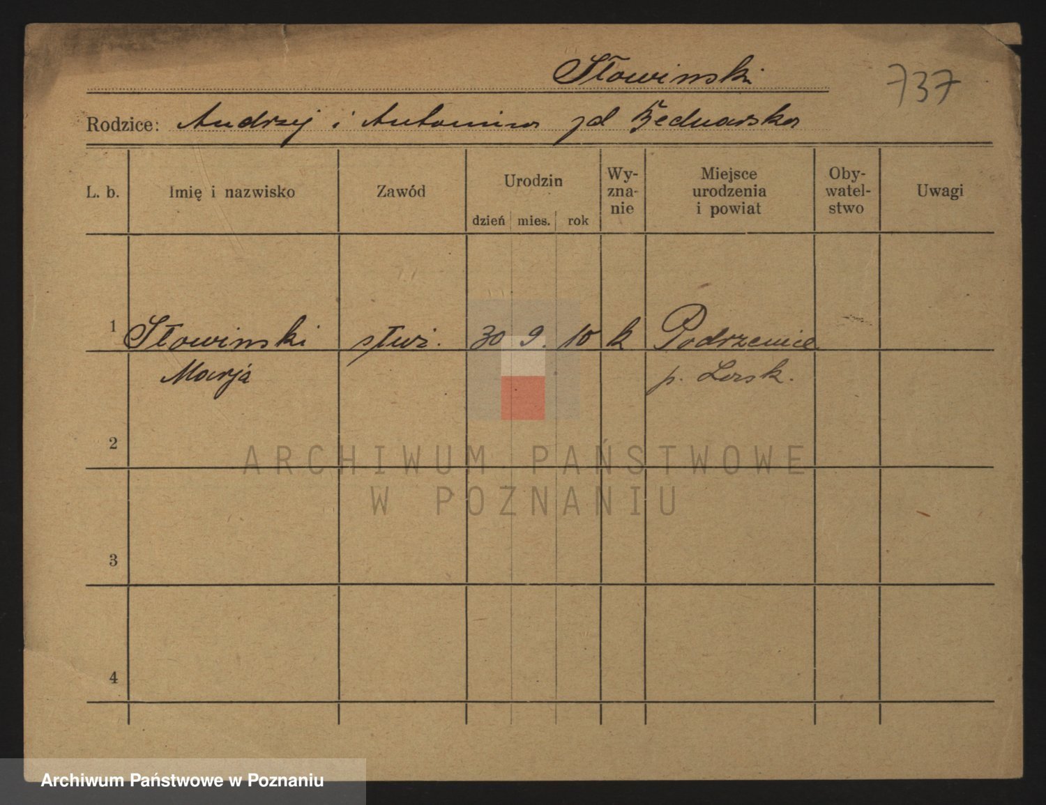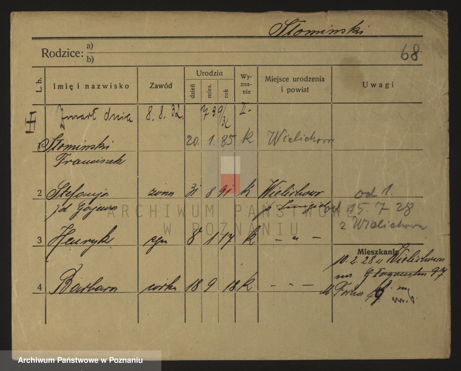 Podgląd karty osobowej dostępny jest po kliknięciu na nazwisko lub ikonkę karty. Można dokonywać powiększenia (ikony na górze) lub przechodzić między kolejnymi skanami (strzałki po bokach).