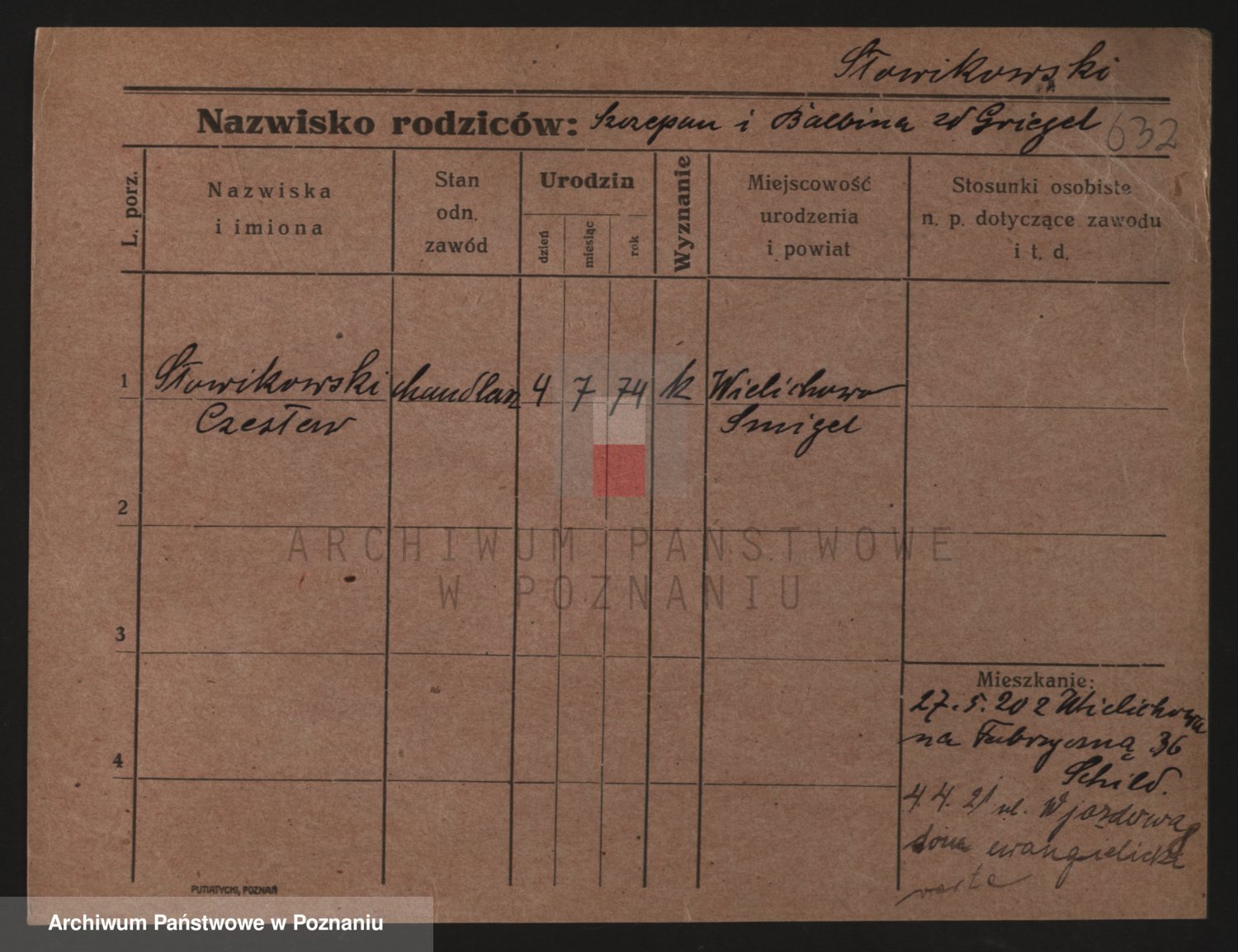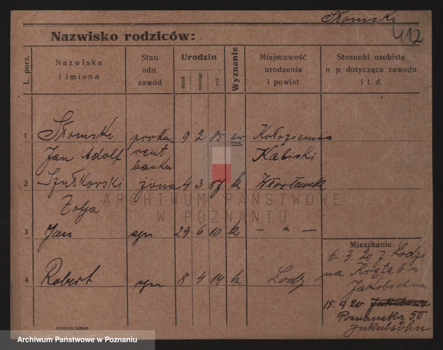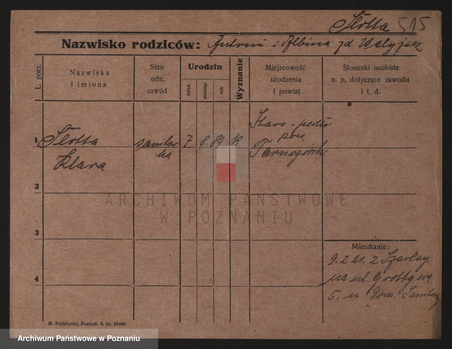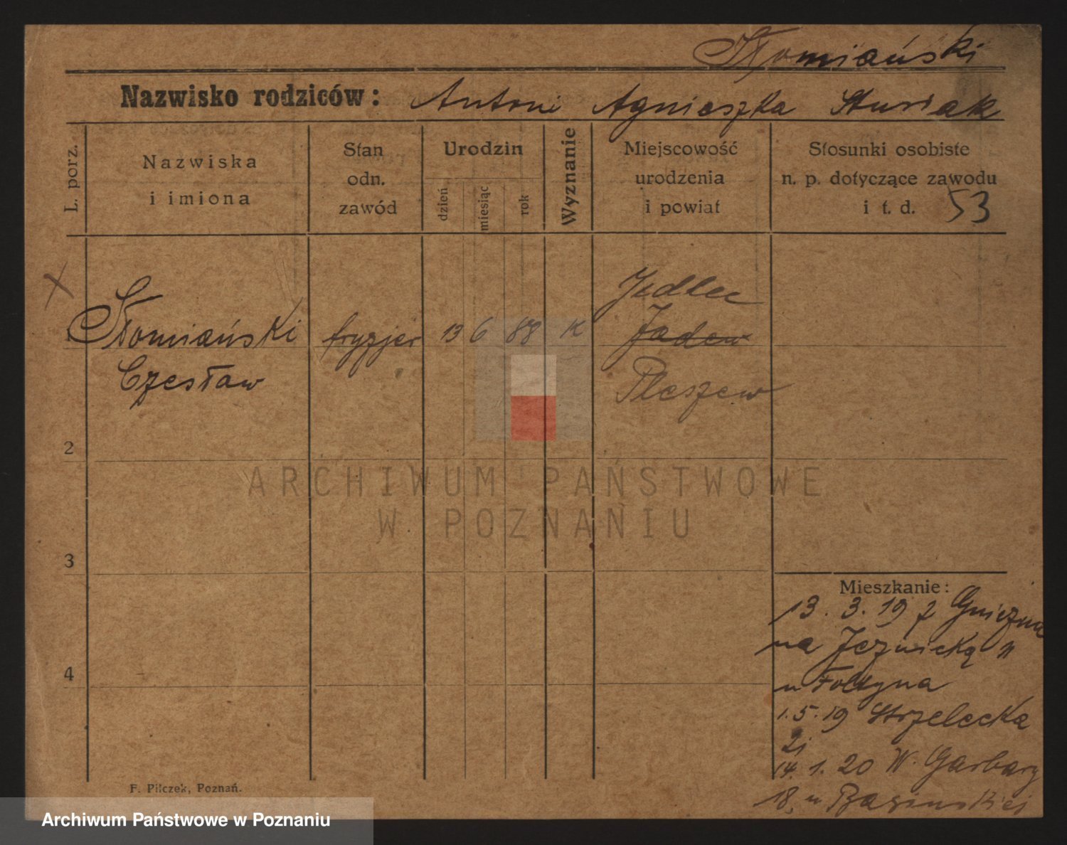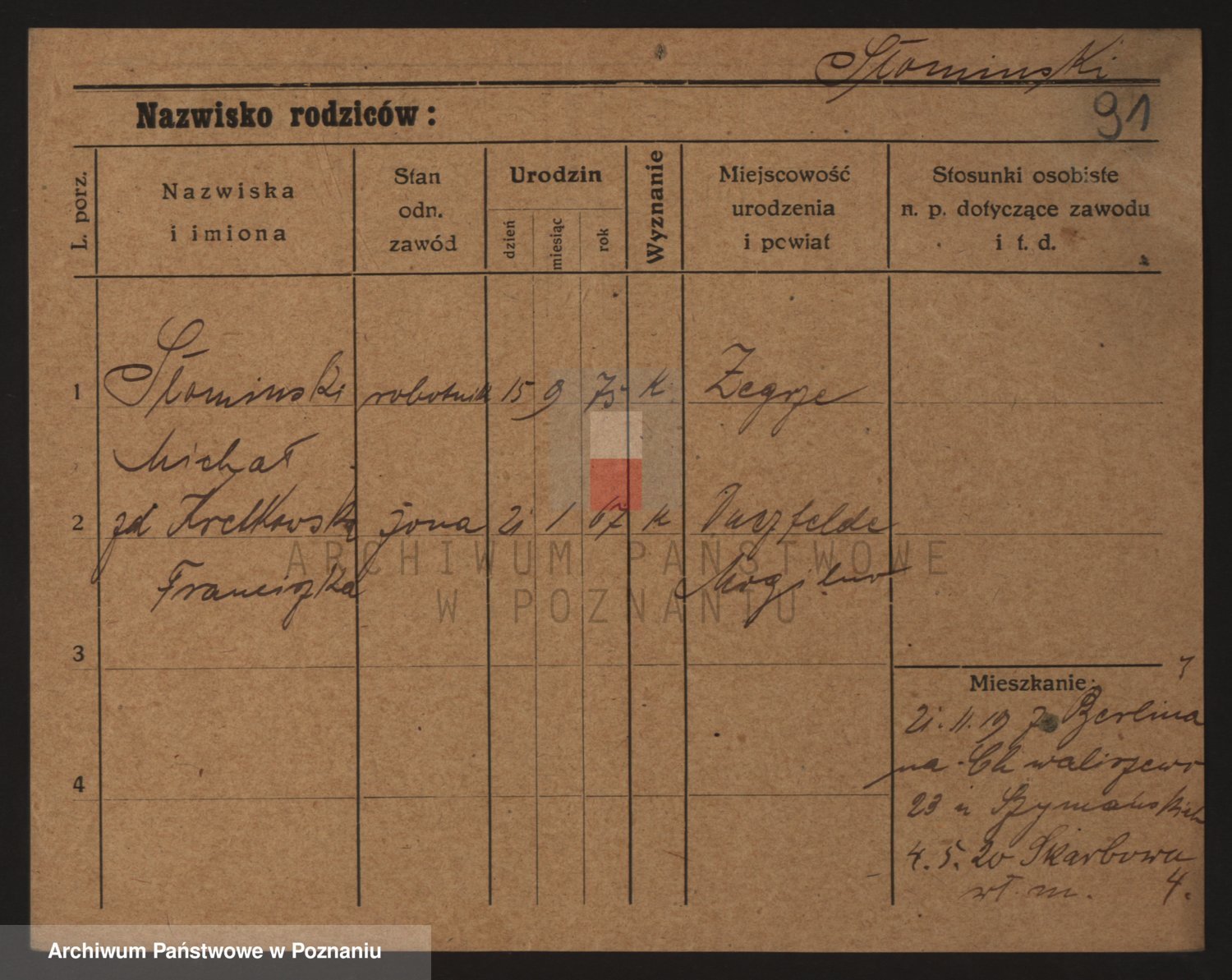 Podgląd karty osobowej dostępny jest po kliknięciu na nazwisko lub ikonkę karty. Można dokonywać powiększenia (ikony na górze) lub przechodzić między kolejnymi skanami (strzałki po bokach).