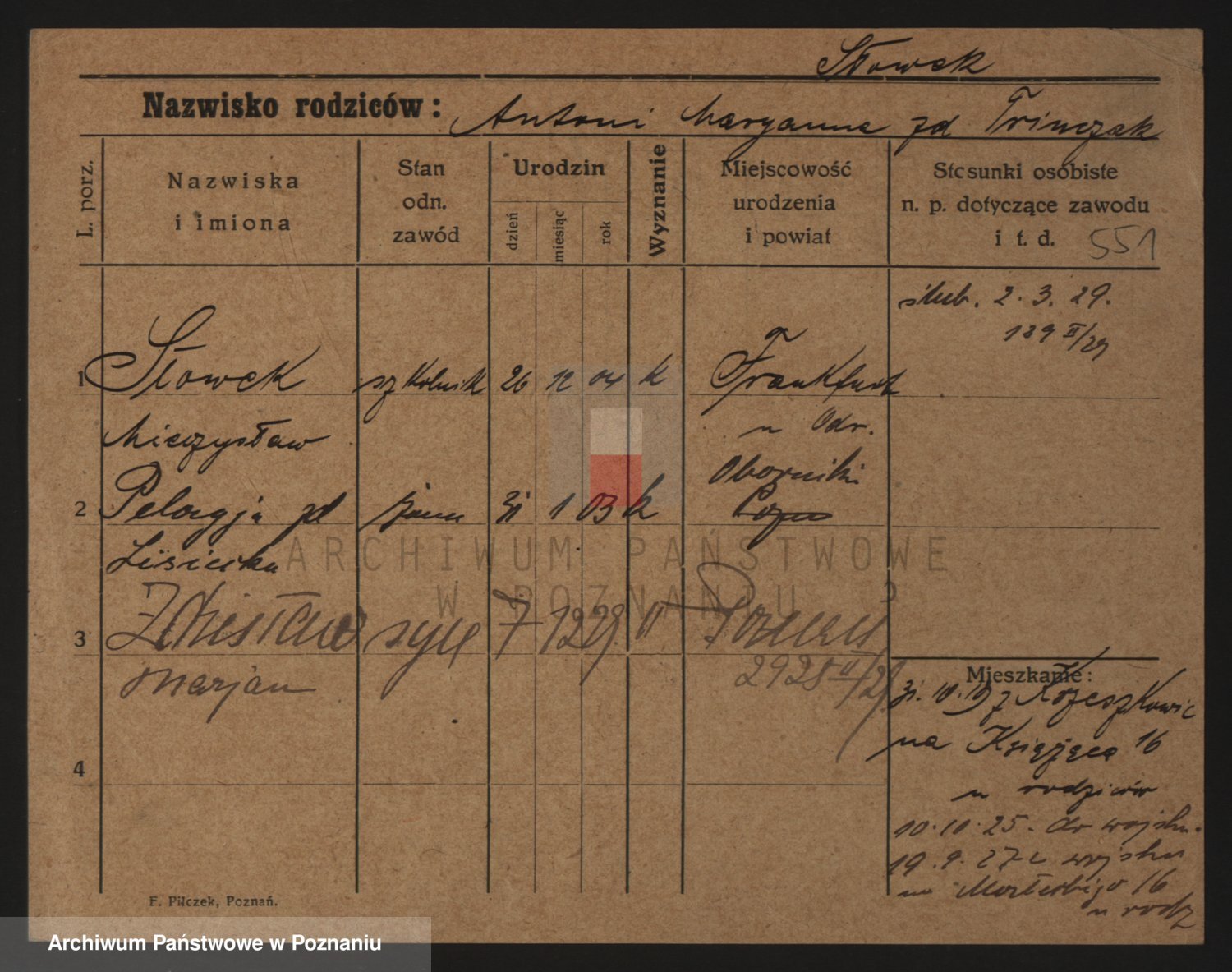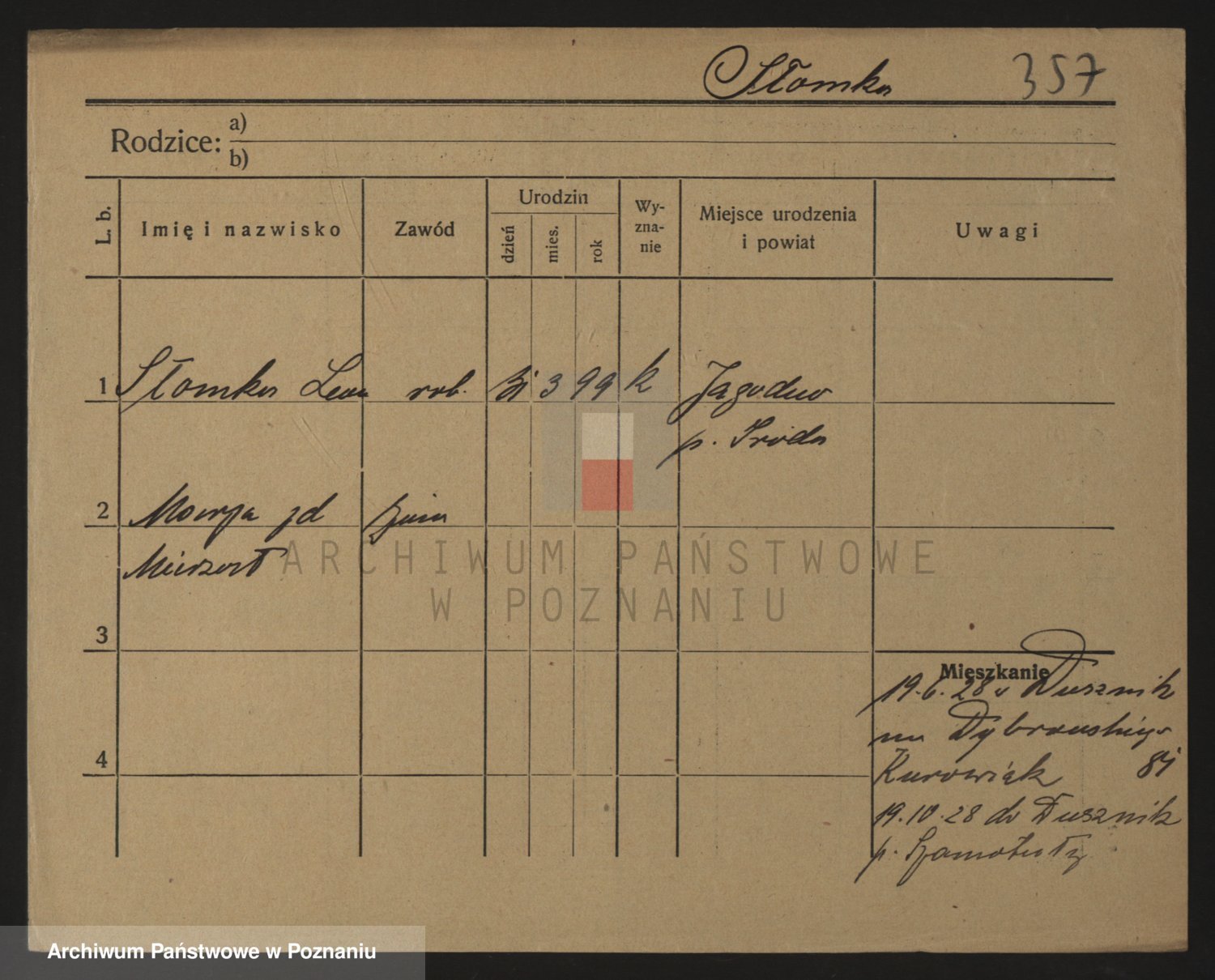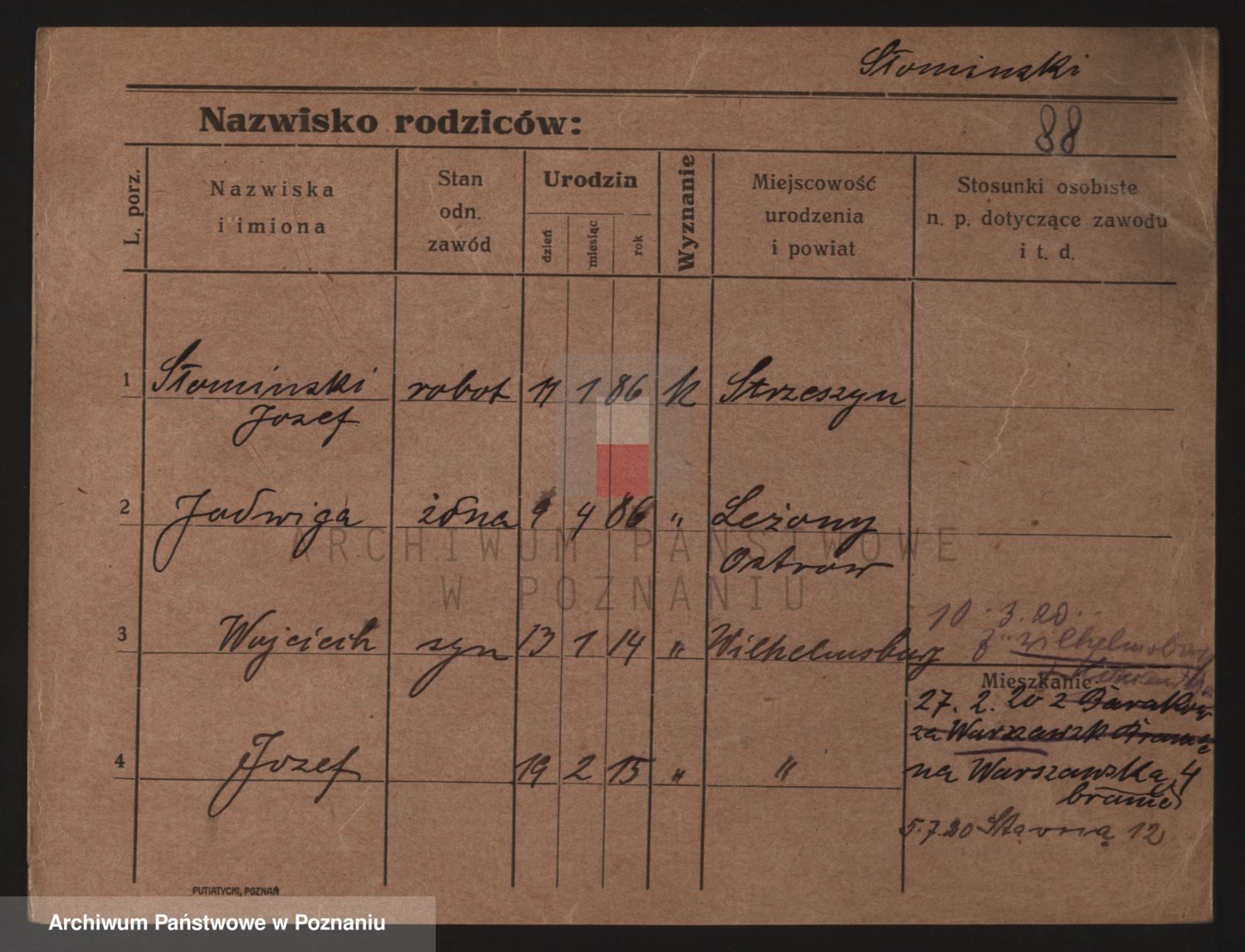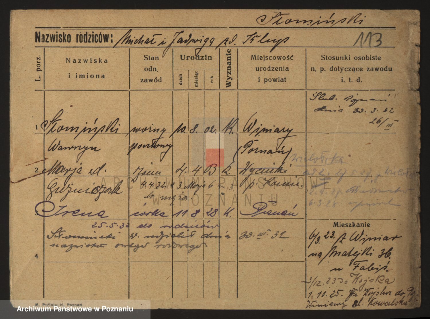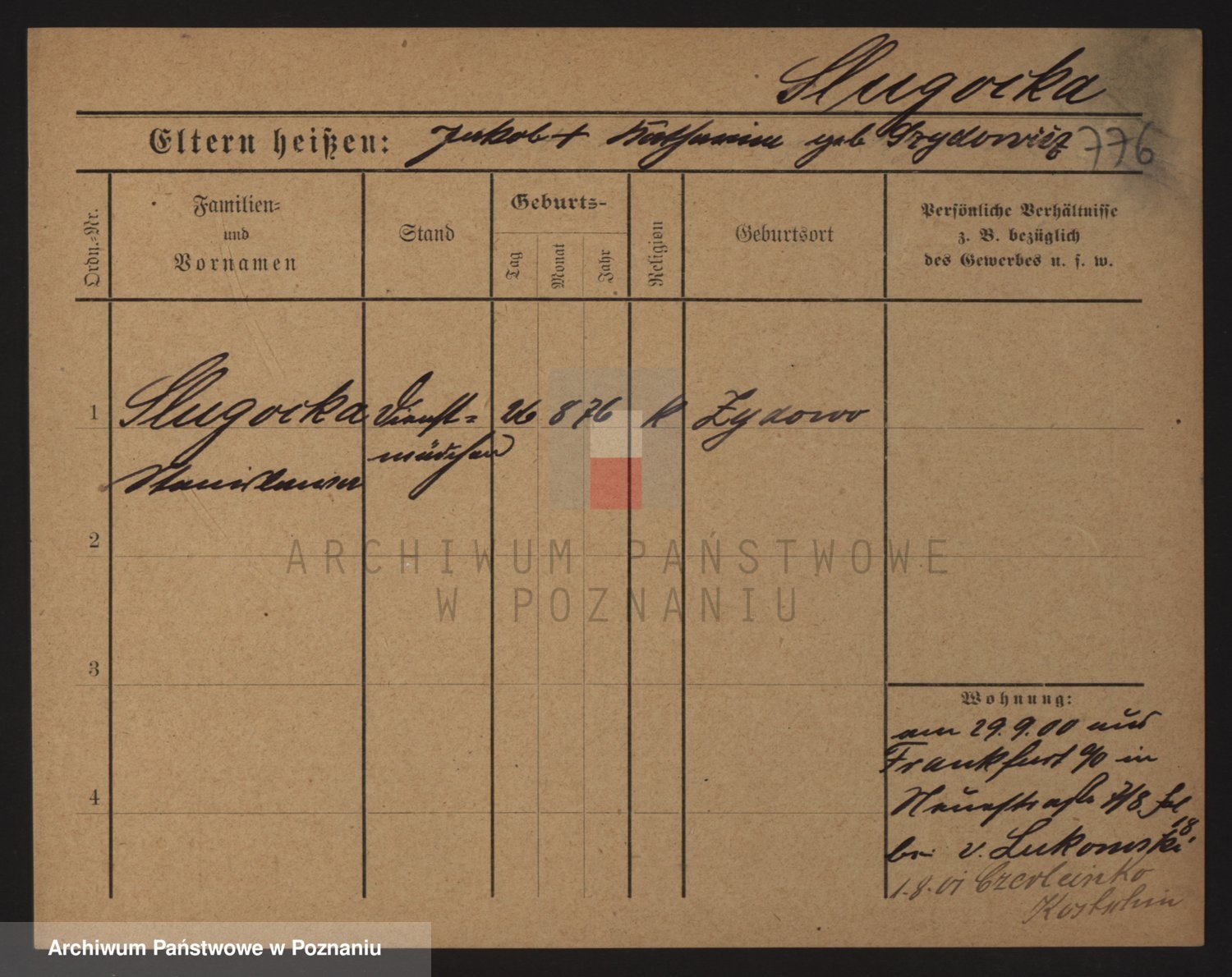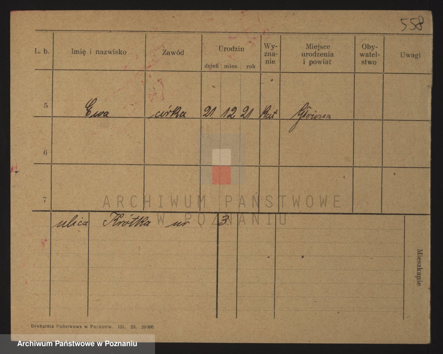 Podgląd karty osobowej dostępny jest po kliknięciu na nazwisko lub ikonkę karty. Można dokonywać powiększenia (ikony na górze) lub przechodzić między kolejnymi skanami (strzałki po bokach).