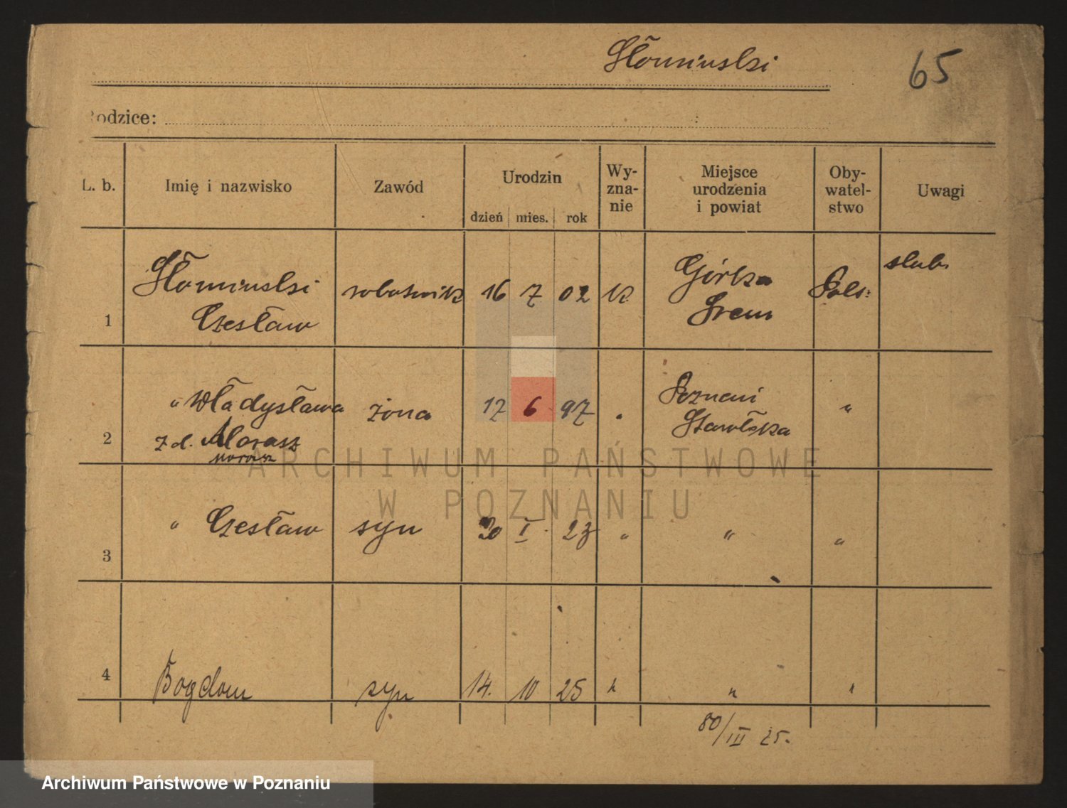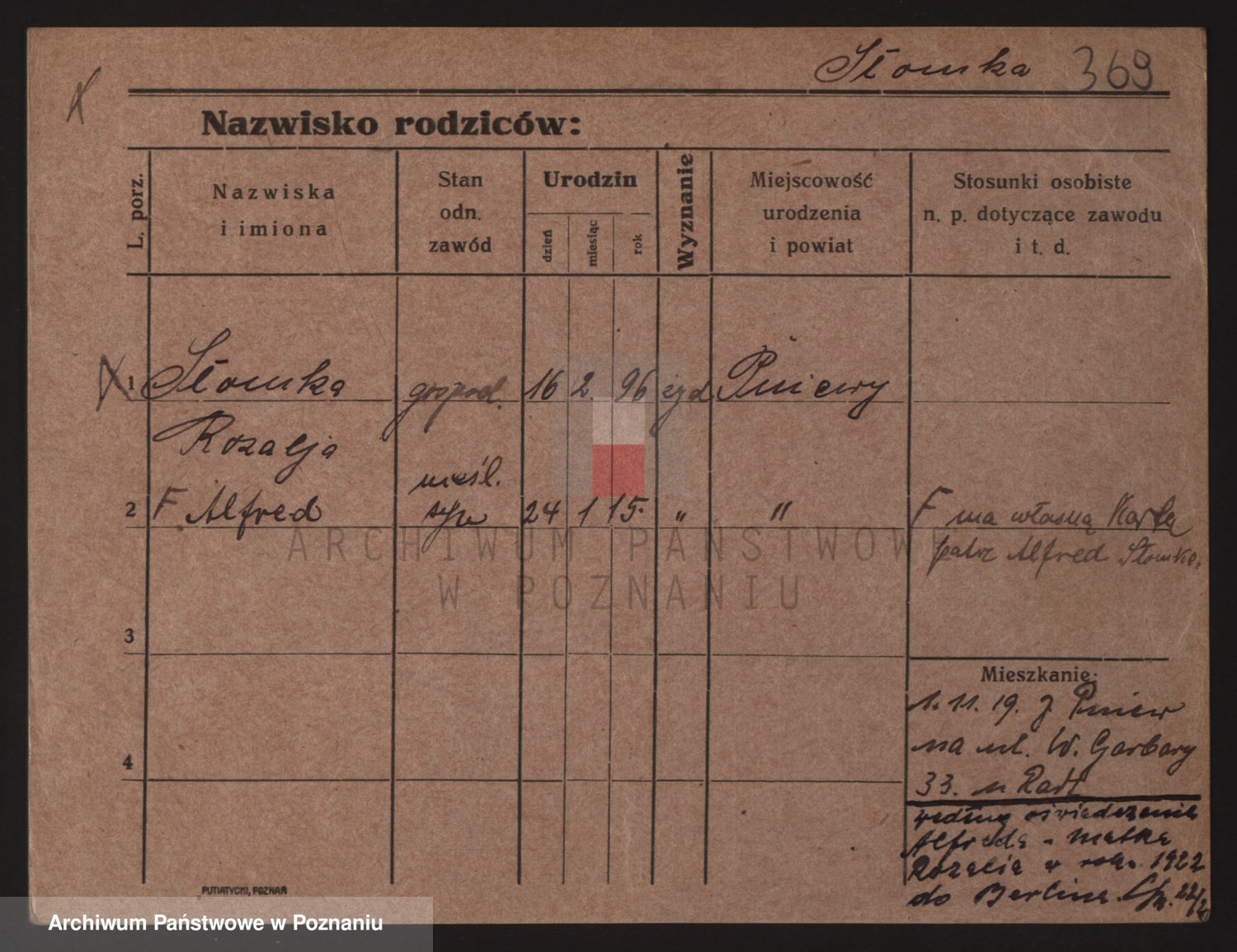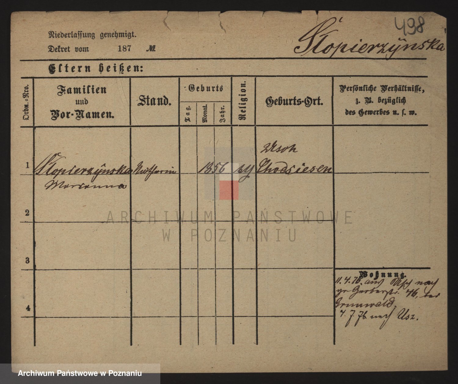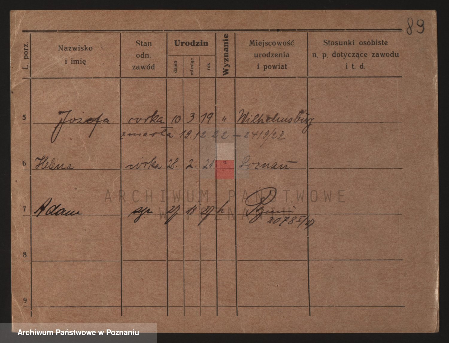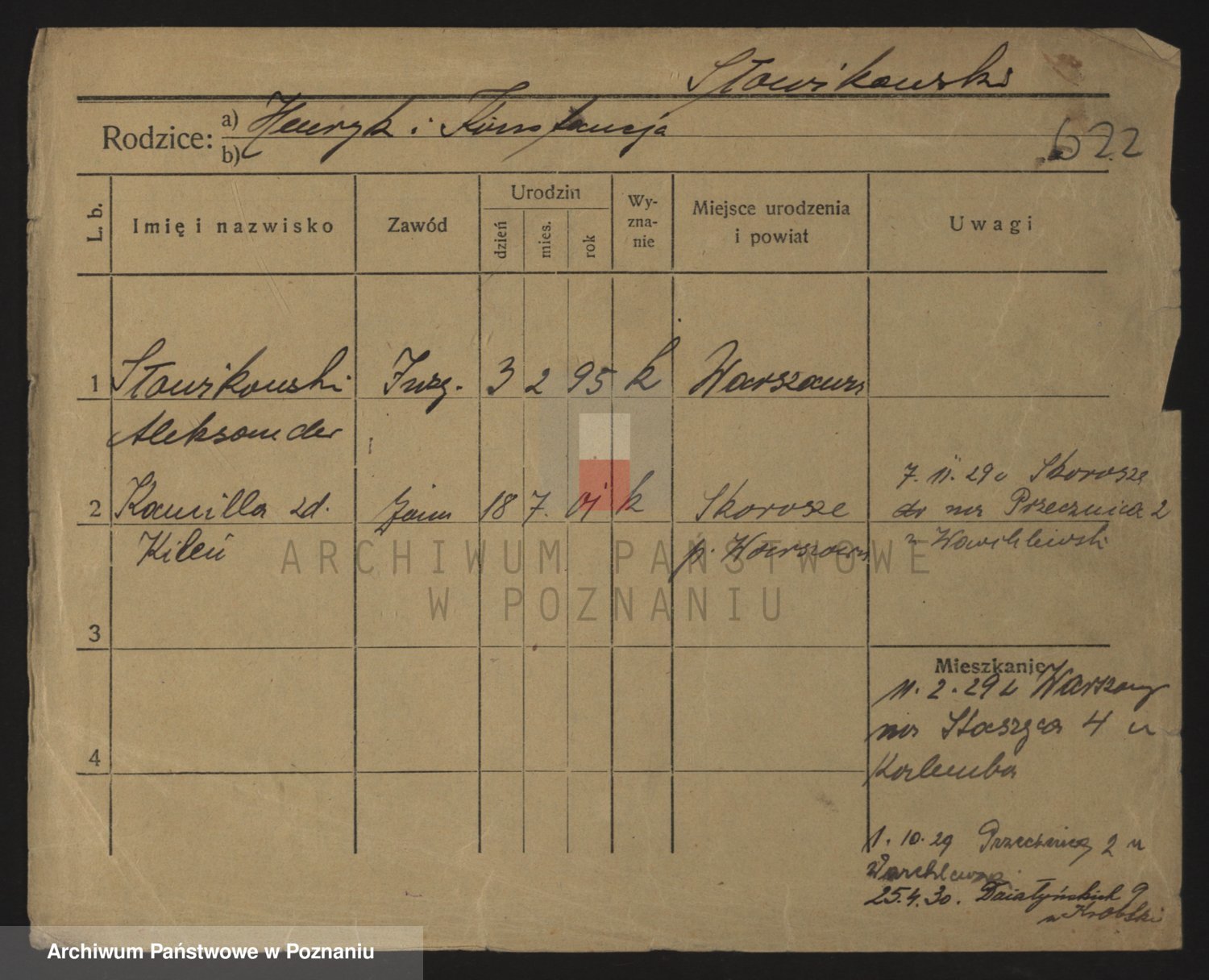 Podgląd karty osobowej dostępny jest po kliknięciu na nazwisko lub ikonkę karty. Można dokonywać powiększenia (ikony na górze) lub przechodzić między kolejnymi skanami (strzałki po bokach).