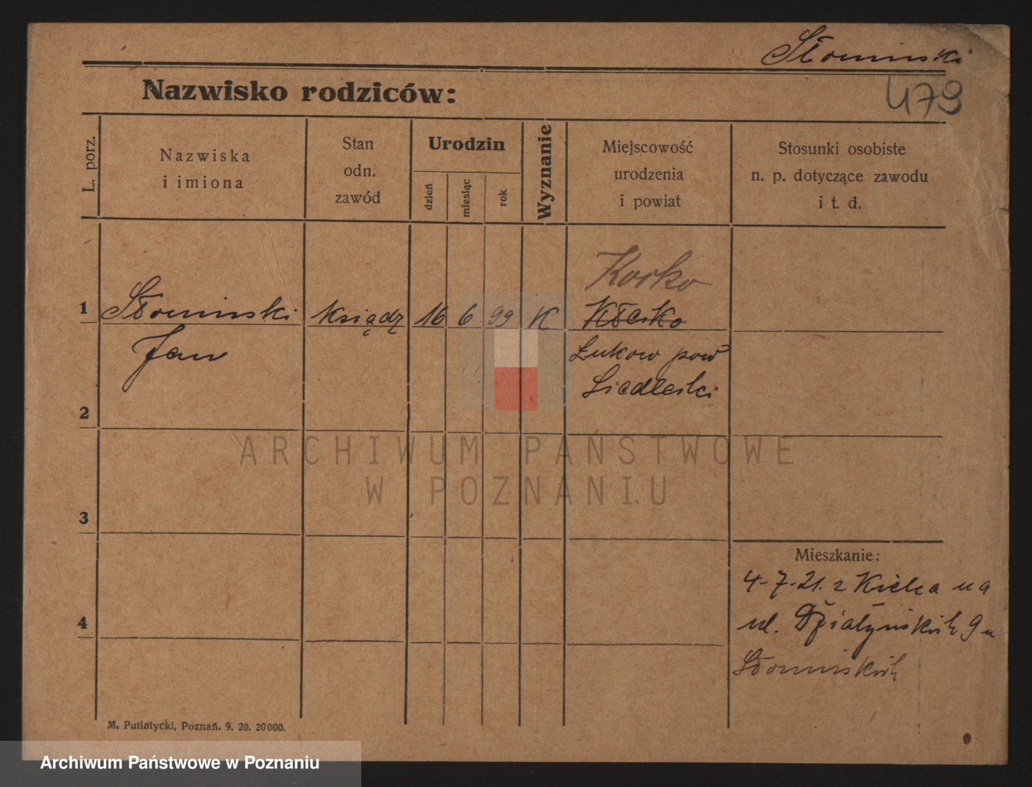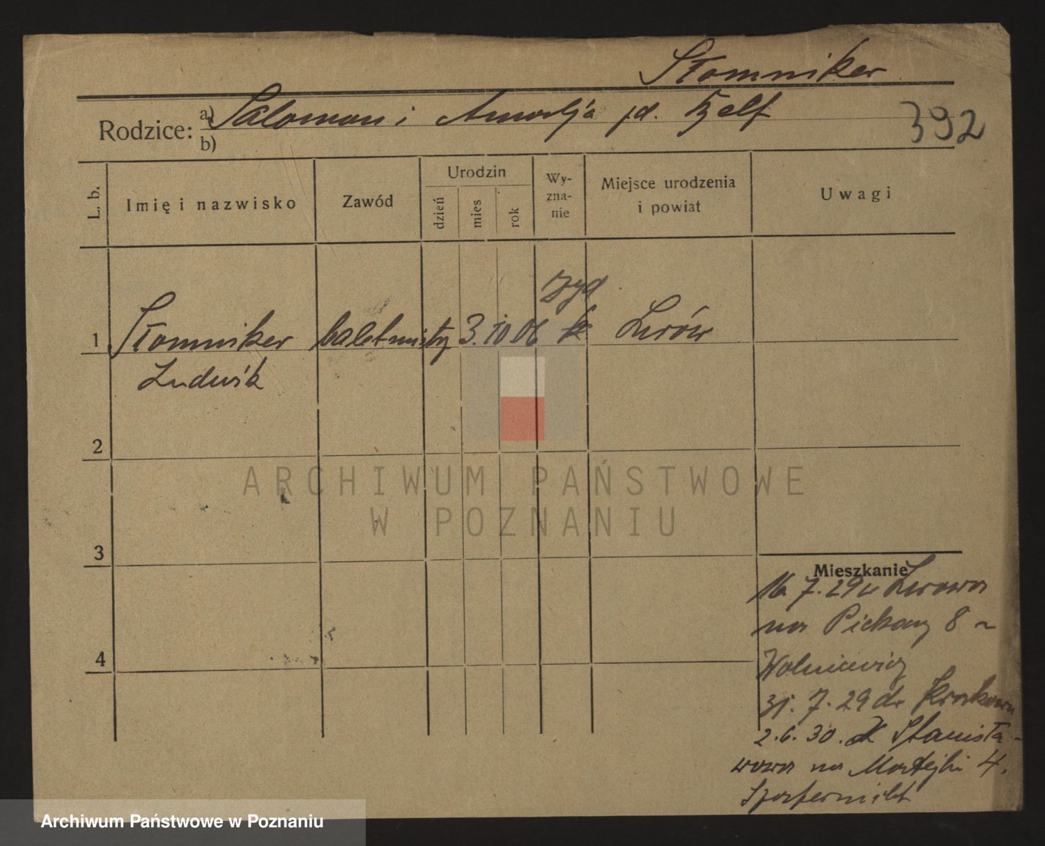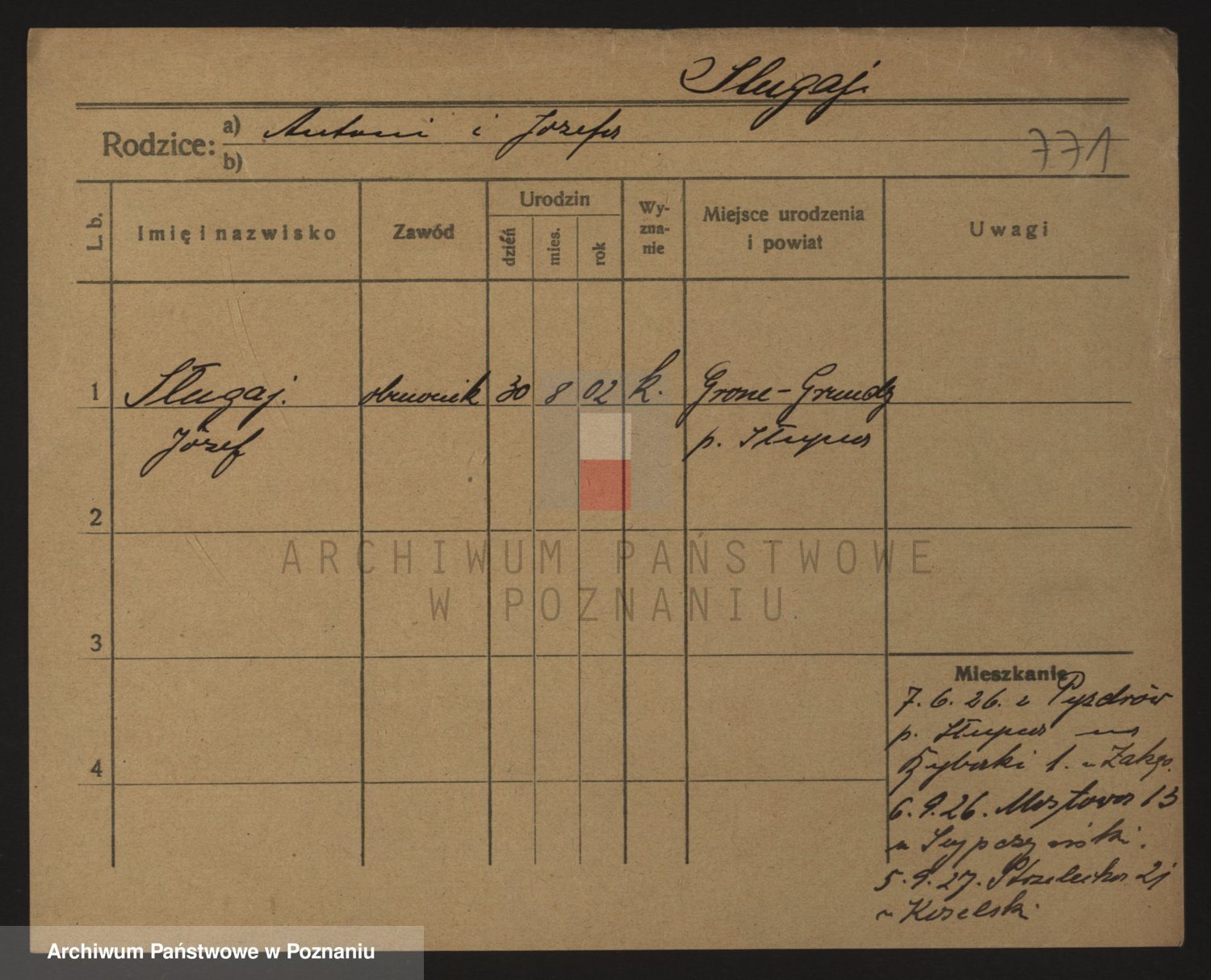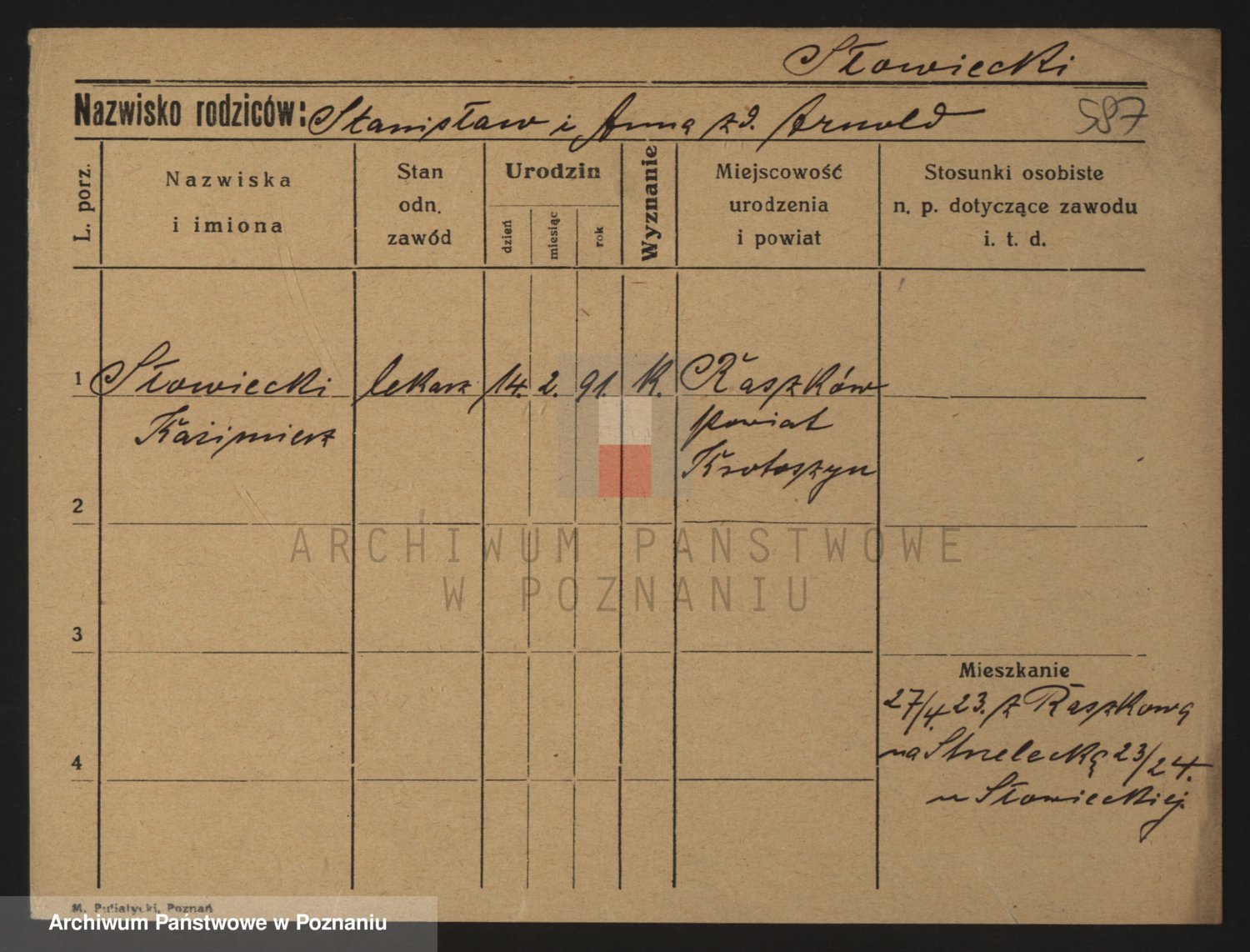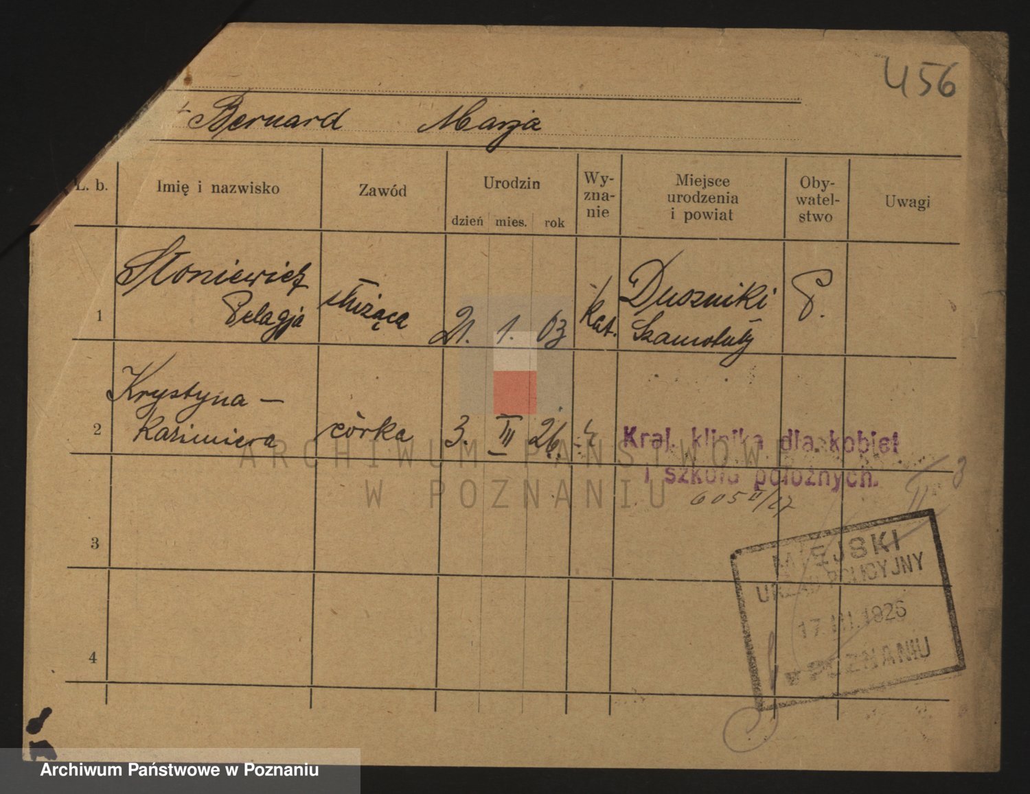 Podgląd karty osobowej dostępny jest po kliknięciu na nazwisko lub ikonkę karty. Można dokonywać powiększenia (ikony na górze) lub przechodzić między kolejnymi skanami (strzałki po bokach).