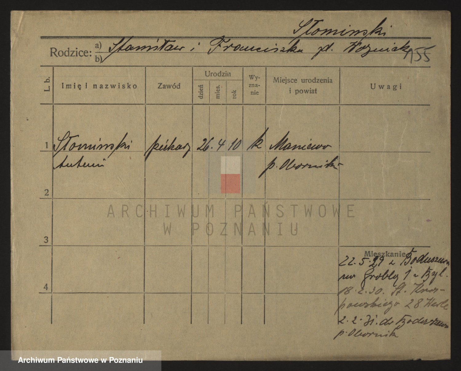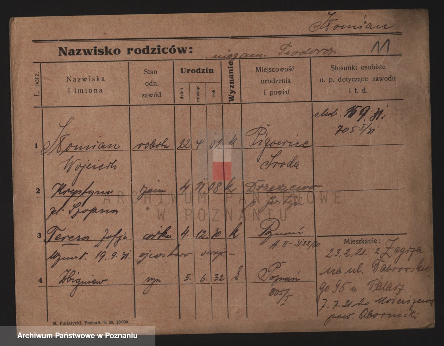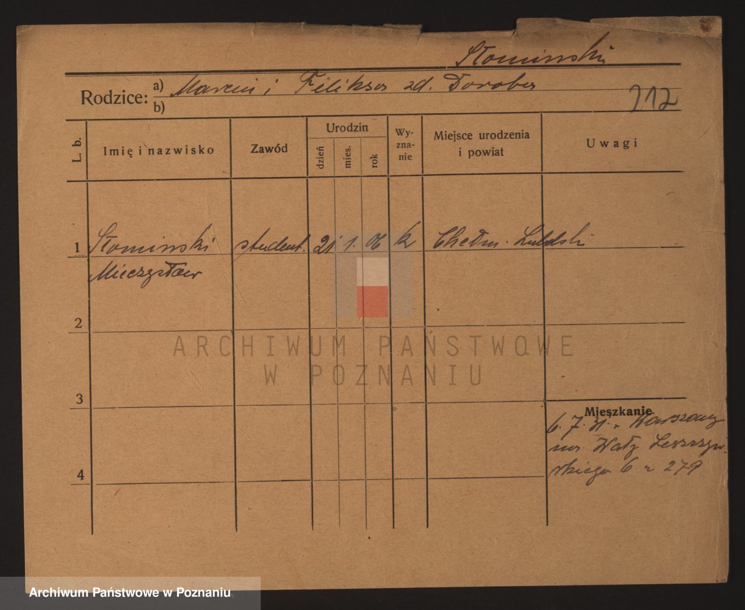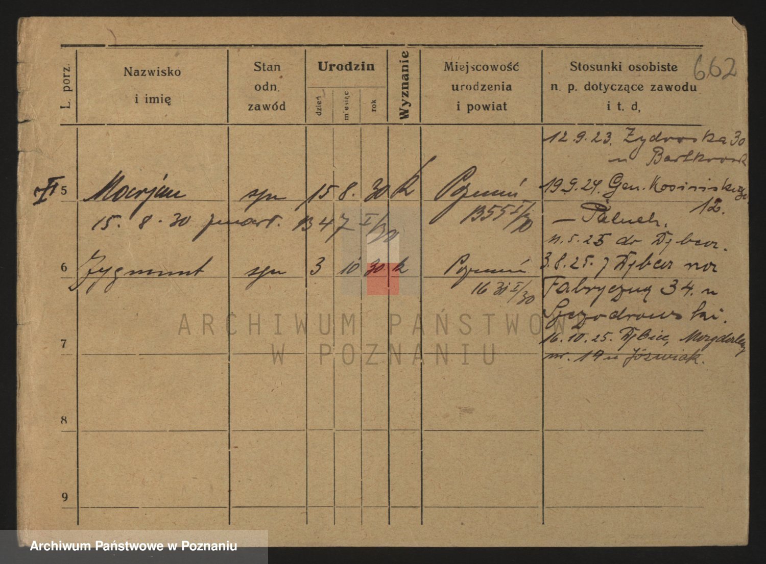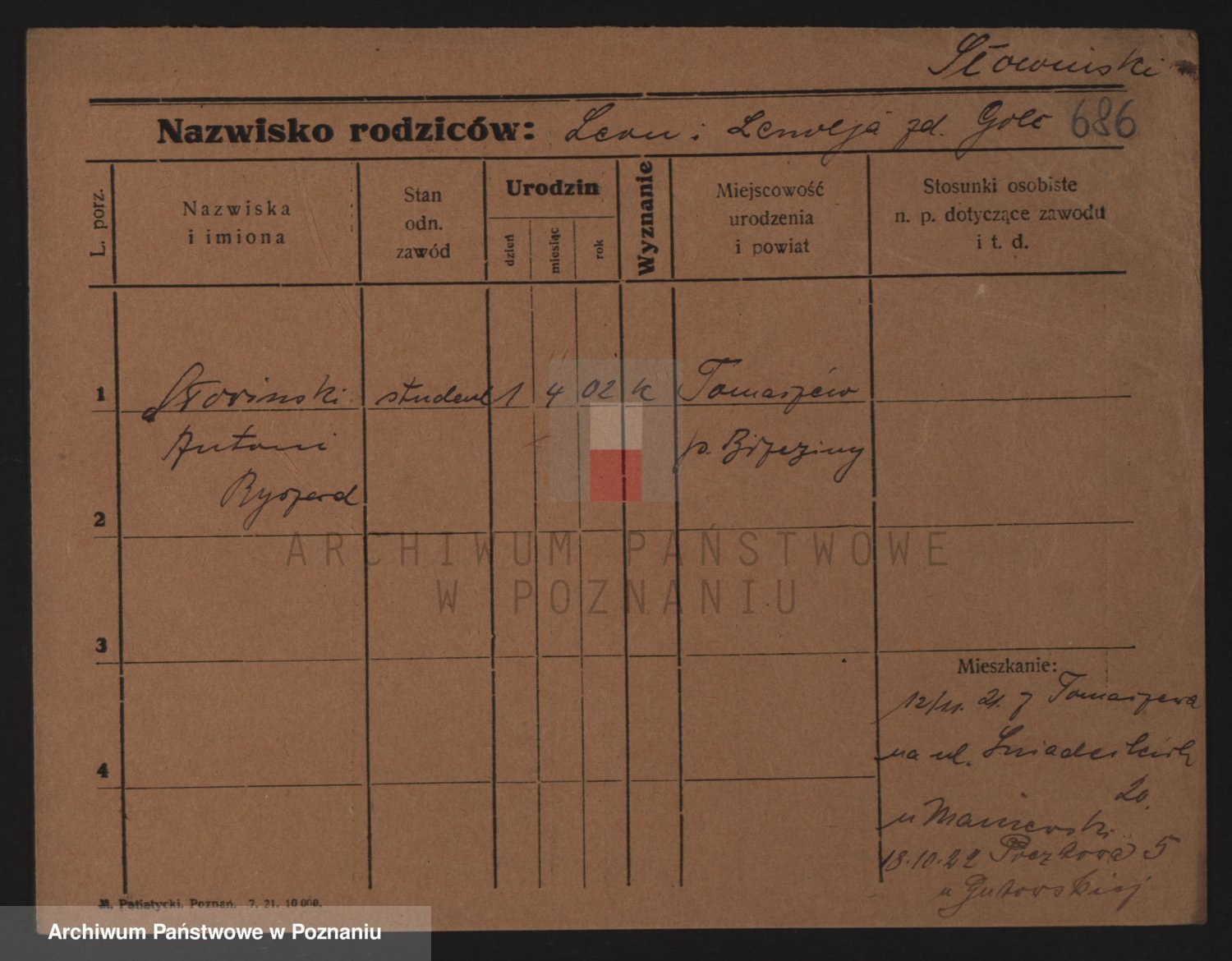 Podgląd karty osobowej dostępny jest po kliknięciu na nazwisko lub ikonkę karty. Można dokonywać powiększenia (ikony na górze) lub przechodzić między kolejnymi skanami (strzałki po bokach).