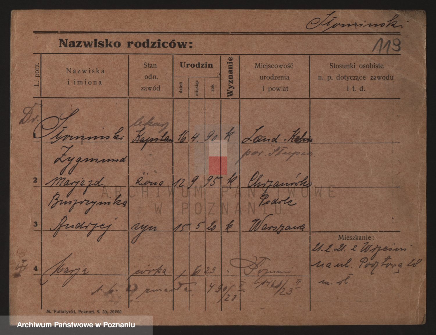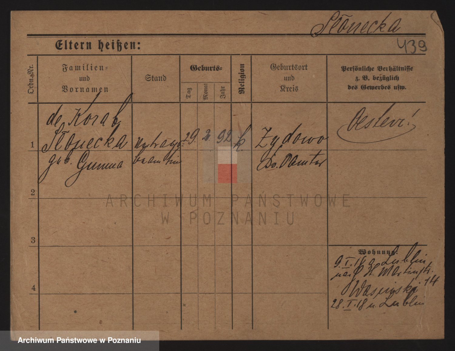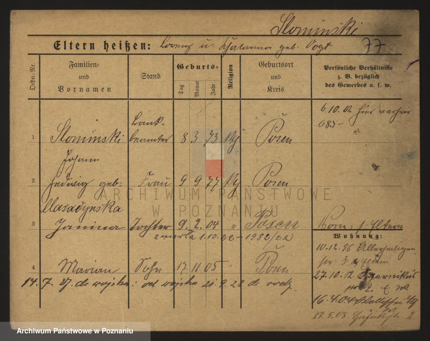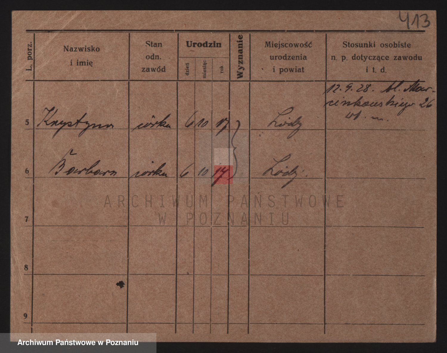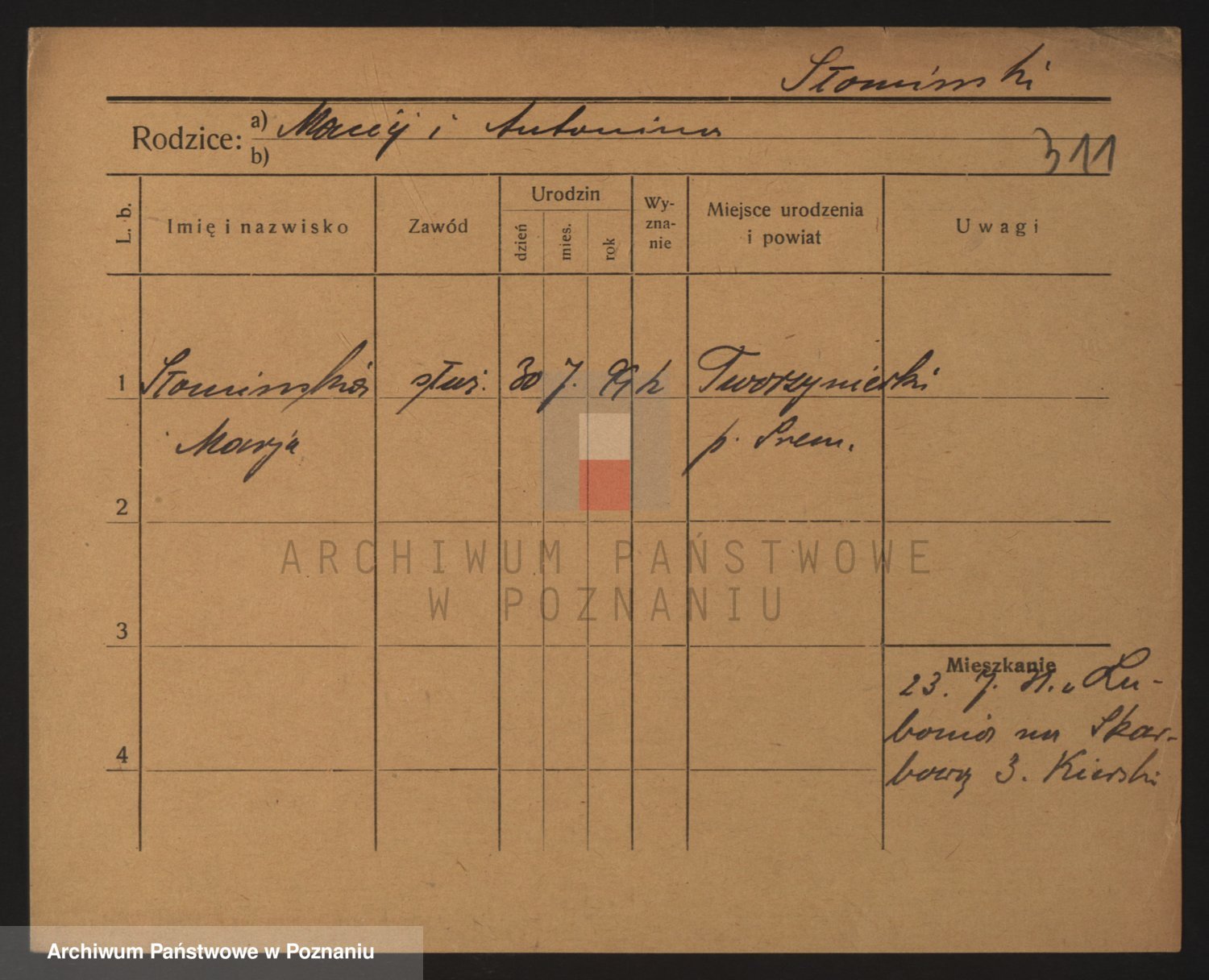 Podgląd karty osobowej dostępny jest po kliknięciu na nazwisko lub ikonkę karty. Można dokonywać powiększenia (ikony na górze) lub przechodzić między kolejnymi skanami (strzałki po bokach).