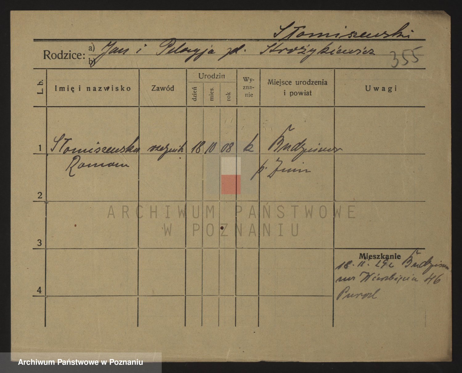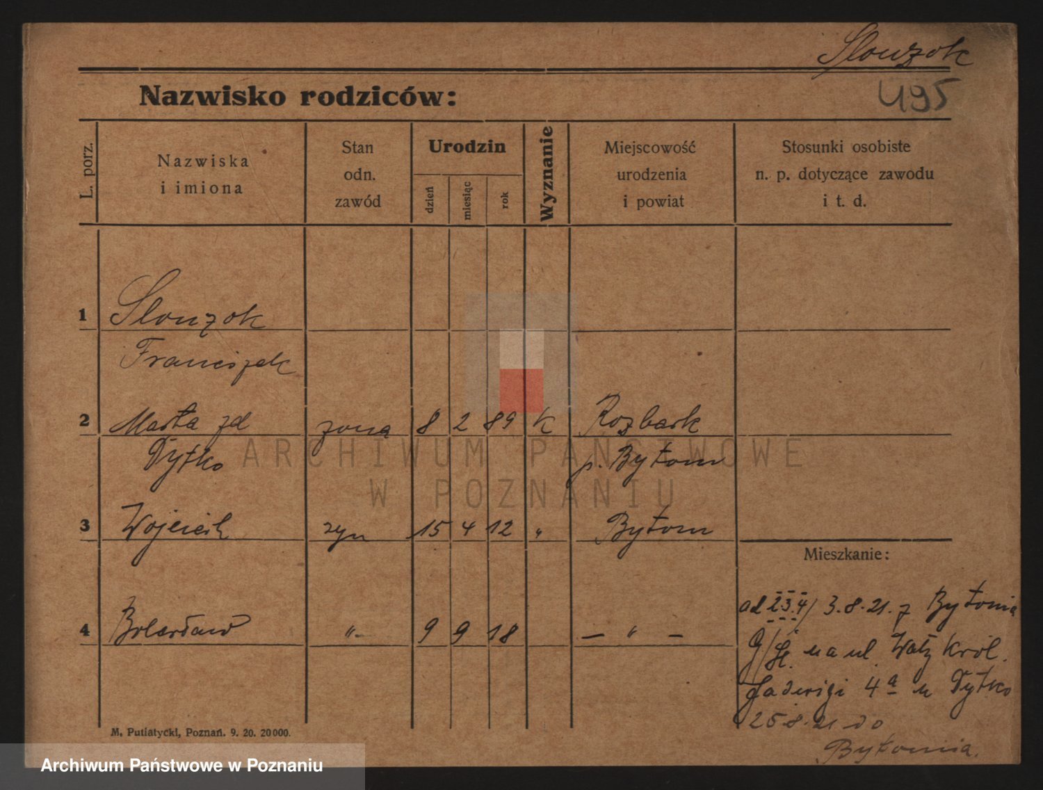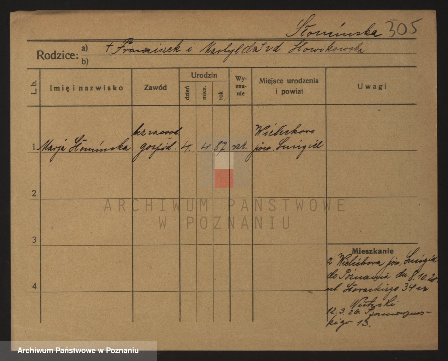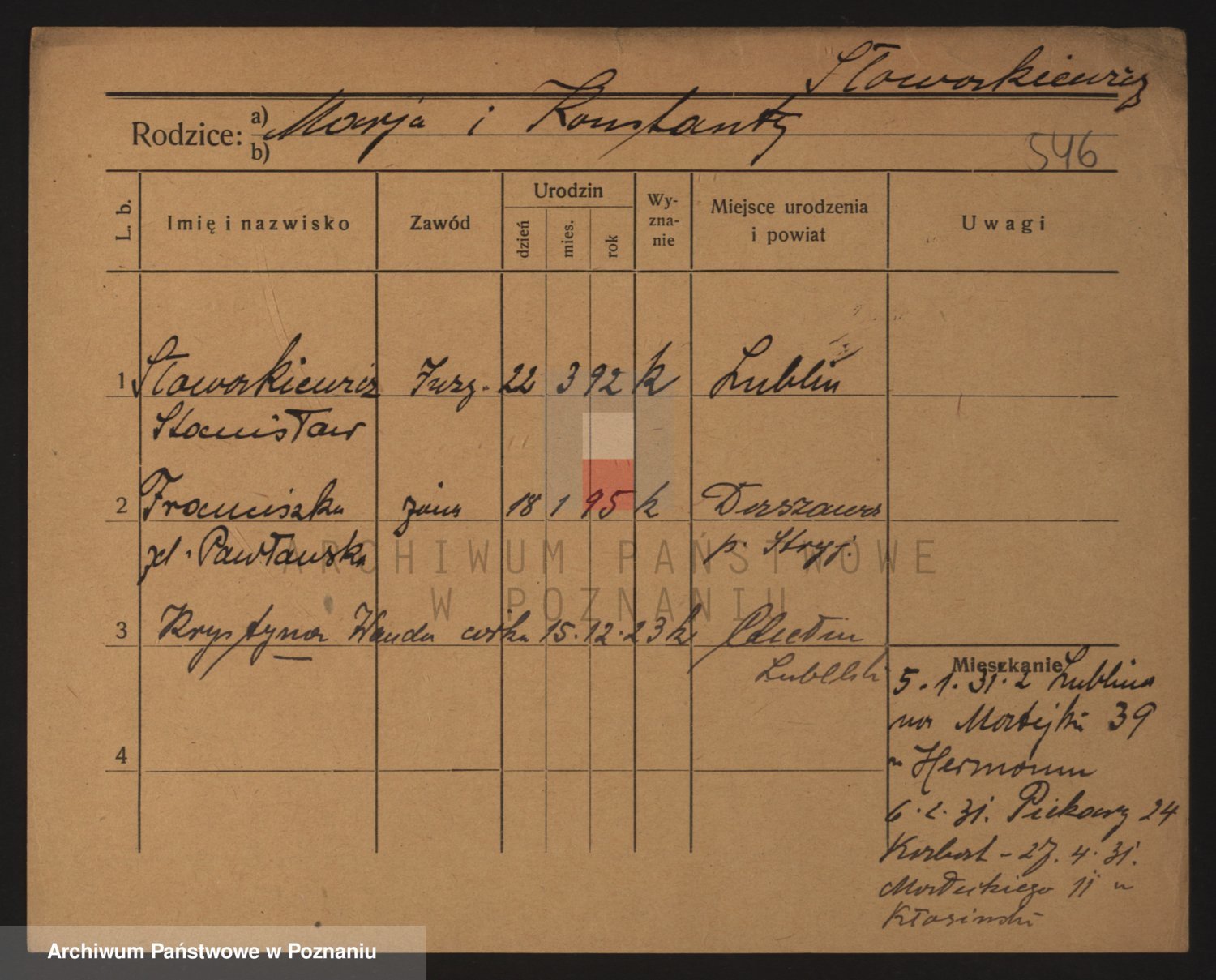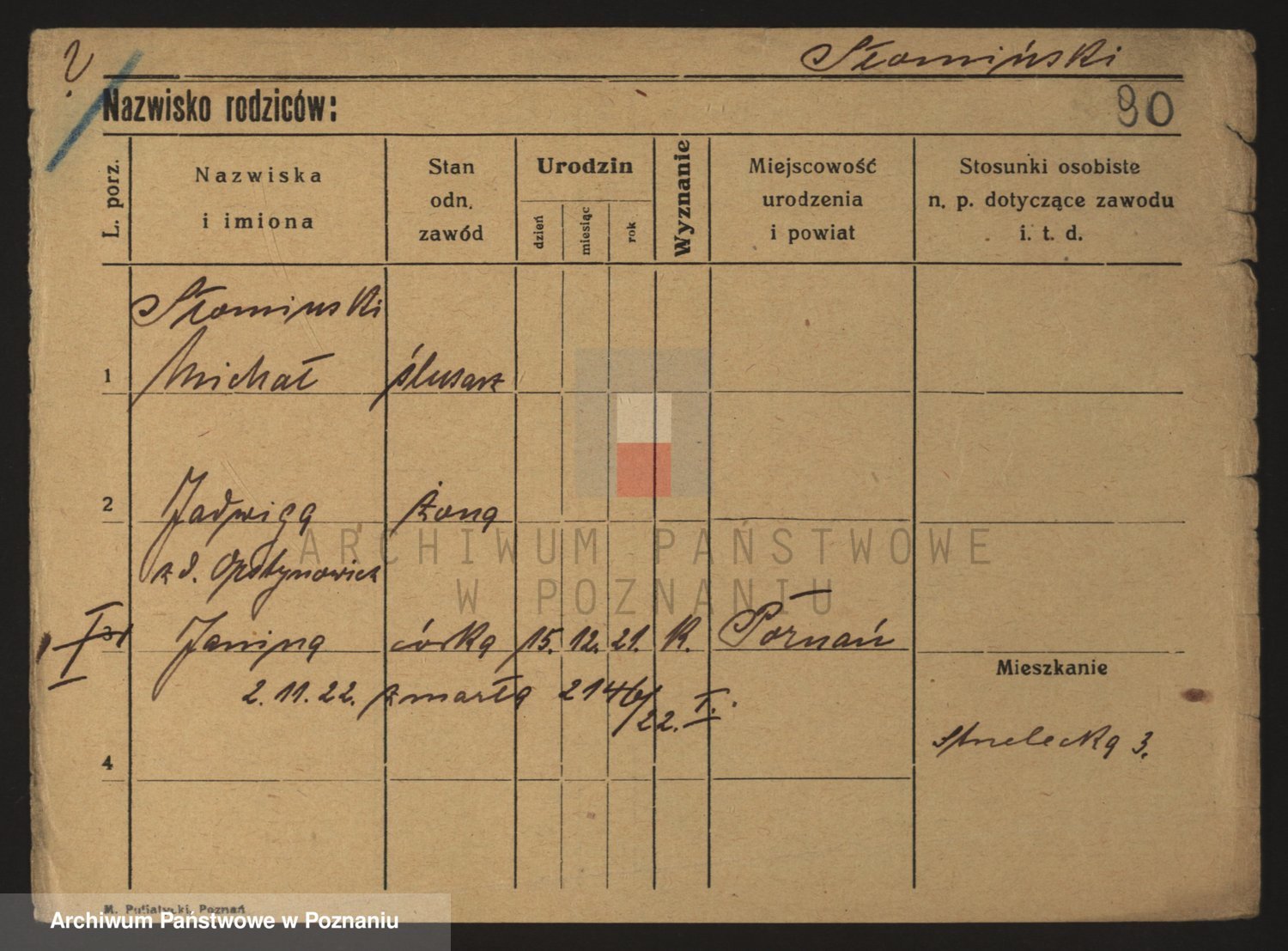 Podgląd karty osobowej dostępny jest po kliknięciu na nazwisko lub ikonkę karty. Można dokonywać powiększenia (ikony na górze) lub przechodzić między kolejnymi skanami (strzałki po bokach).