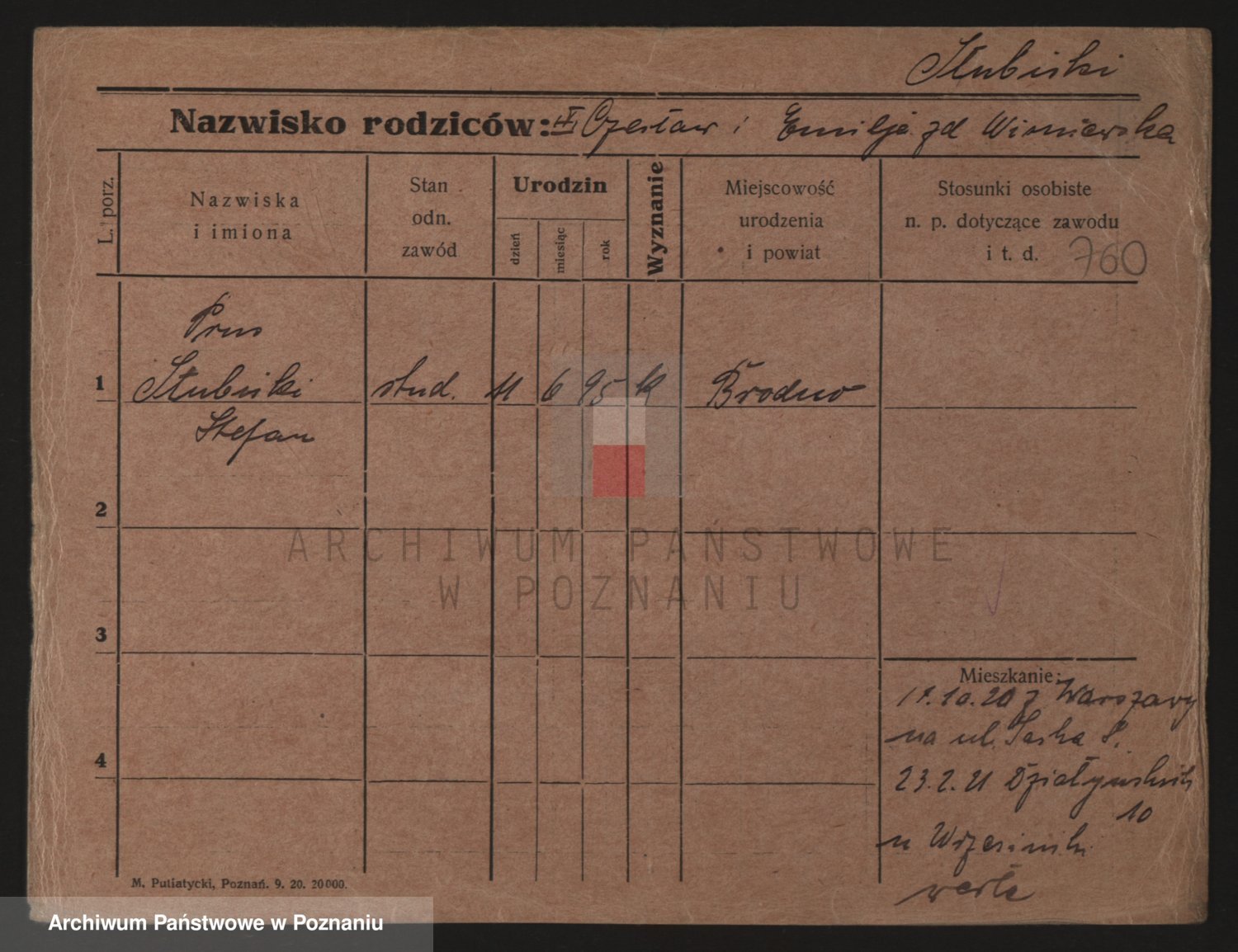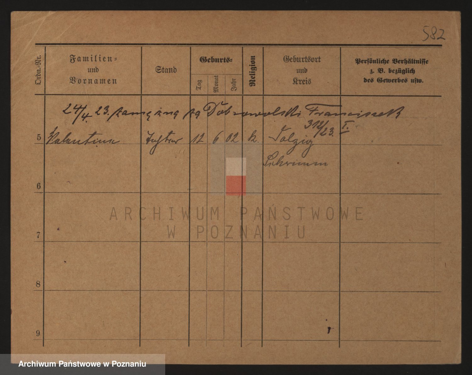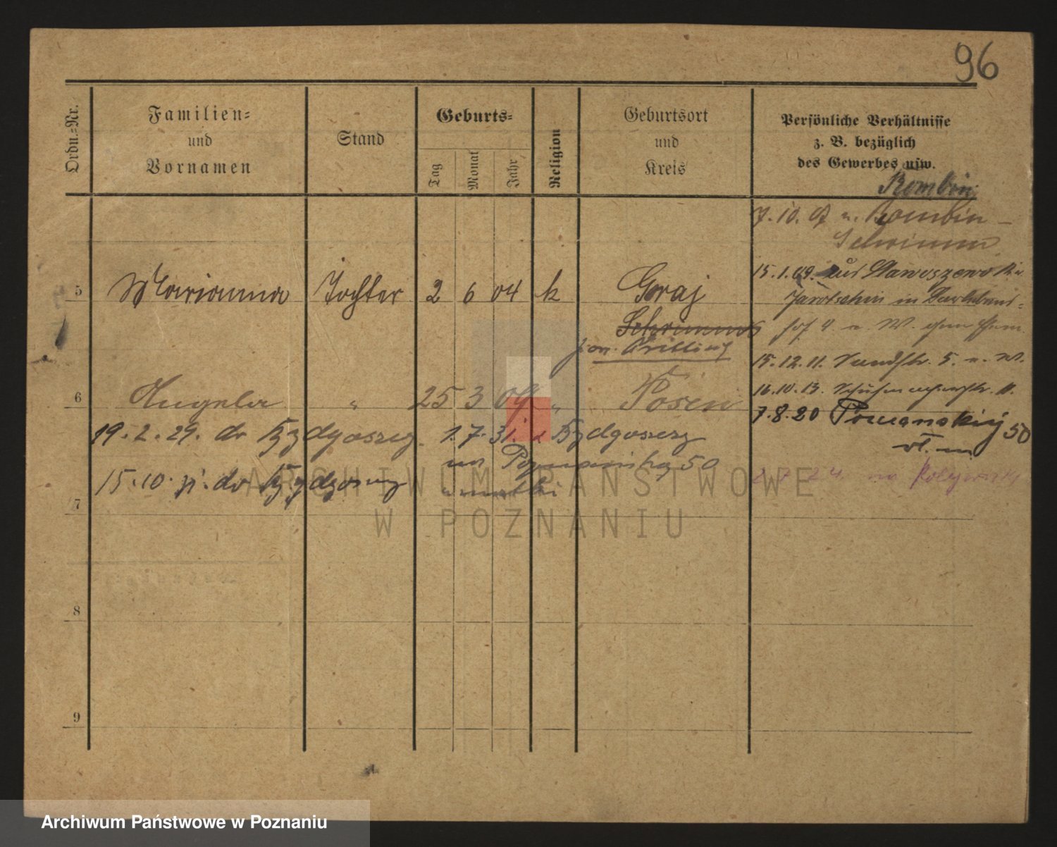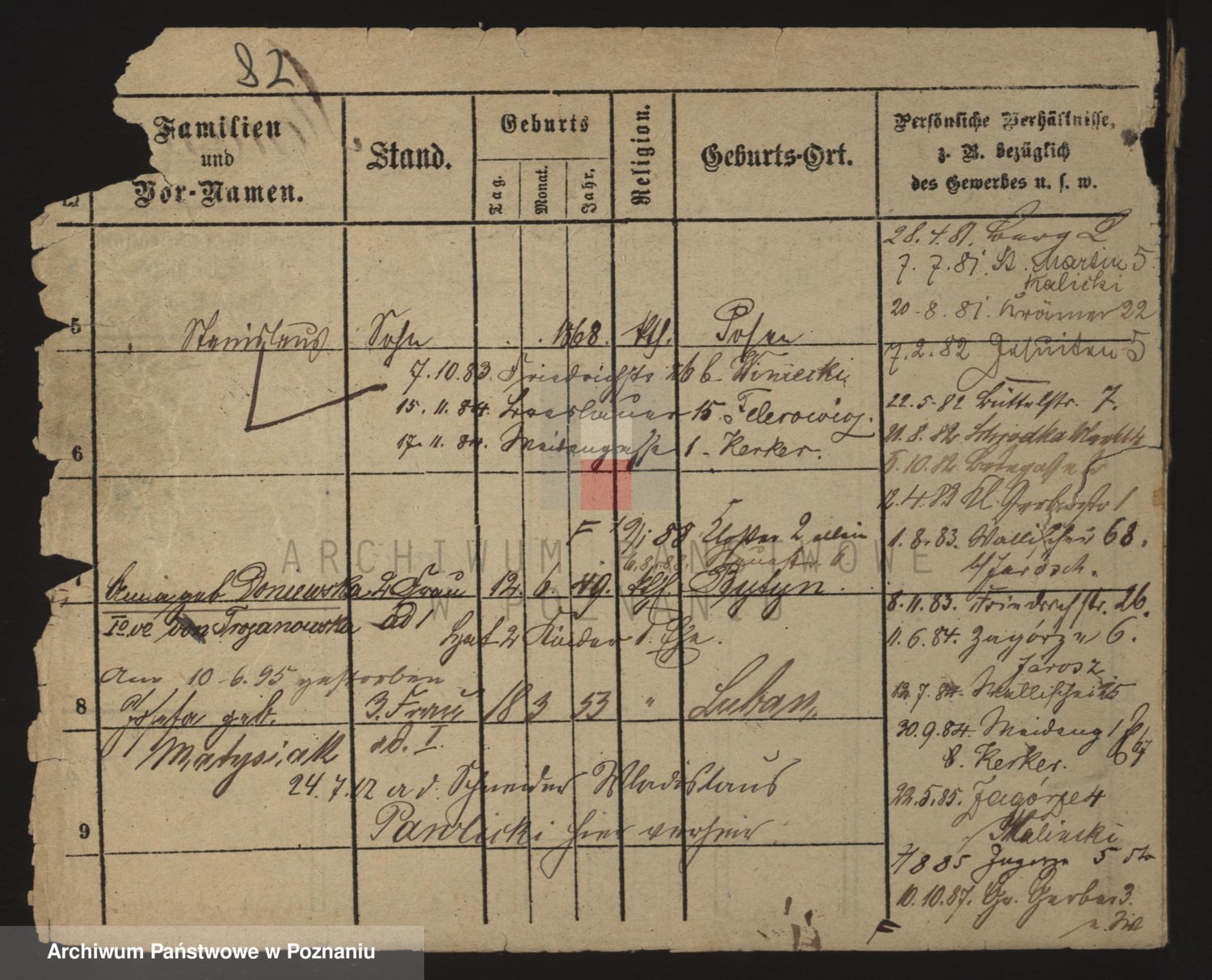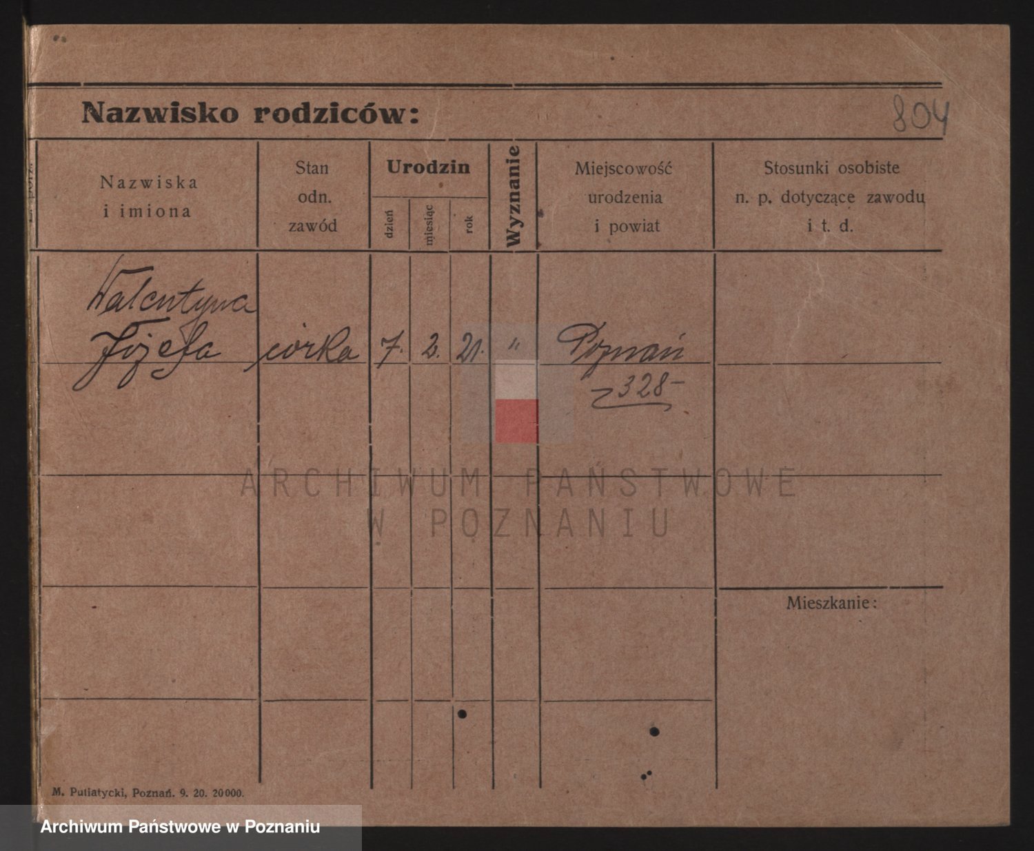 Podgląd karty osobowej dostępny jest po kliknięciu na nazwisko lub ikonkę karty. Można dokonywać powiększenia (ikony na górze) lub przechodzić między kolejnymi skanami (strzałki po bokach).