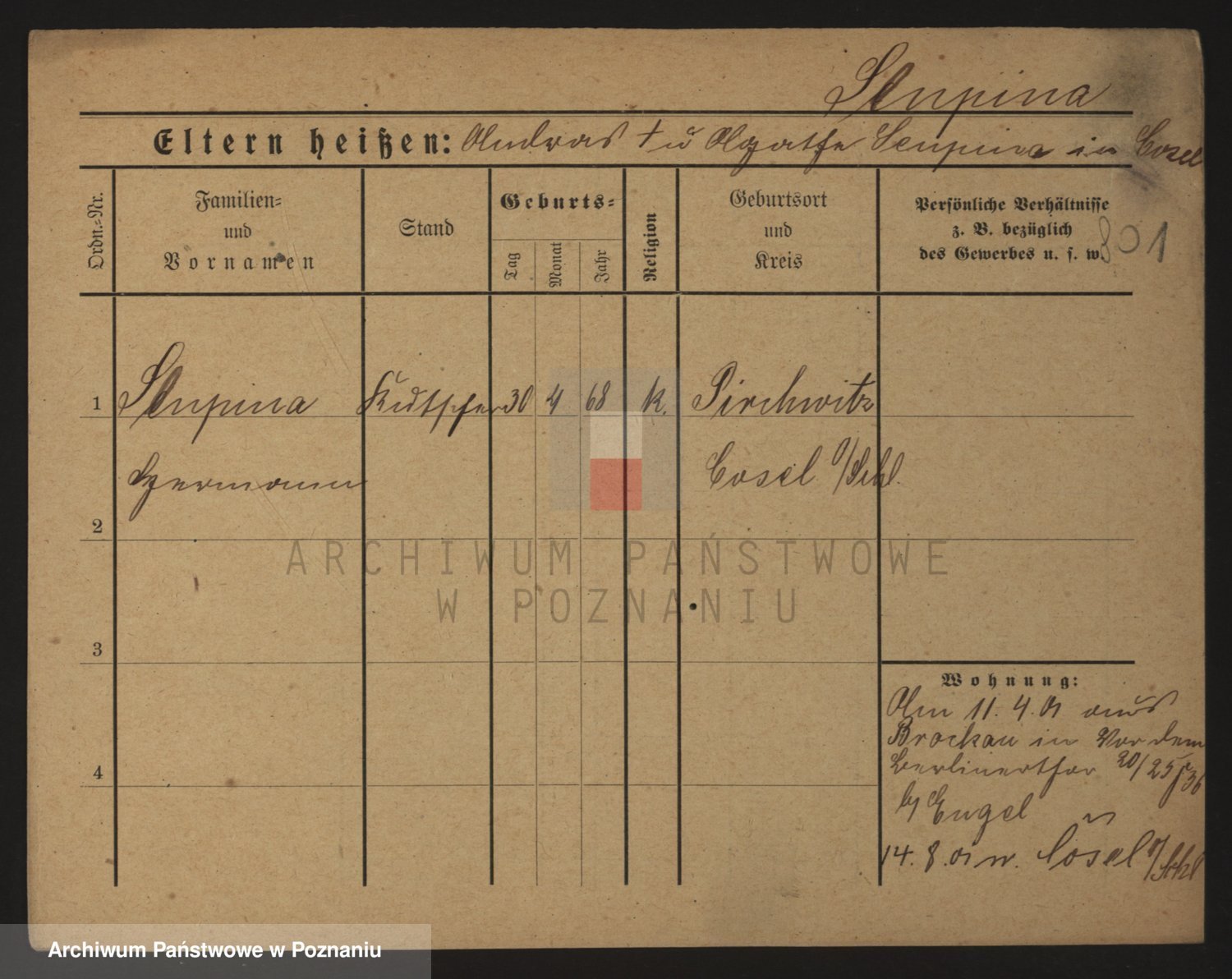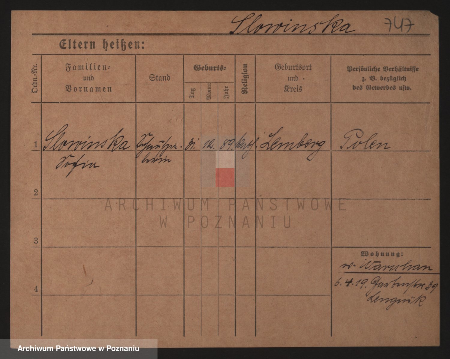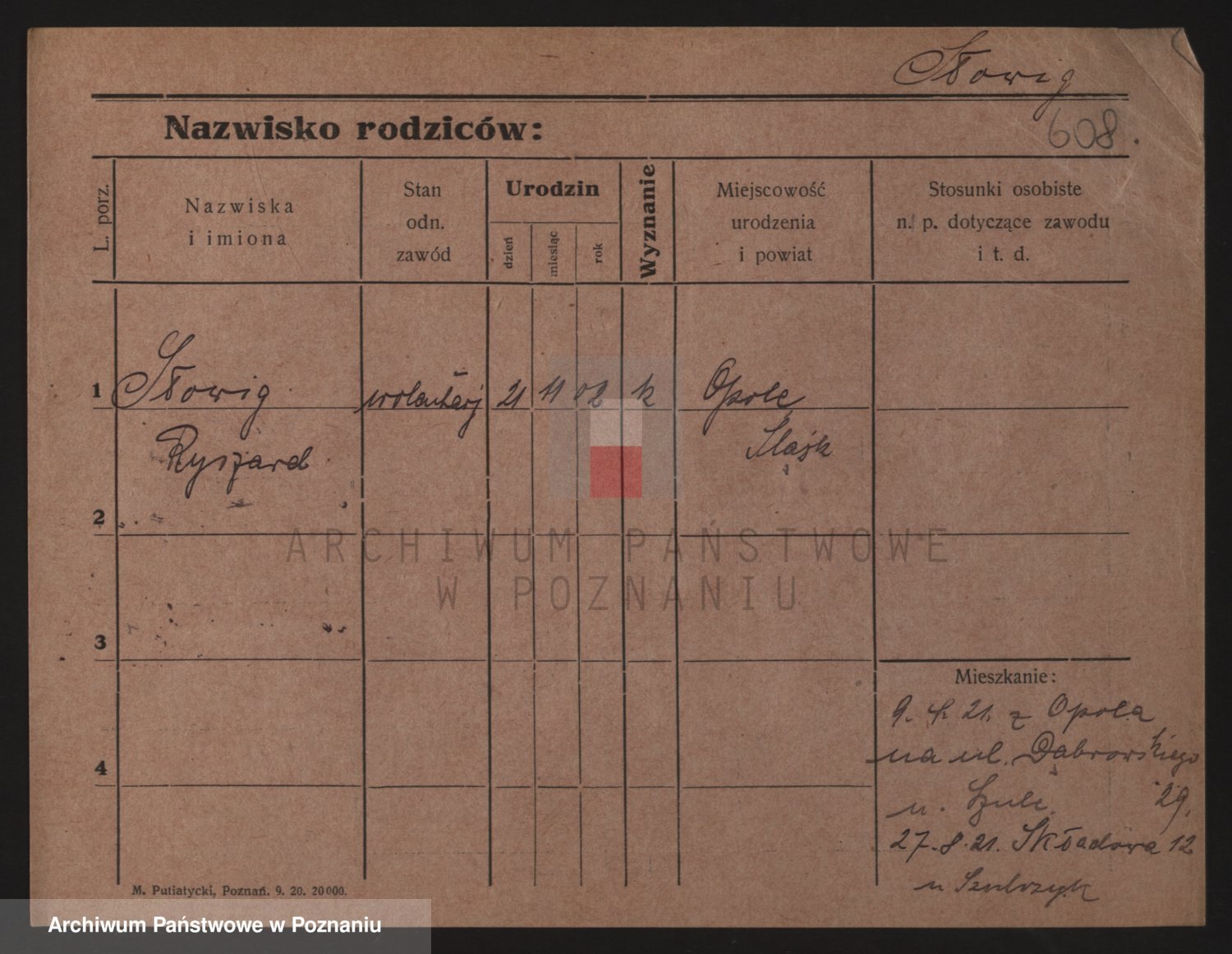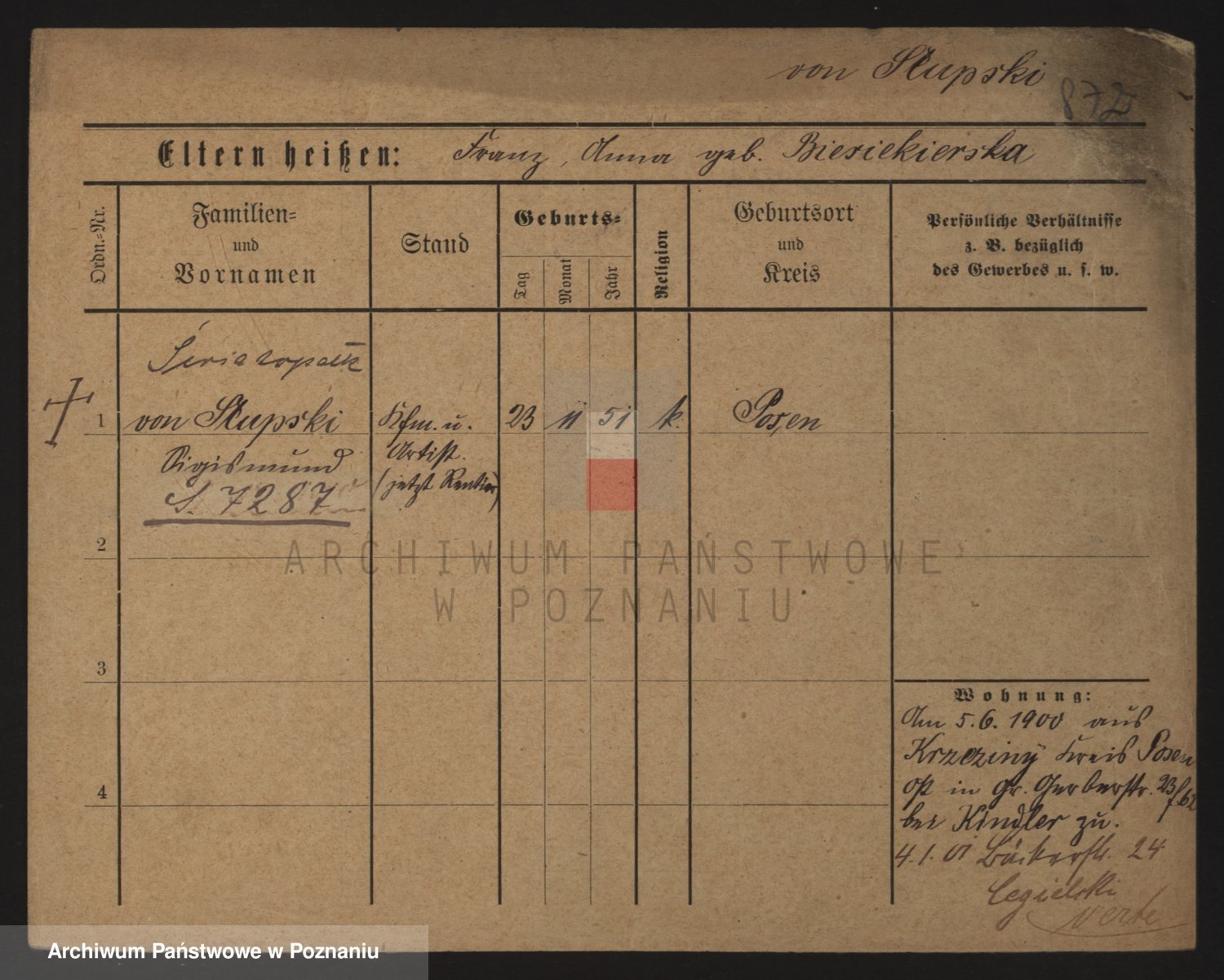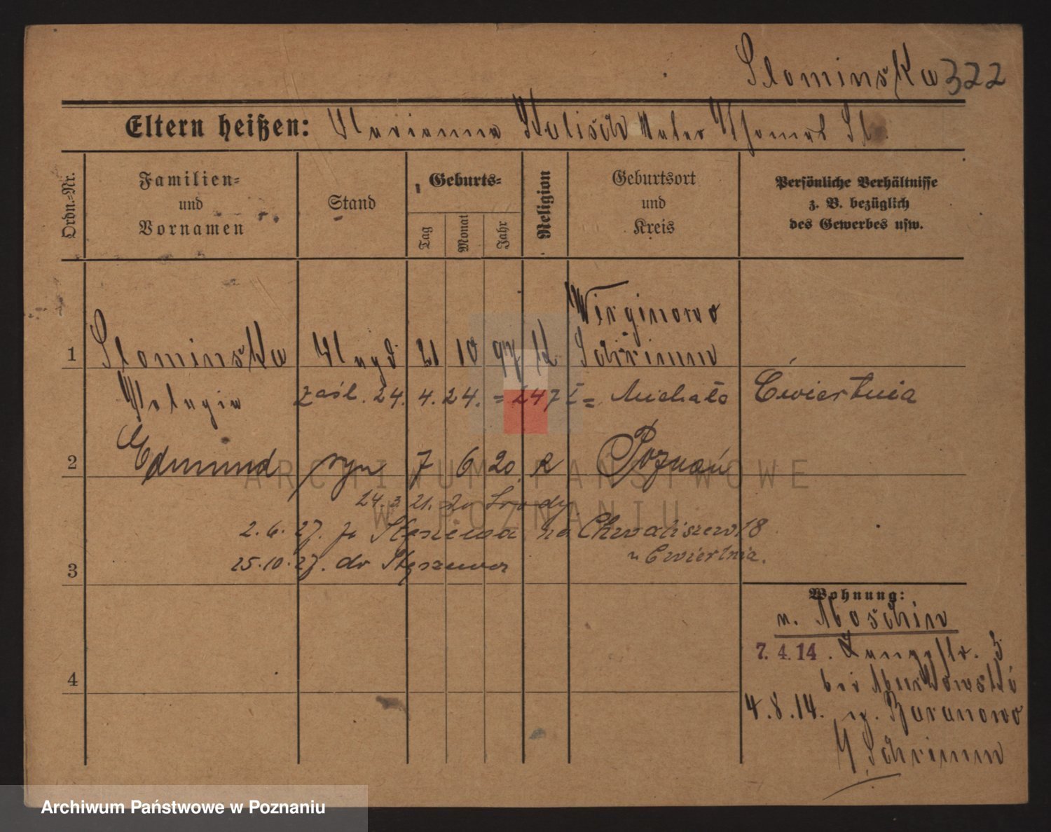 Podgląd karty osobowej dostępny jest po kliknięciu na nazwisko lub ikonkę karty. Można dokonywać powiększenia (ikony na górze) lub przechodzić między kolejnymi skanami (strzałki po bokach).