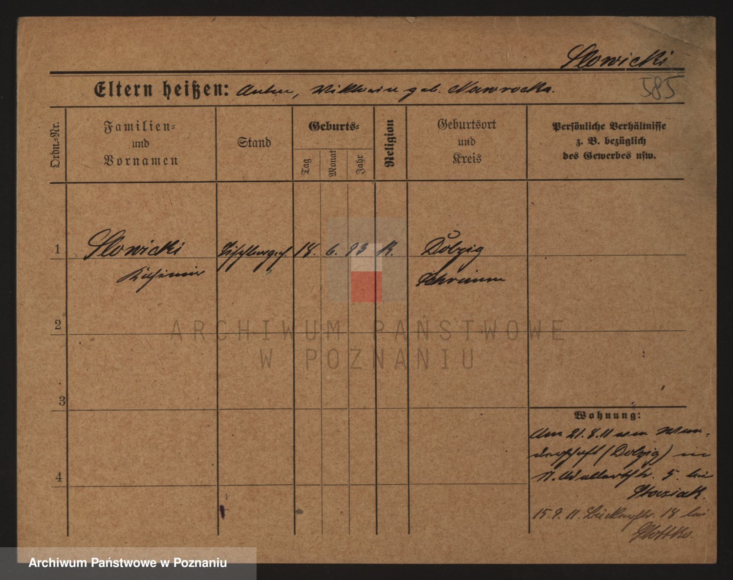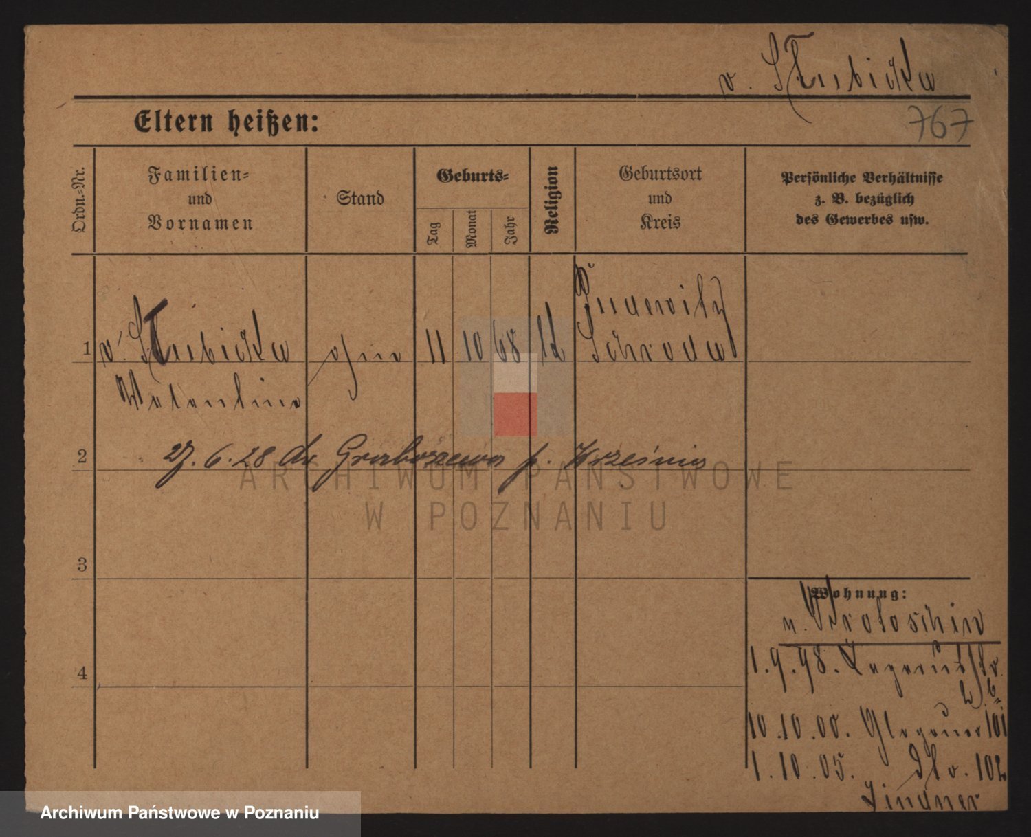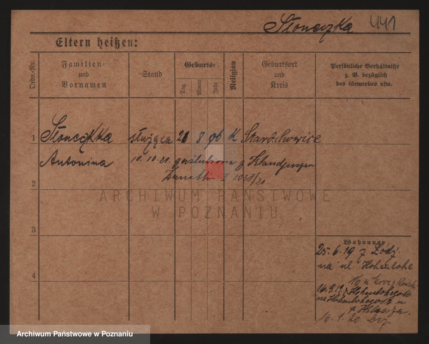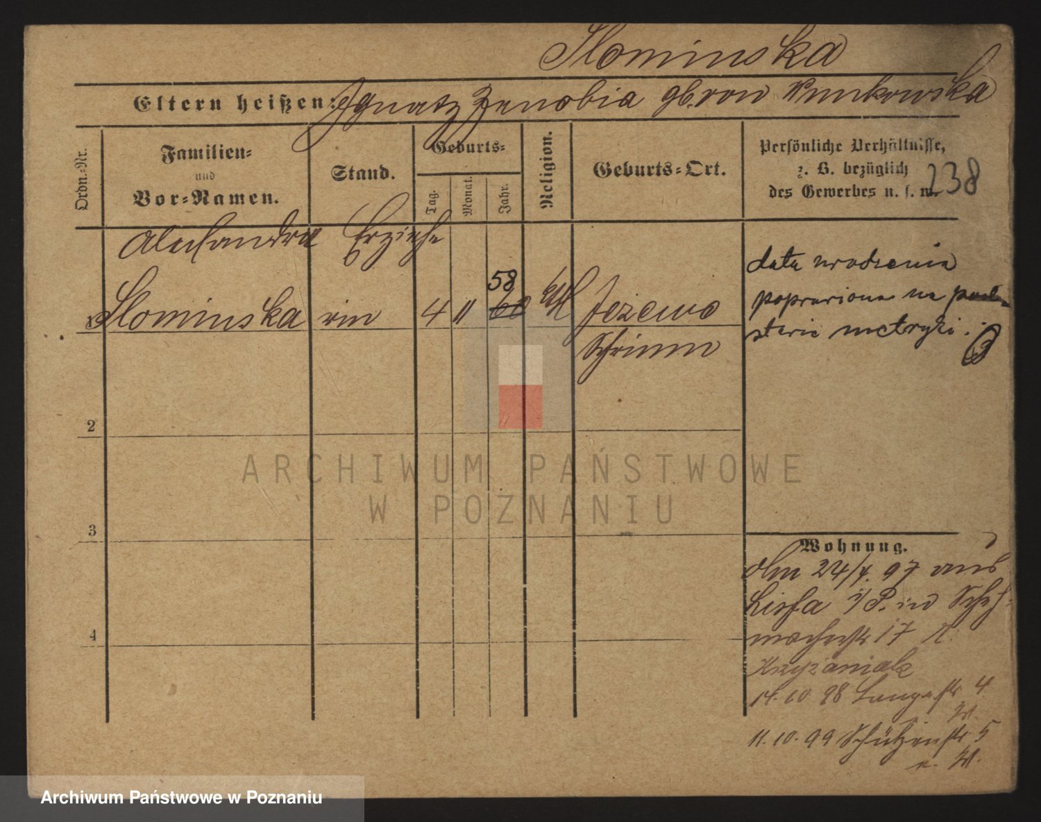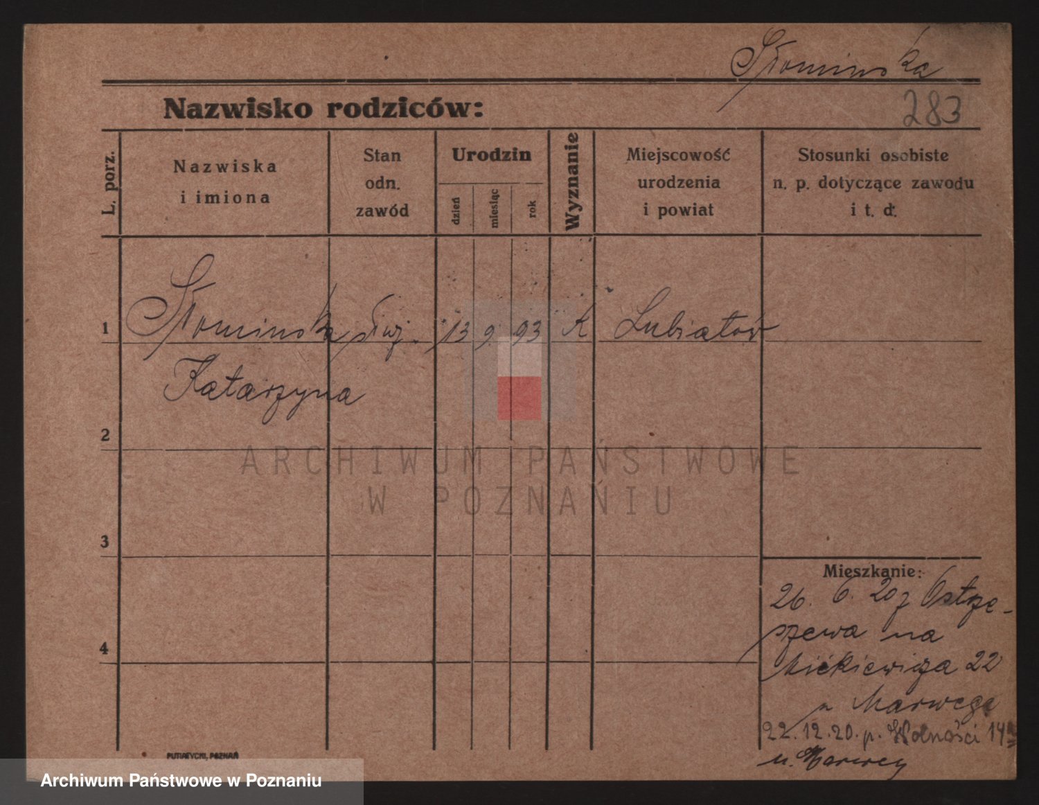 Podgląd karty osobowej dostępny jest po kliknięciu na nazwisko lub ikonkę karty. Można dokonywać powiększenia (ikony na górze) lub przechodzić między kolejnymi skanami (strzałki po bokach).